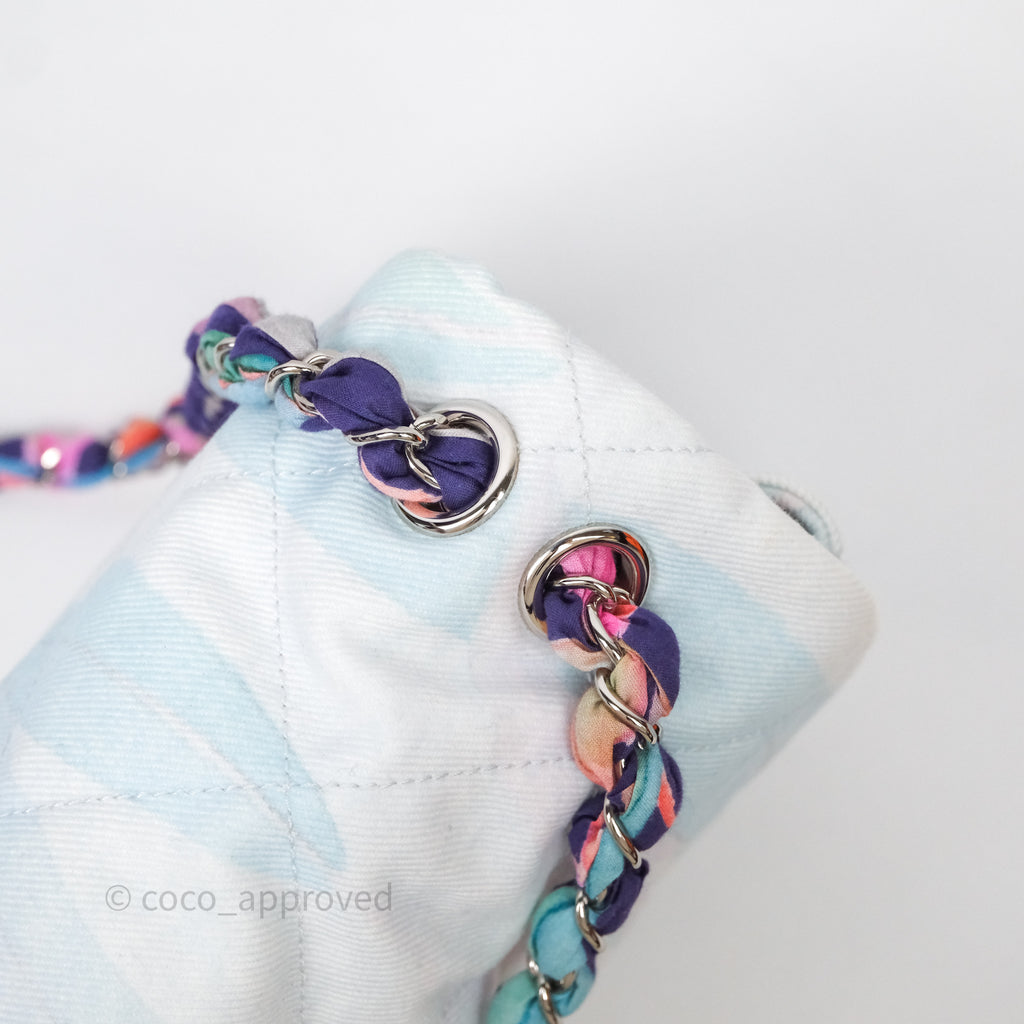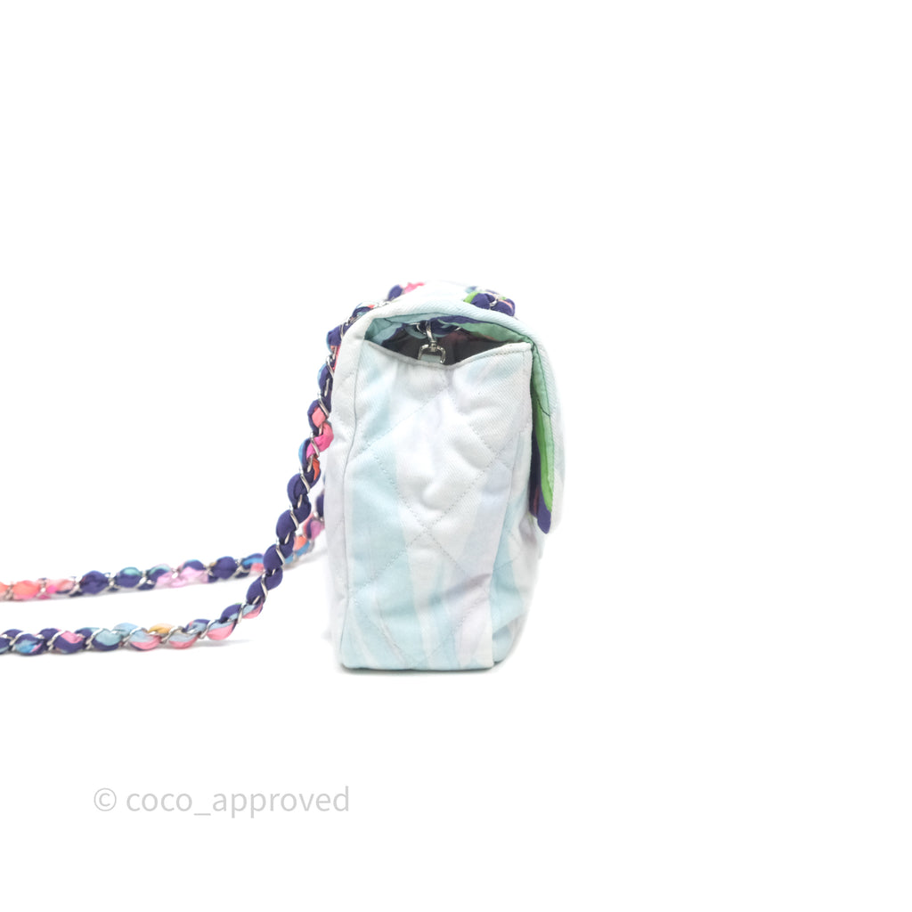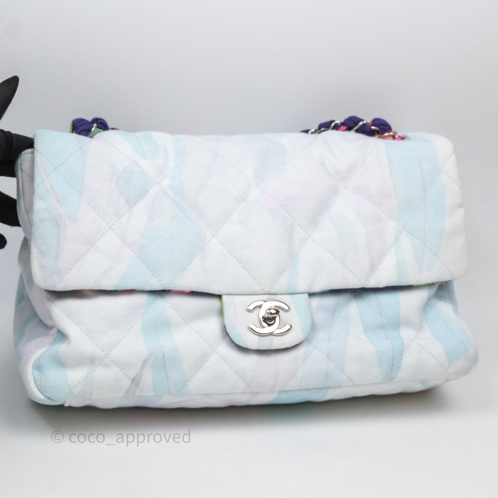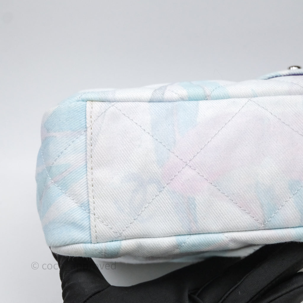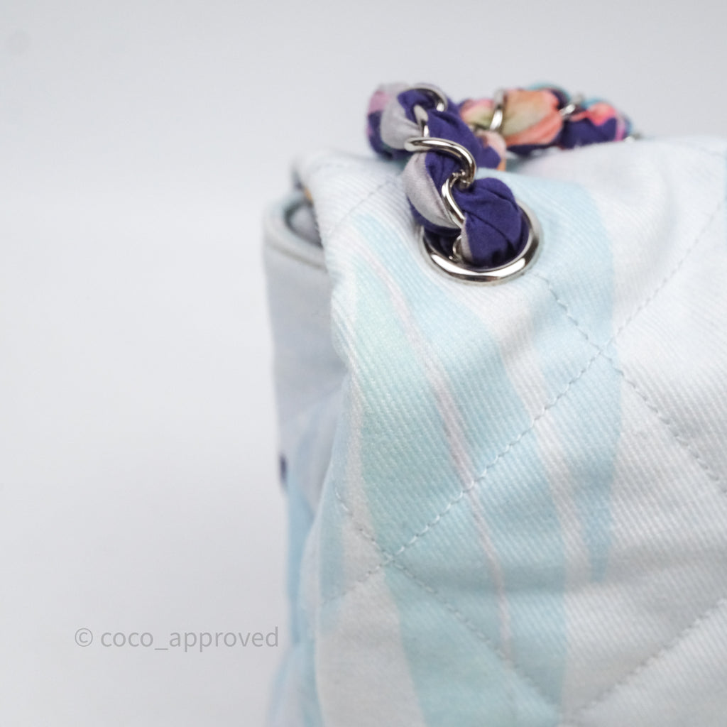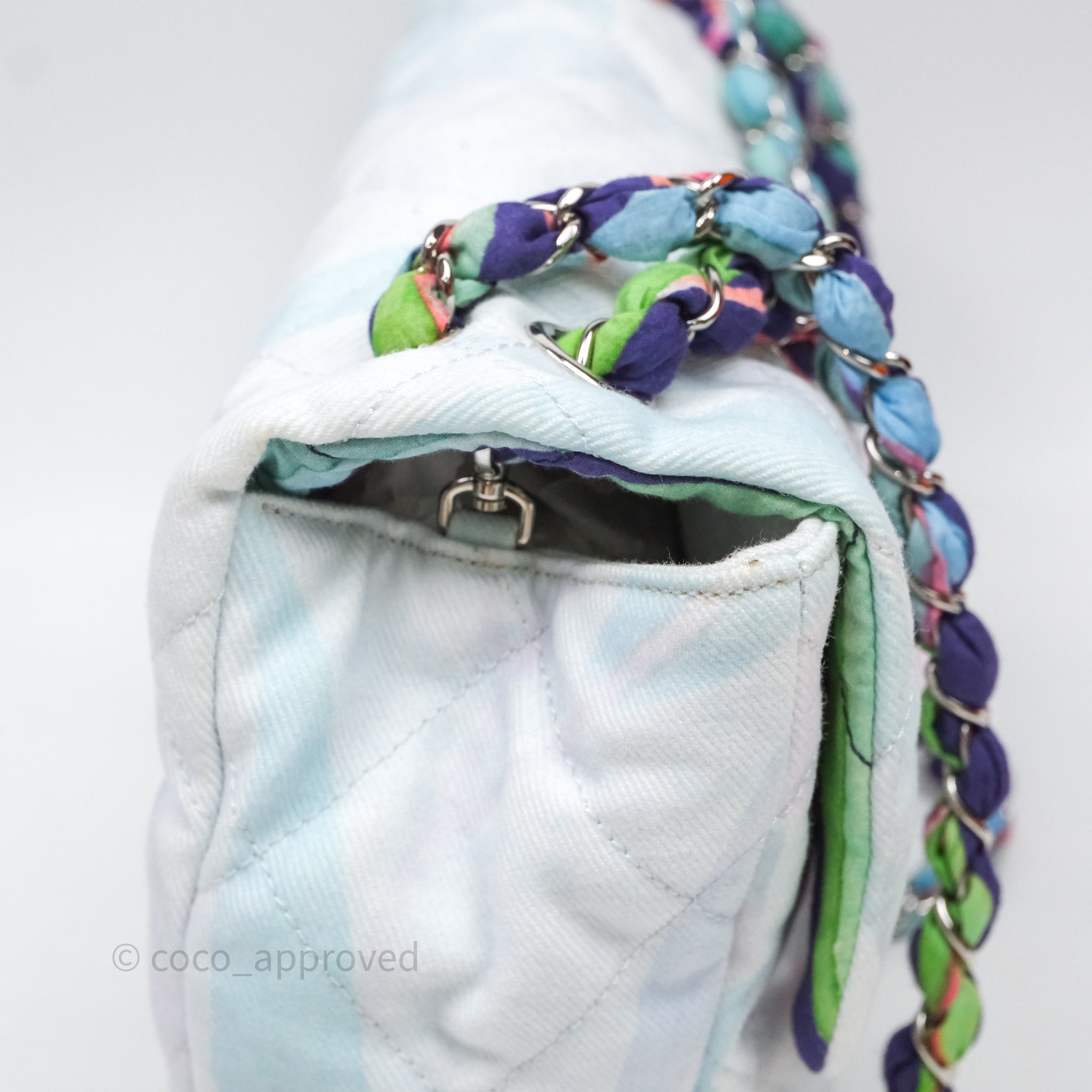 Chanel Single Flap Bag Blue Watercolour Denim Silver Hardware