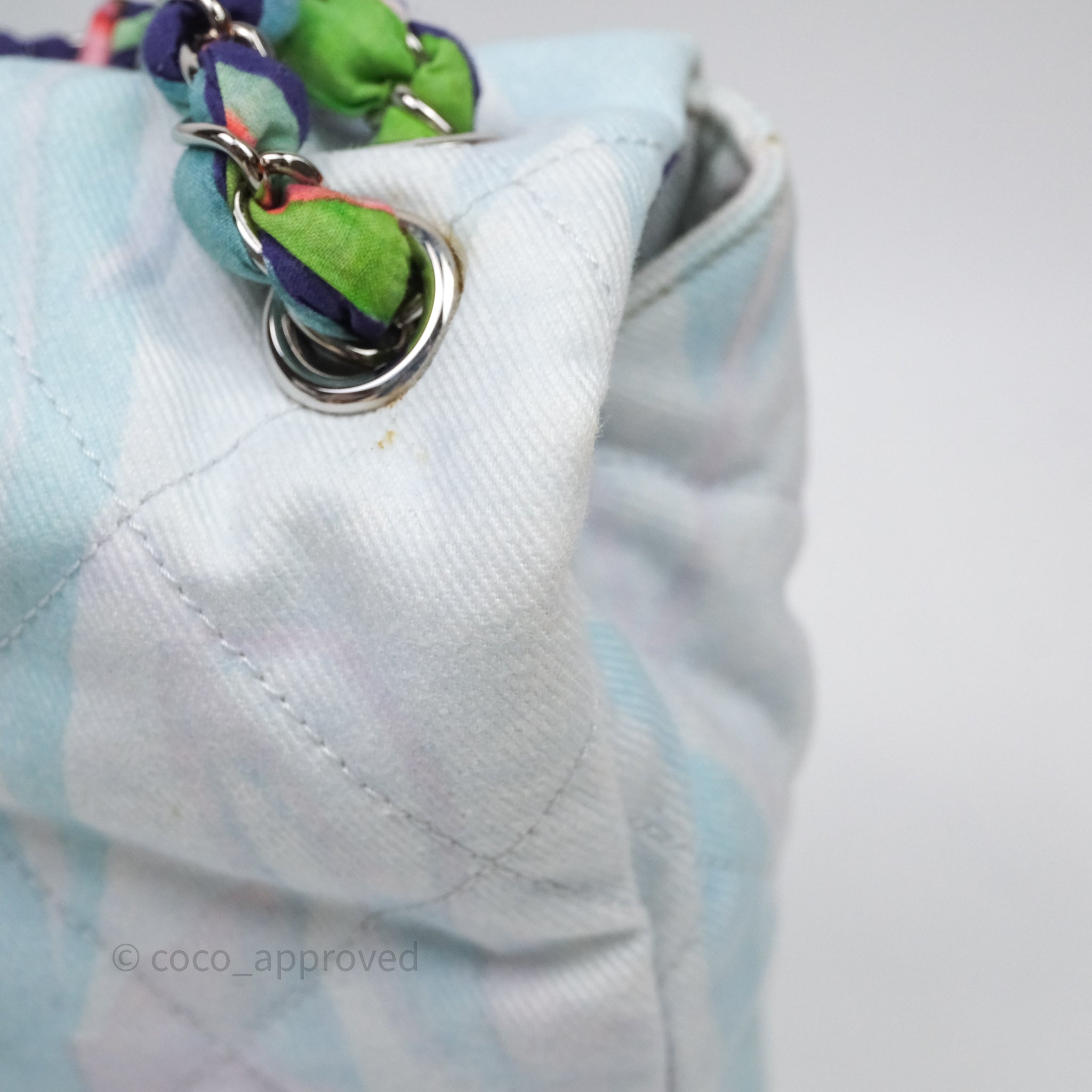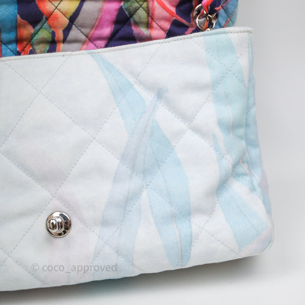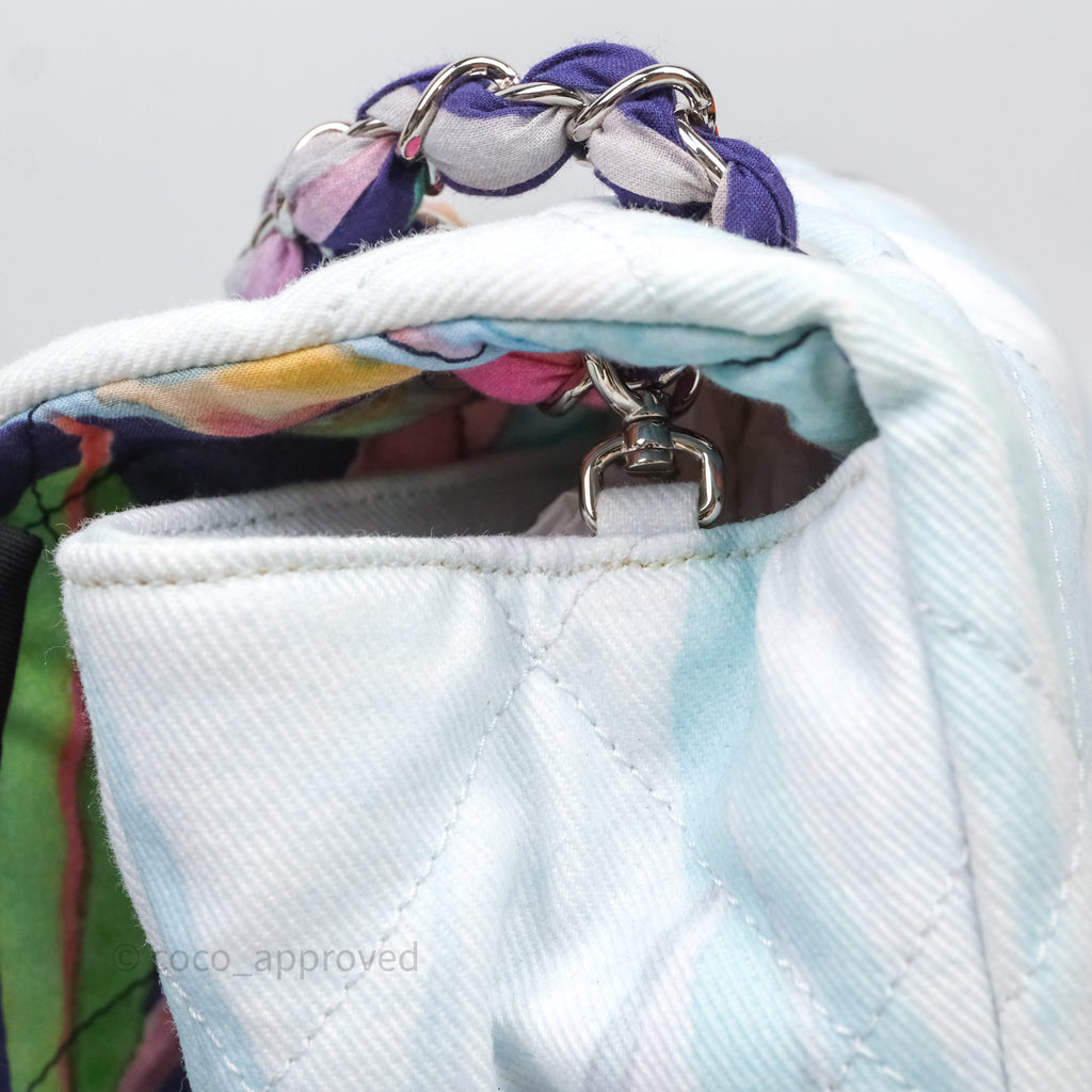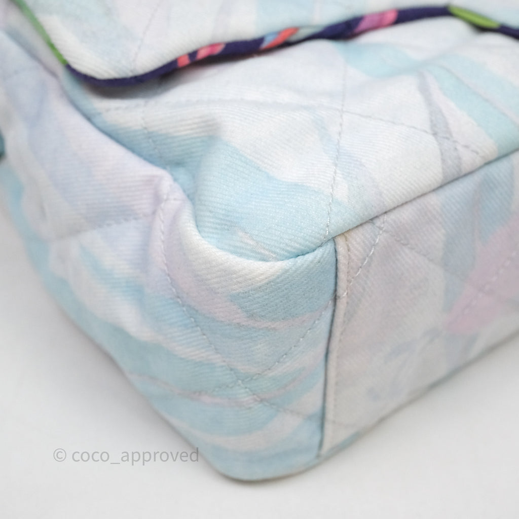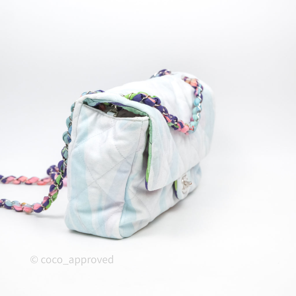 Chanel Single Flap Bag Blue Watercolour Denim Silver Hardware