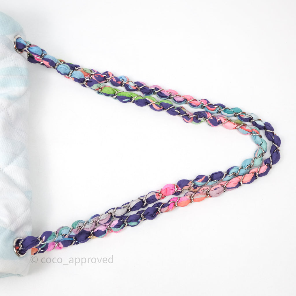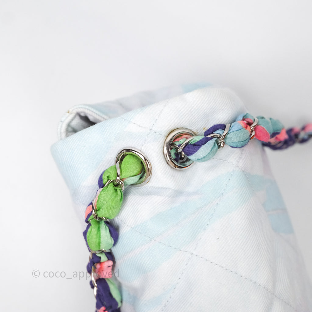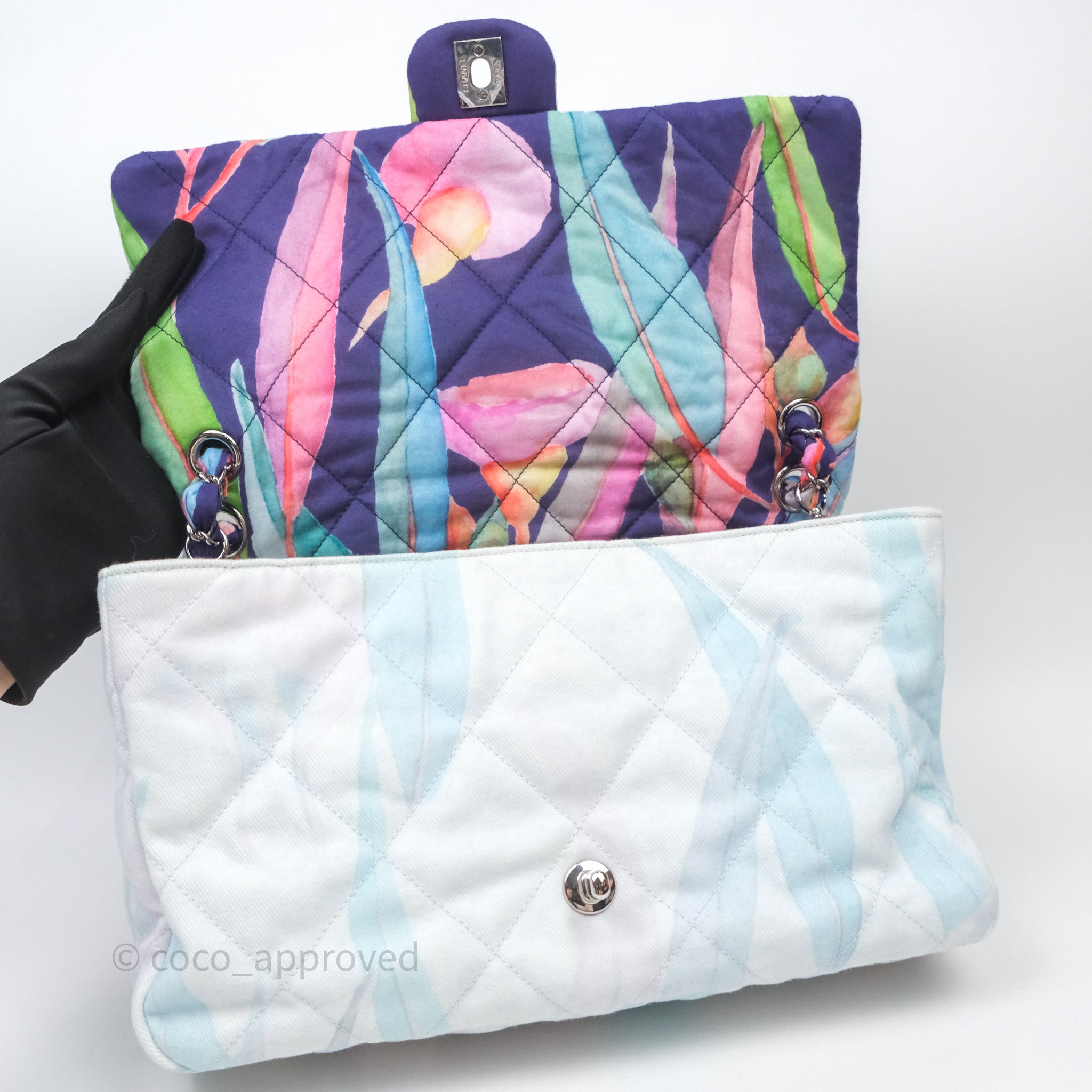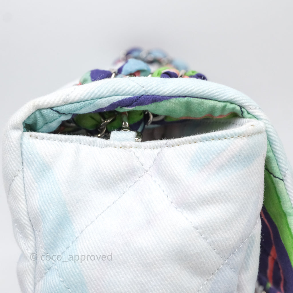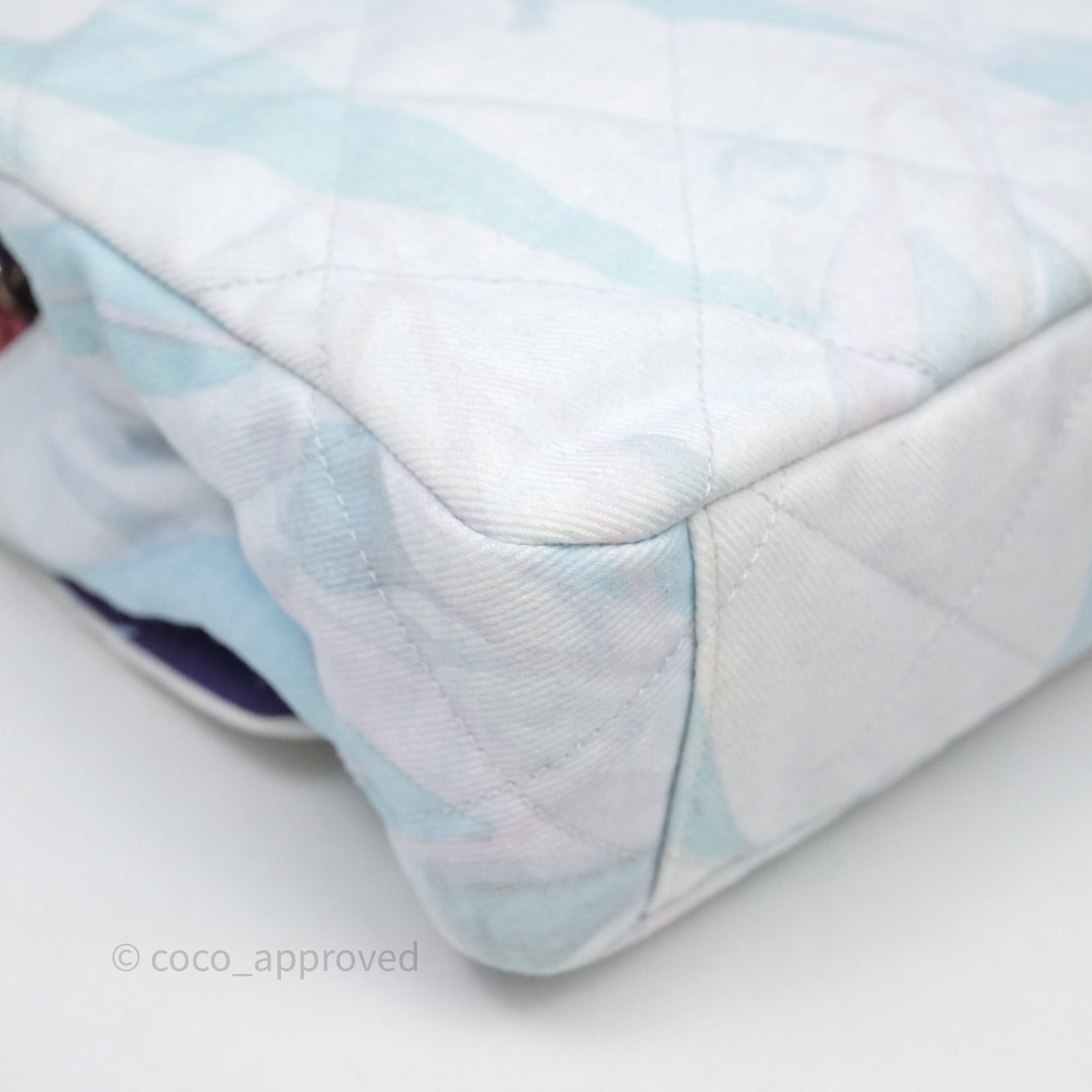 Chanel Single Flap Bag Blue Watercolour Denim Silver Hardware