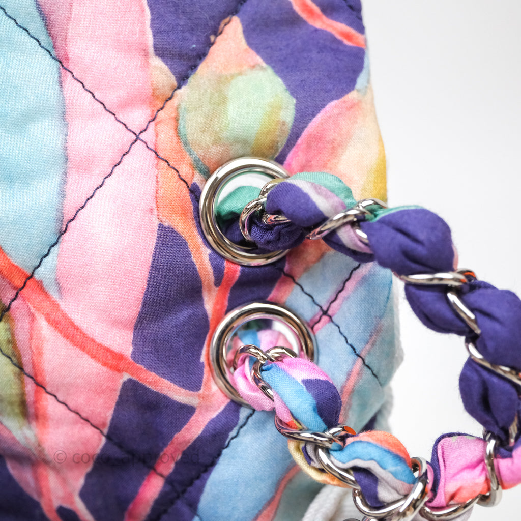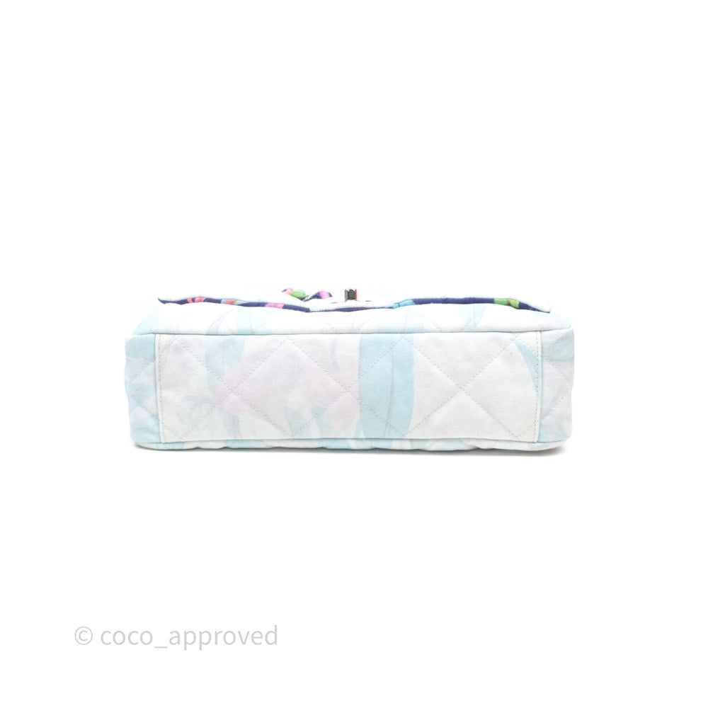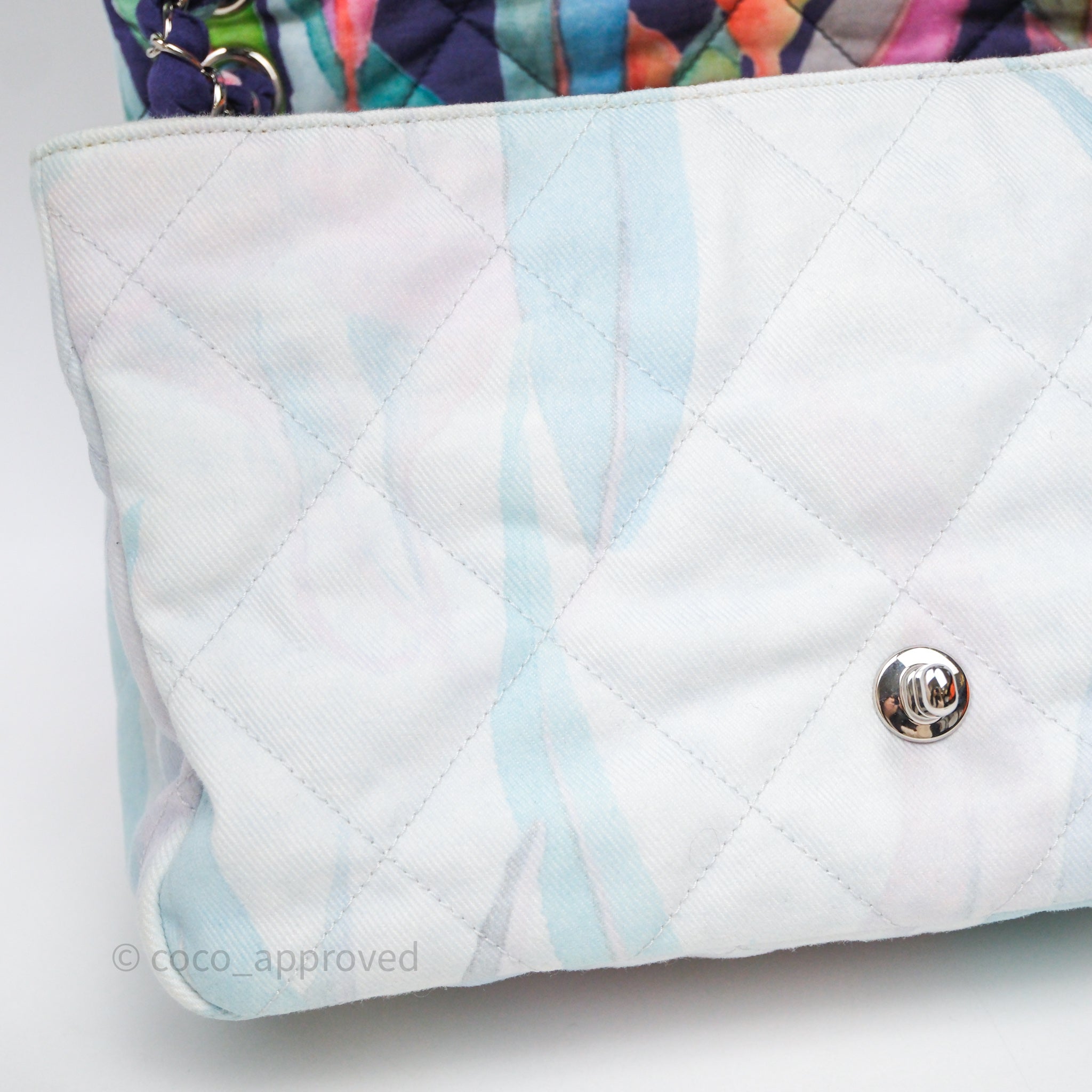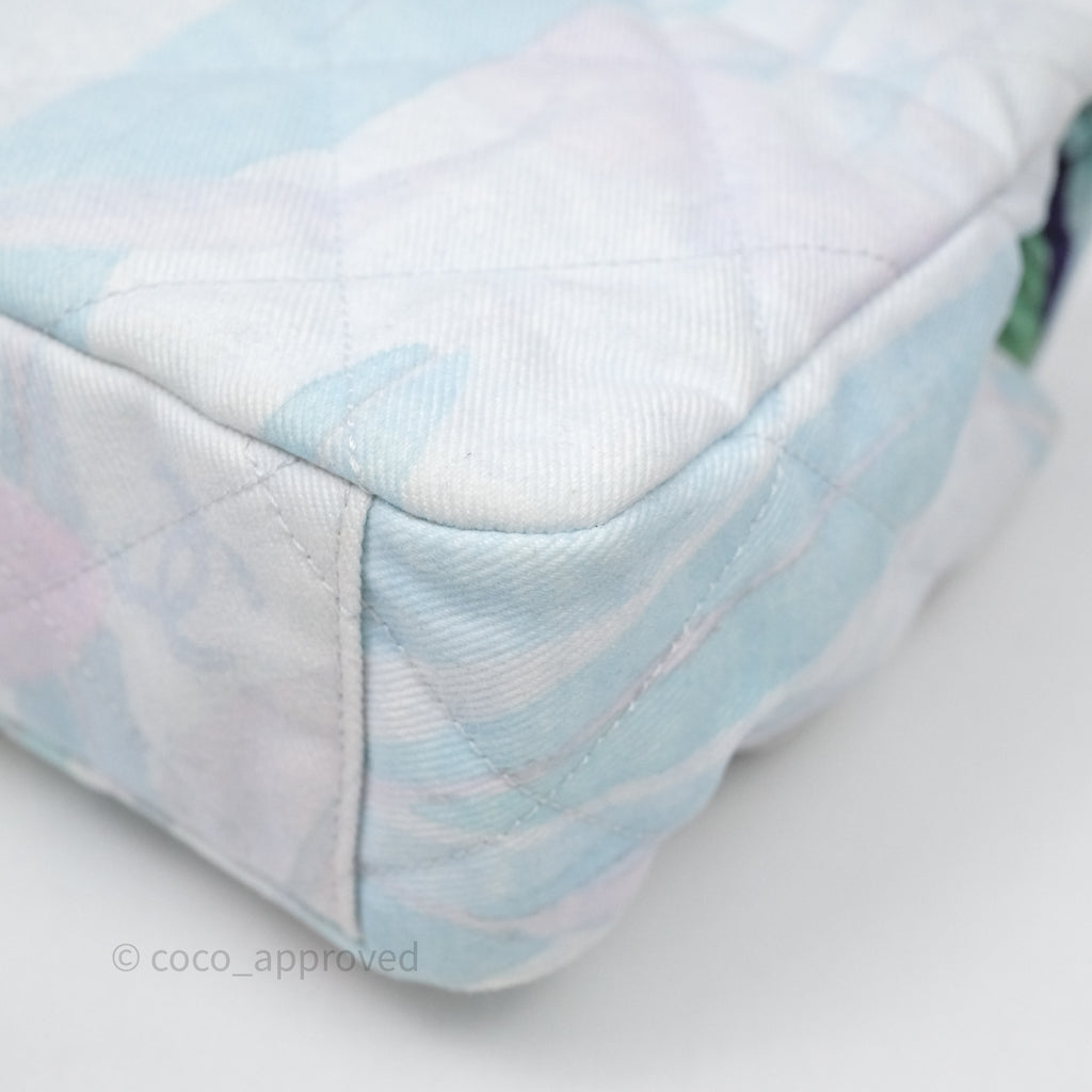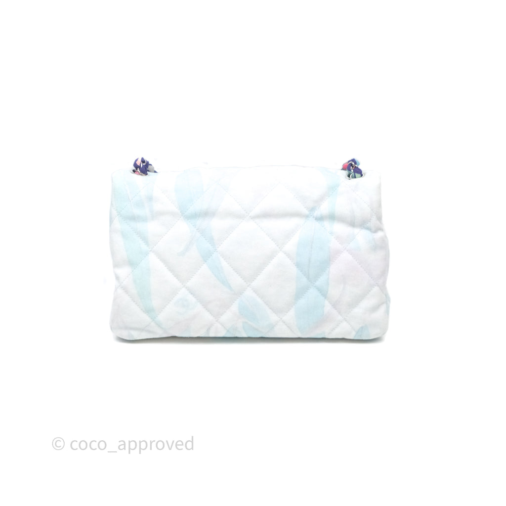 Chanel Single Flap Bag Blue Watercolour Denim Silver Hardware