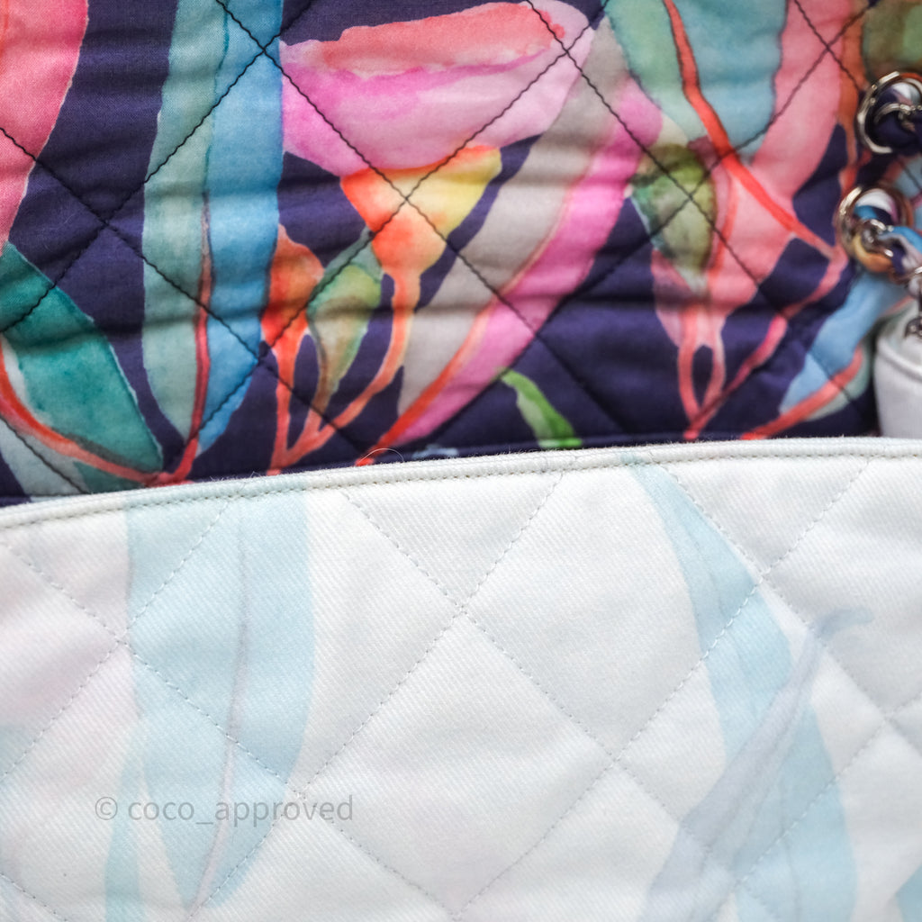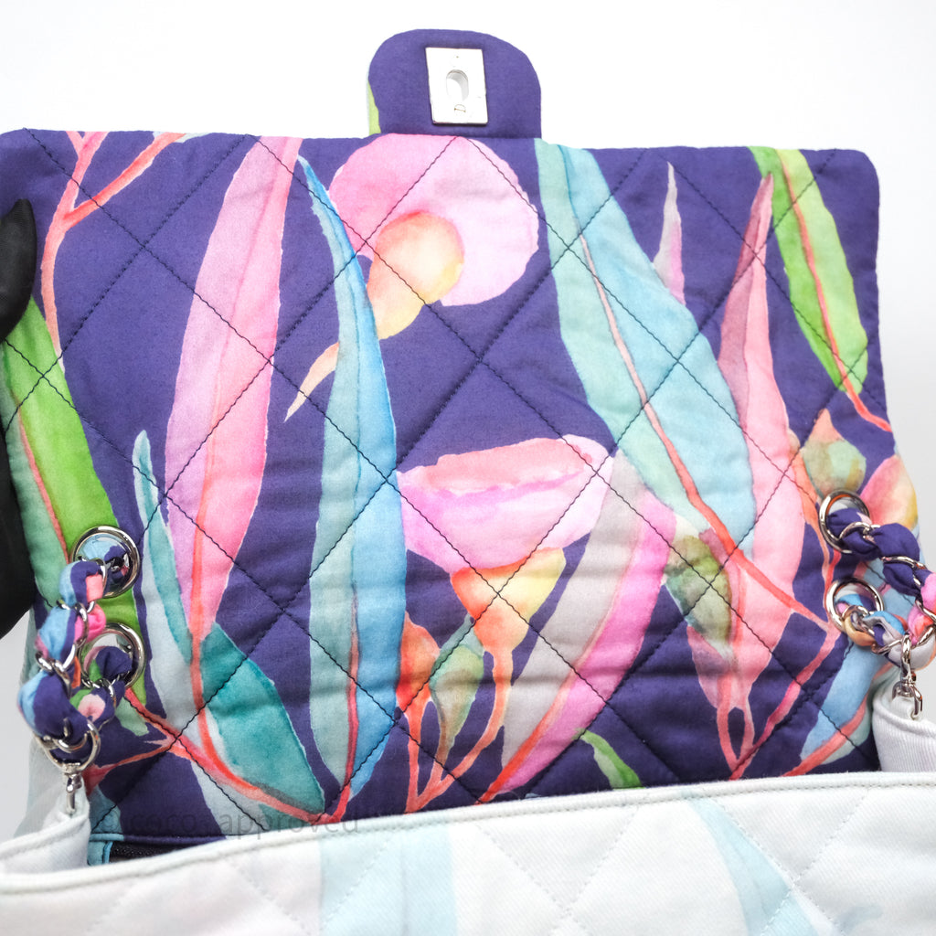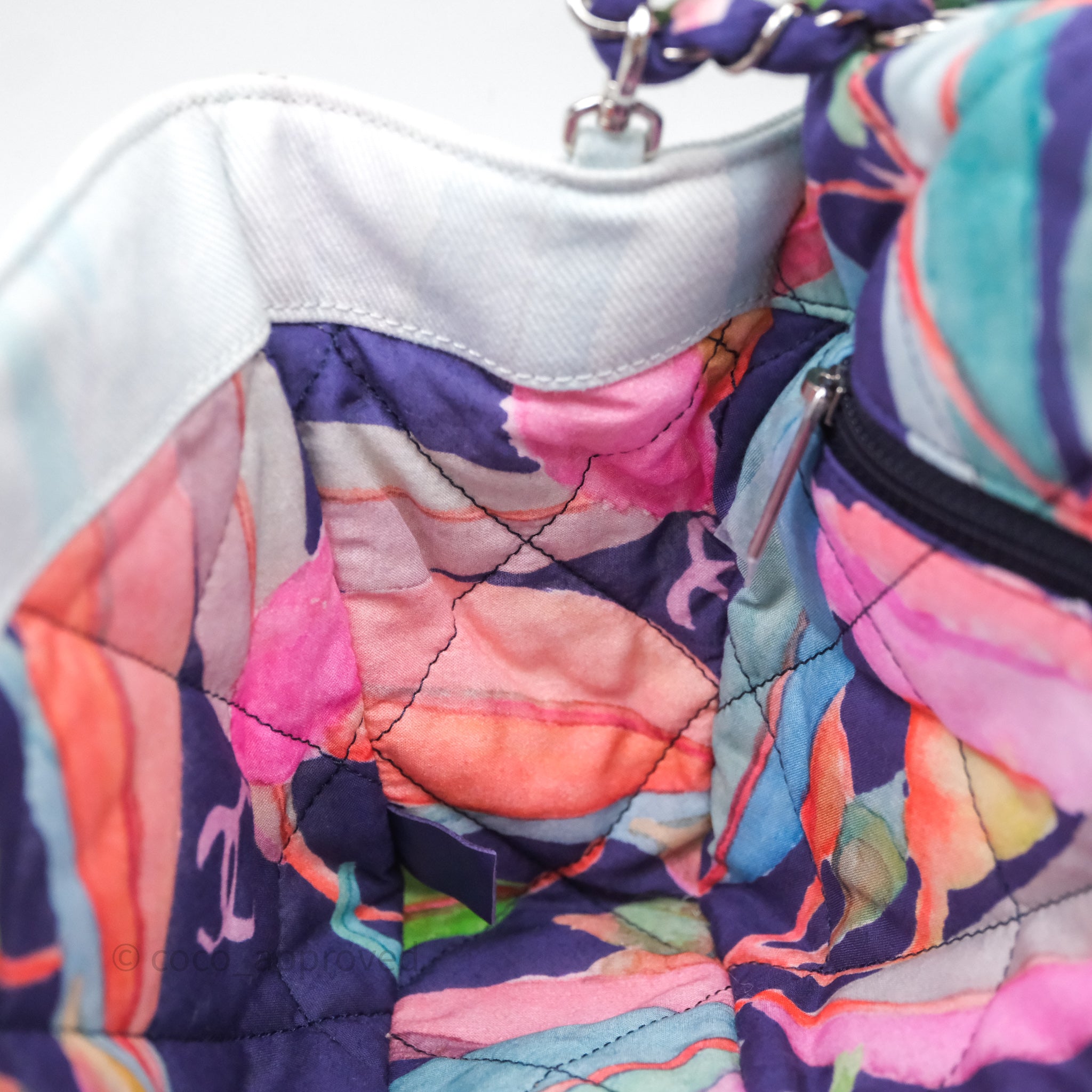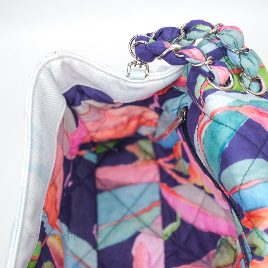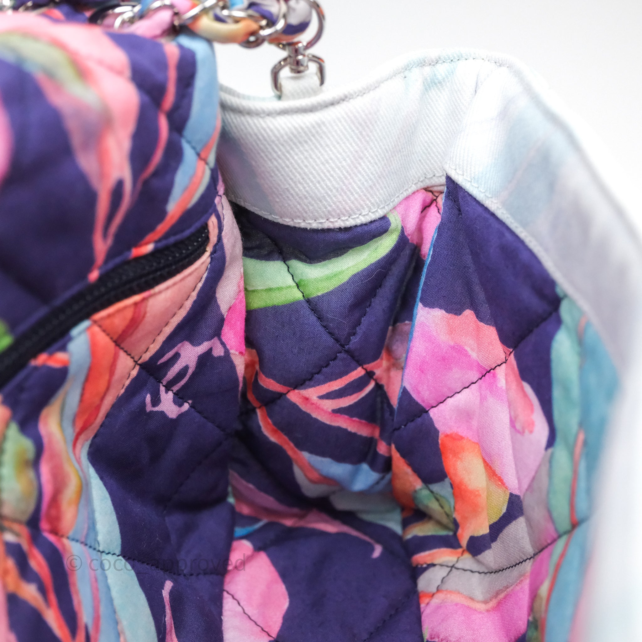 Chanel Single Flap Bag Blue Watercolour Denim Silver Hardware