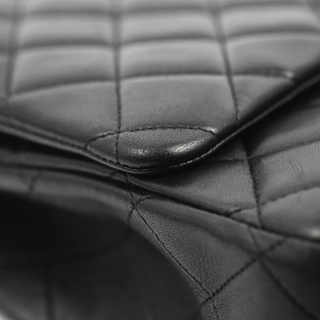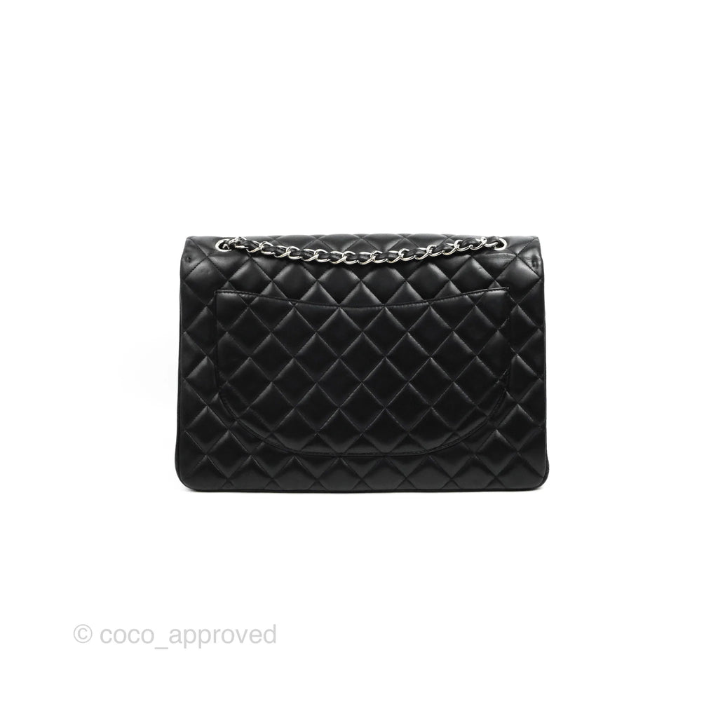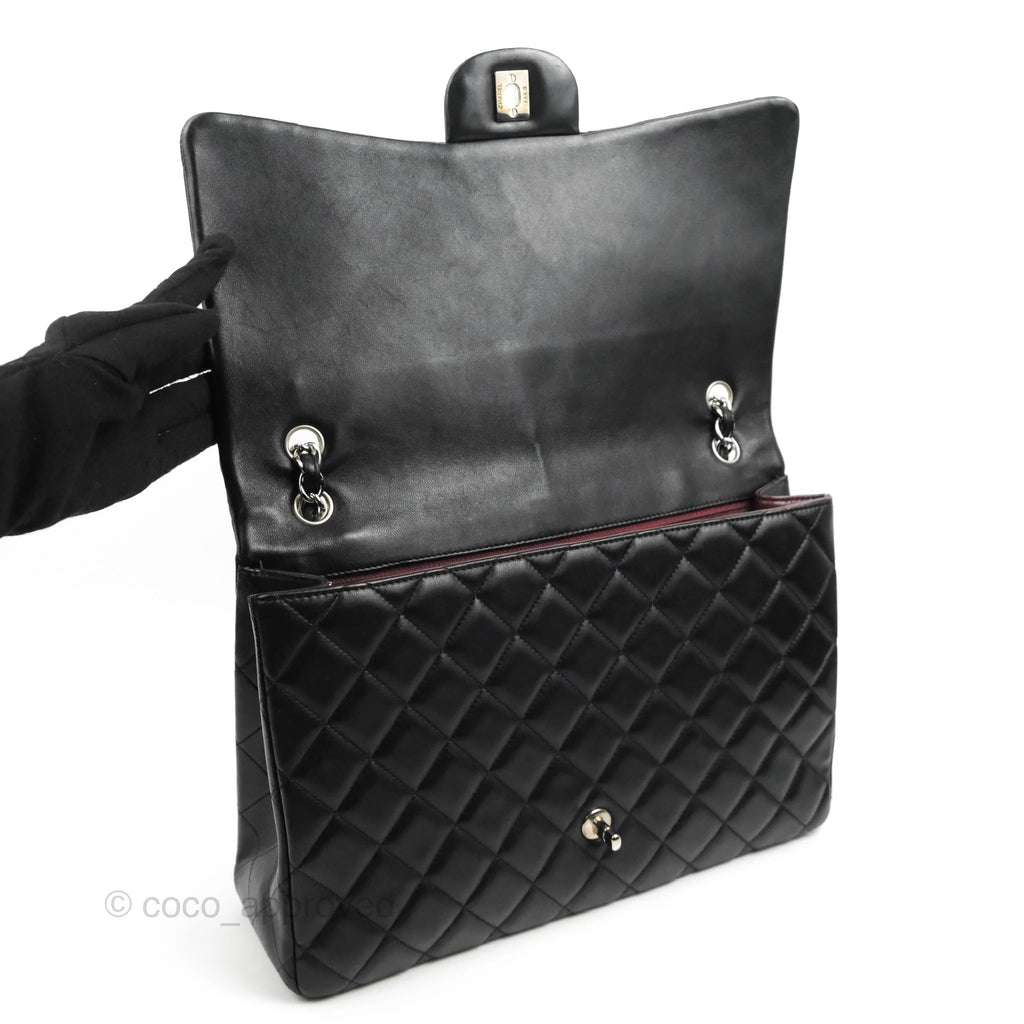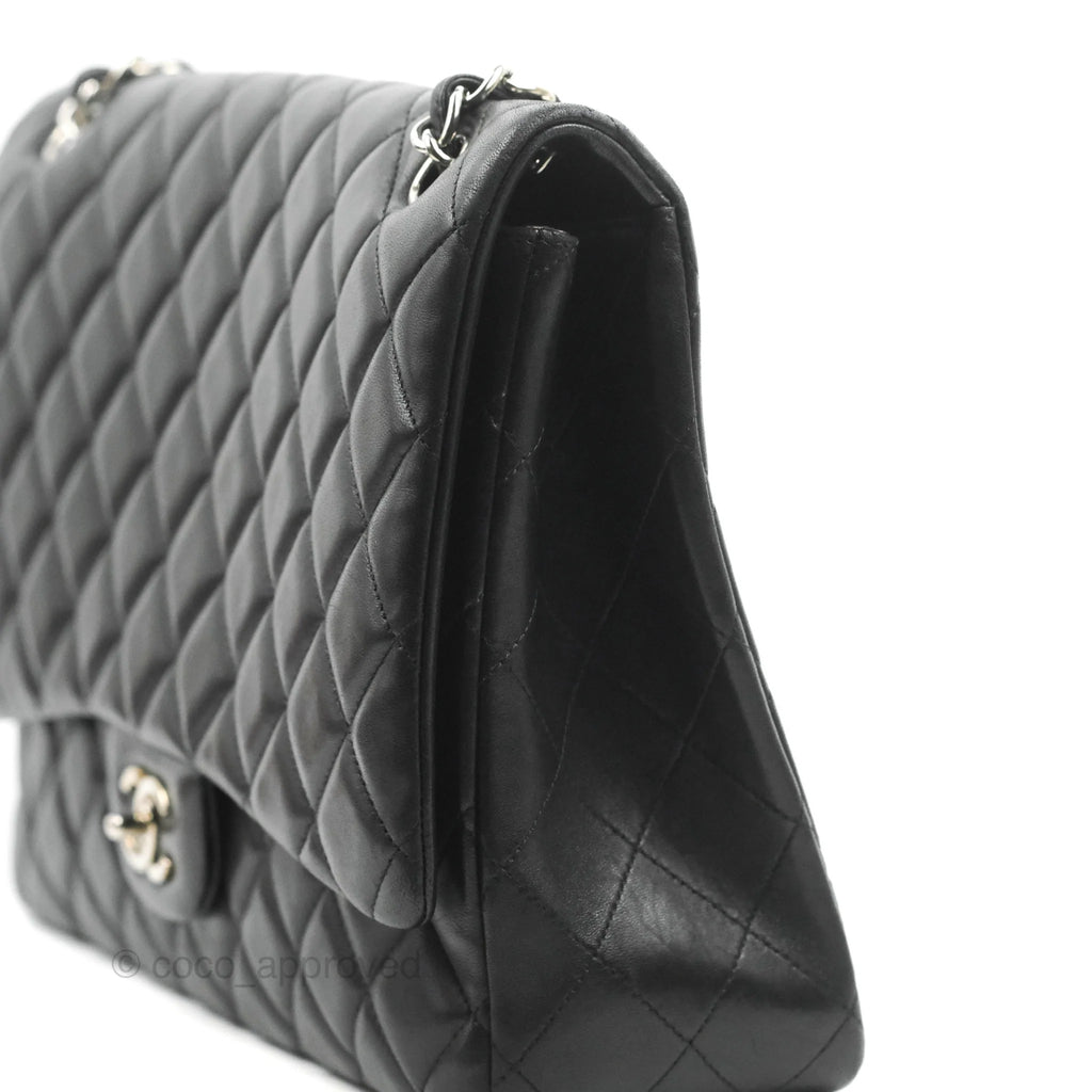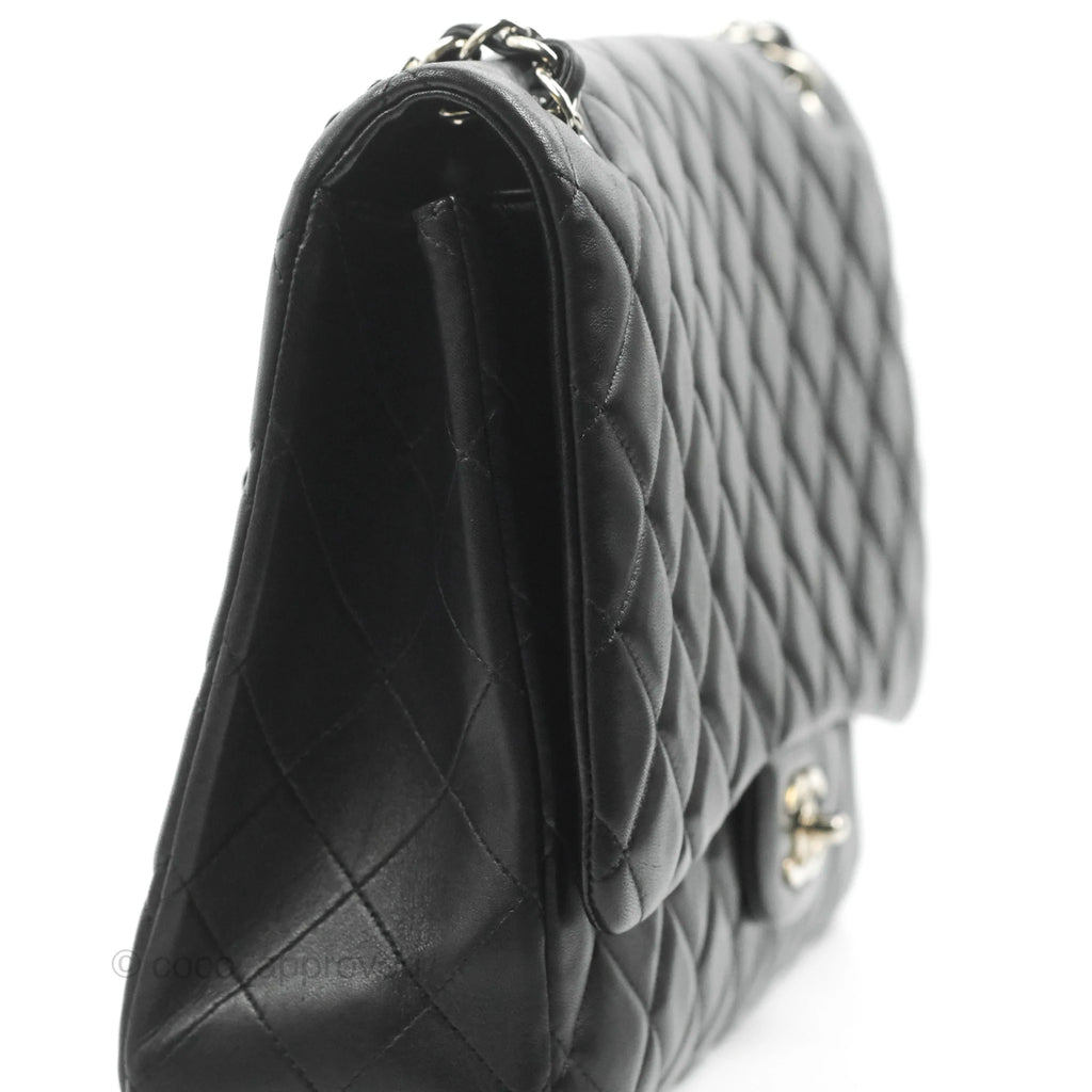 Chanel Single Flap Maxi Lambskin Black Silver Hardware