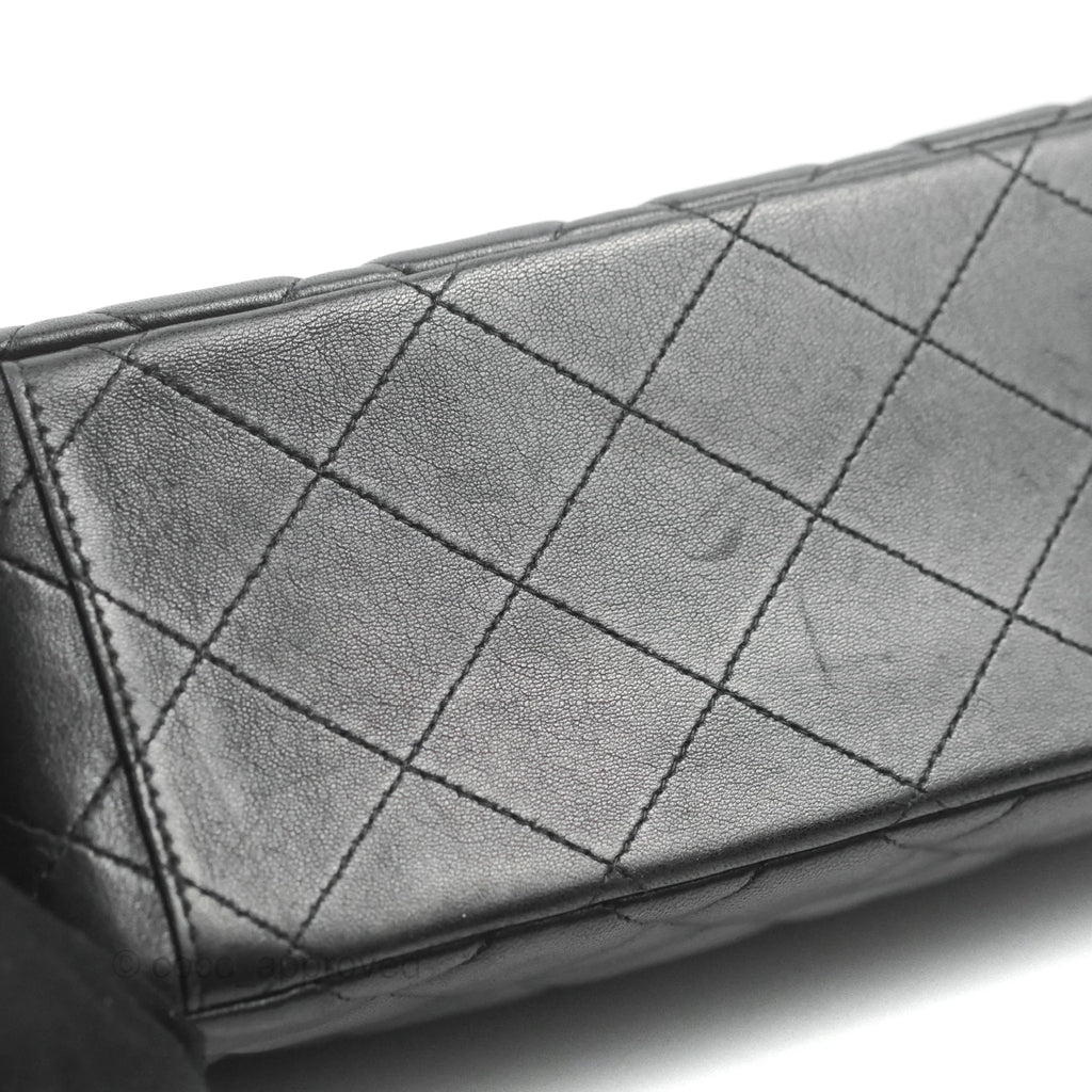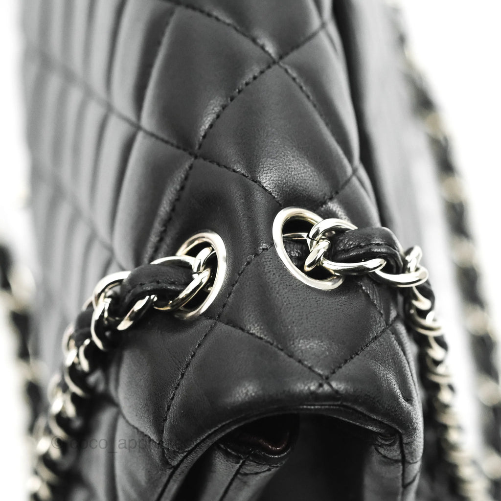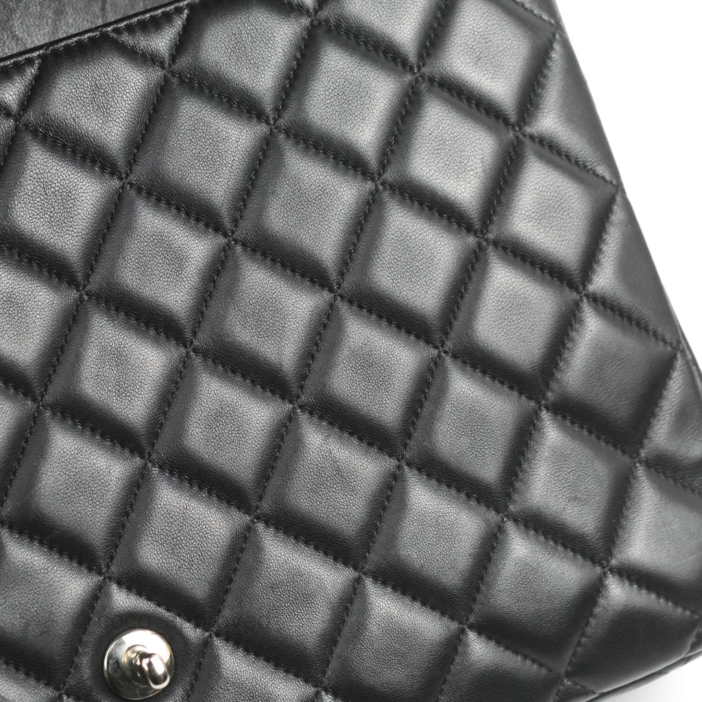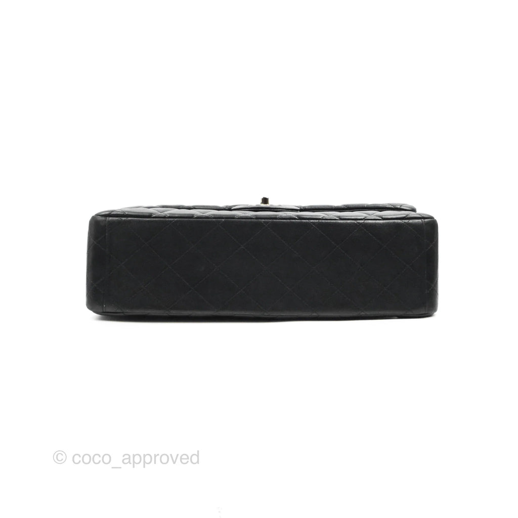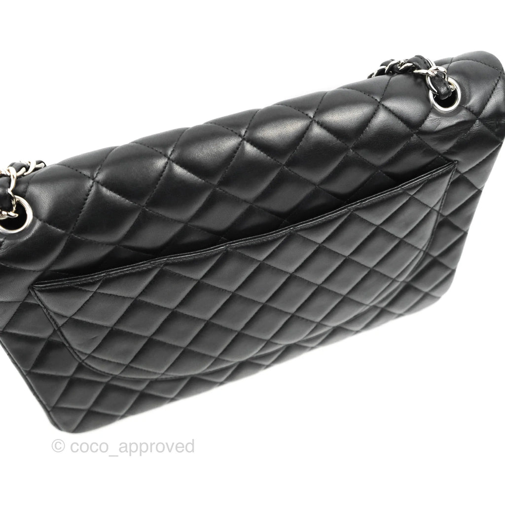 Chanel Single Flap Maxi Lambskin Black Silver Hardware