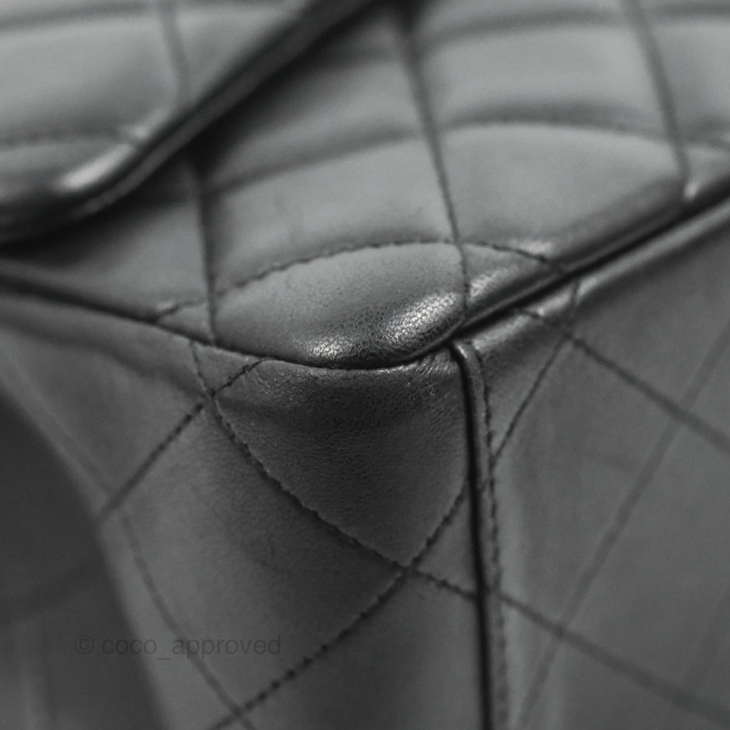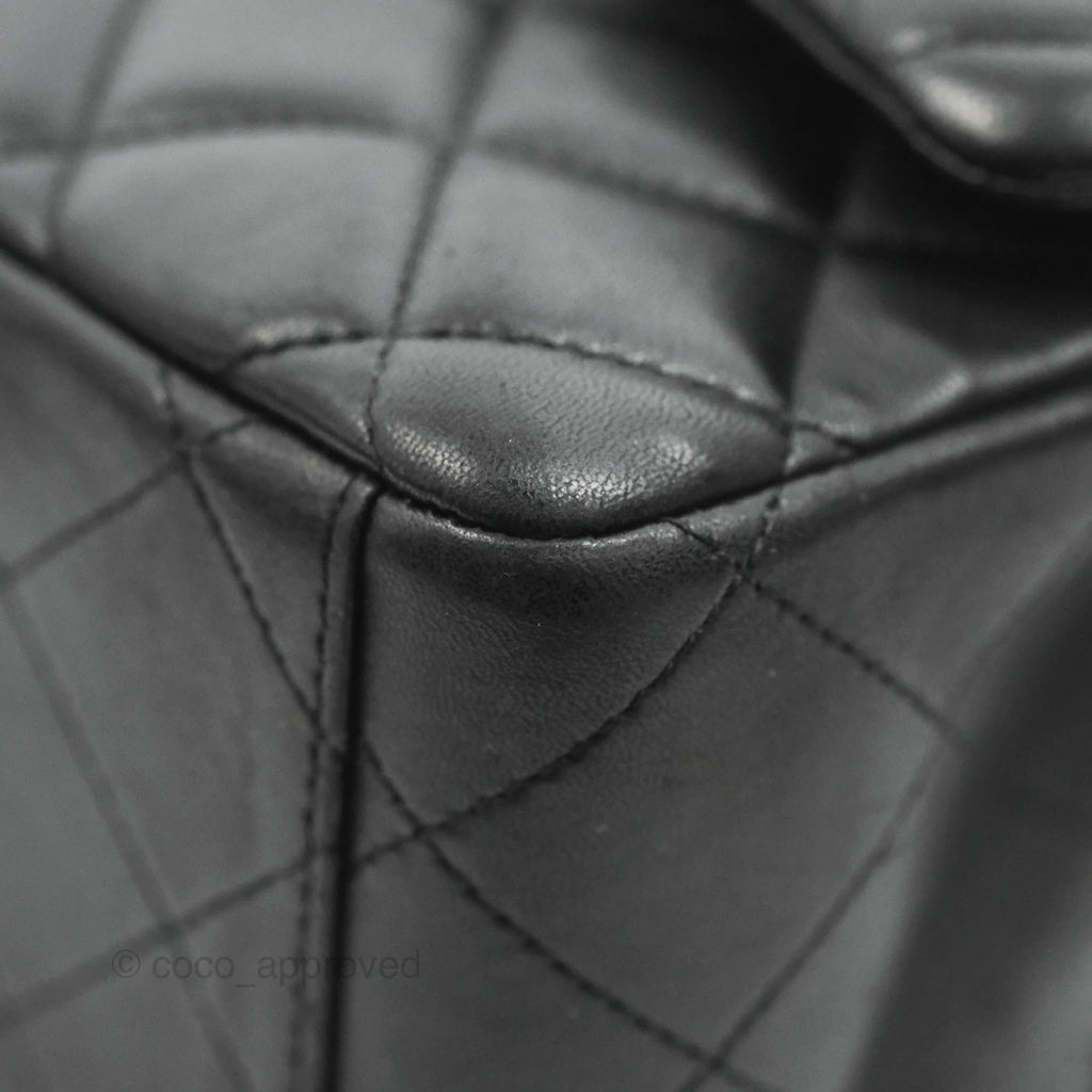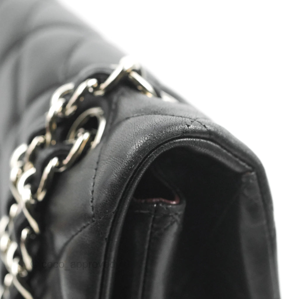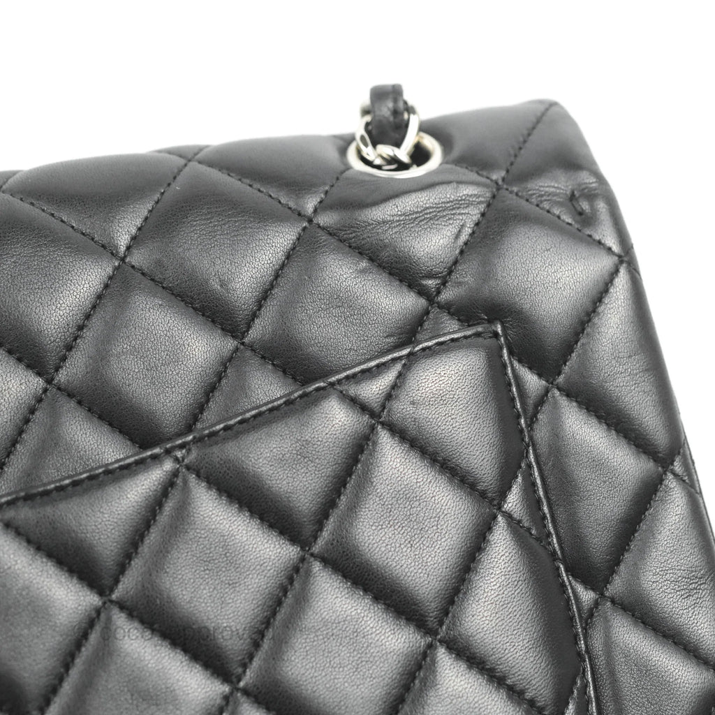 Chanel Single Flap Maxi Lambskin Black Silver Hardware