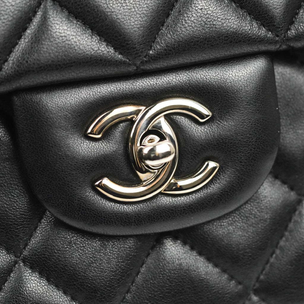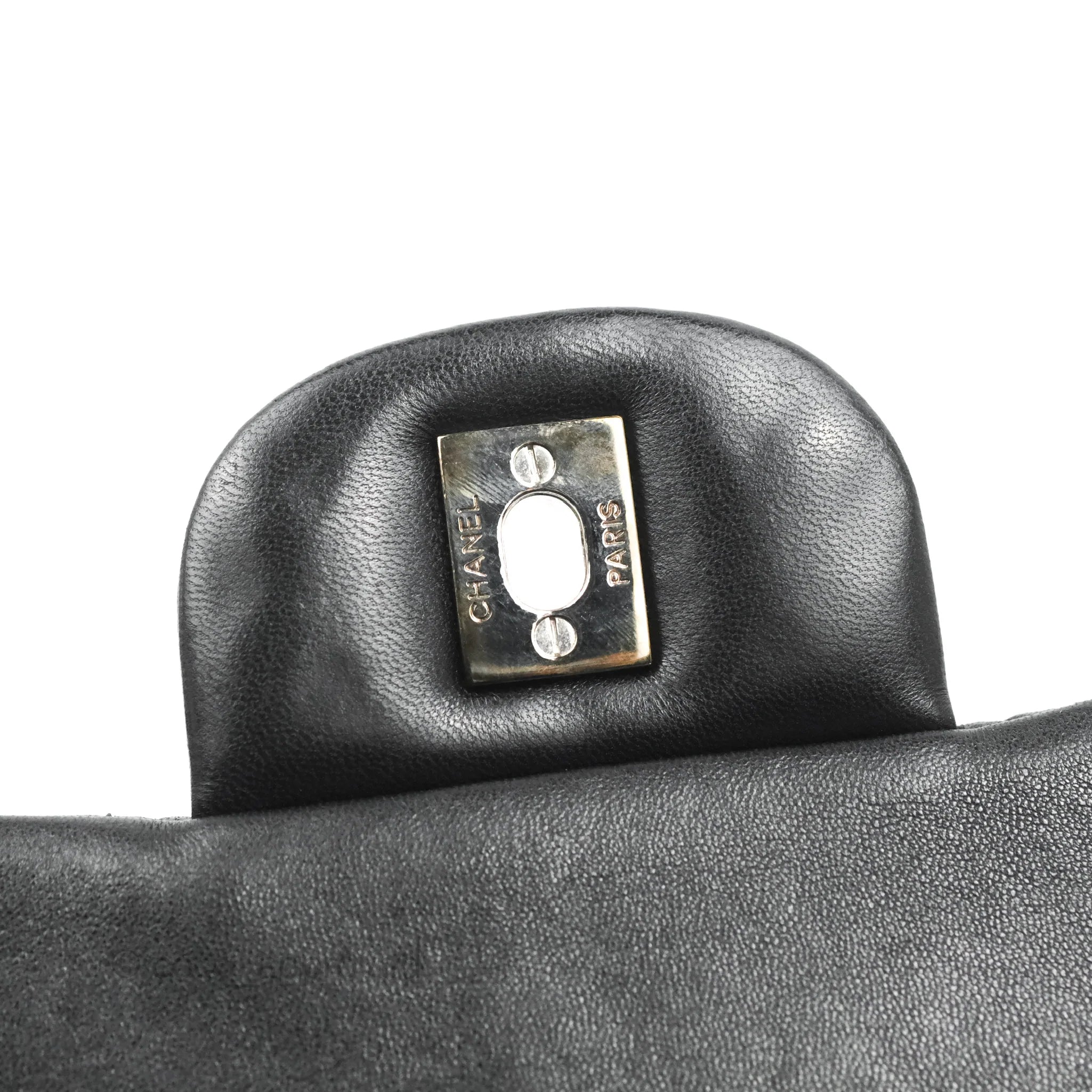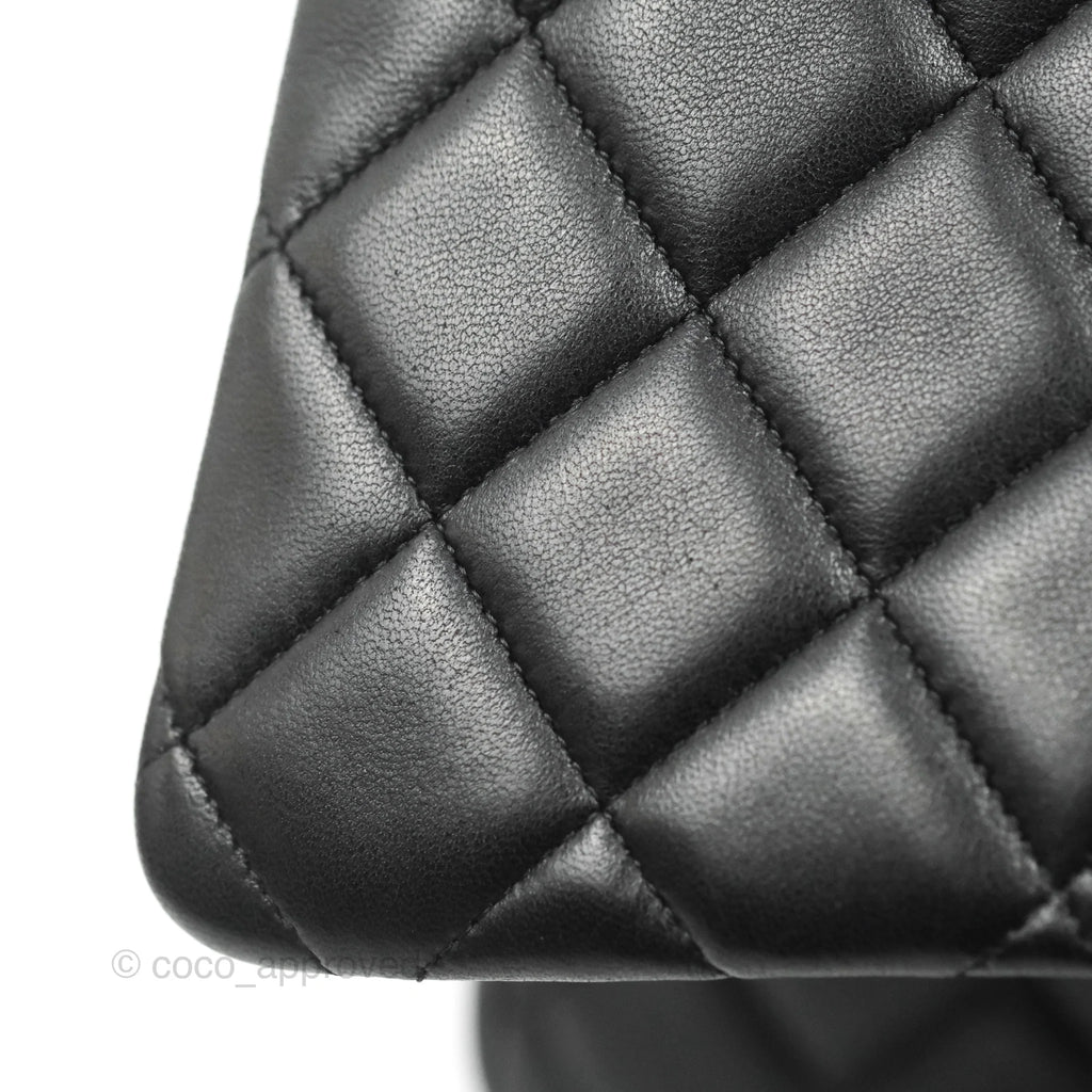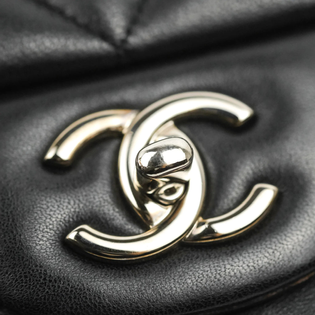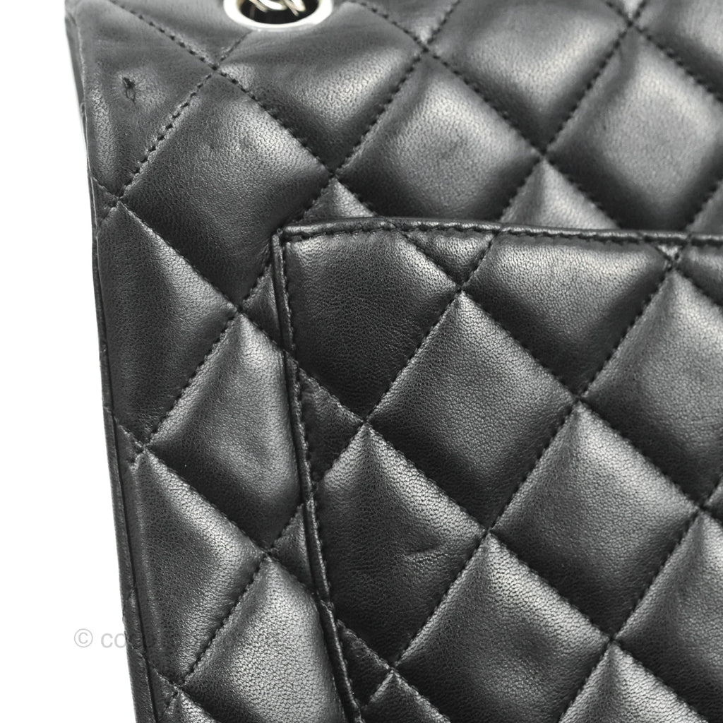 Chanel Single Flap Maxi Lambskin Black Silver Hardware