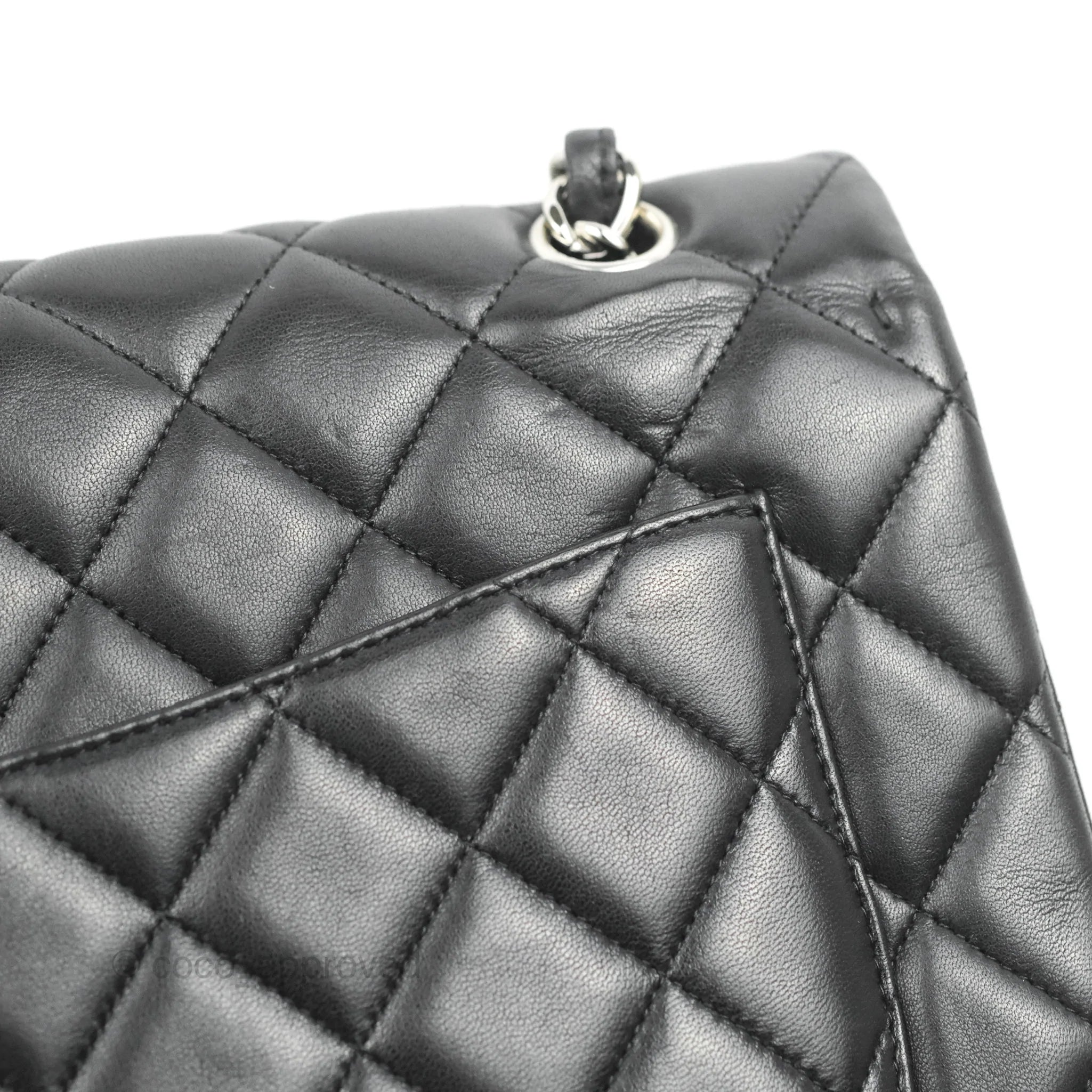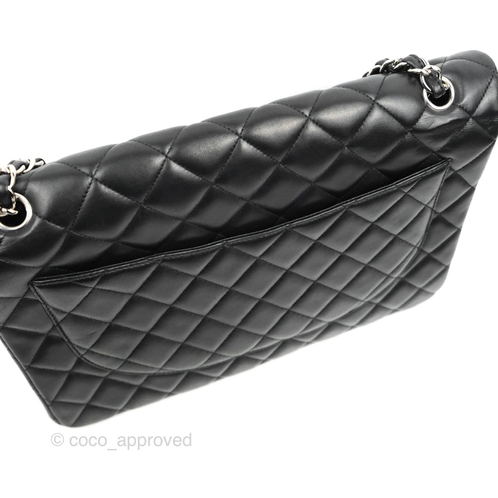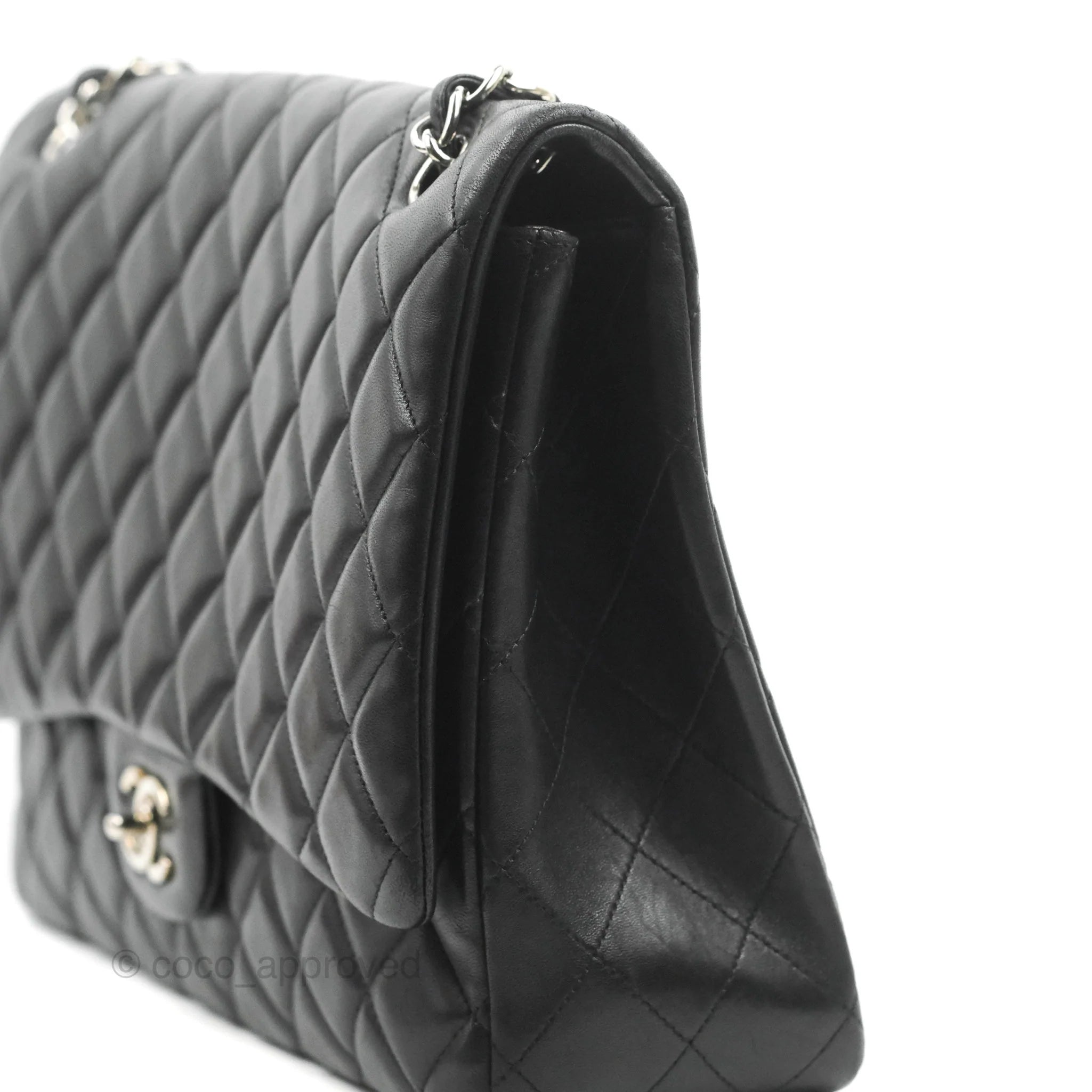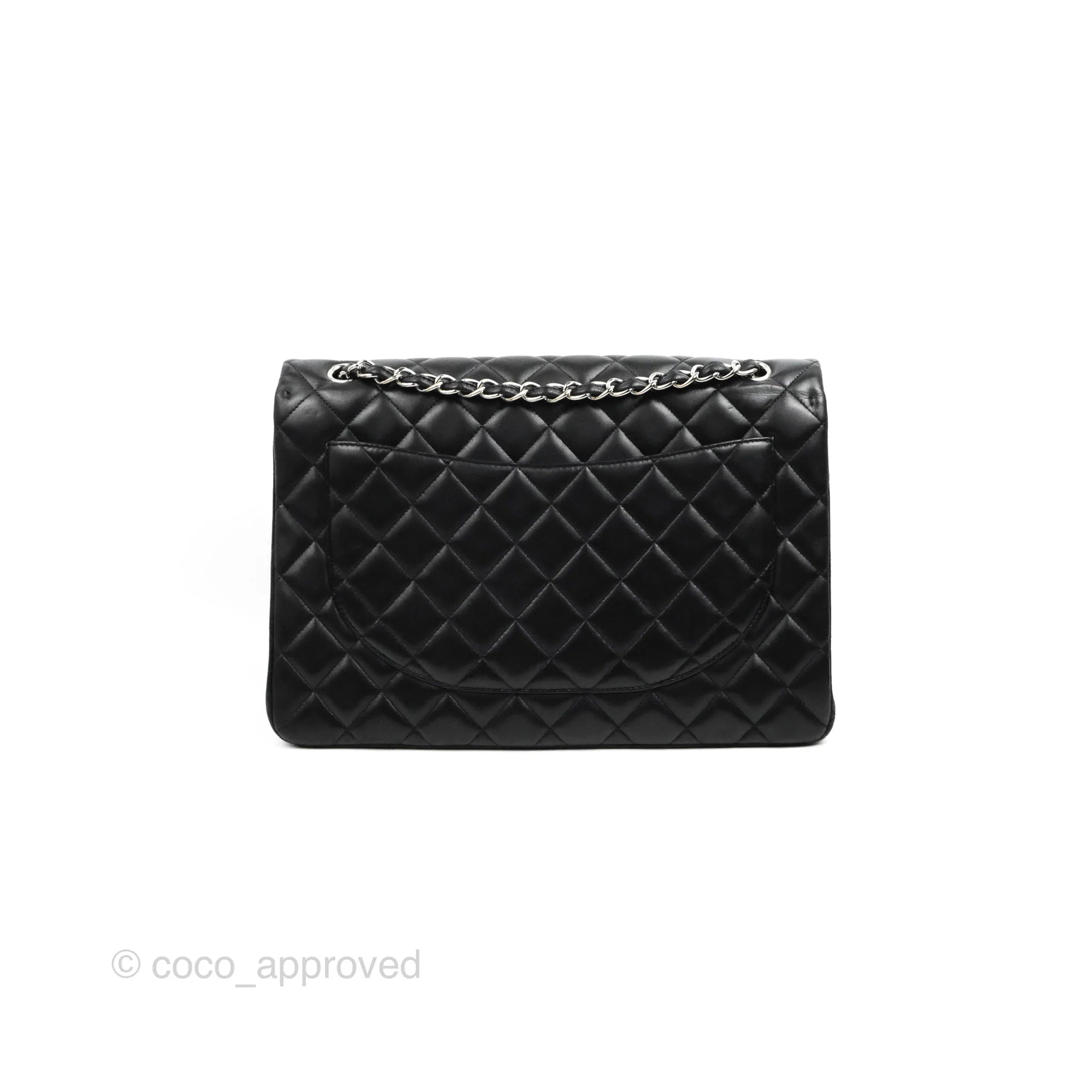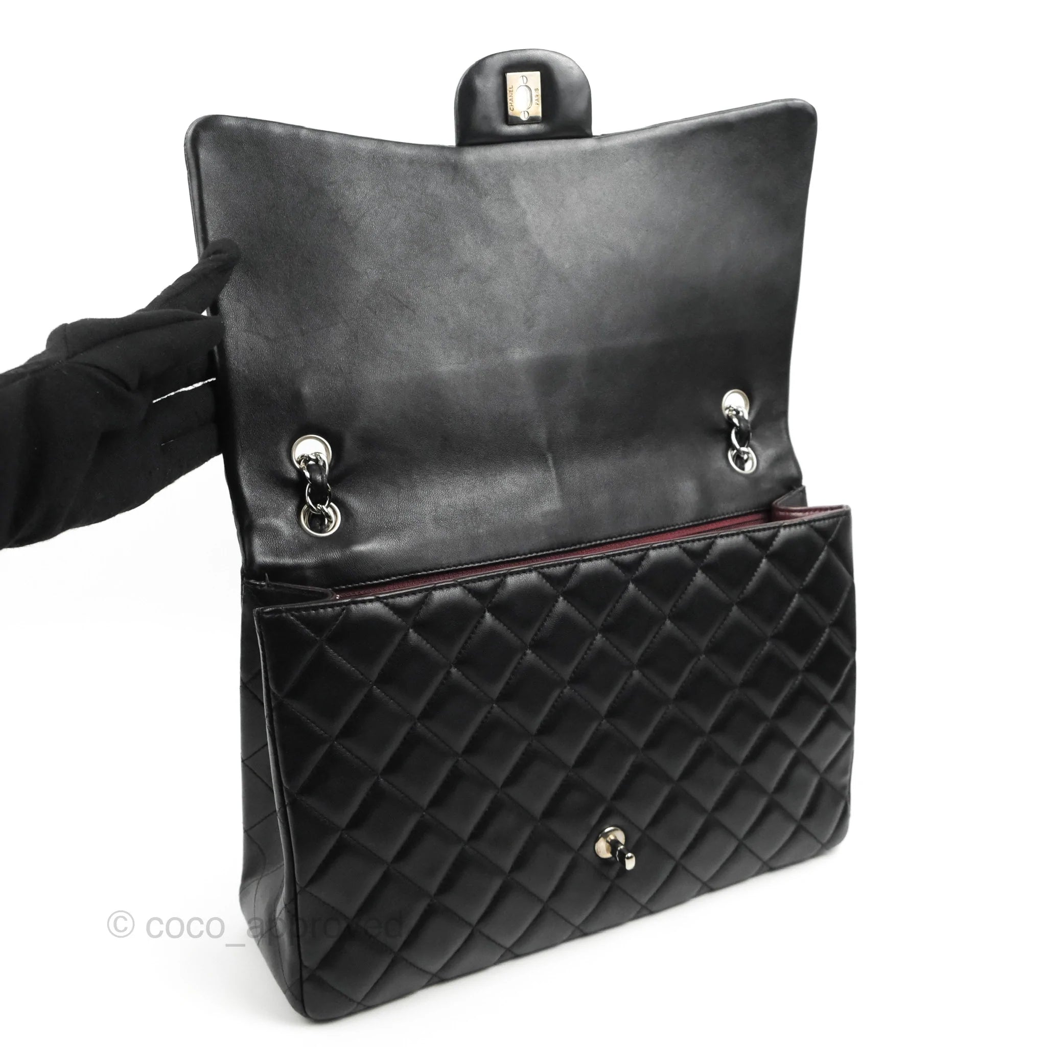 Chanel Single Flap Maxi Lambskin Black Silver Hardware is now sold. Please subscribe for any updates if similar item becomes available.
