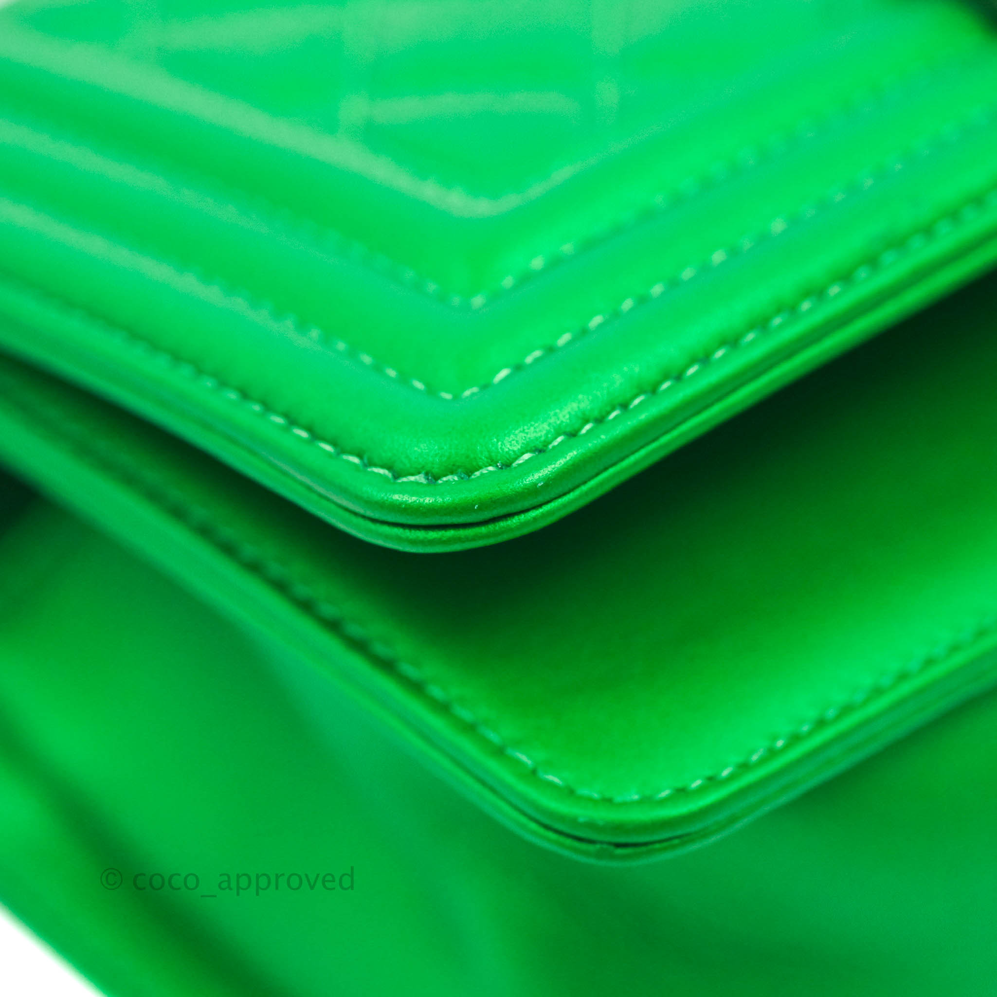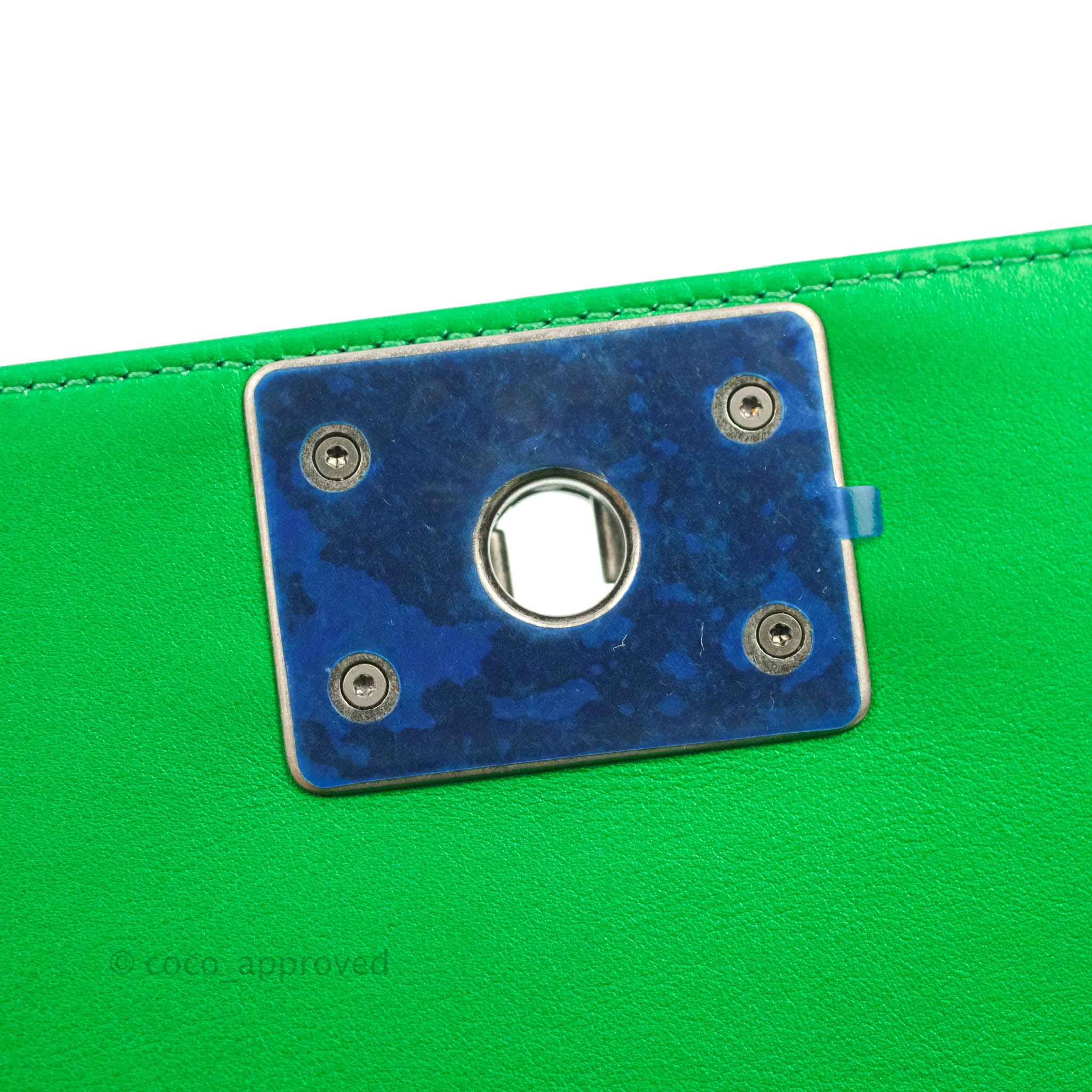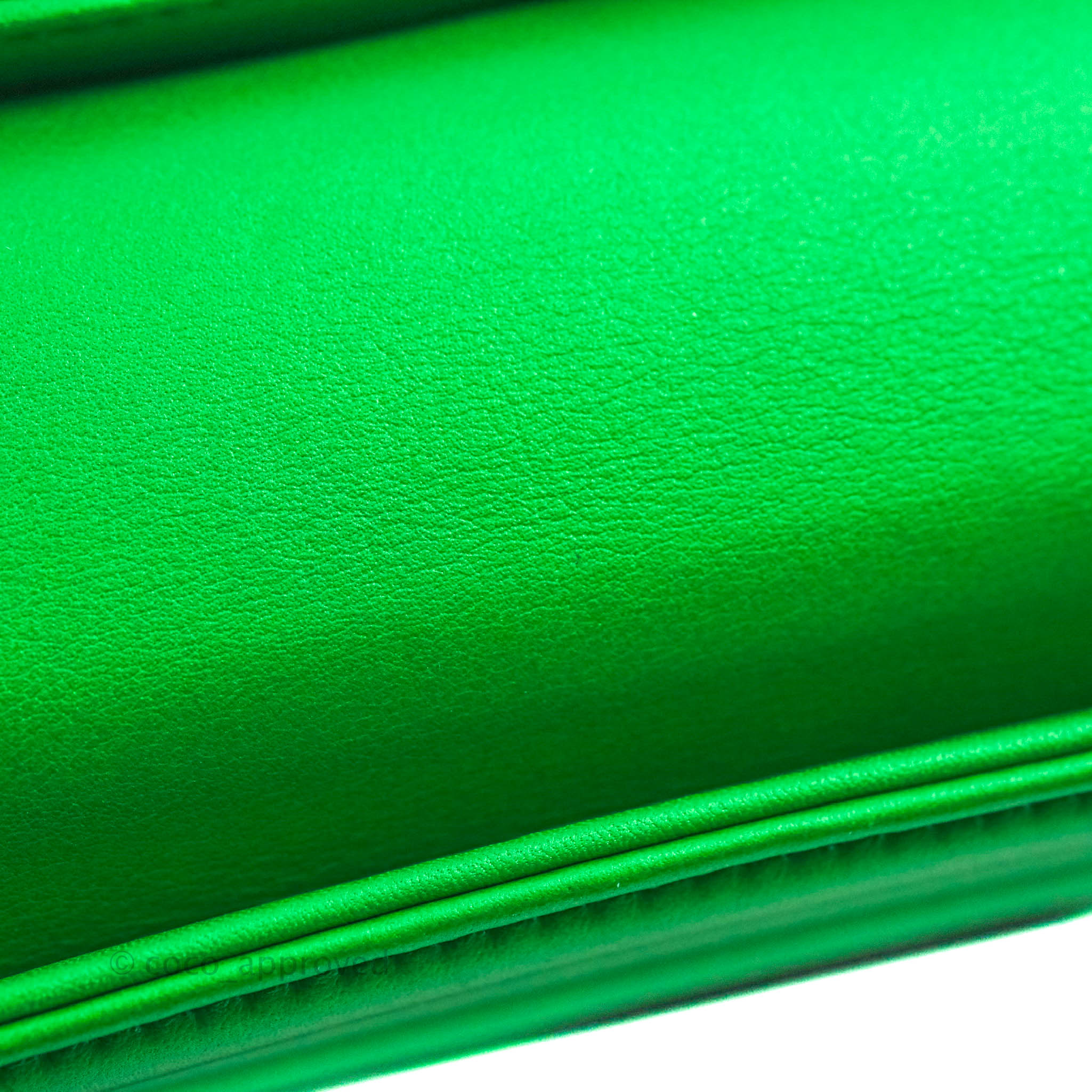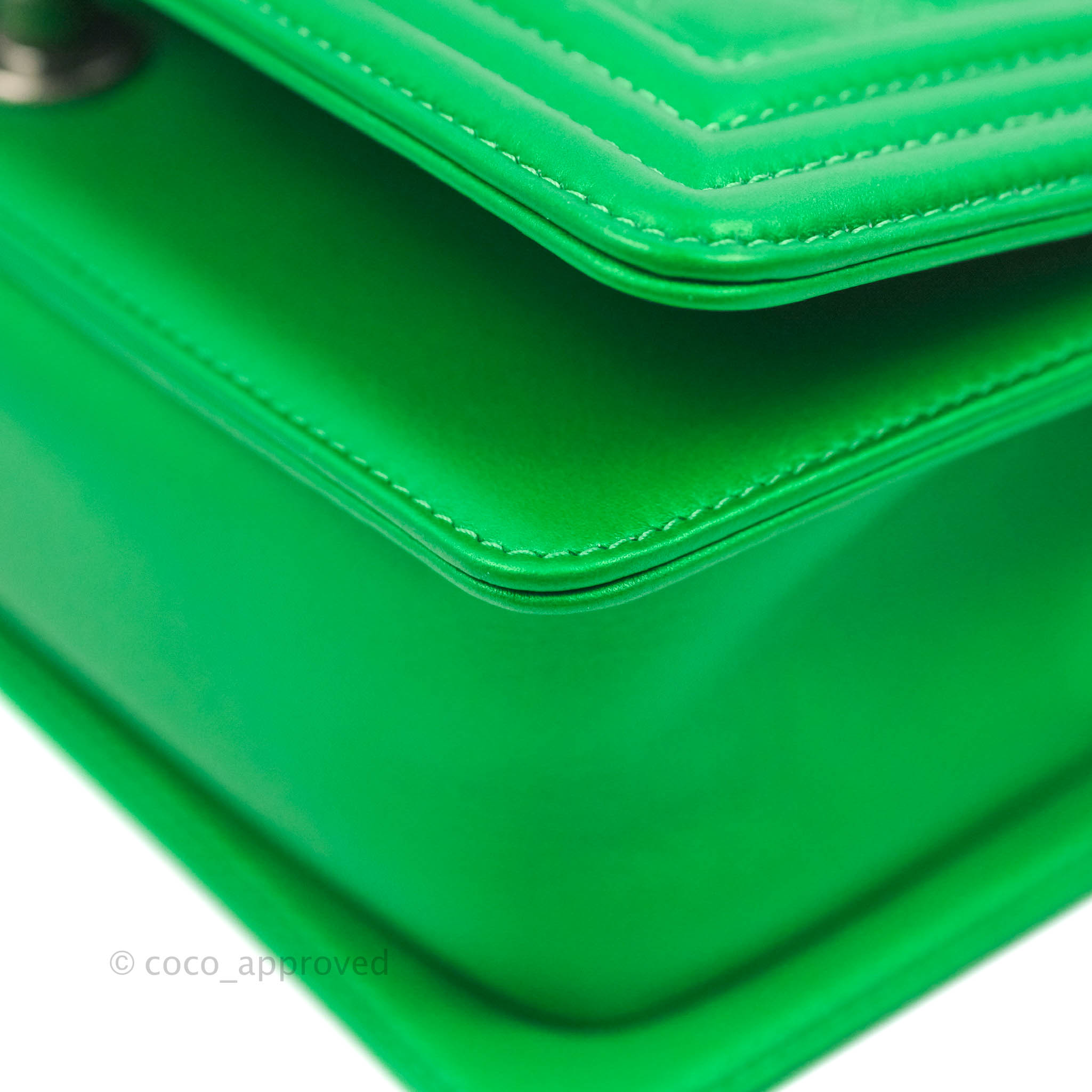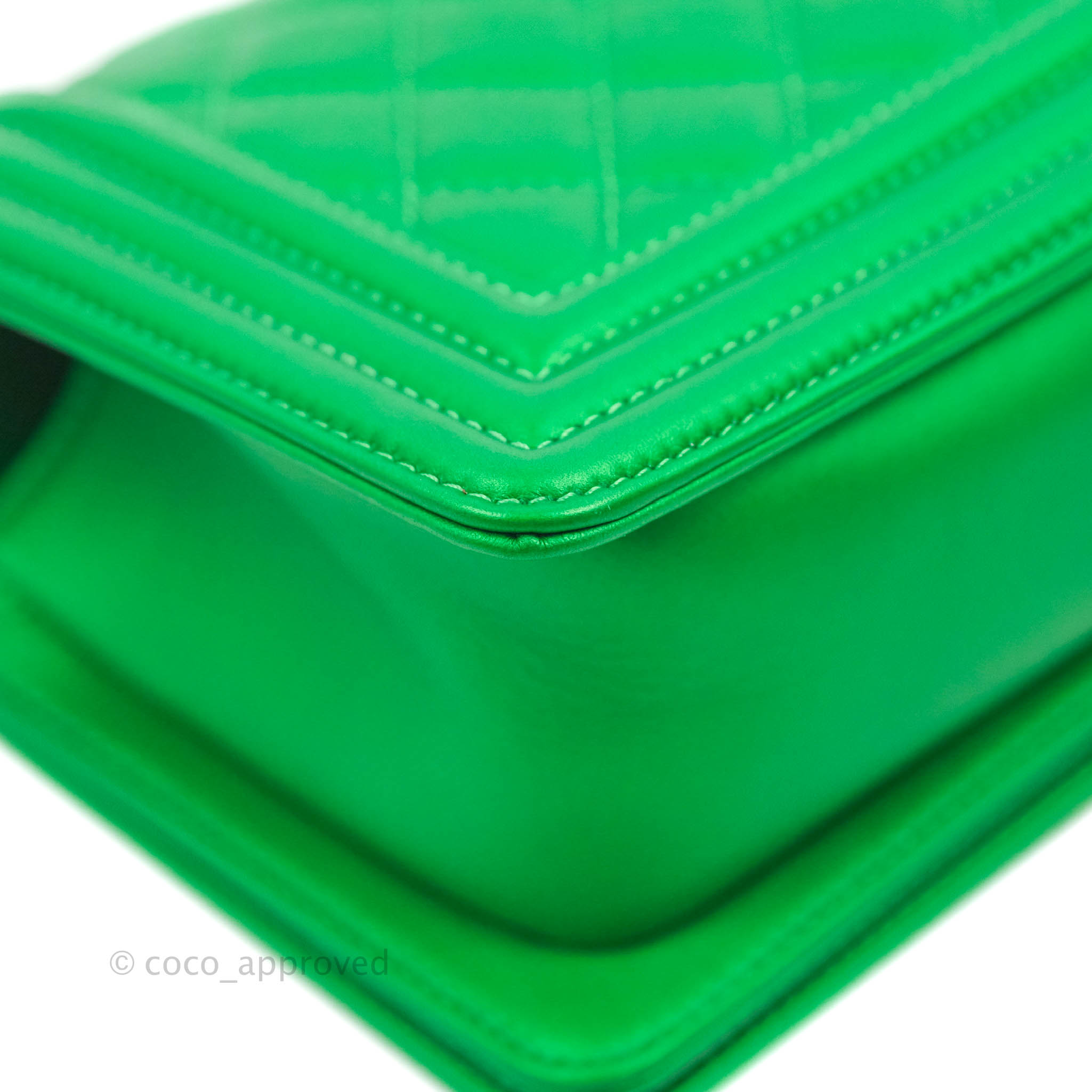Chanel Small Boy Green Calfskin Ruthenium Hardware is now sold. Please subscribe for any updates if similar item becomes available.