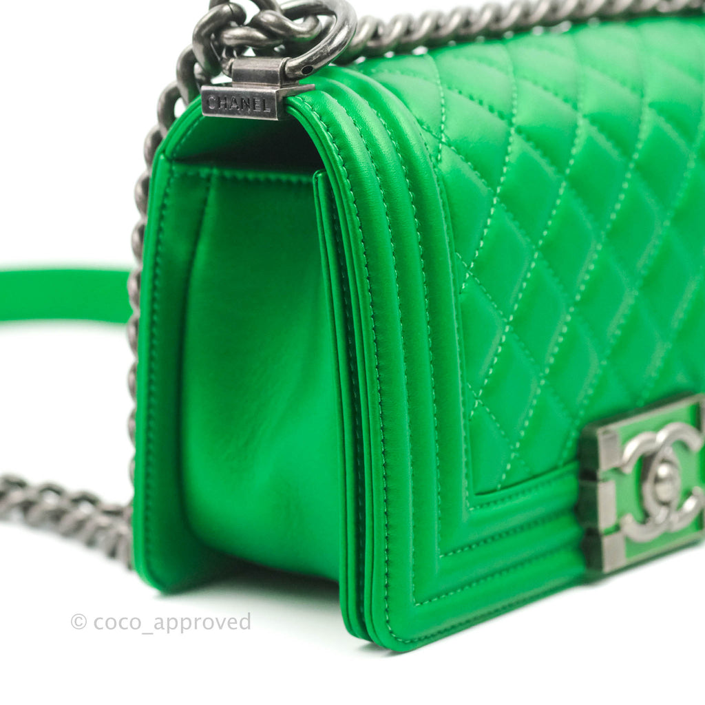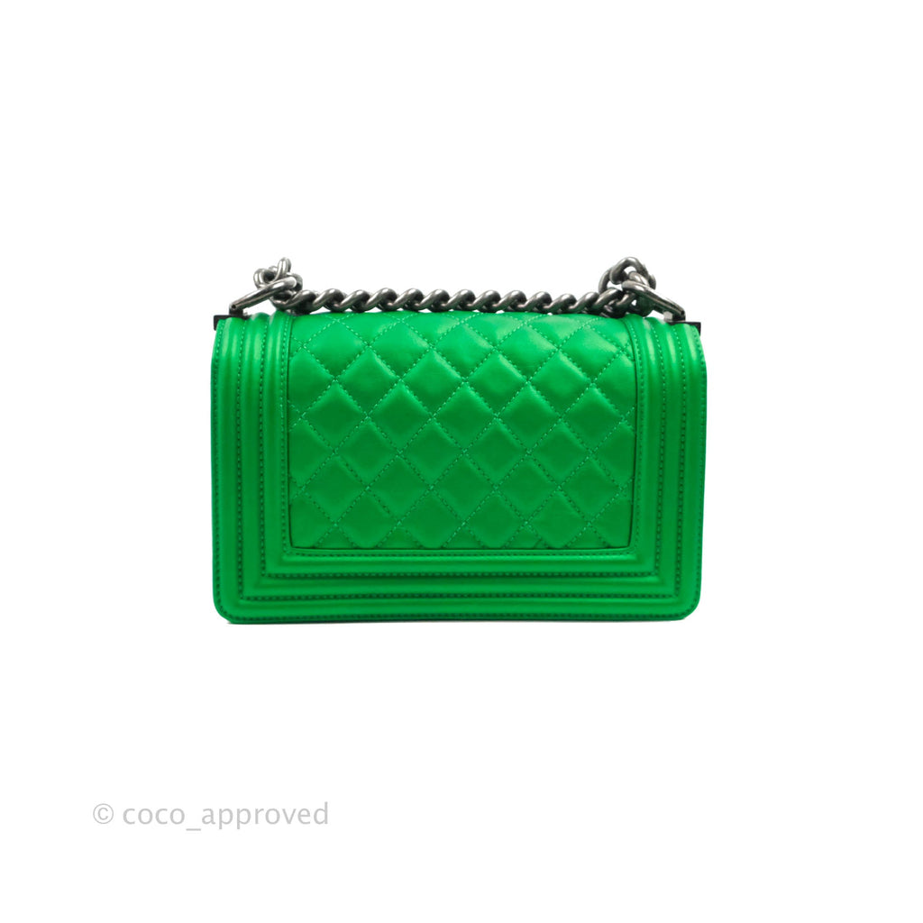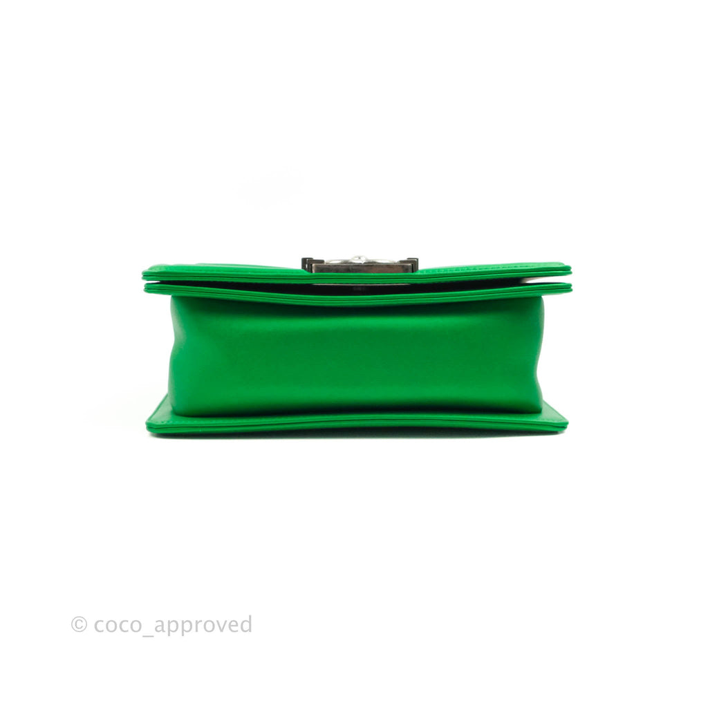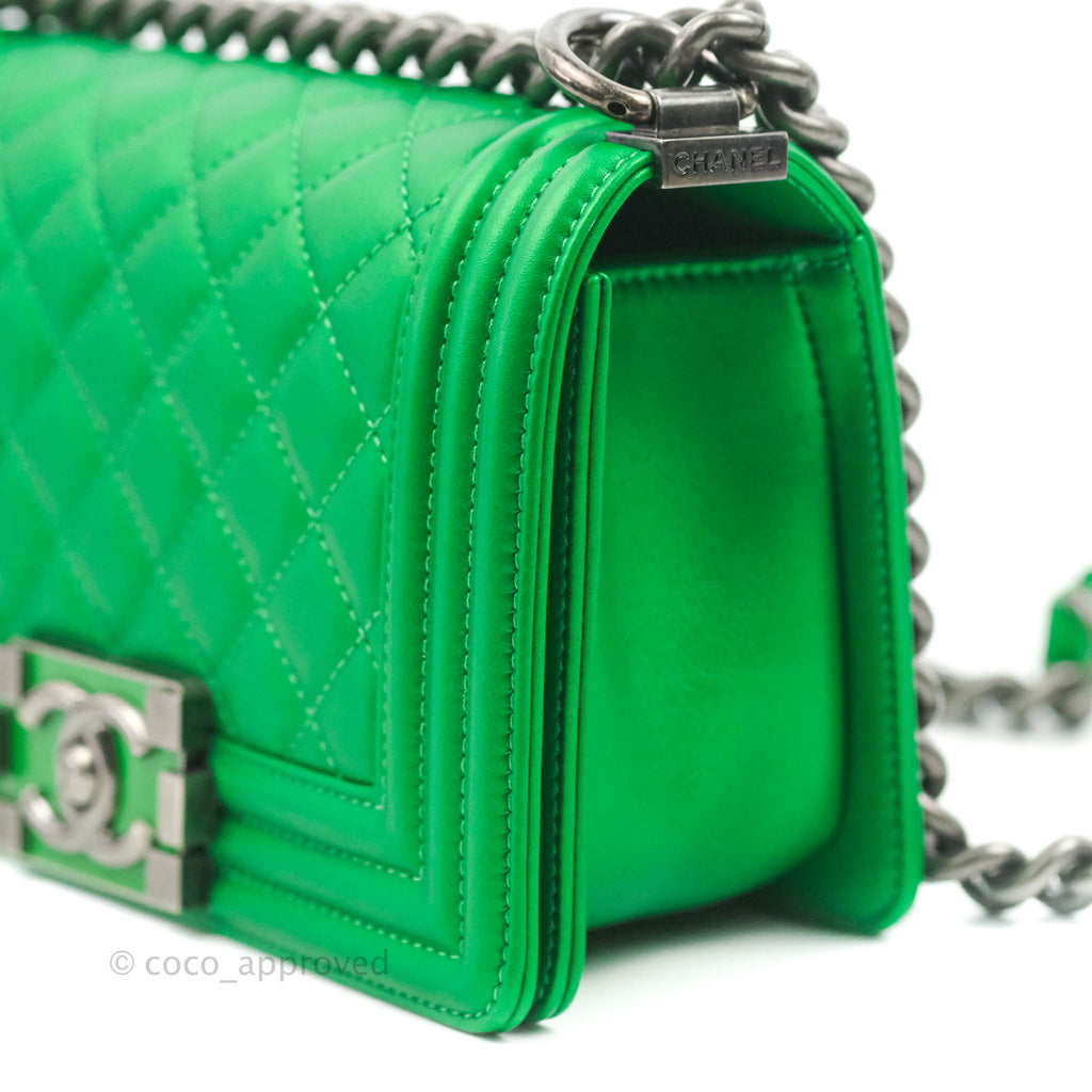 Chanel Small Boy Green Calfskin Ruthenium Hardware