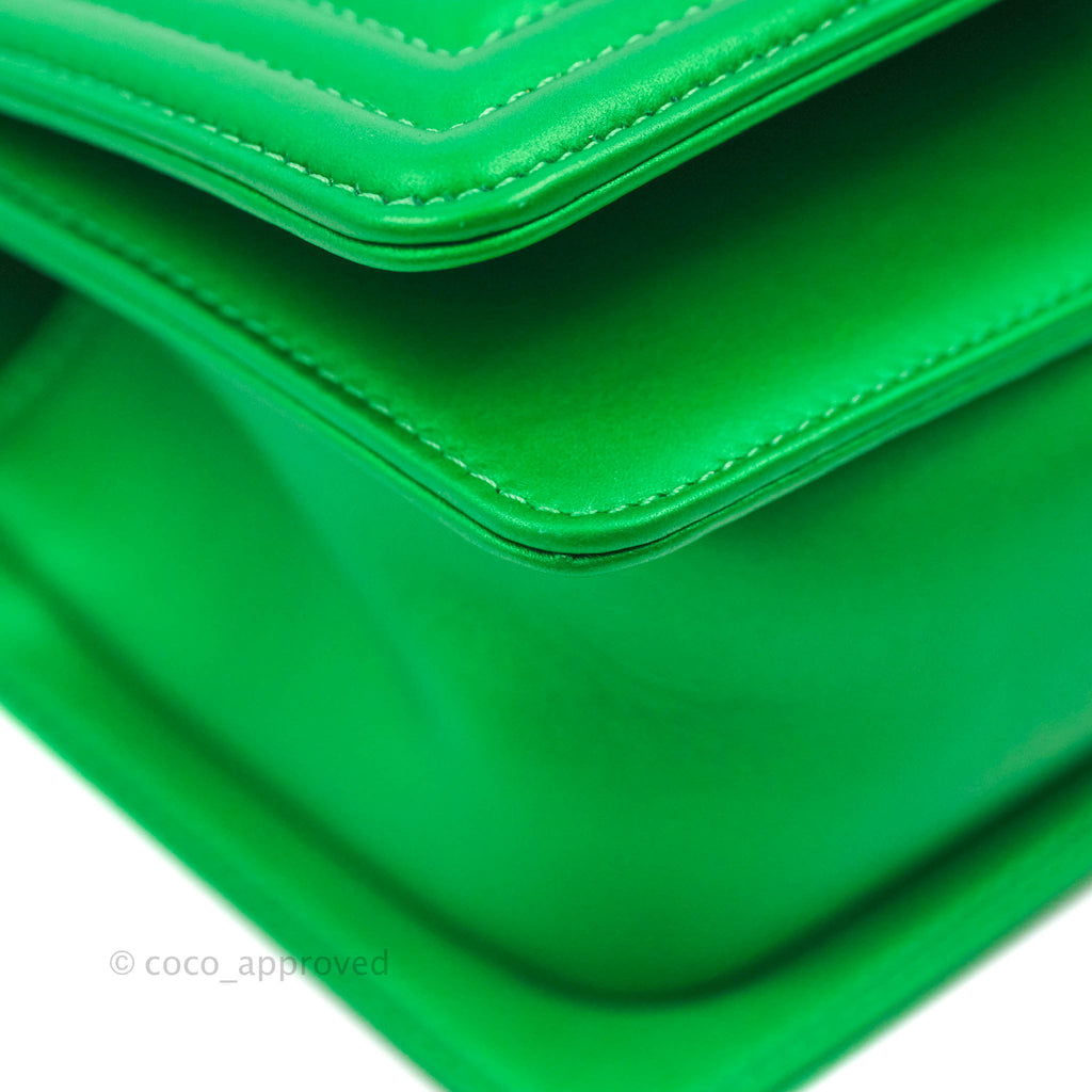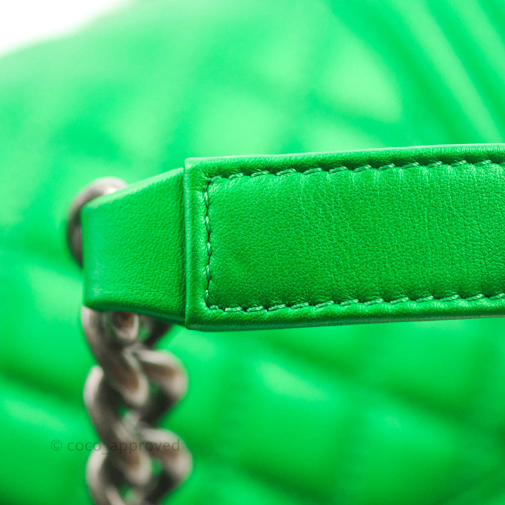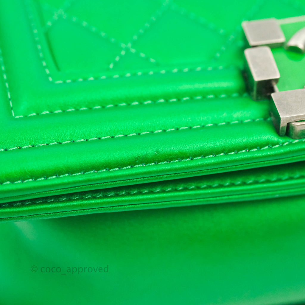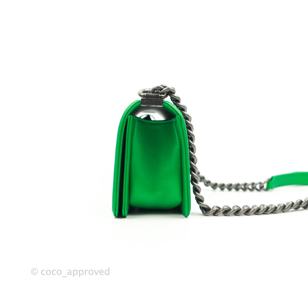 Chanel Small Boy Green Calfskin Ruthenium Hardware