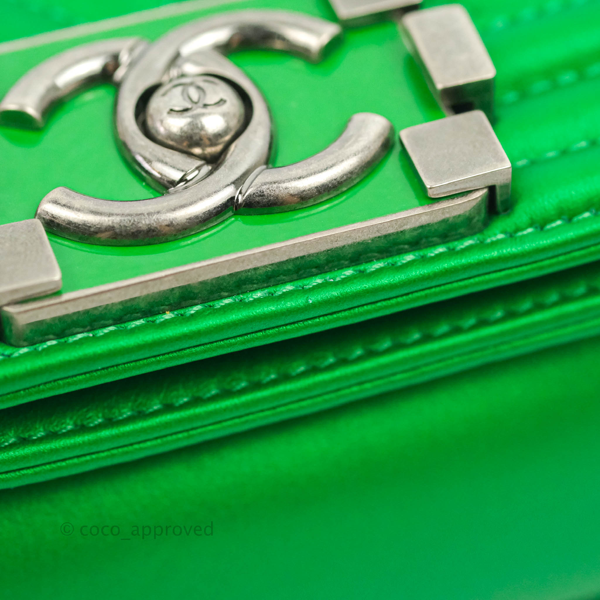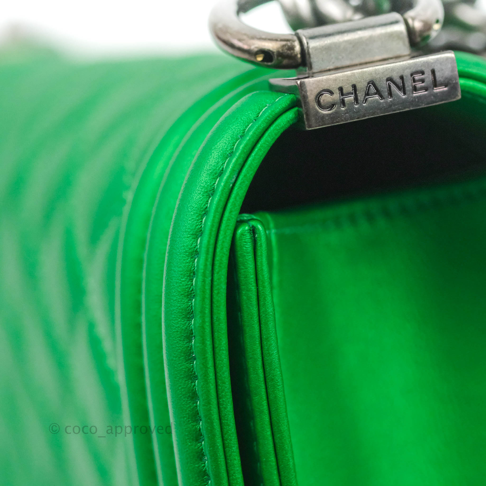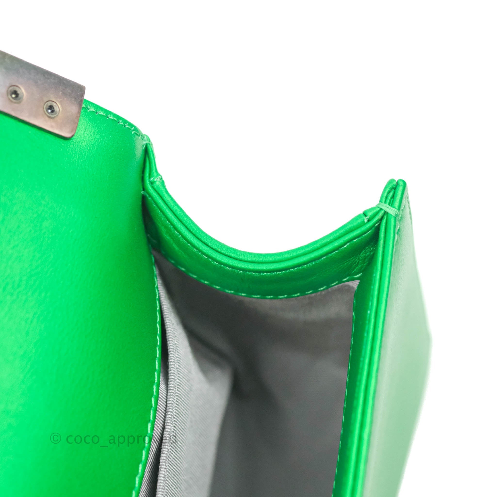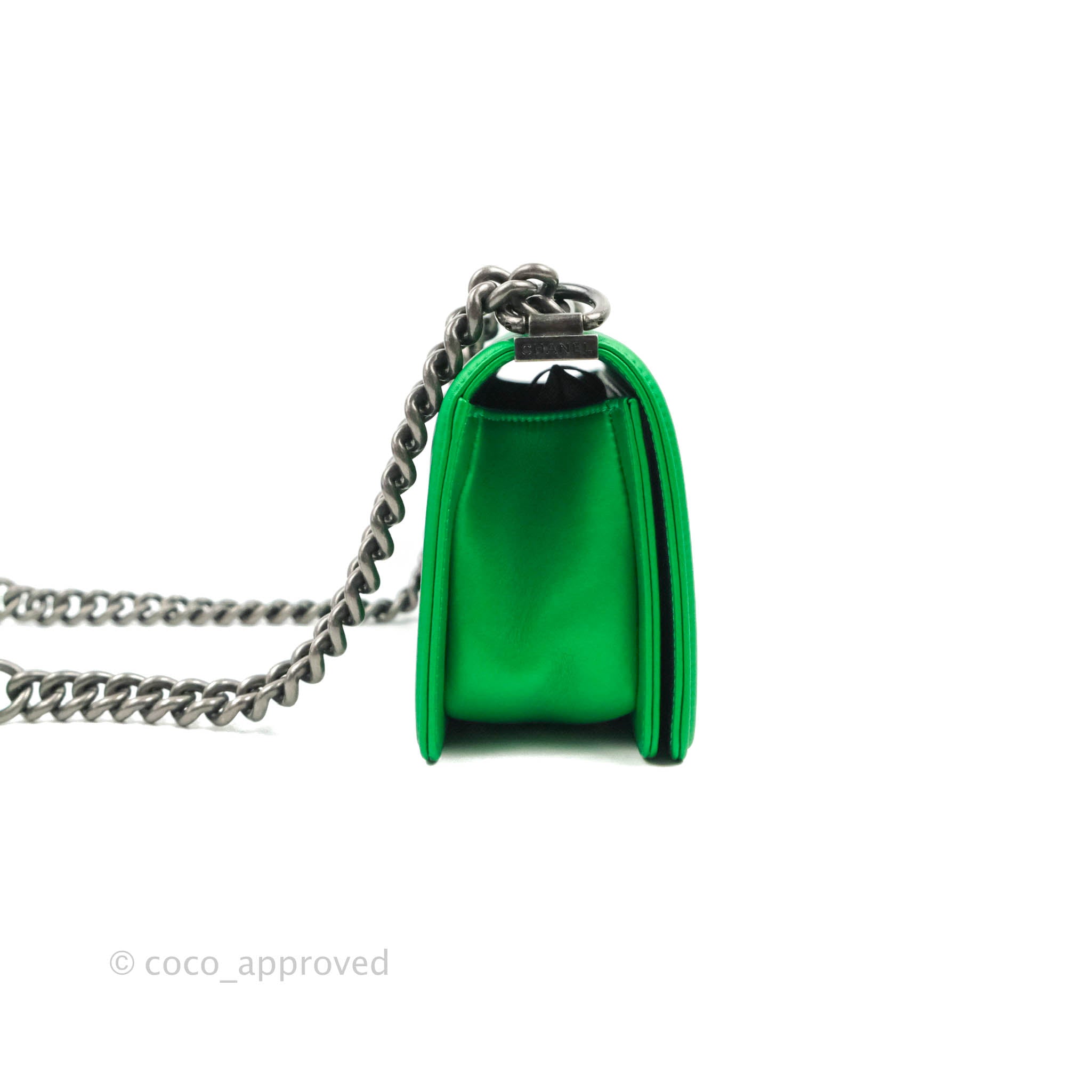 Chanel Small Boy Green Calfskin Ruthenium Hardware