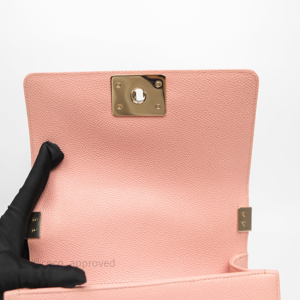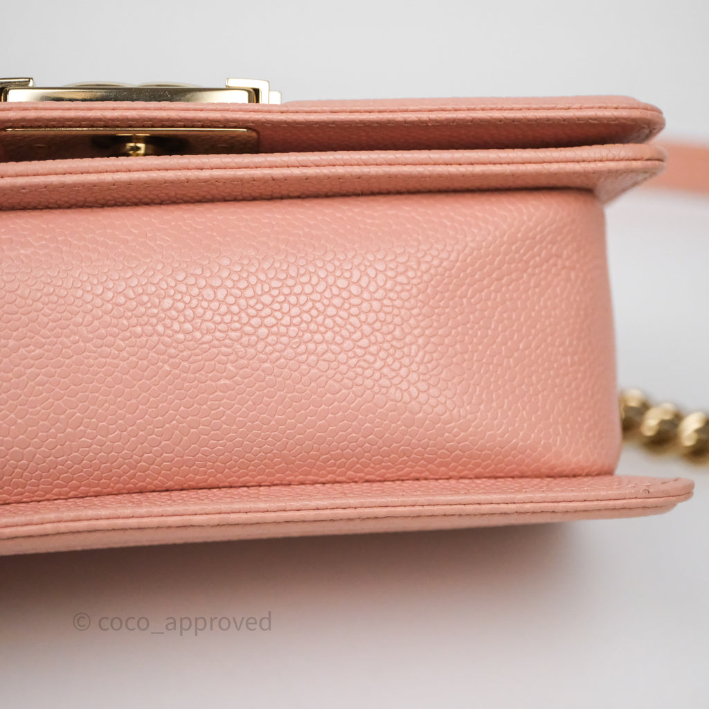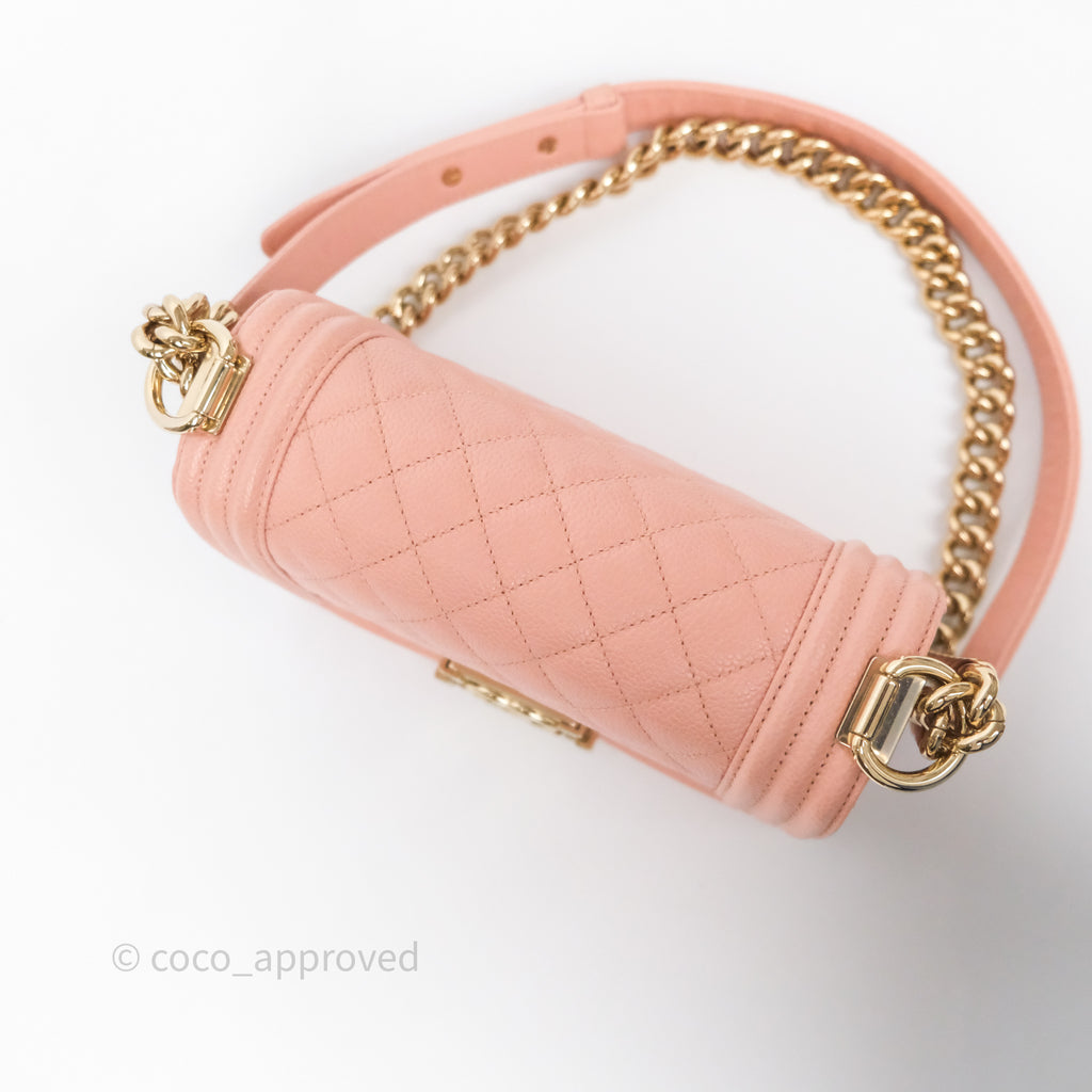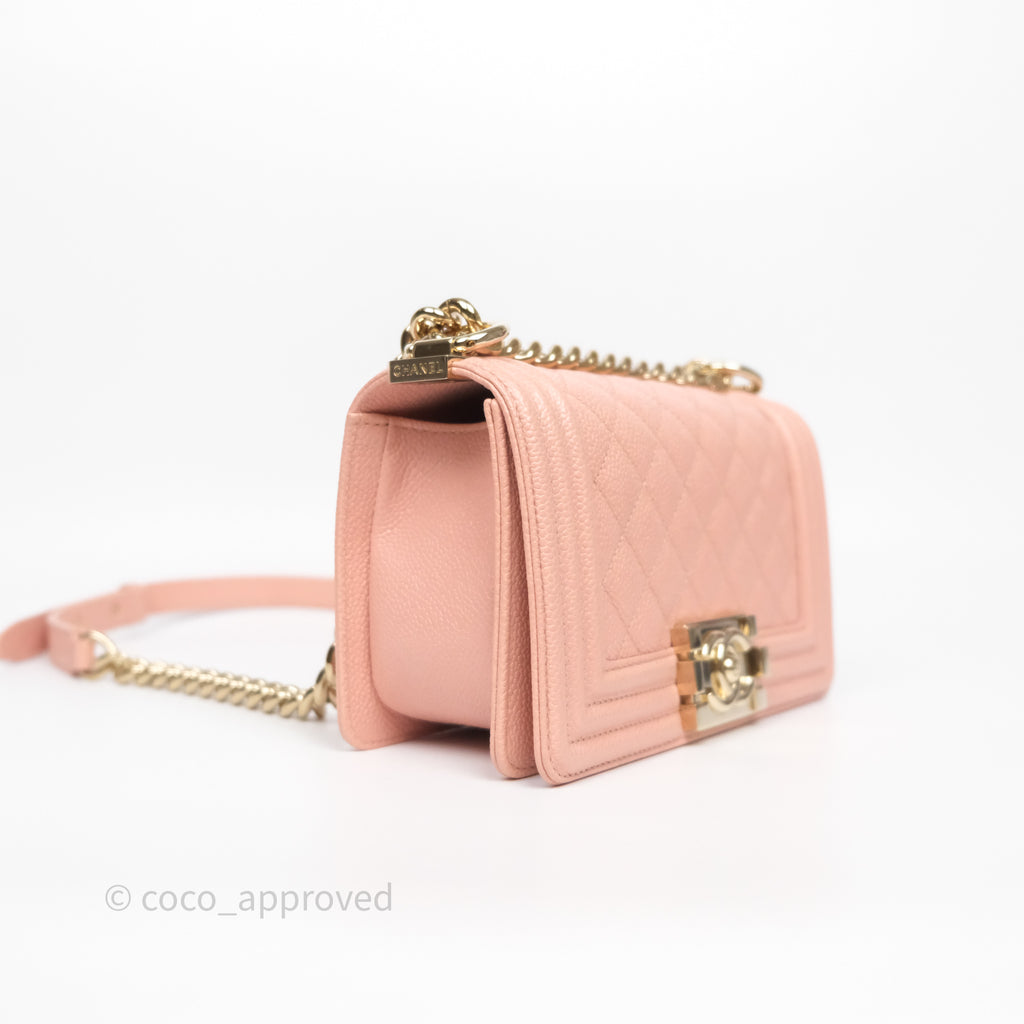 Chanel Small Boy Quilted Pink Caviar Gold Hardware