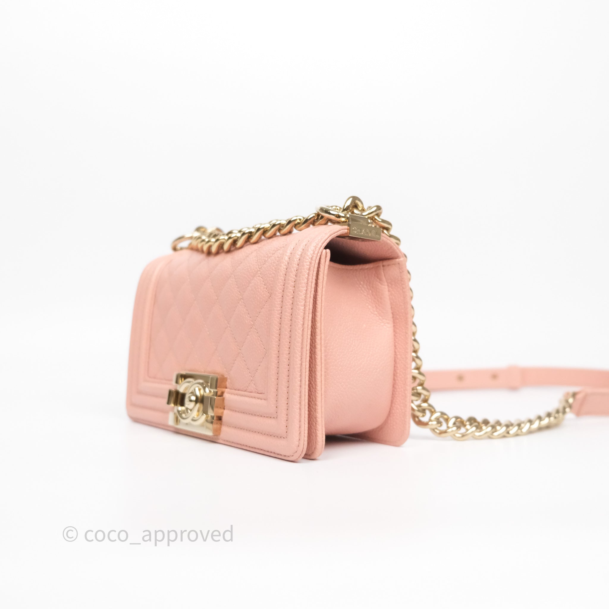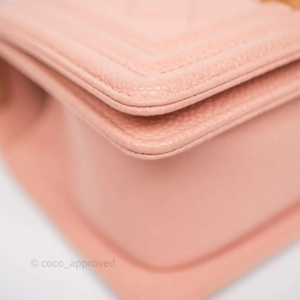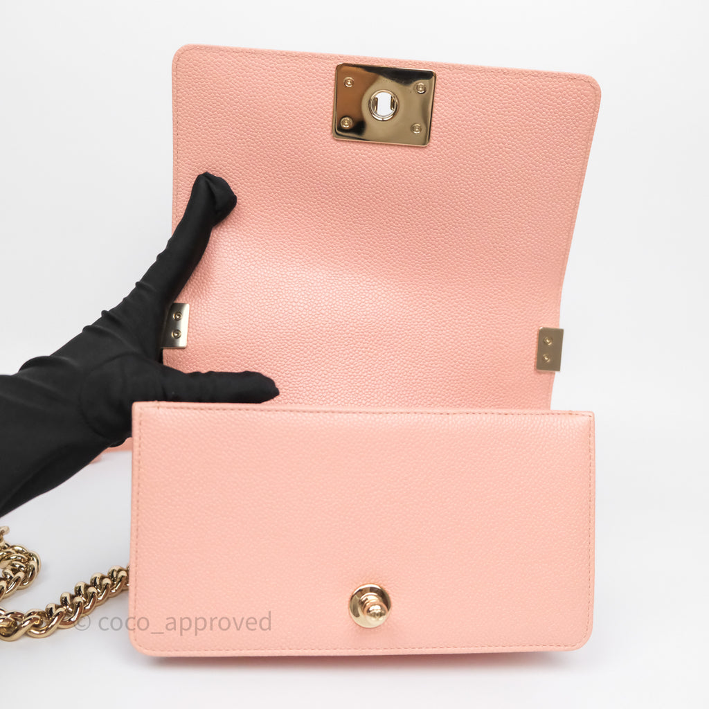 Chanel Small Boy Quilted Pink Caviar Gold Hardware