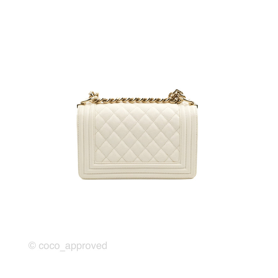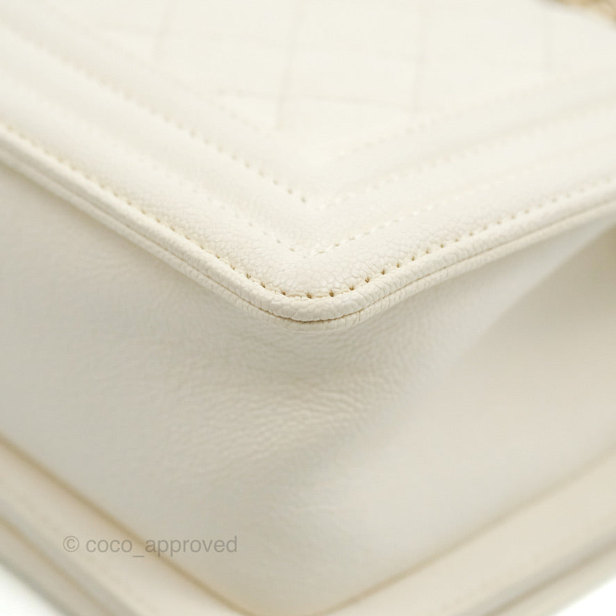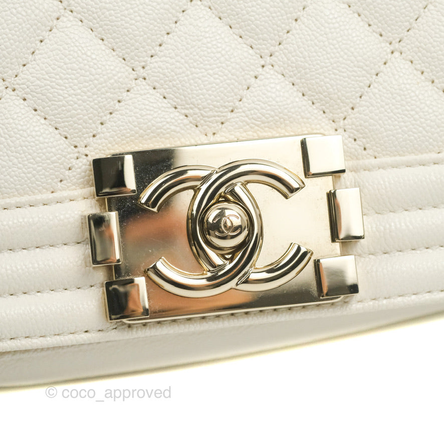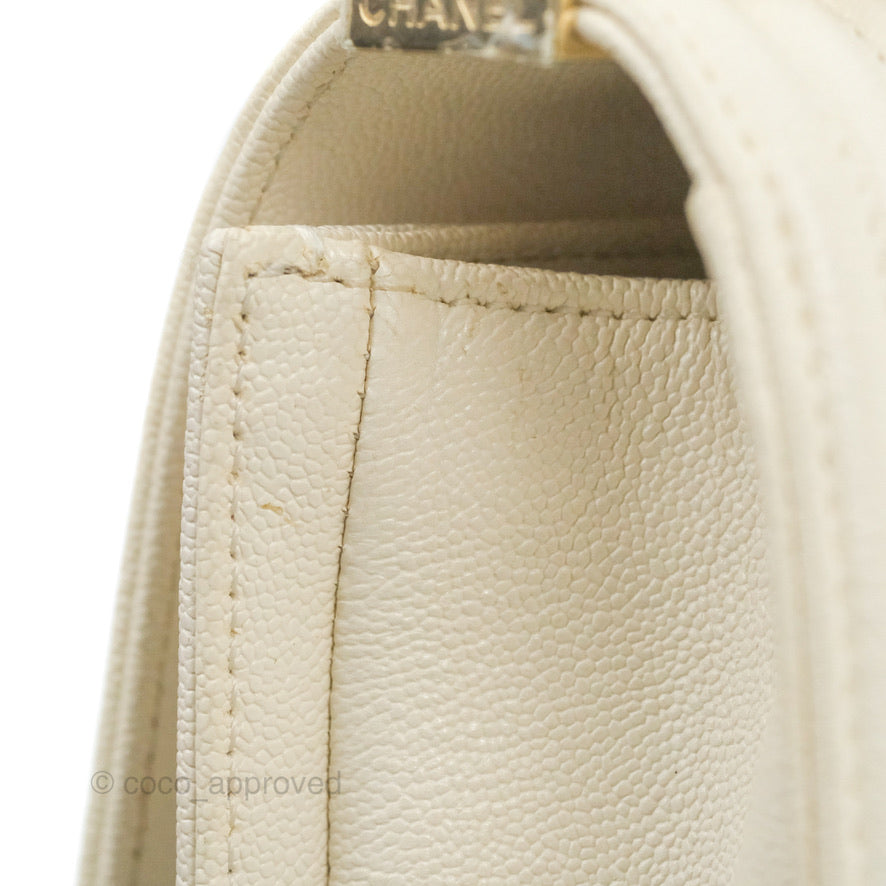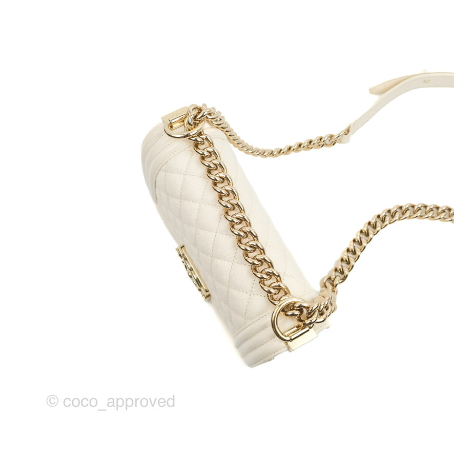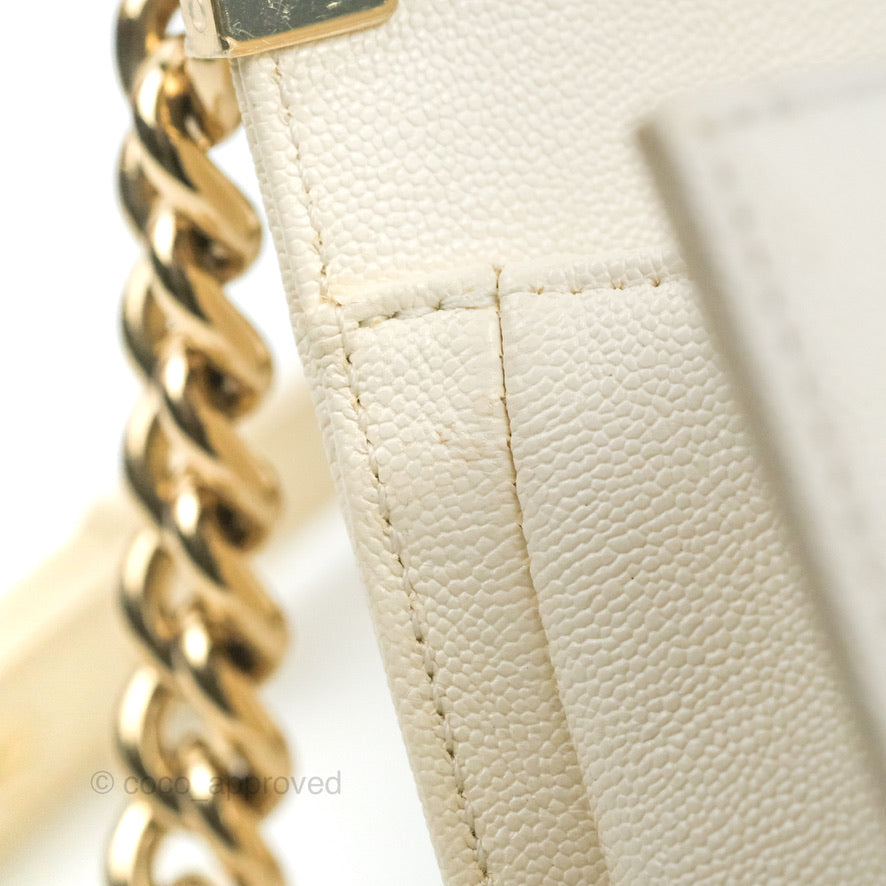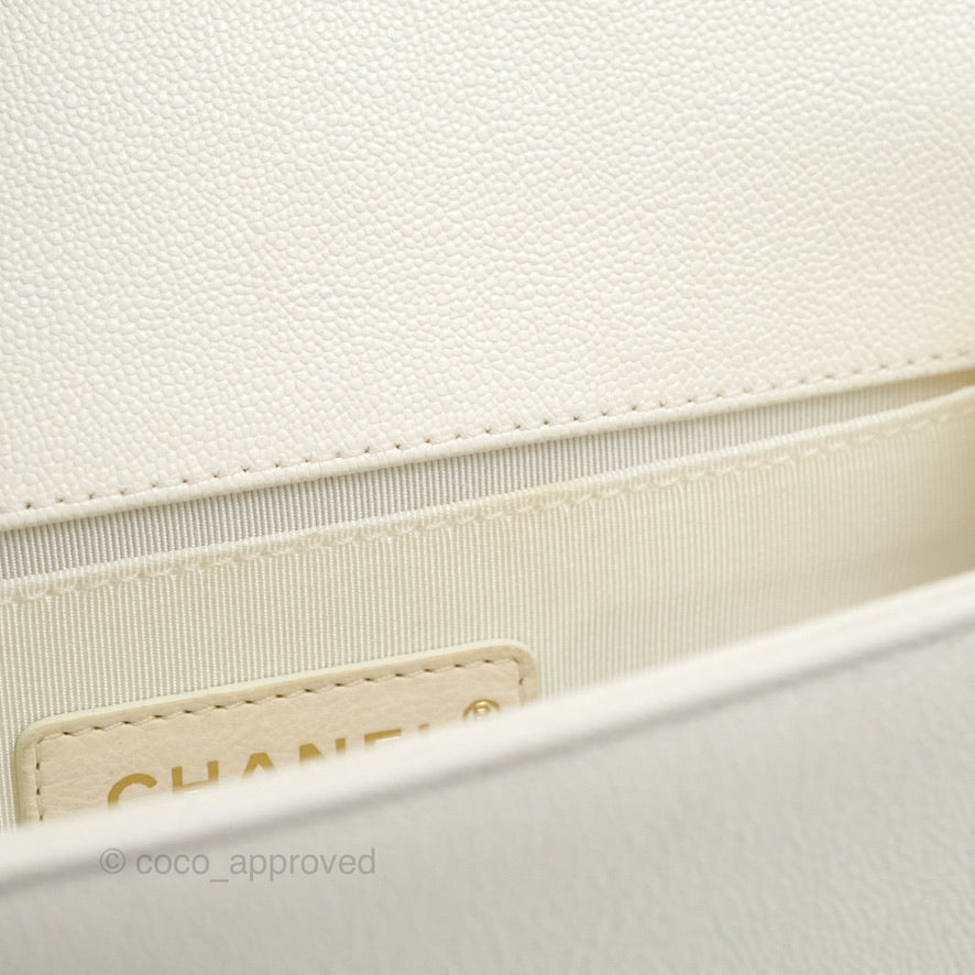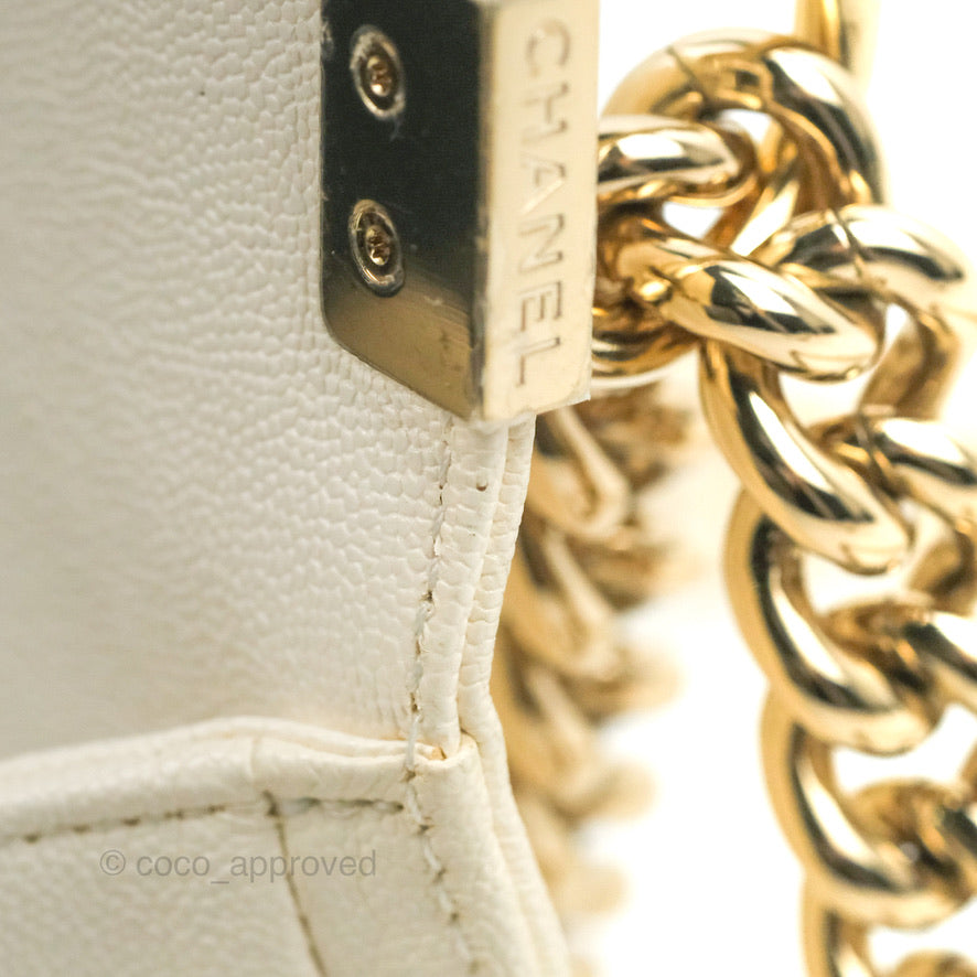 Chanel Small Boy White Caviar Gold Hardware