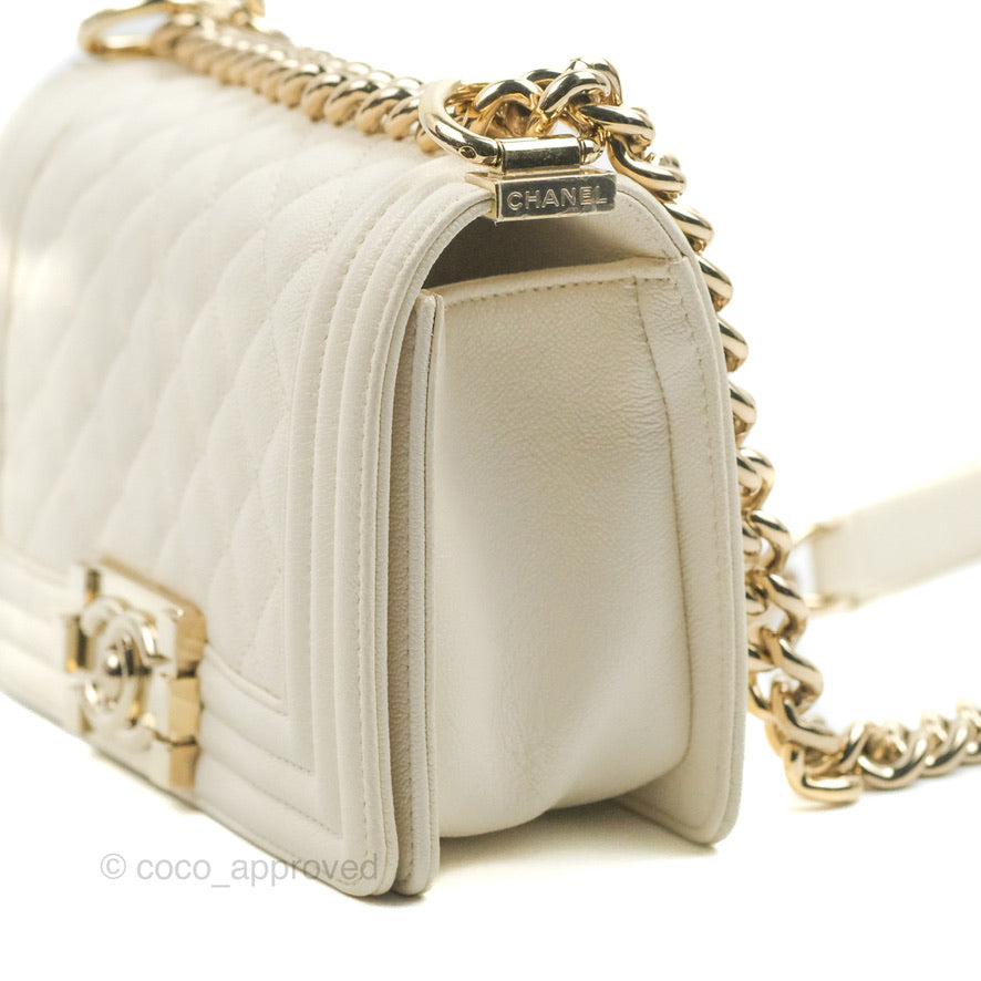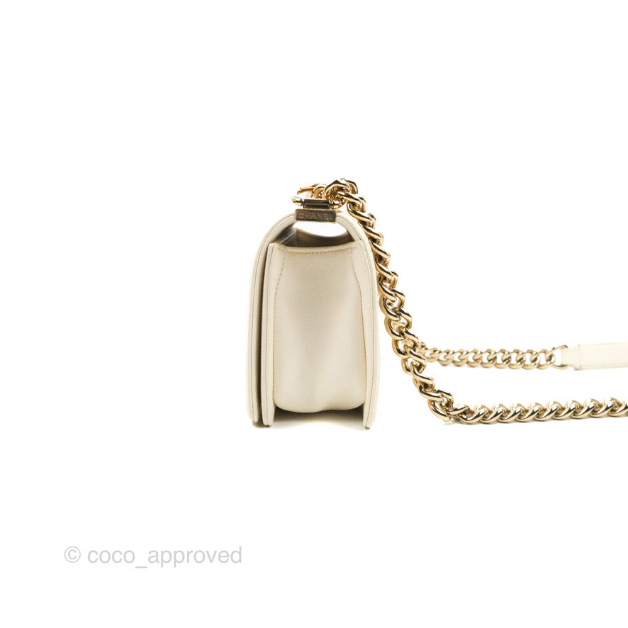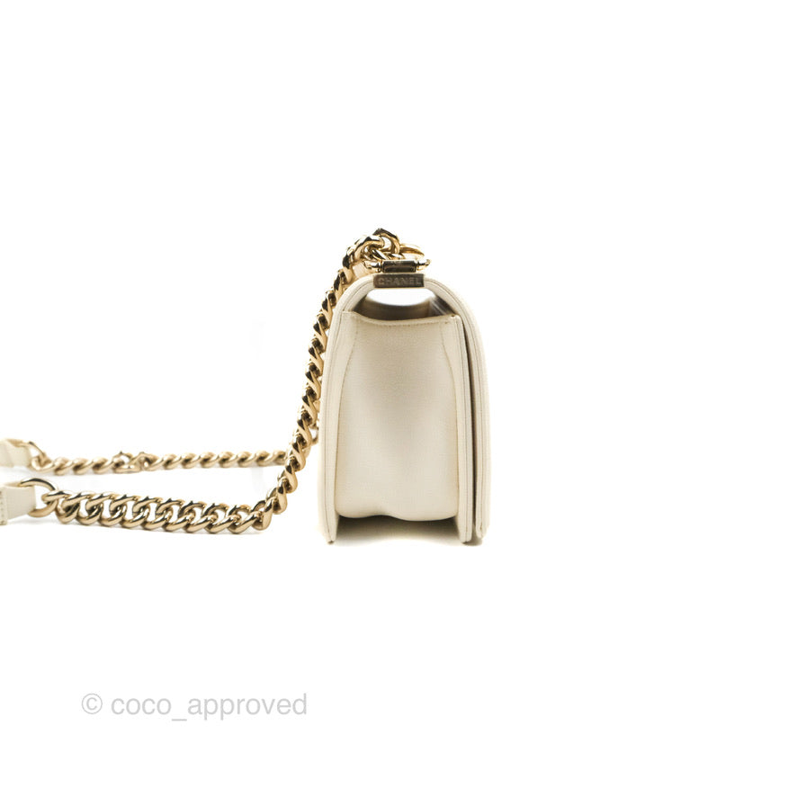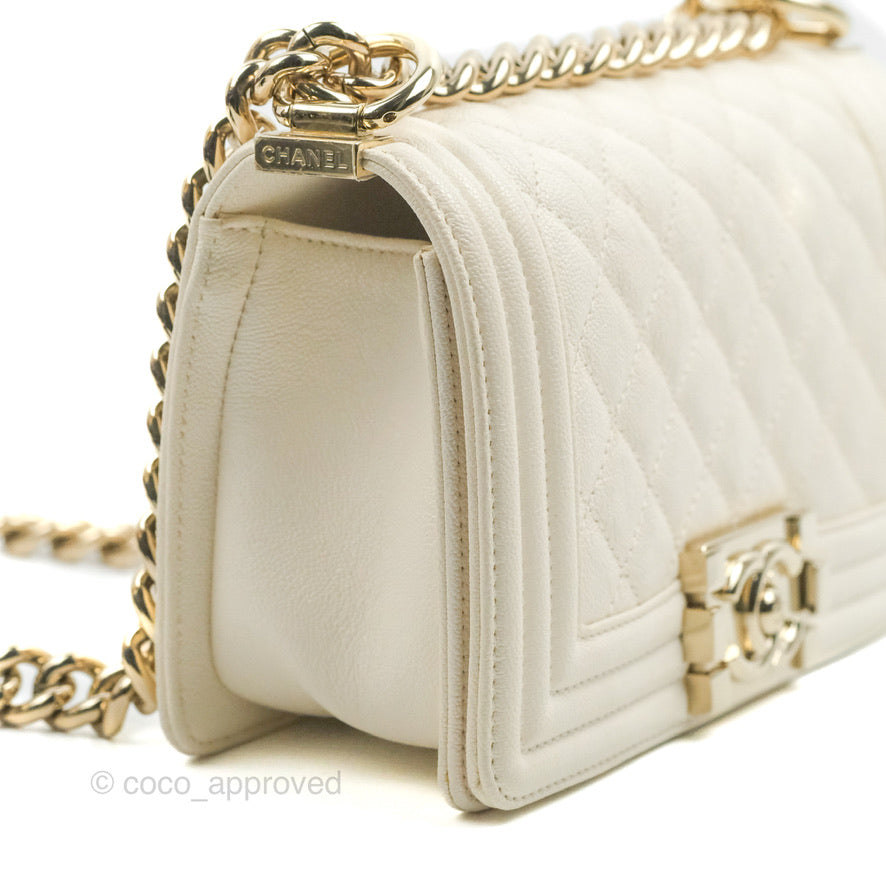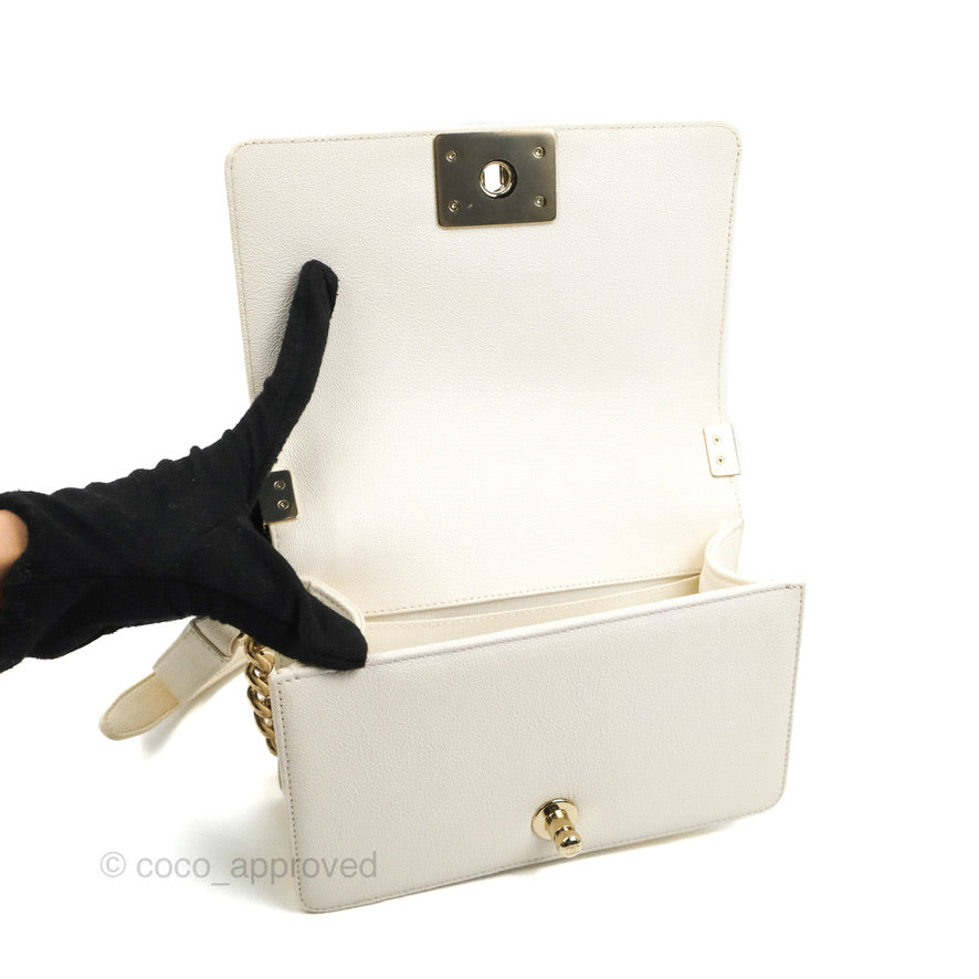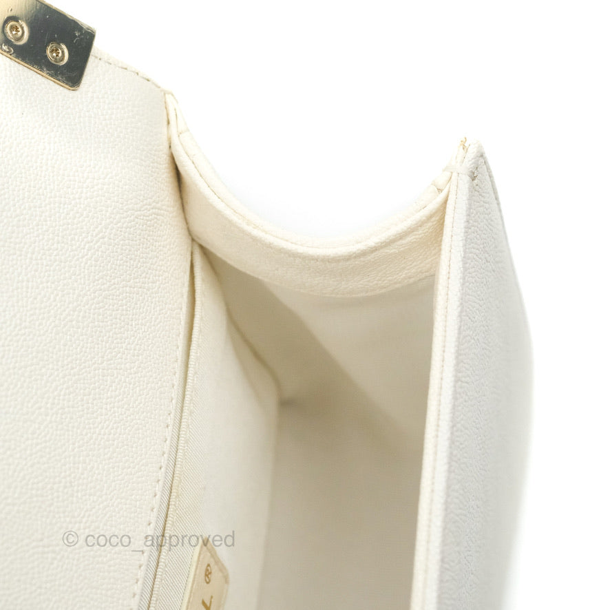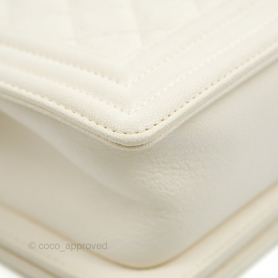 Chanel Small Boy White Caviar Gold Hardware