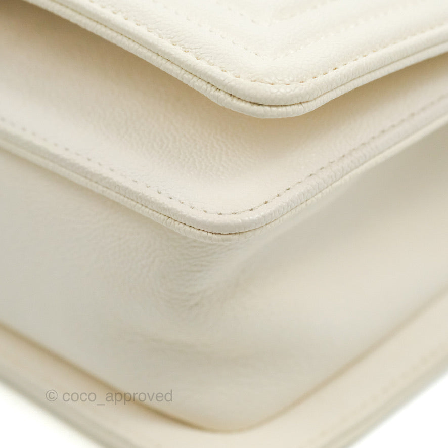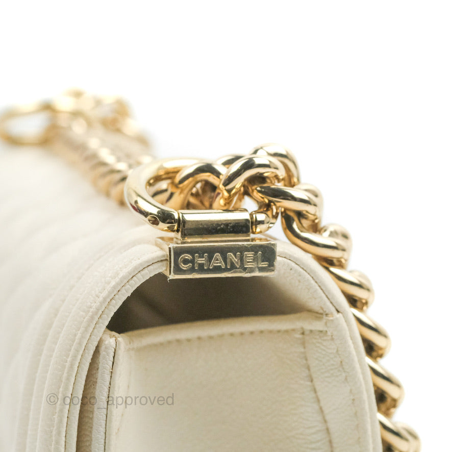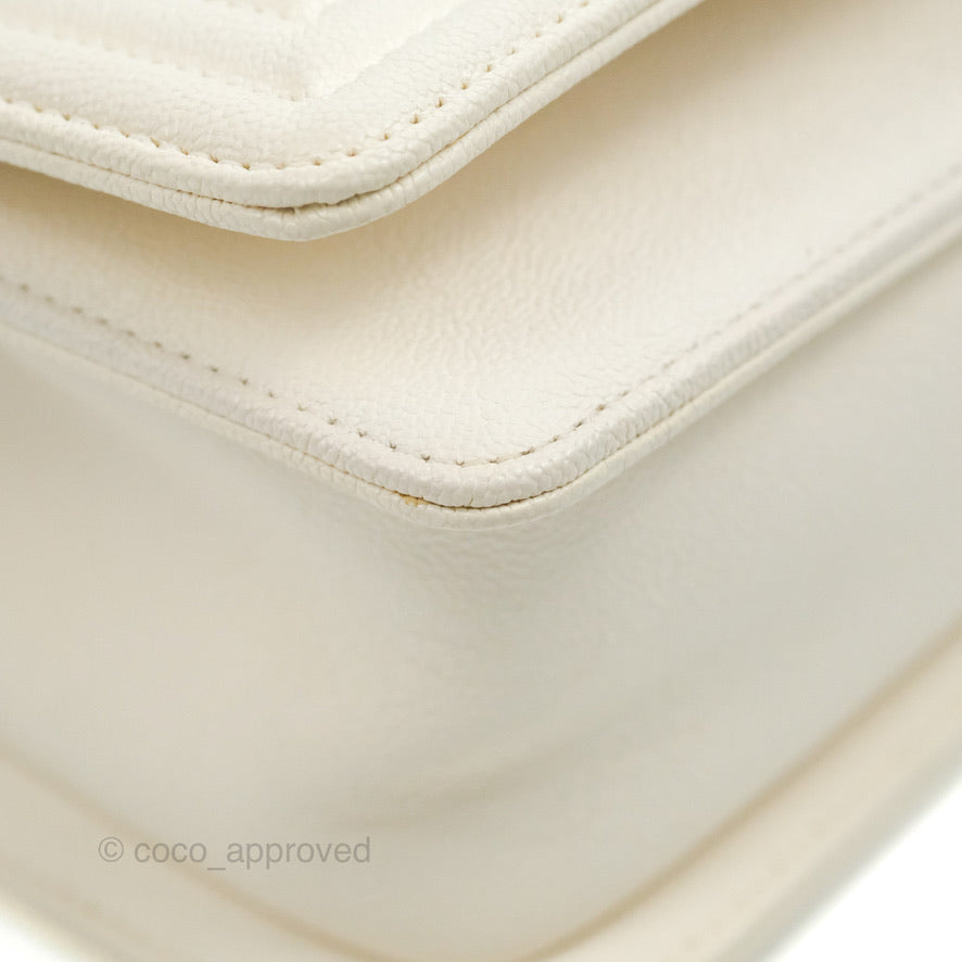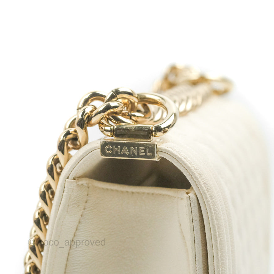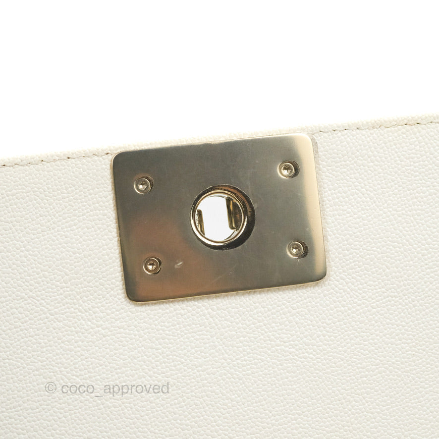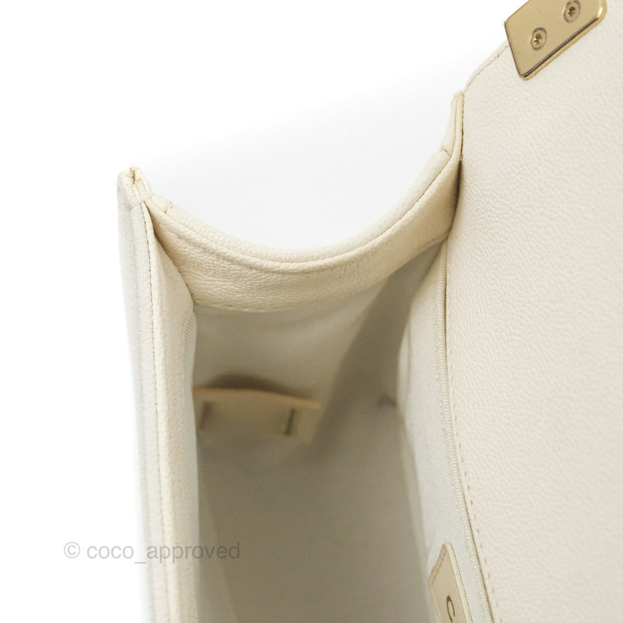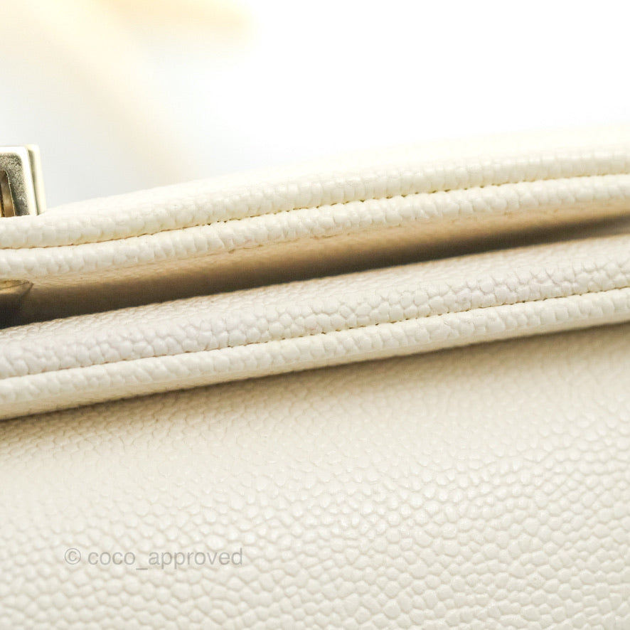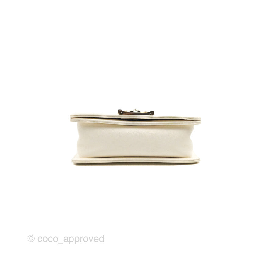 Chanel Small Boy White Caviar Gold Hardware
