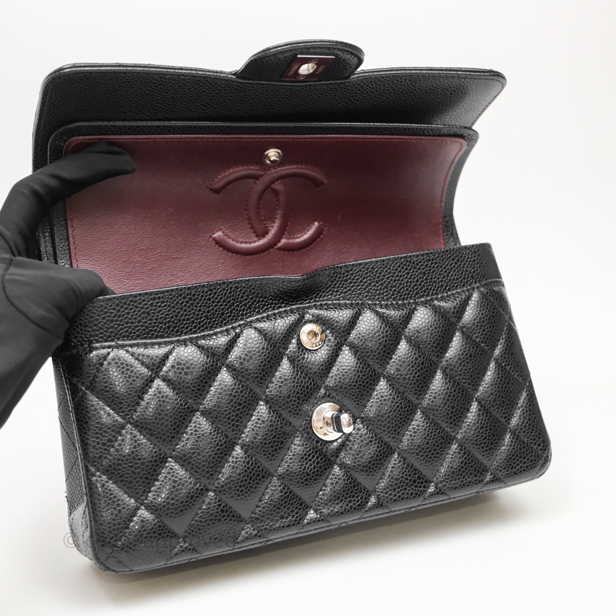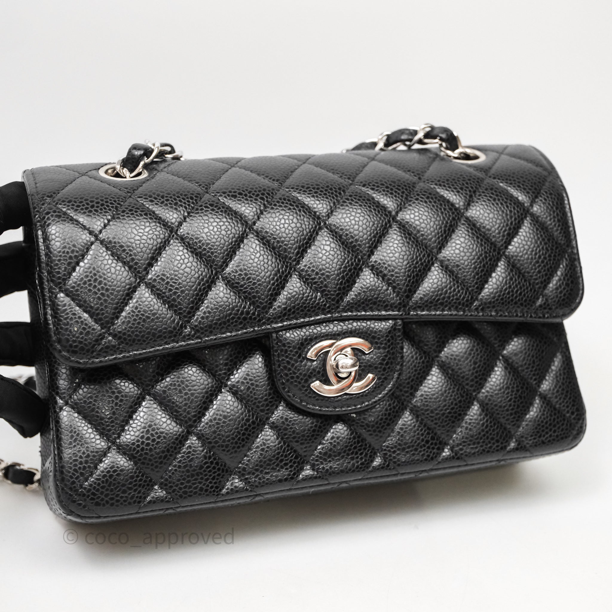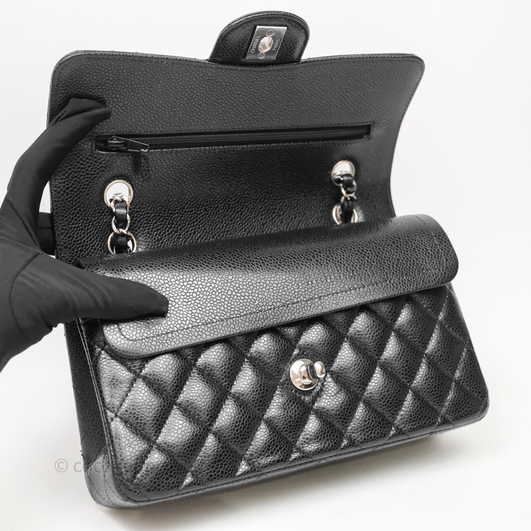 Chanel Small Classic Flap Quilted Black Caviar Silver Hardware