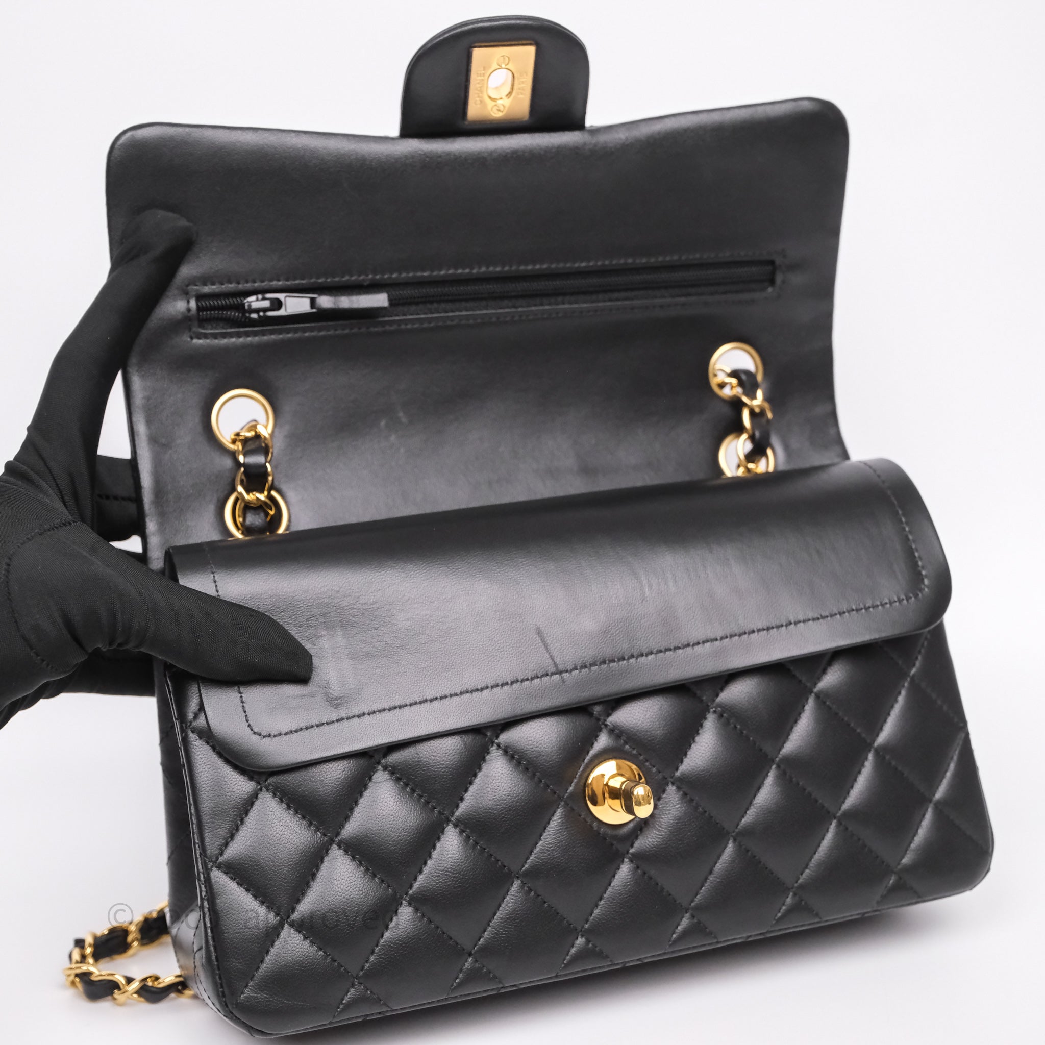 Chanel Small Classic Flap Quilted Black Lambskin Gold Hardware