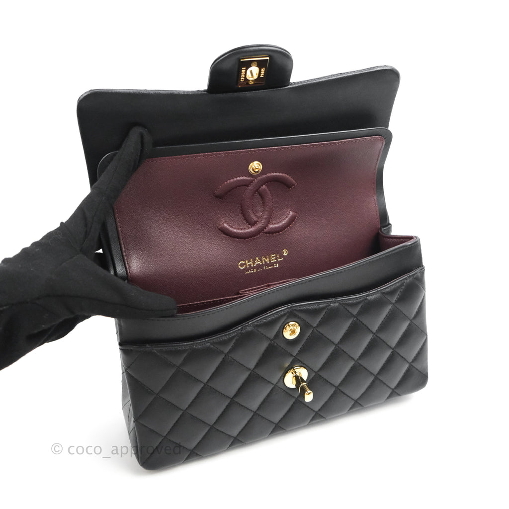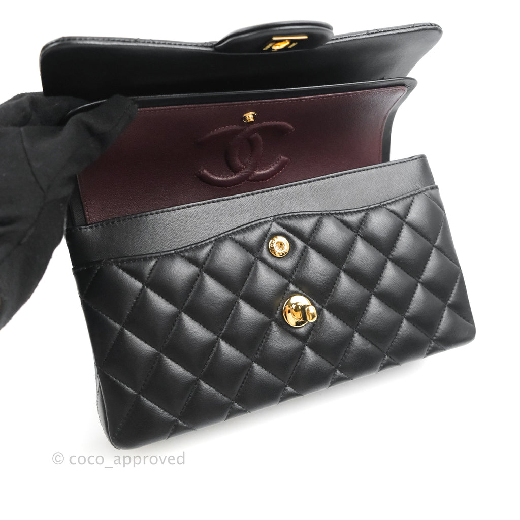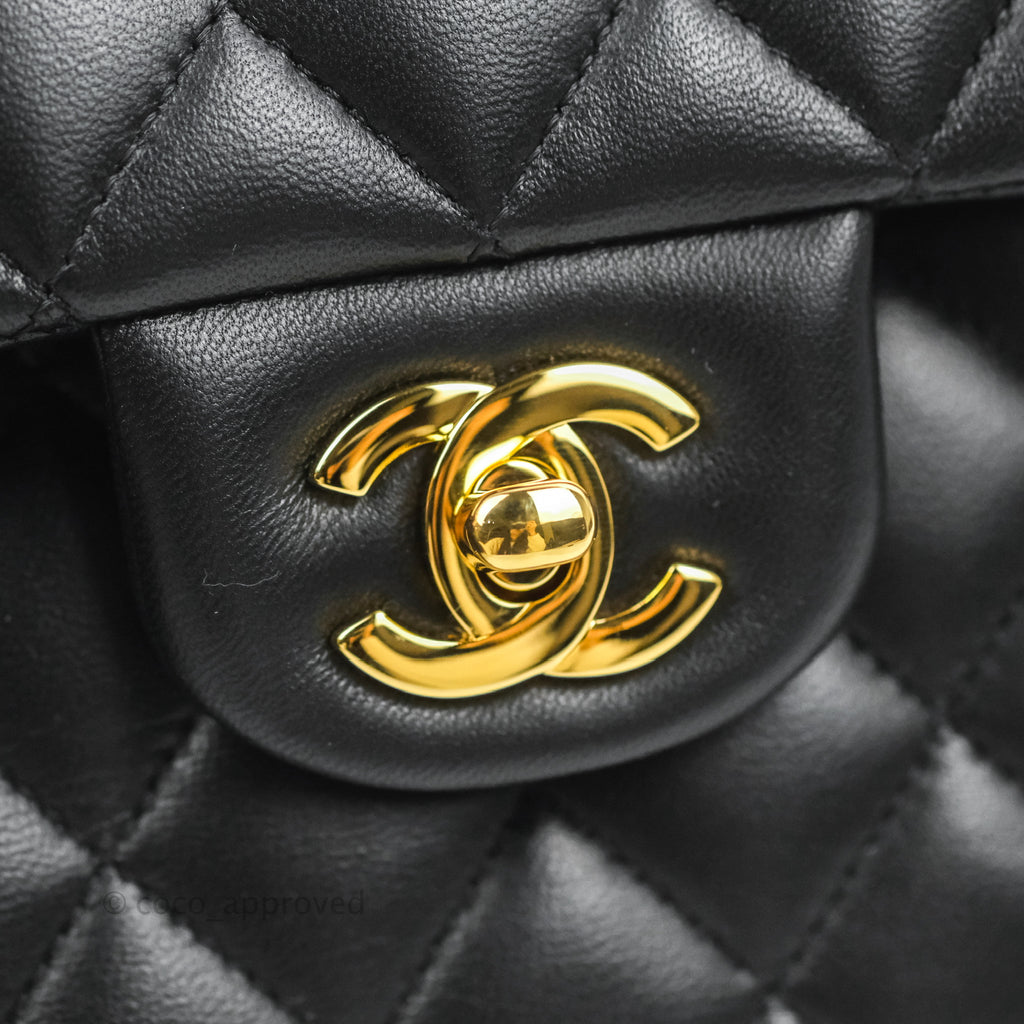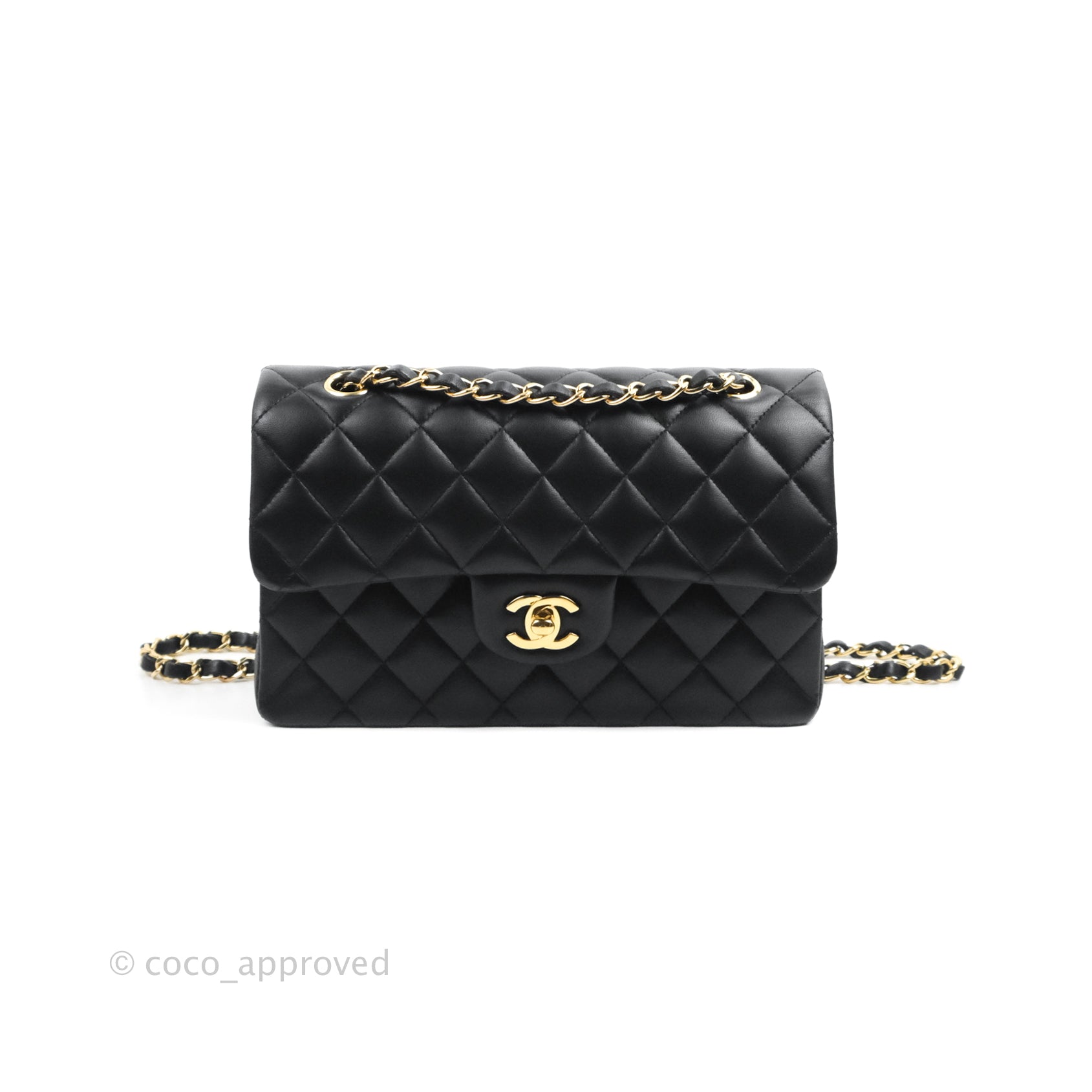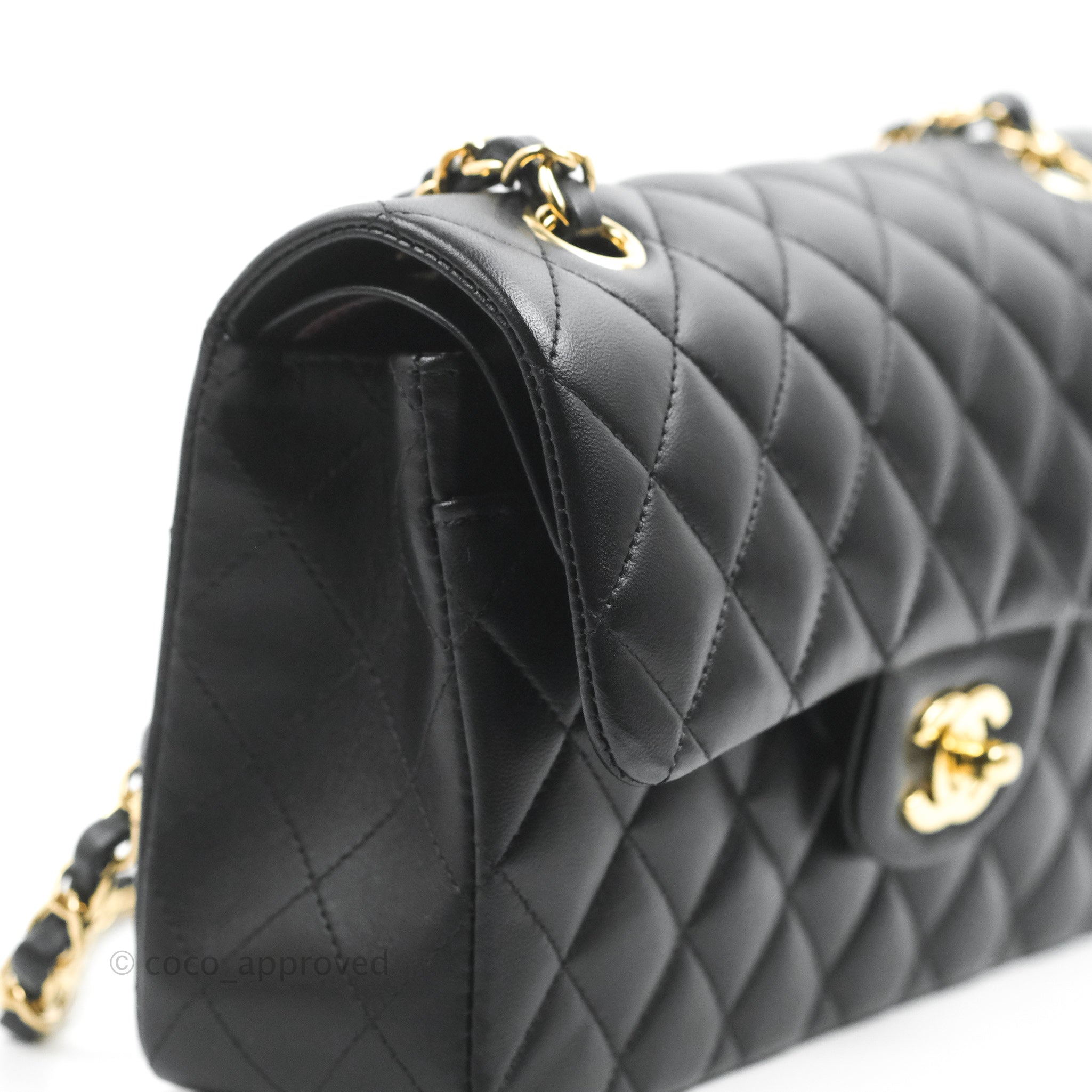 Chanel Small Classic Quilted Flap Black Lambskin Gold Hardware