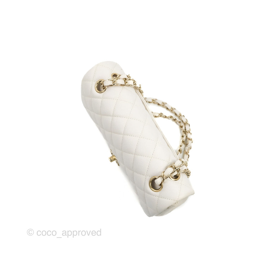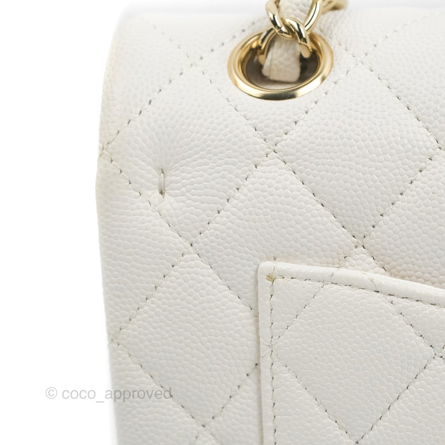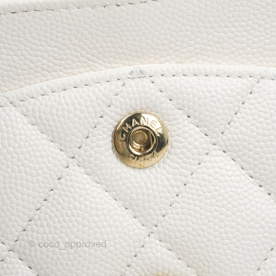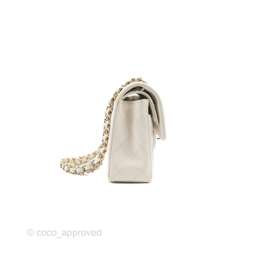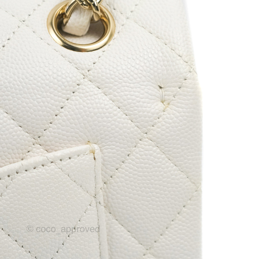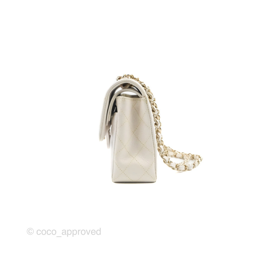 Chanel Small Classic Quilted Flap White Caviar Gold Hardware