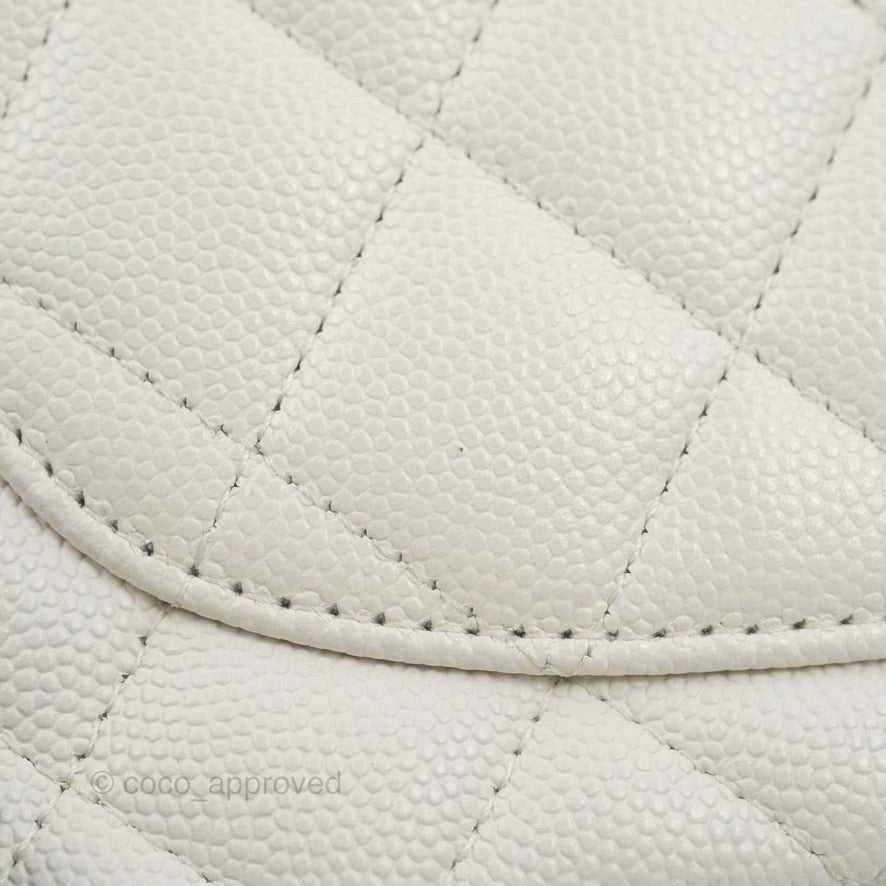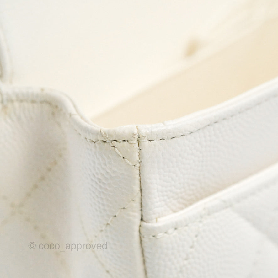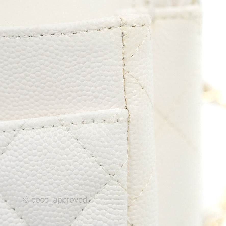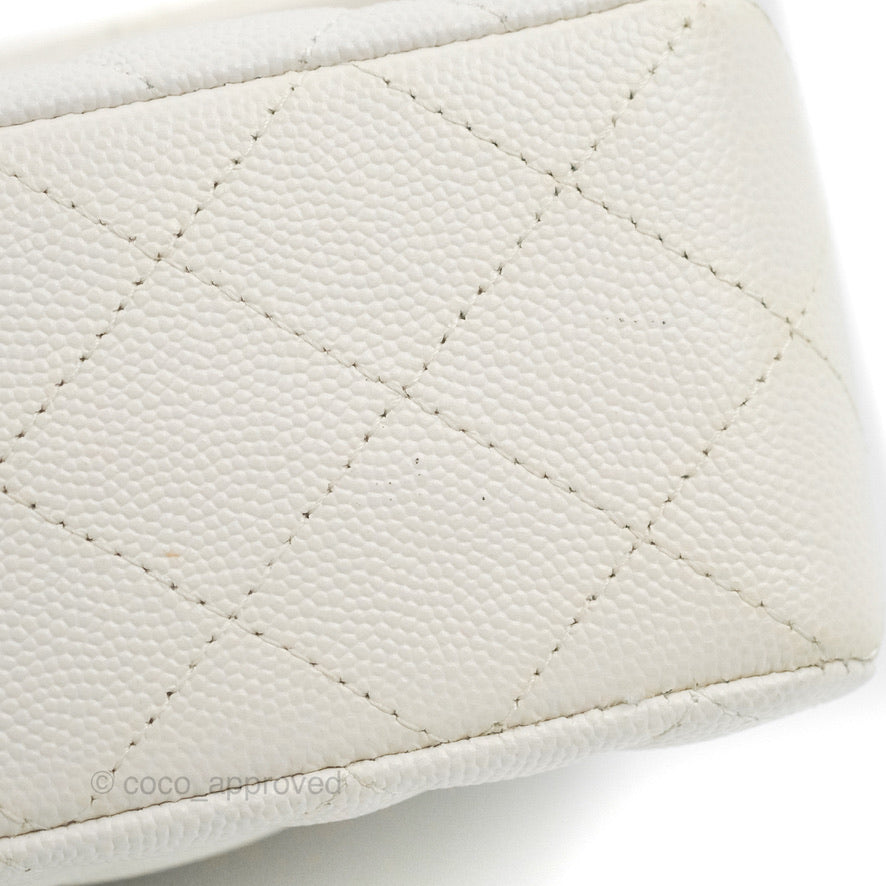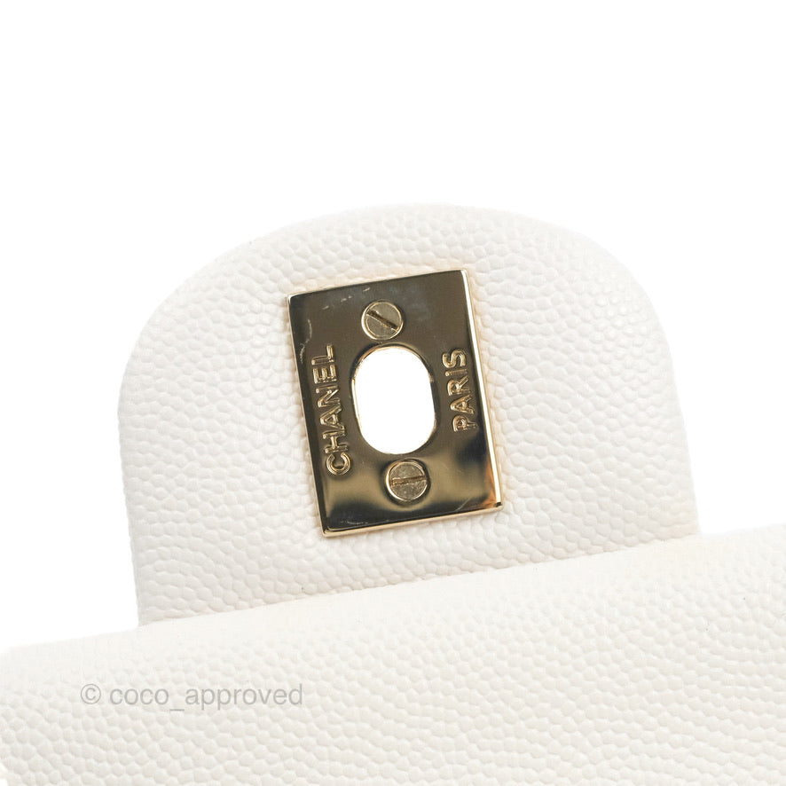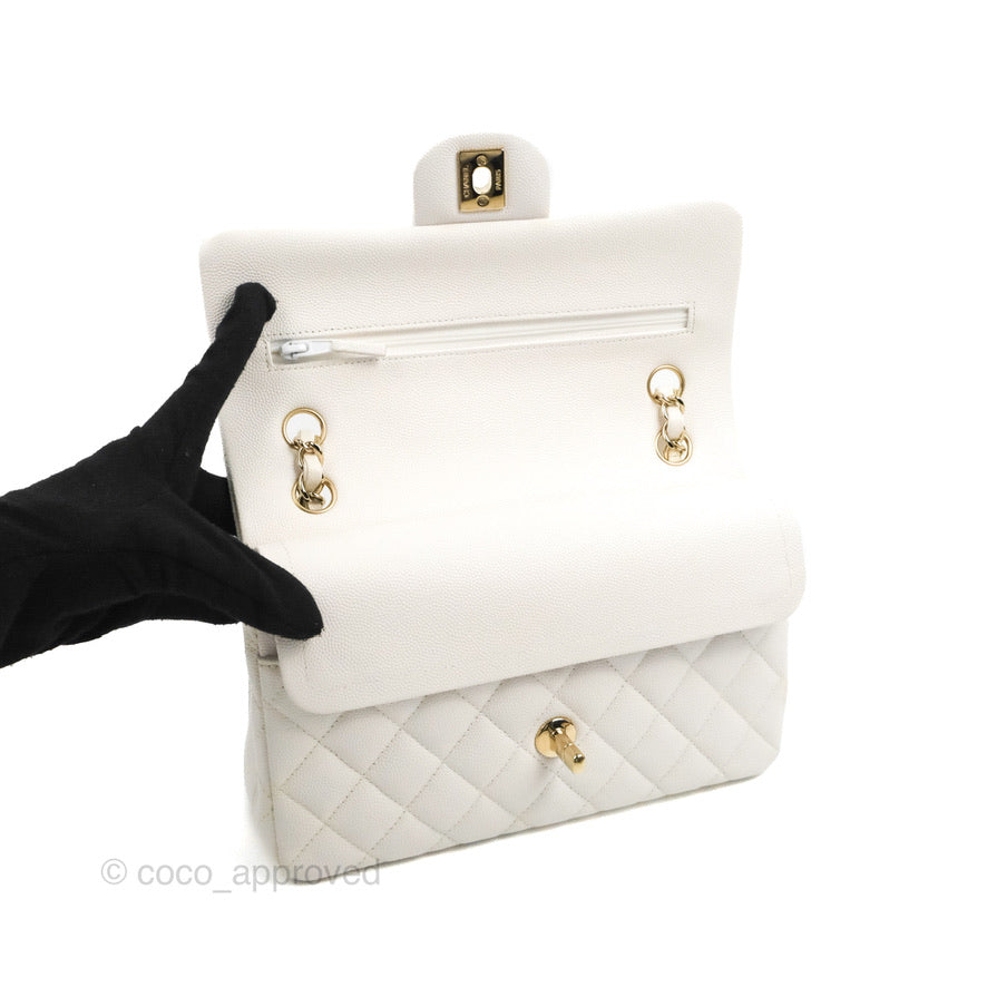 Chanel Small Classic Quilted Flap White Caviar Gold Hardware