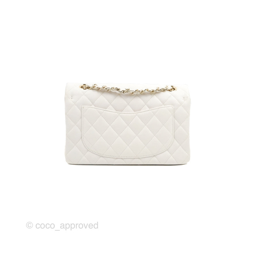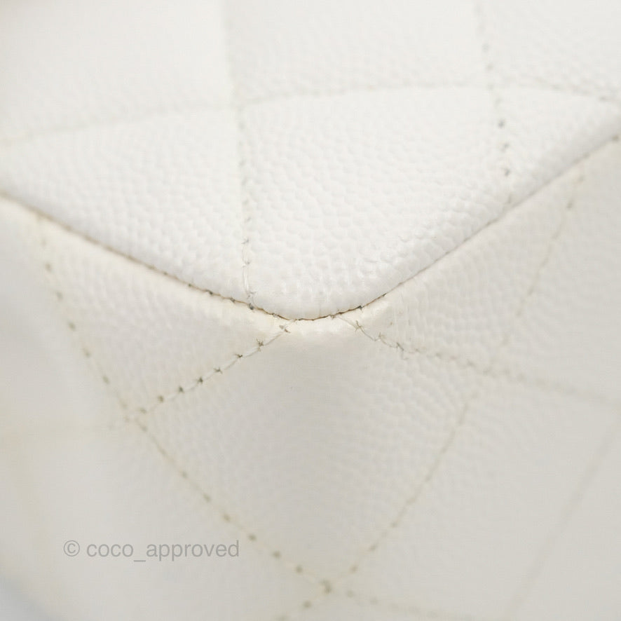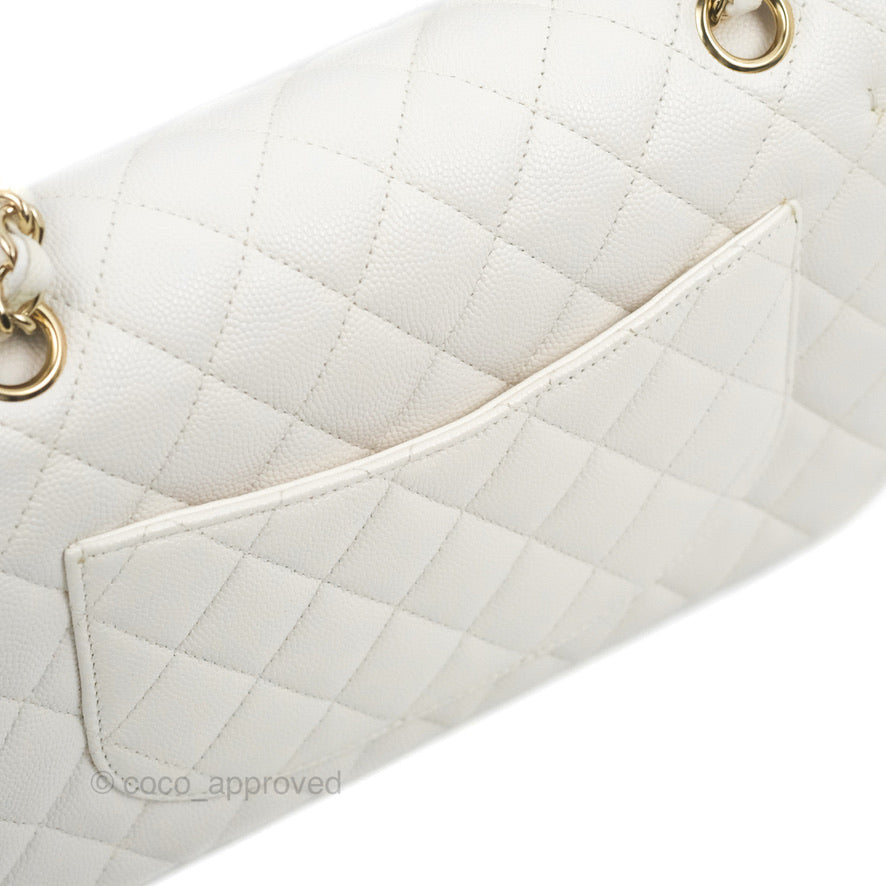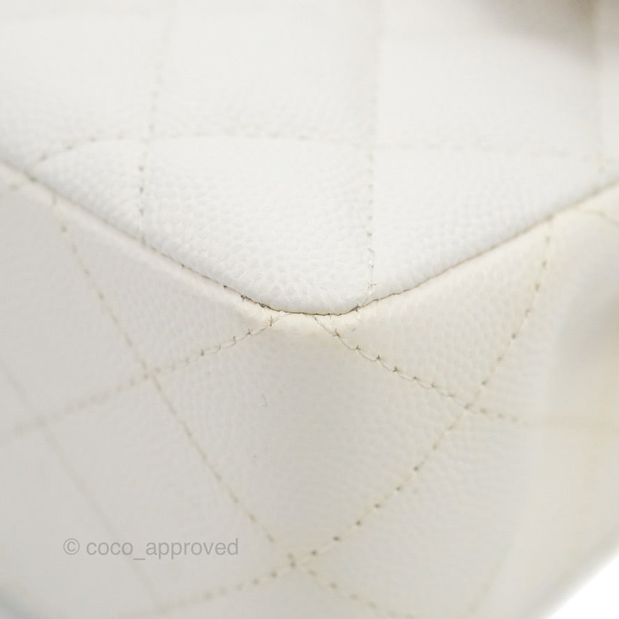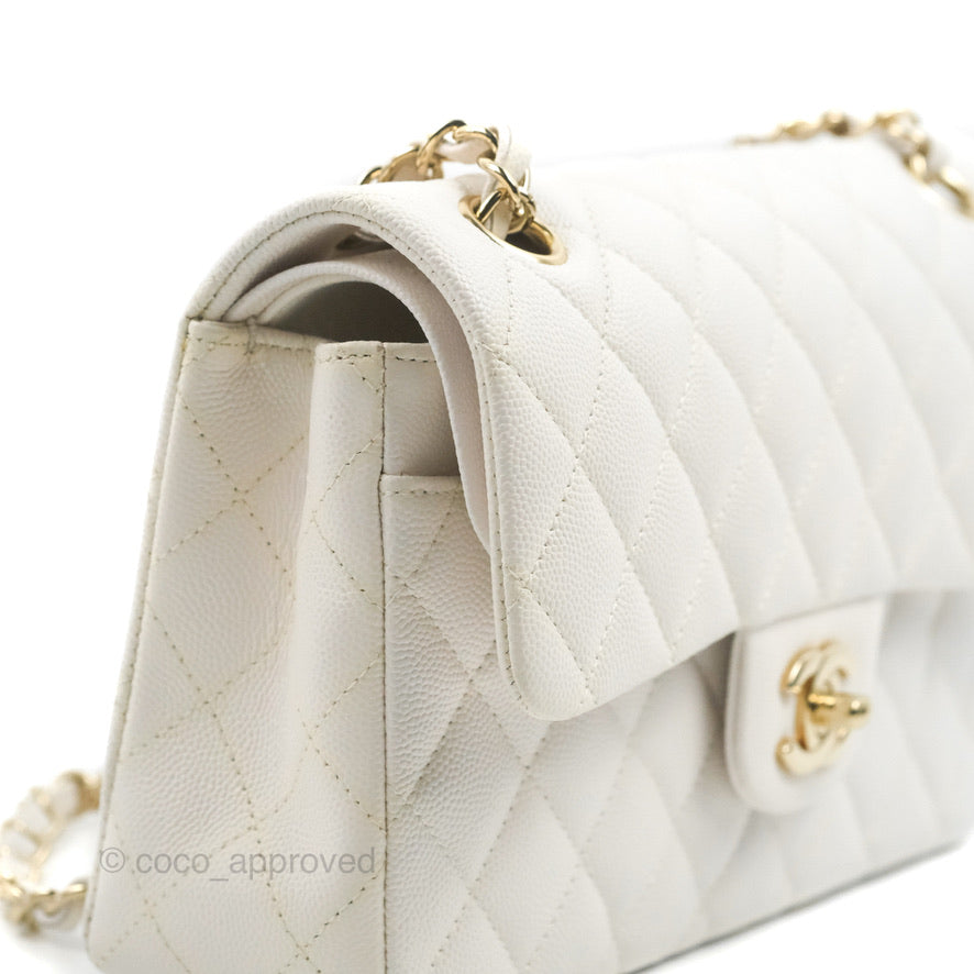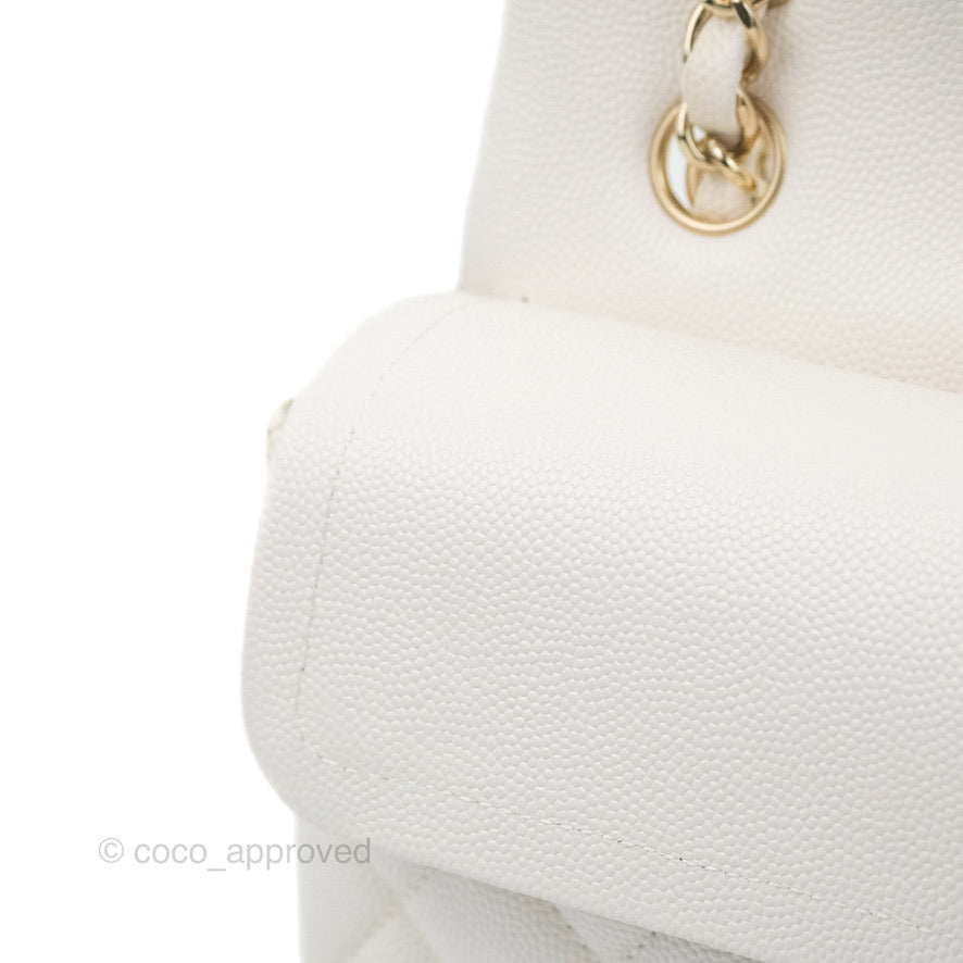 Chanel Small Classic Quilted Flap White Caviar Gold Hardware