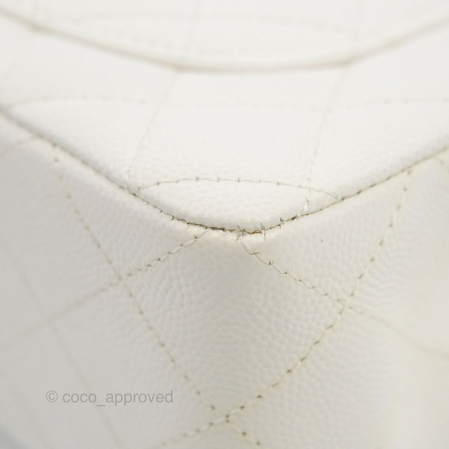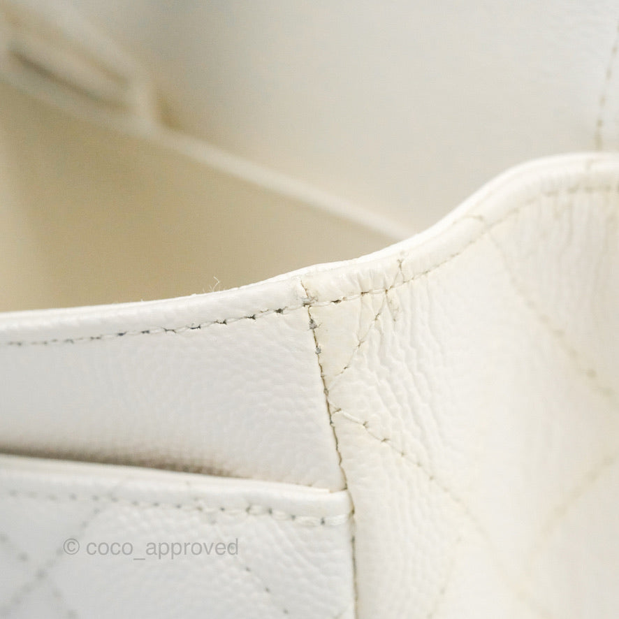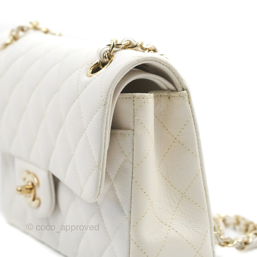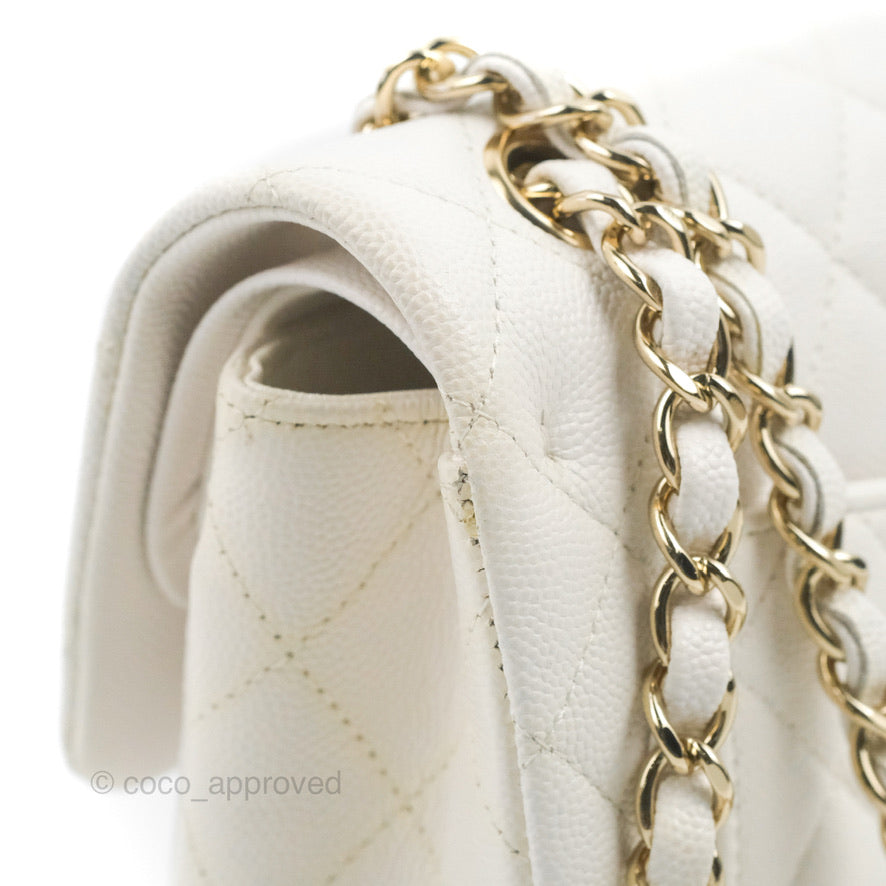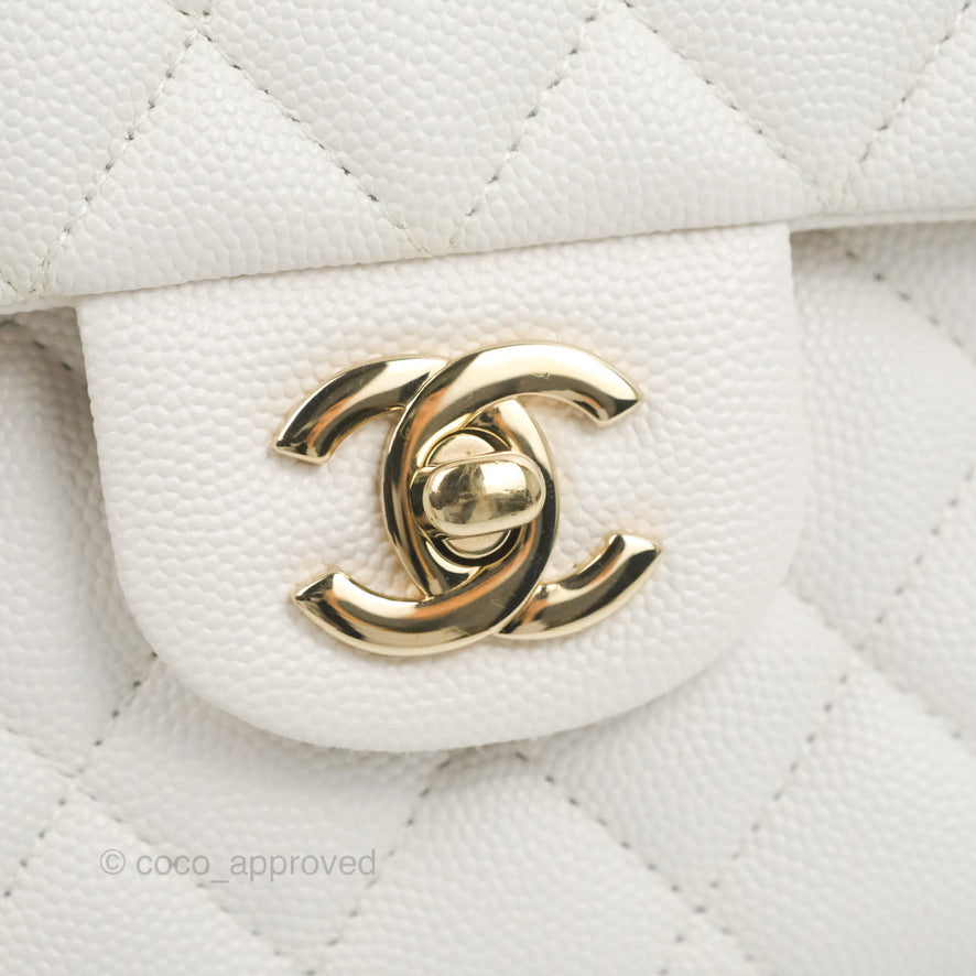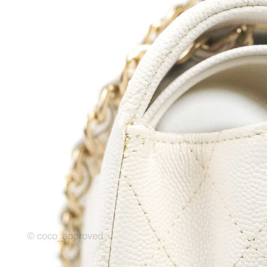 Chanel Small Classic Quilted Flap White Caviar Gold Hardware