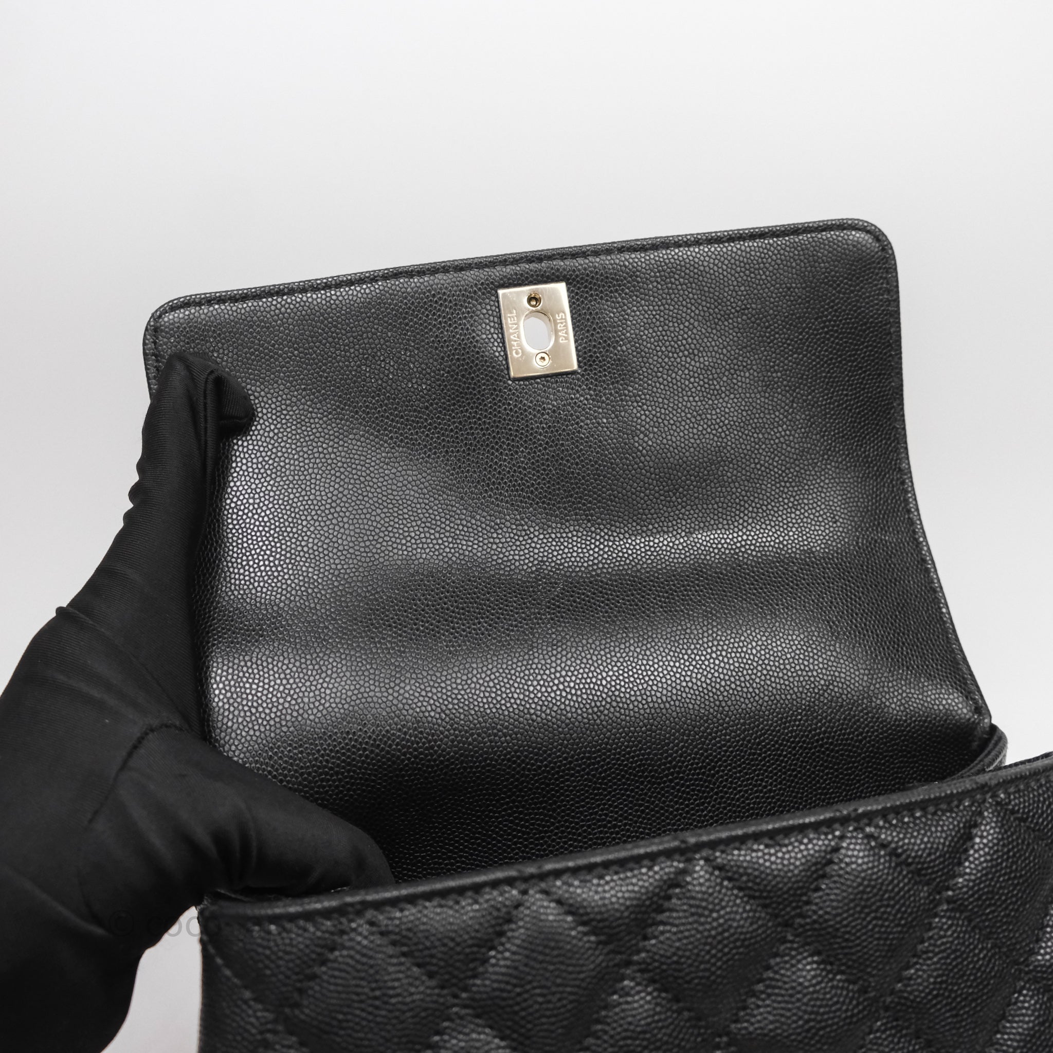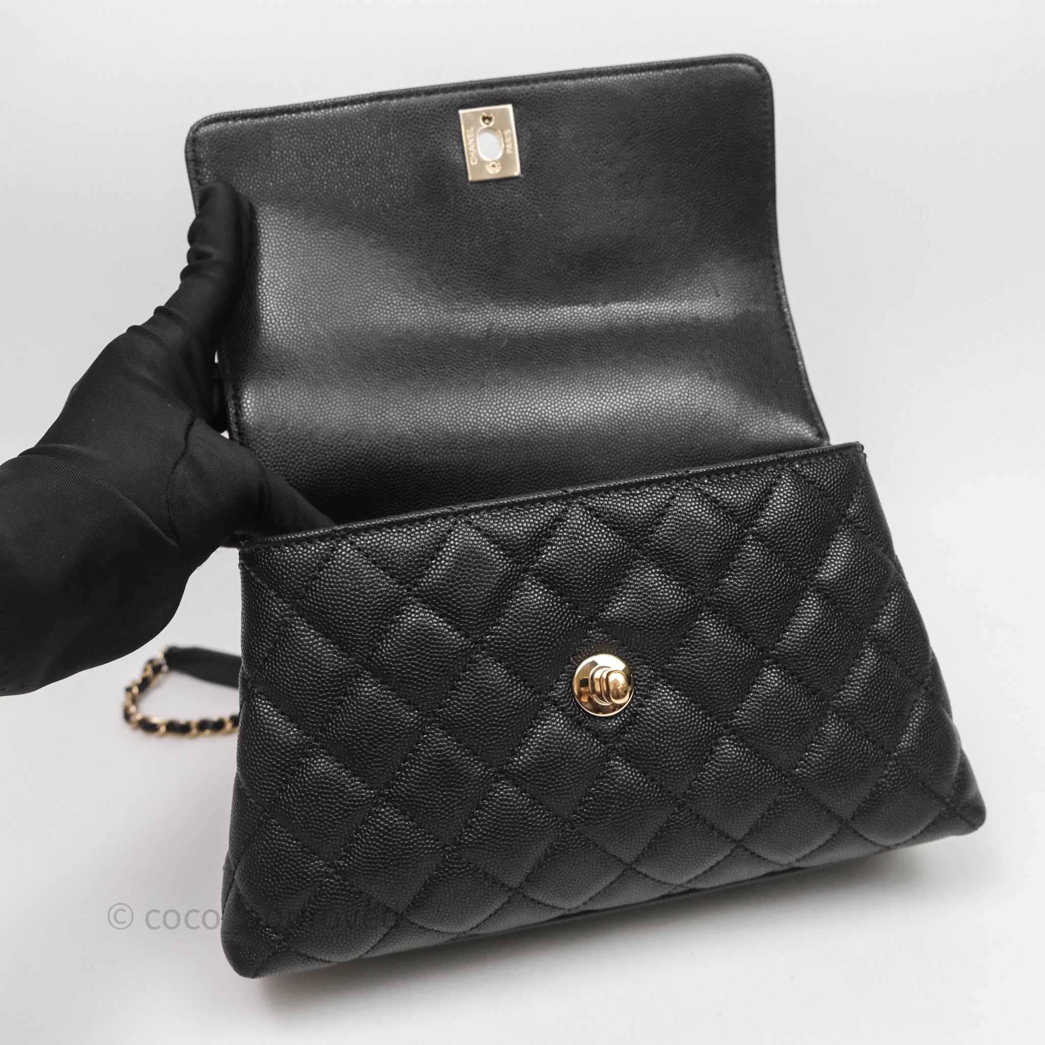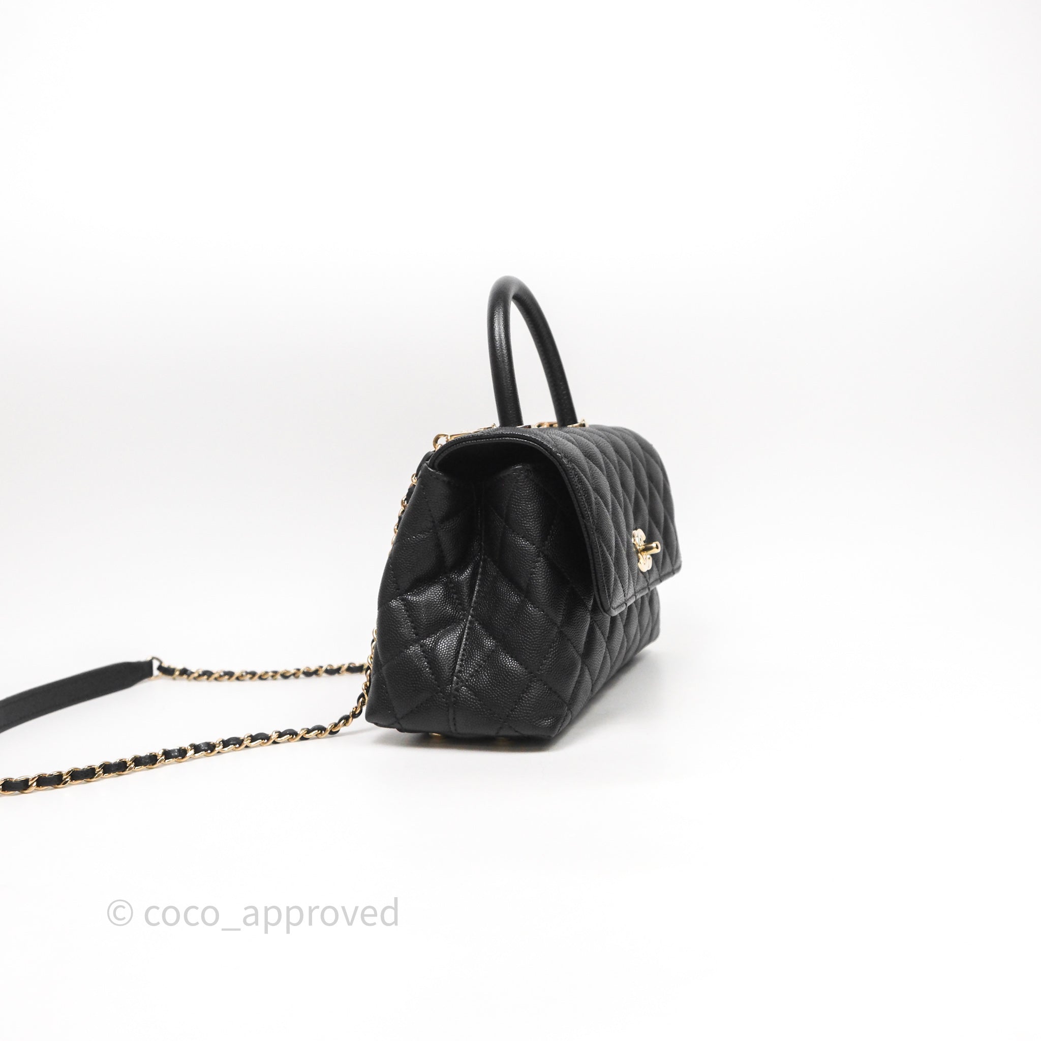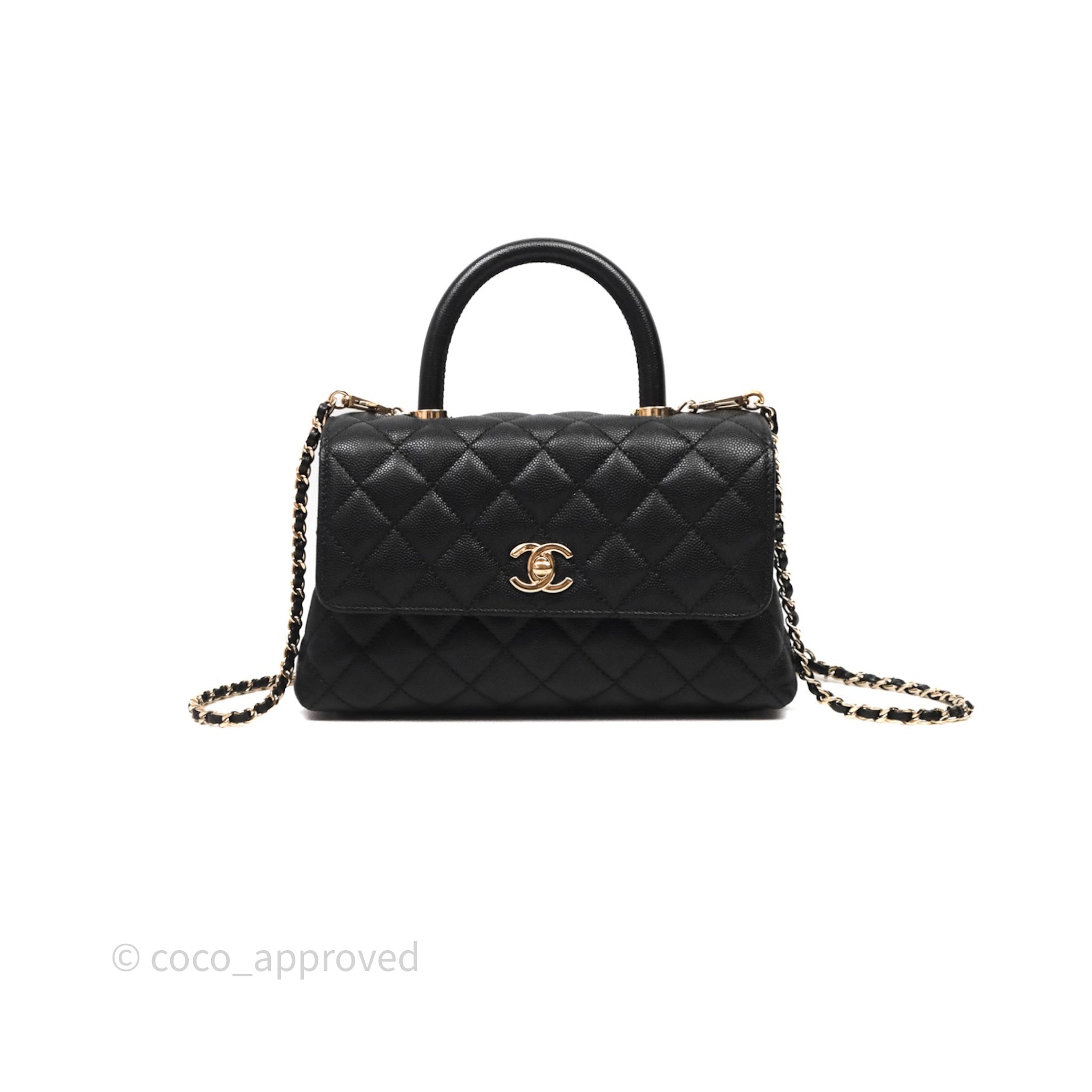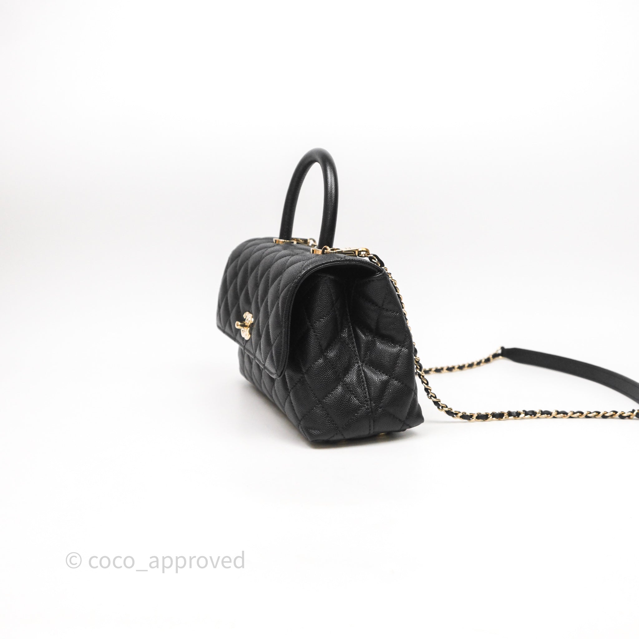 Chanel Small Coco Handle Black Caviar Light Gold Hardware