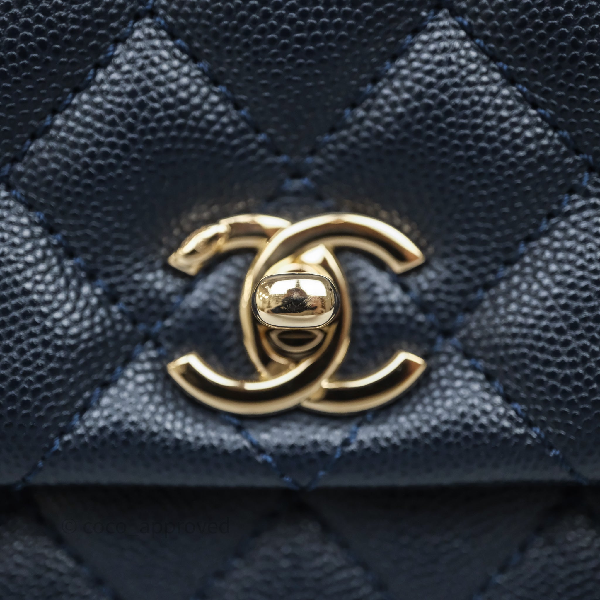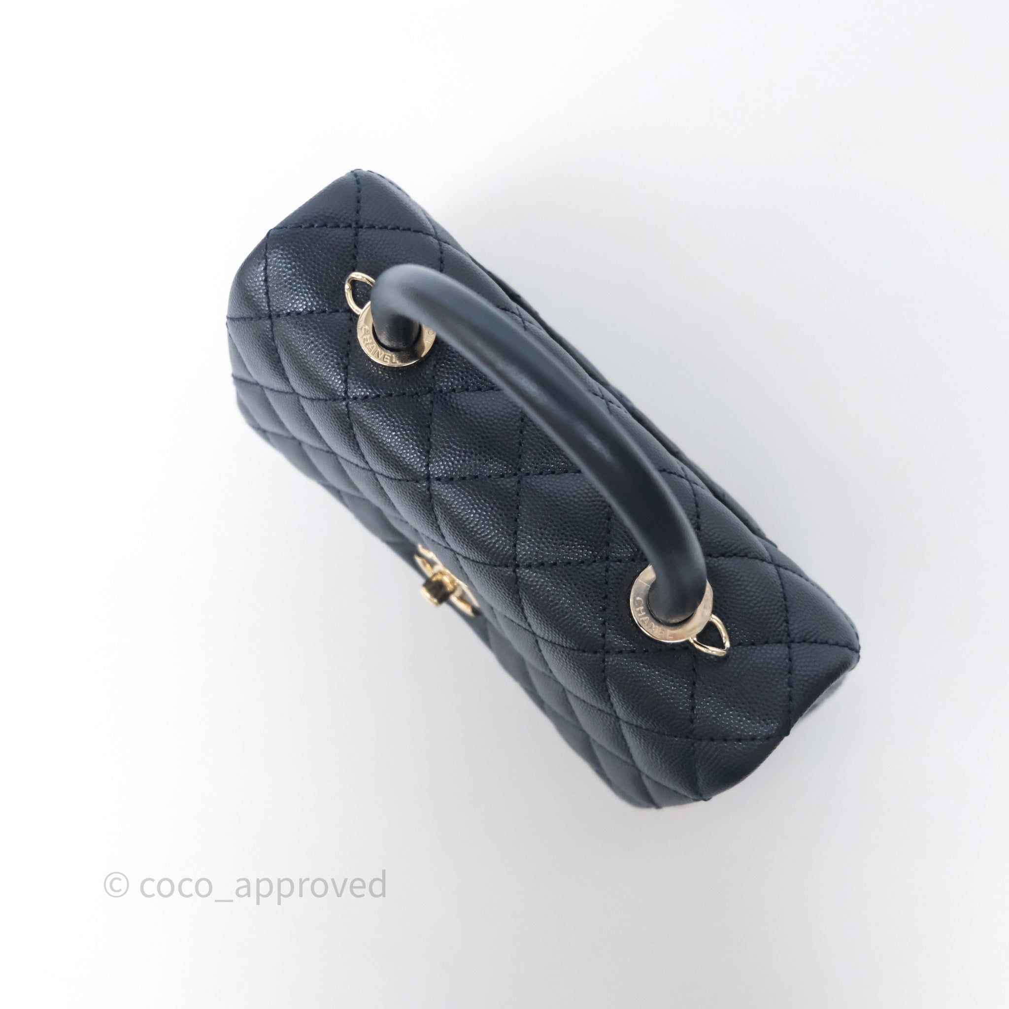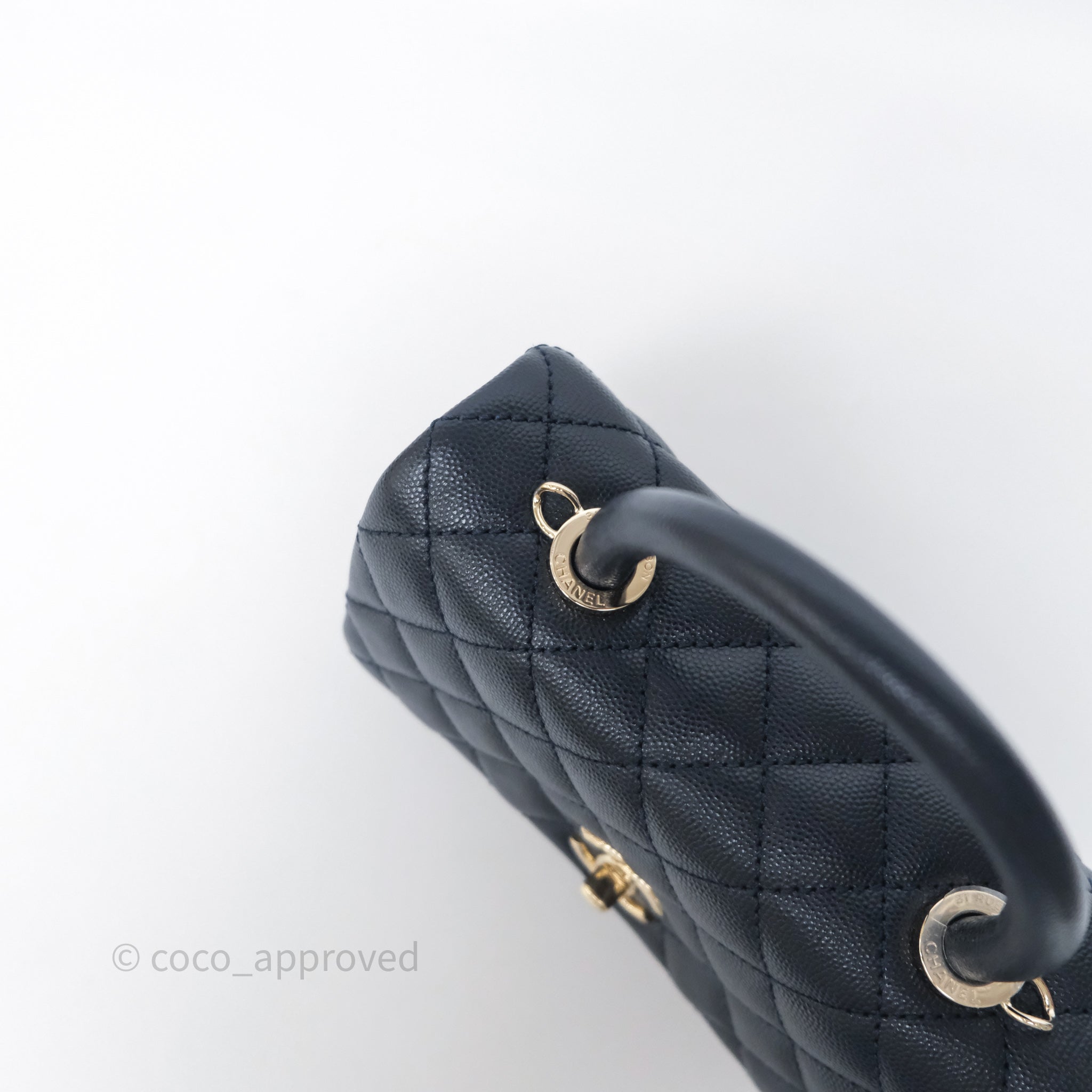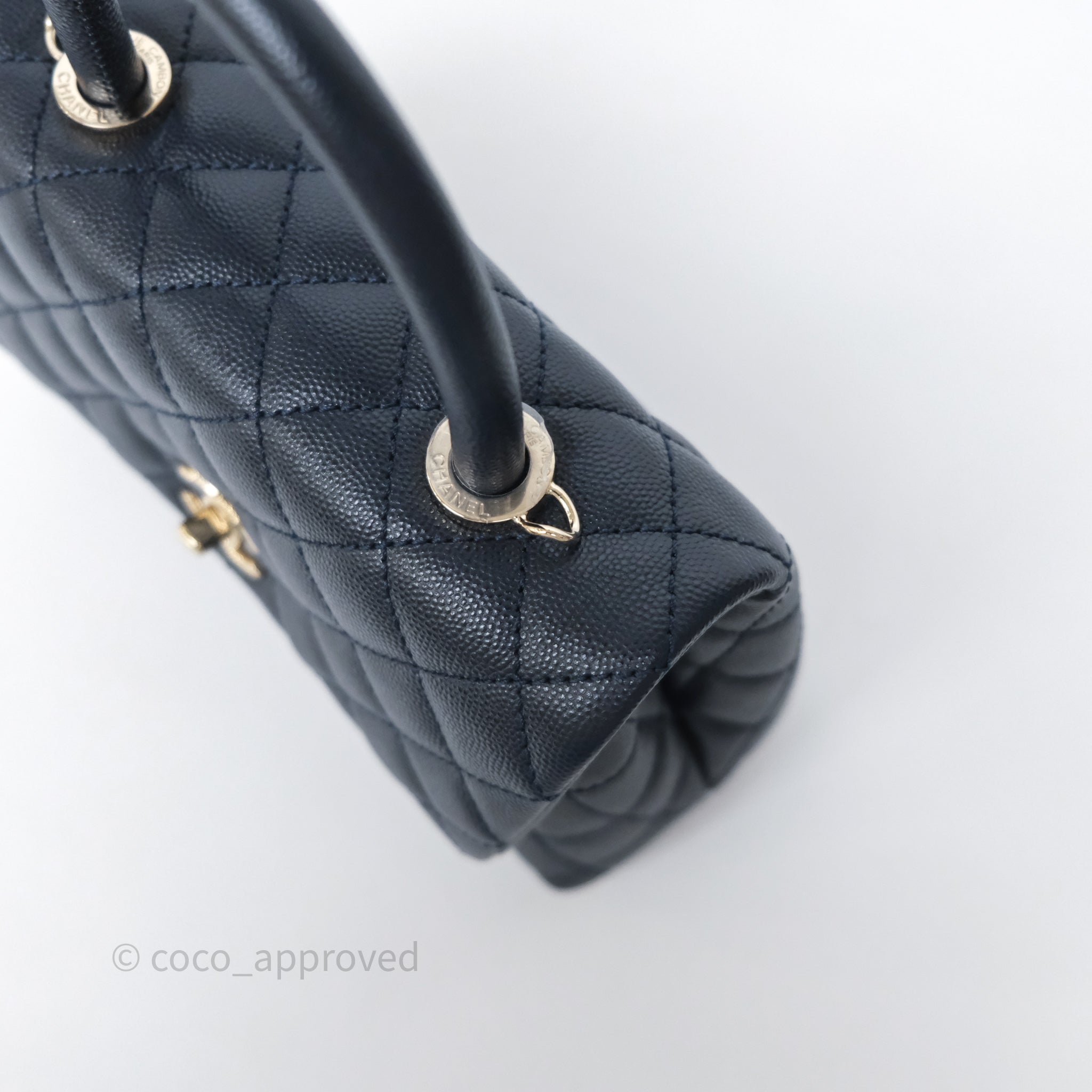 Chanel Small Coco Handle Navy Caviar Light Gold Hardware
