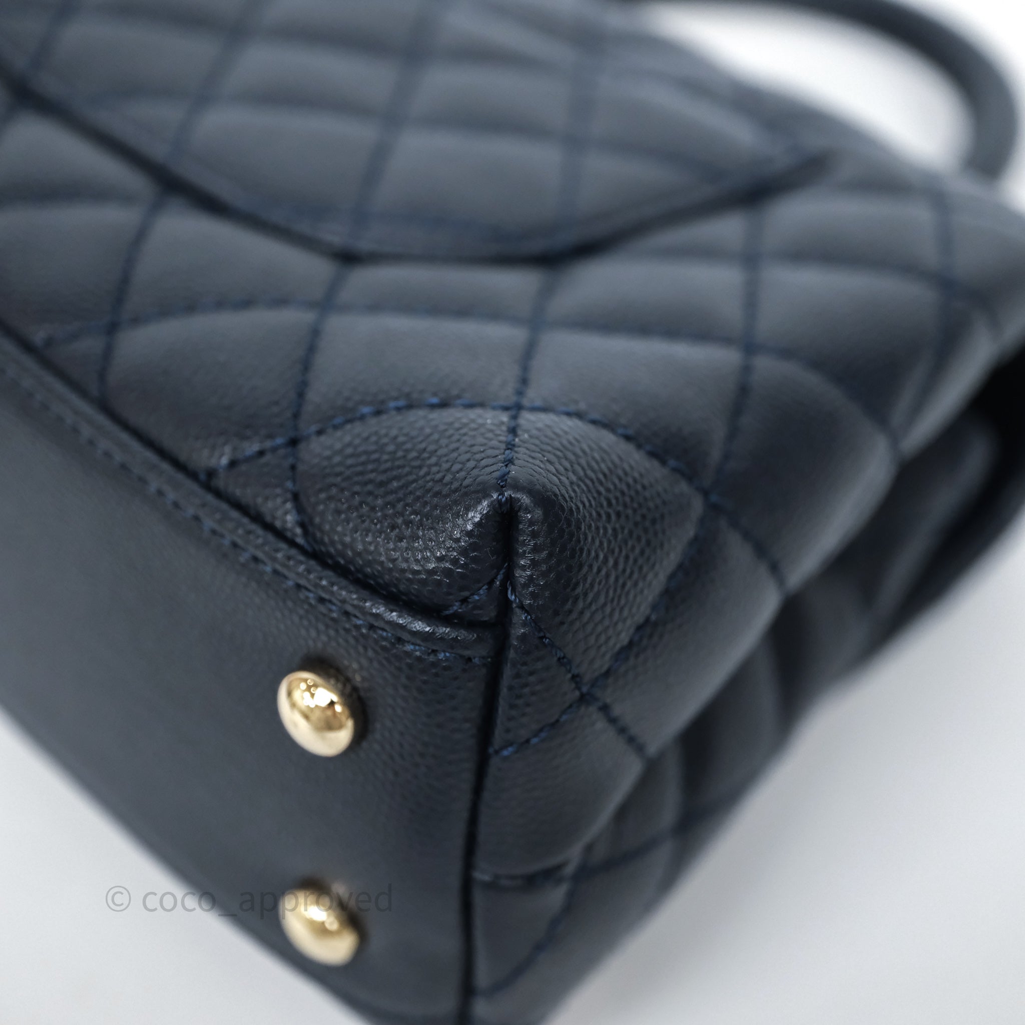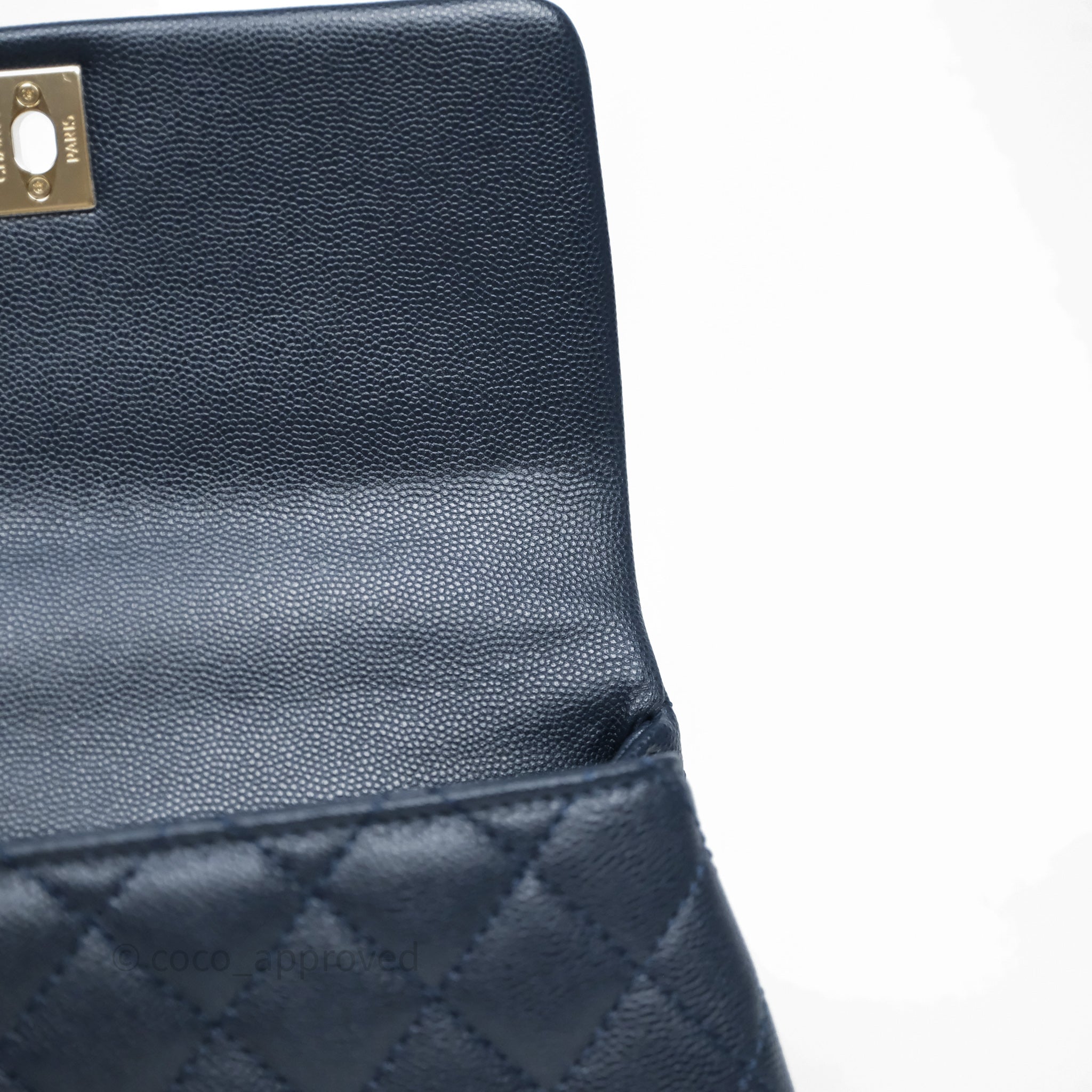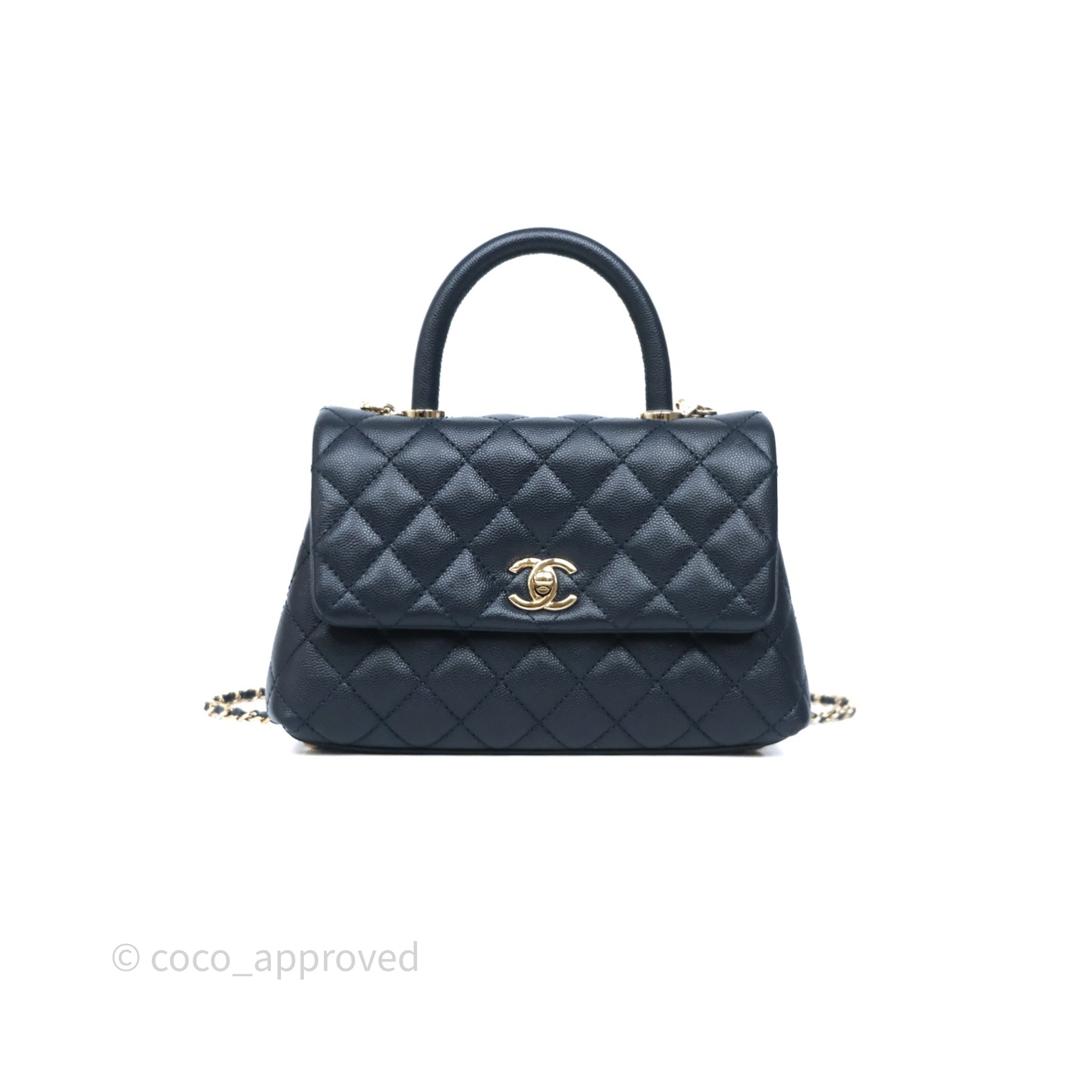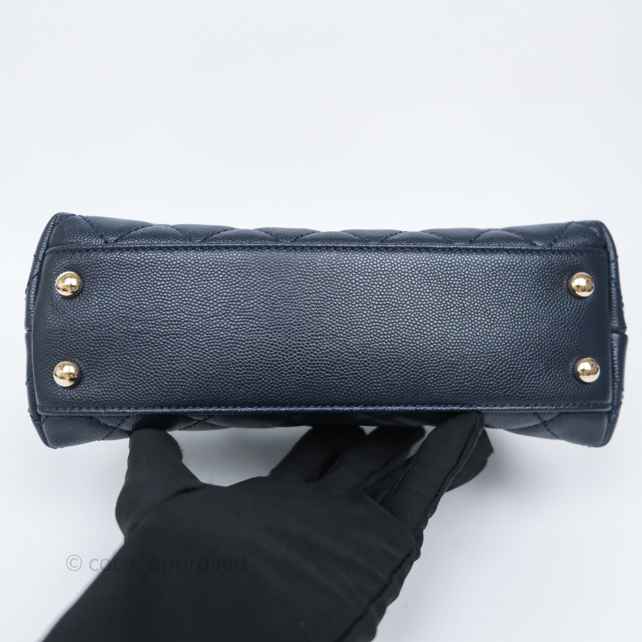 Chanel Small Coco Handle Navy Caviar Light Gold Hardware