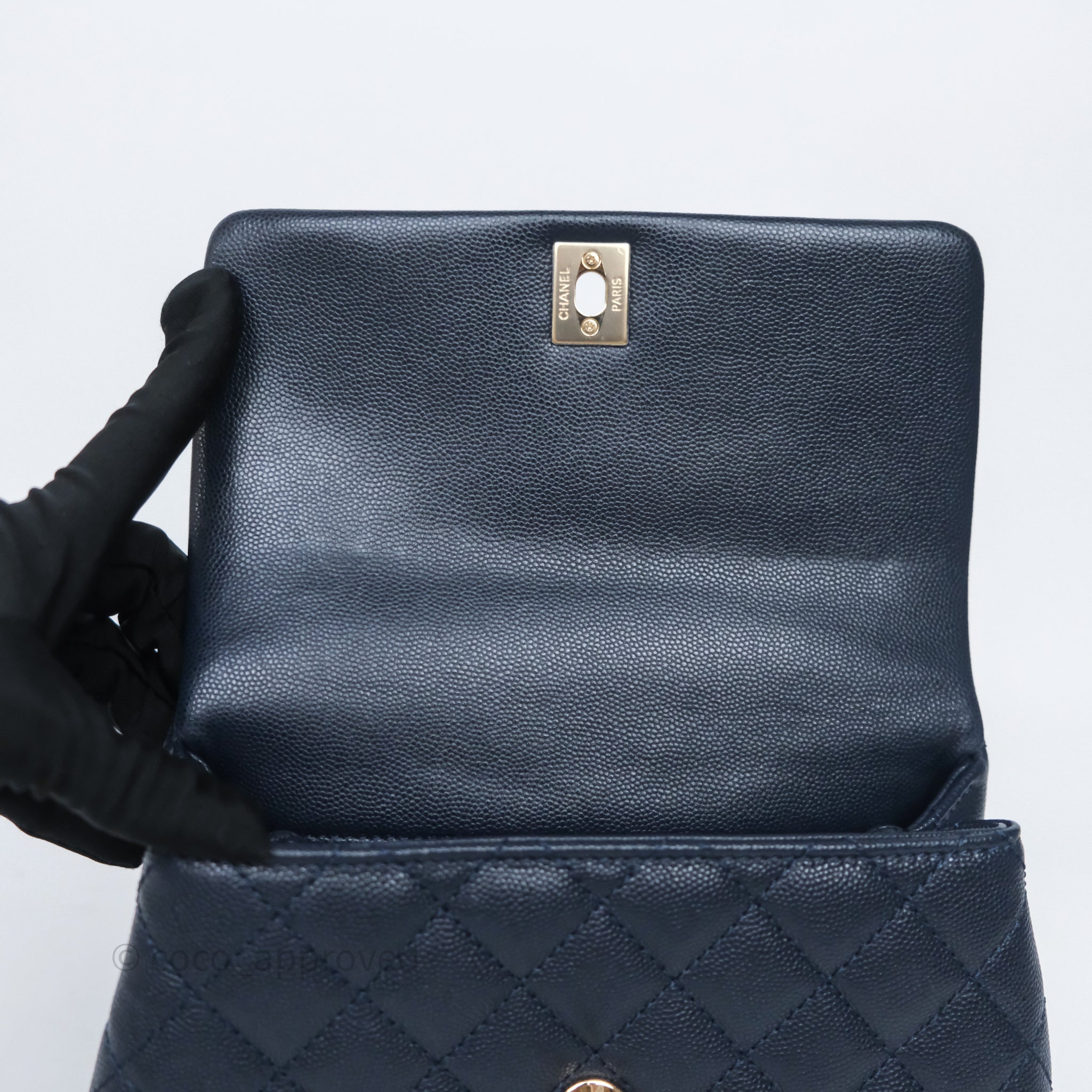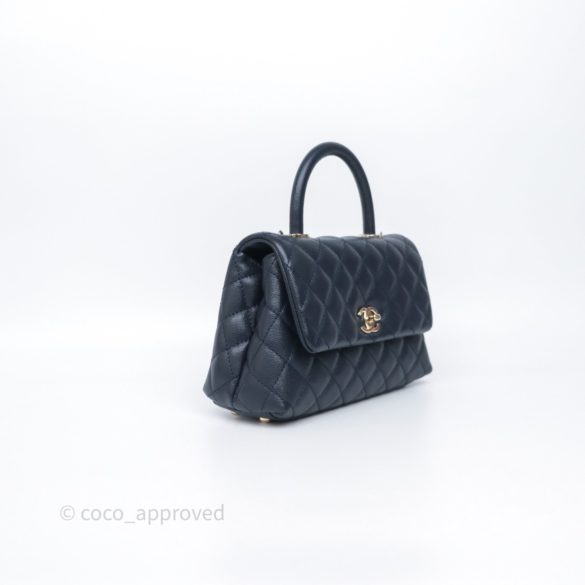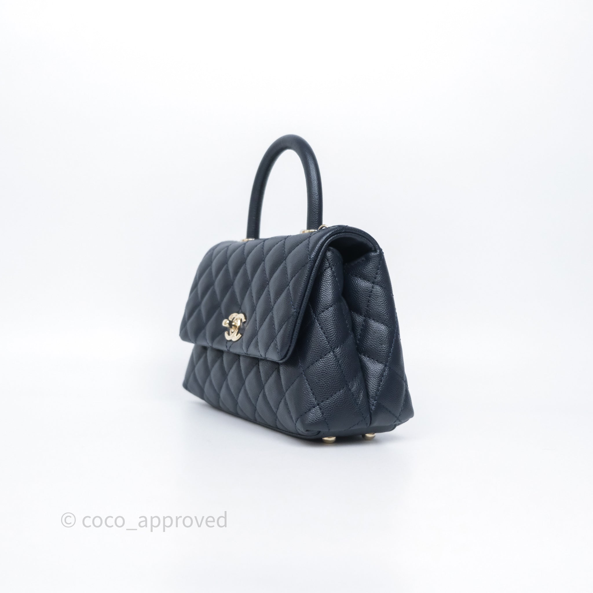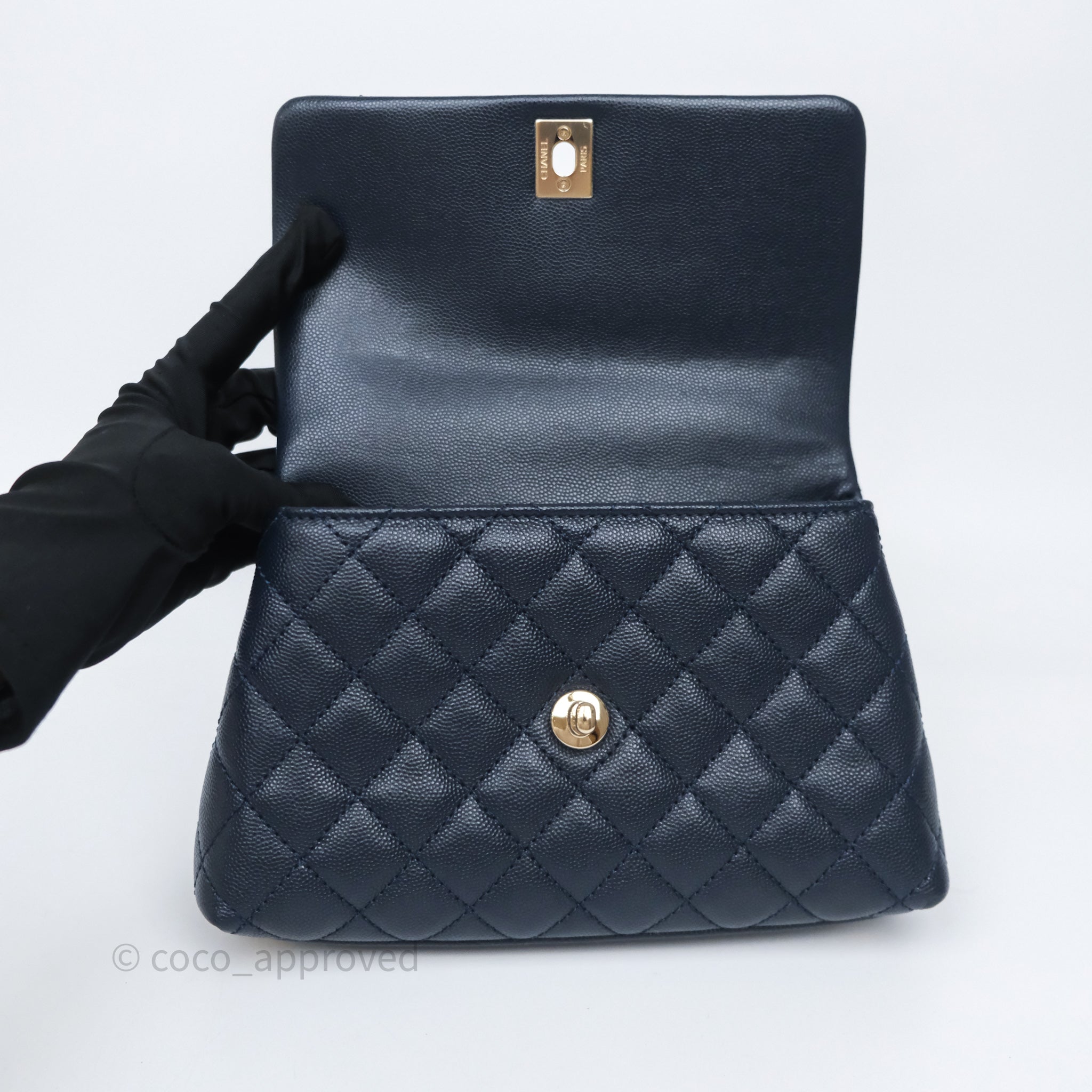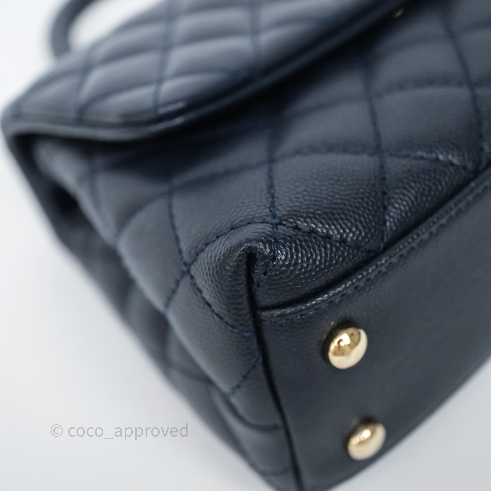 Chanel Small Coco Handle Navy Caviar Light Gold Hardware