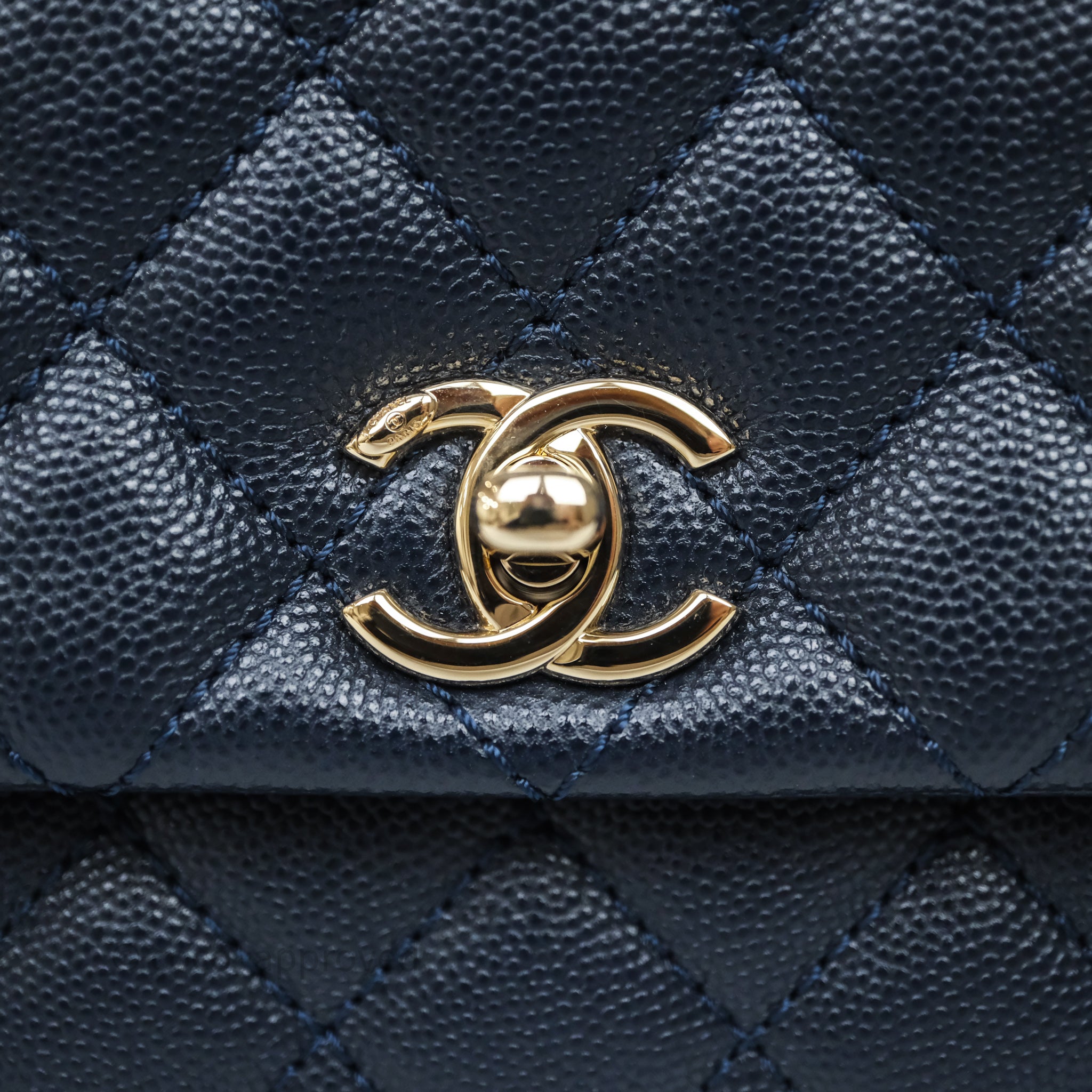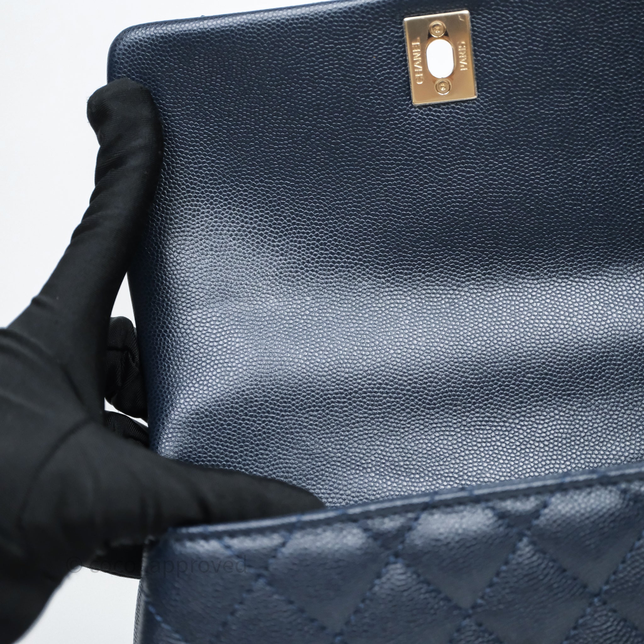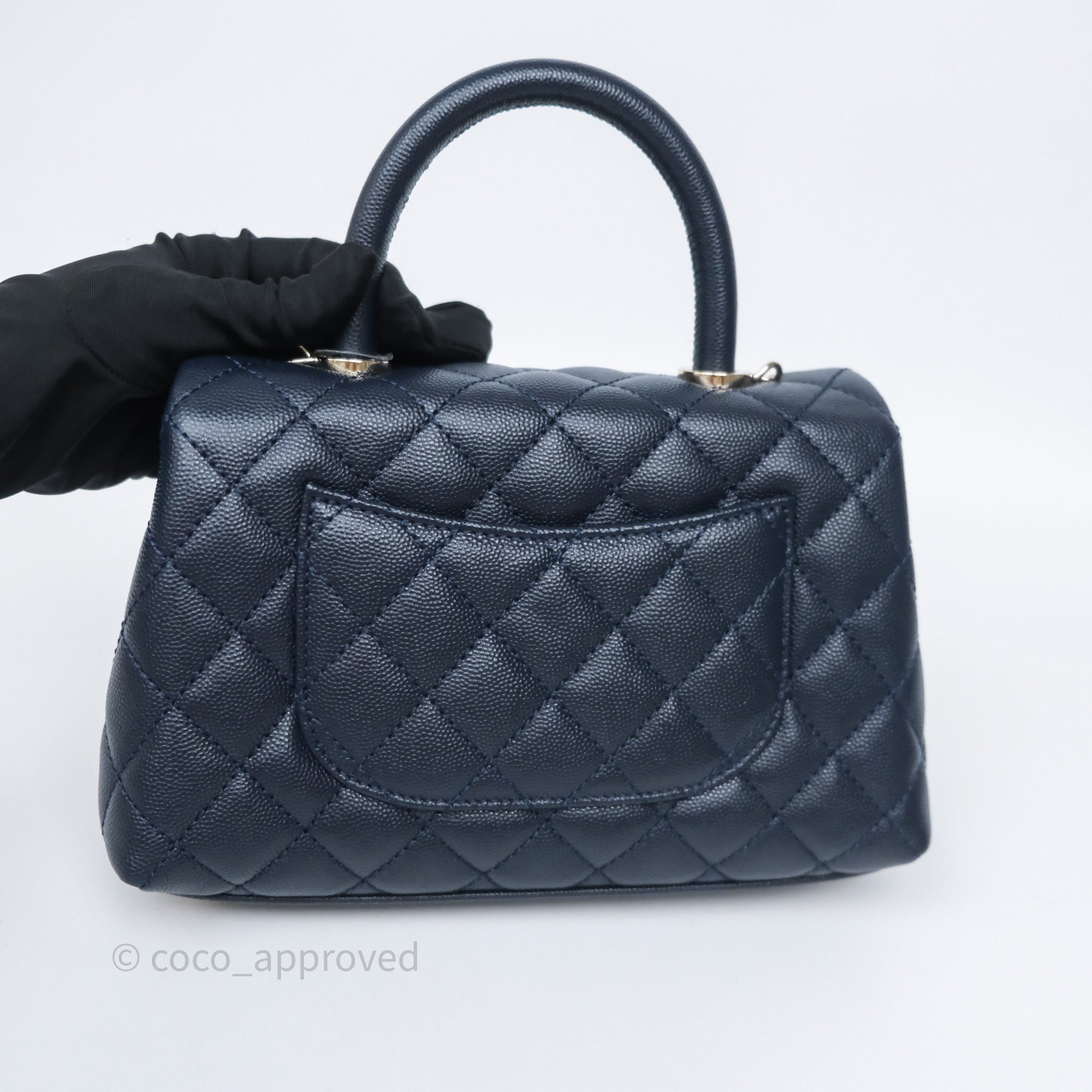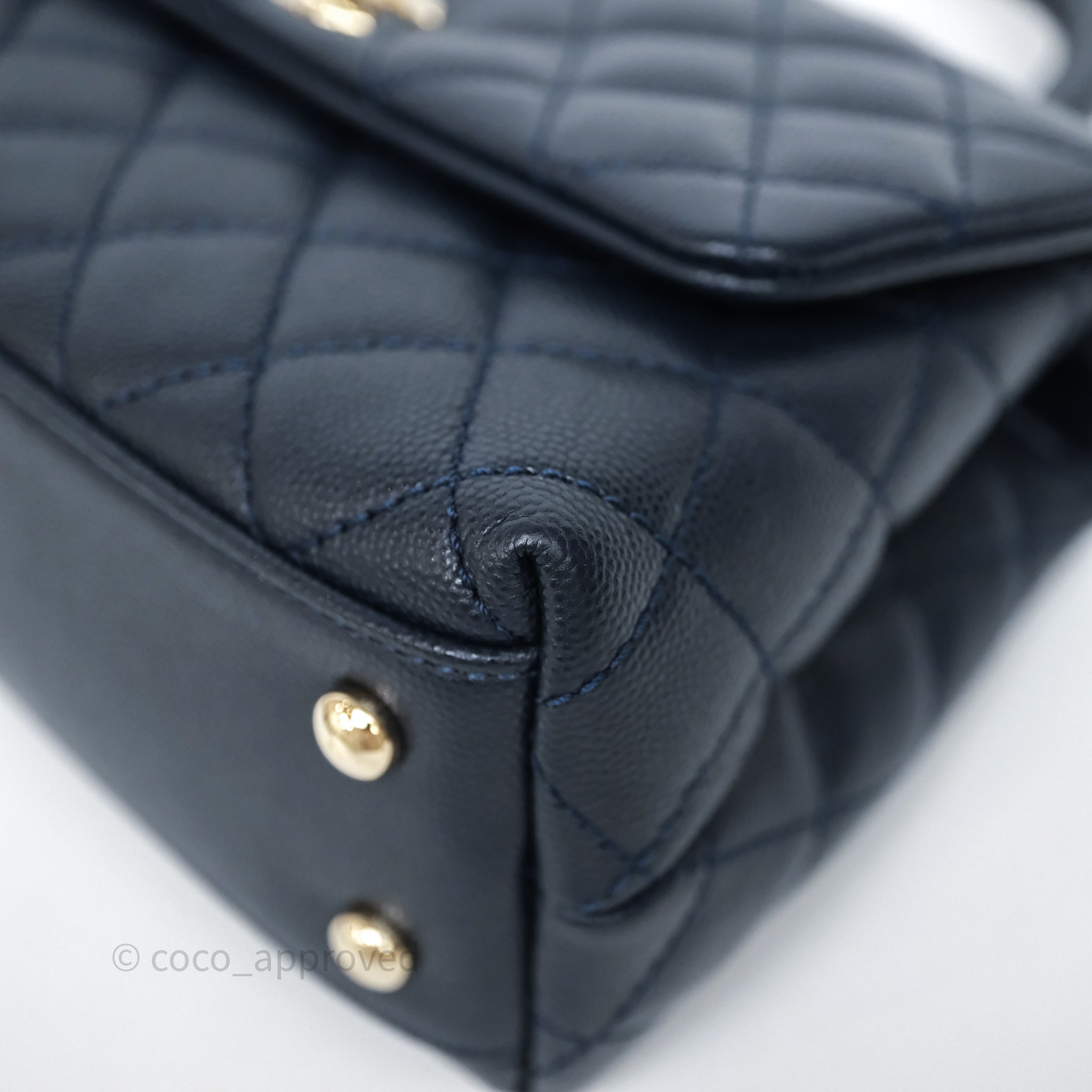 Chanel Small Coco Handle Navy Caviar Light Gold Hardware