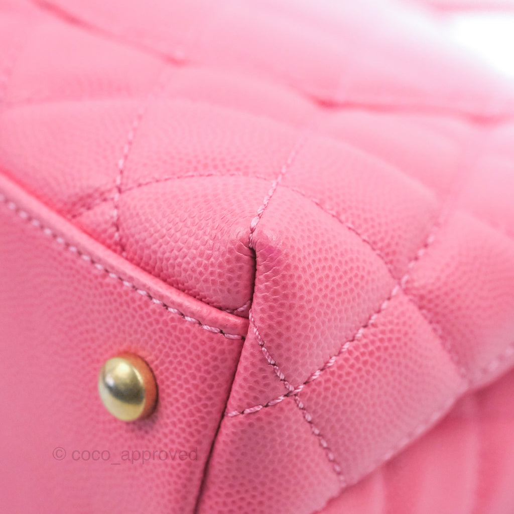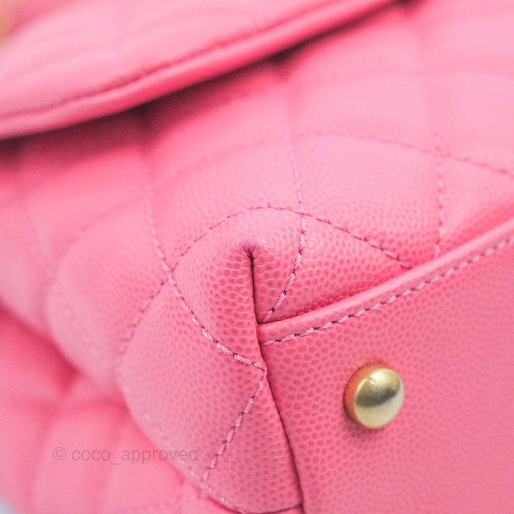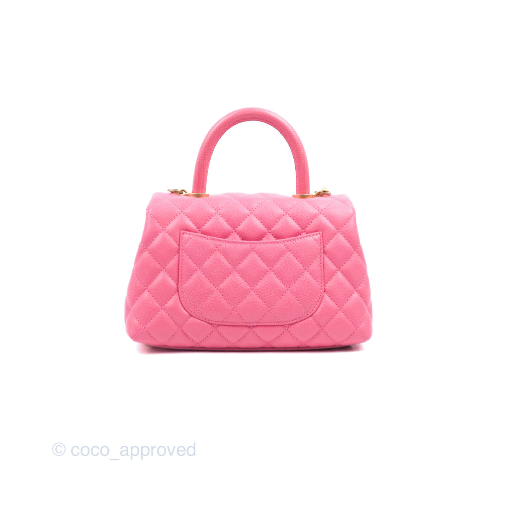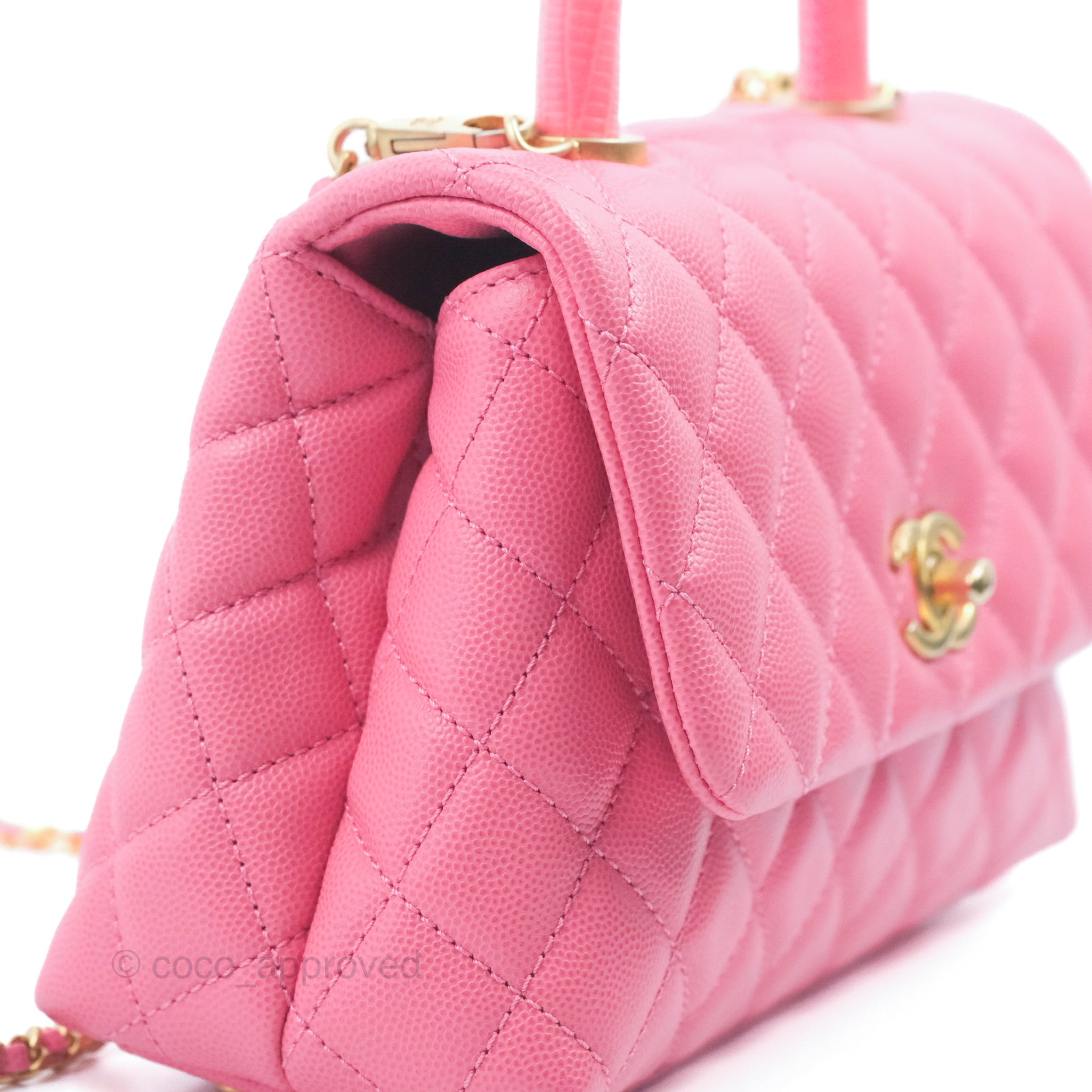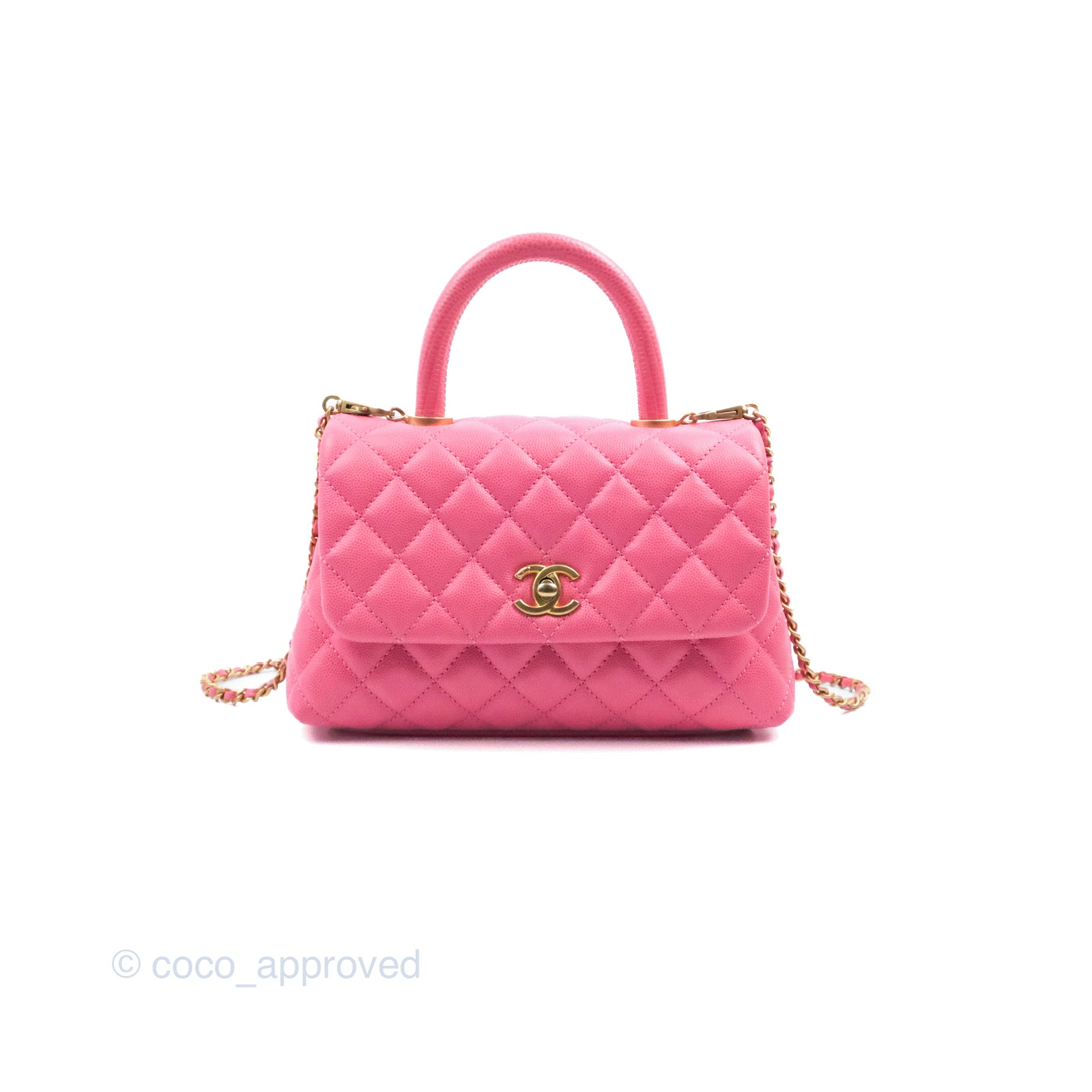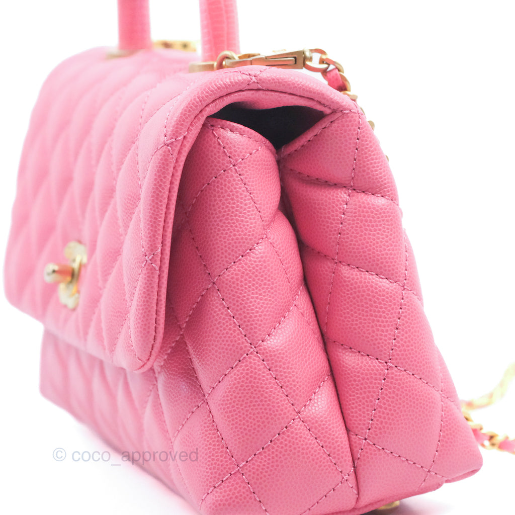 Chanel Small Coco Handle Quilted Pink Caviar Aged Gold Hardware Lizard Embossed Handle