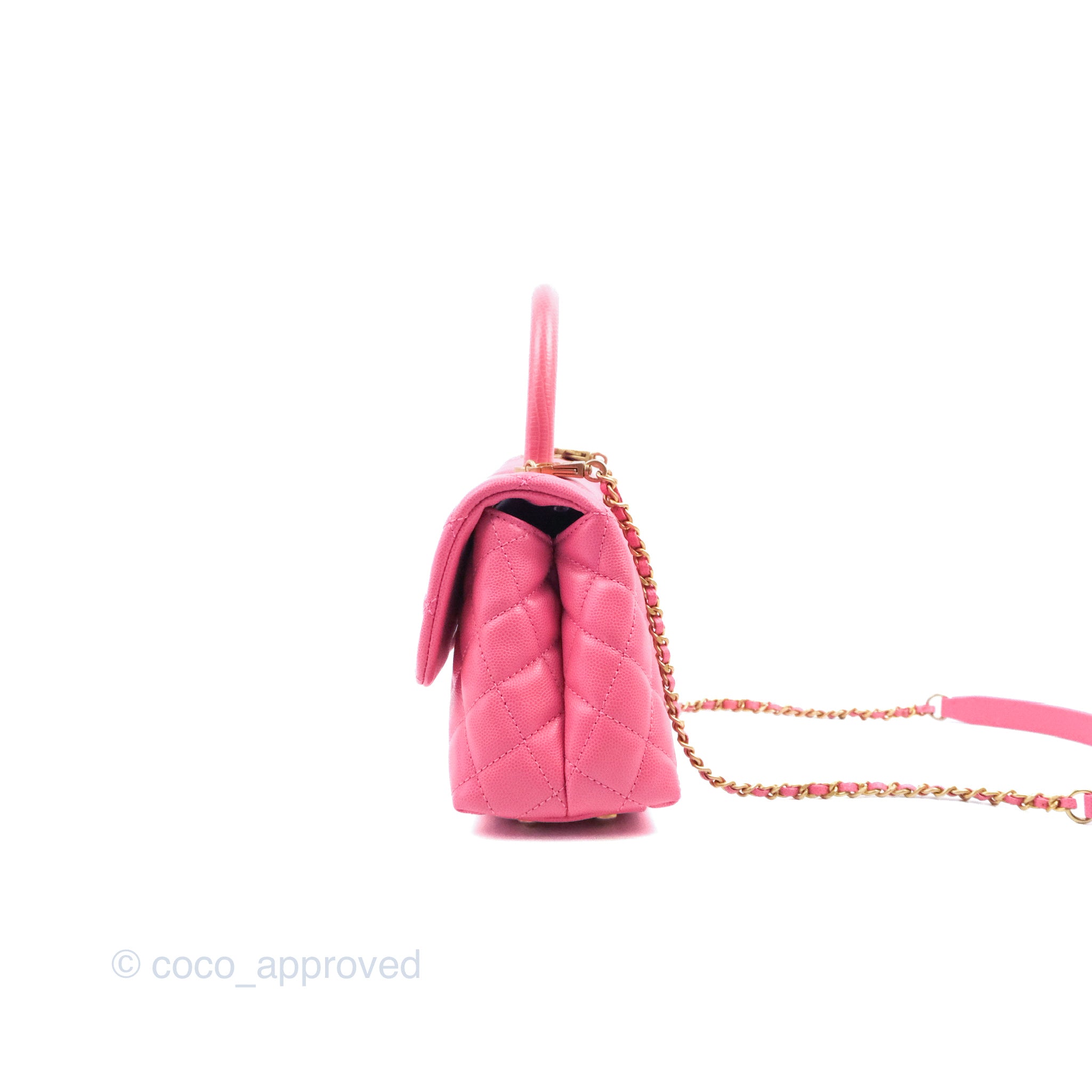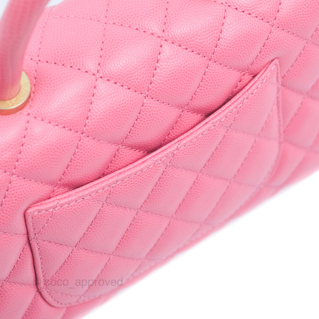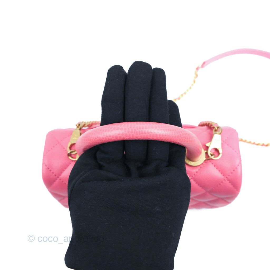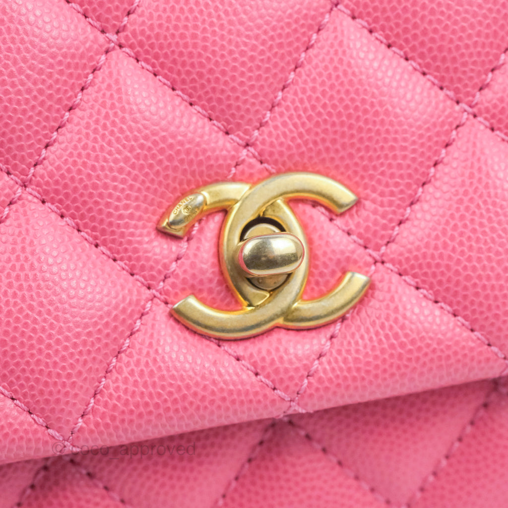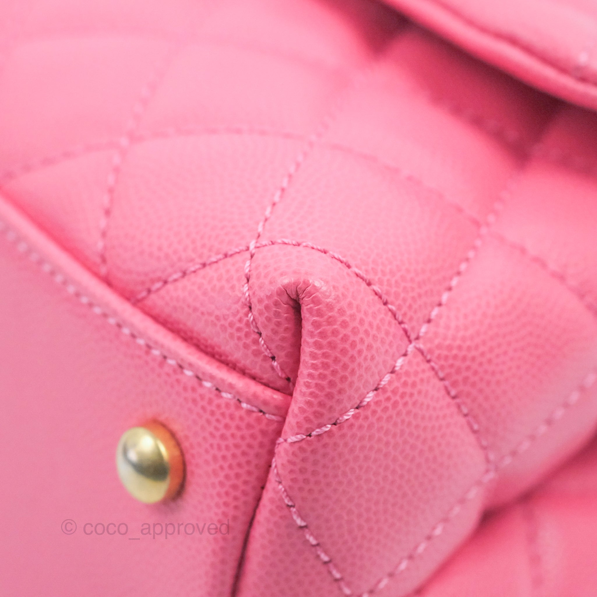 Chanel Small Coco Handle Quilted Pink Caviar Aged Gold Hardware Lizard Embossed Handle