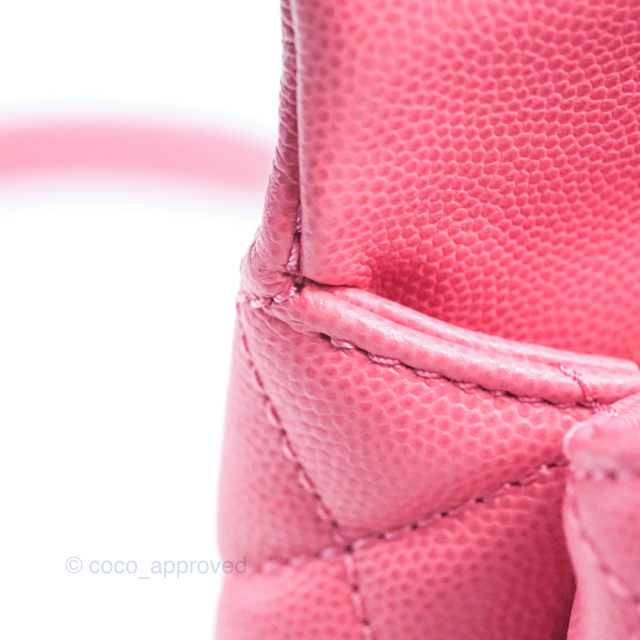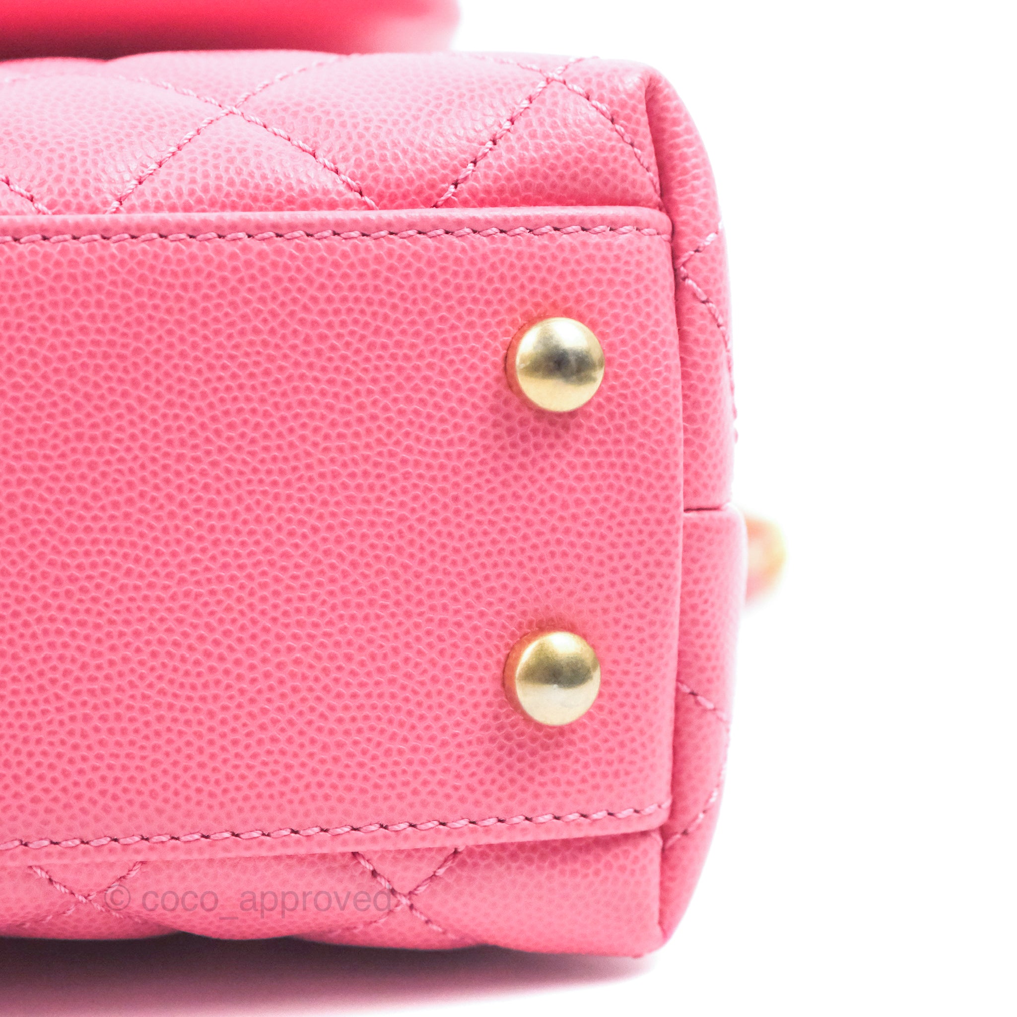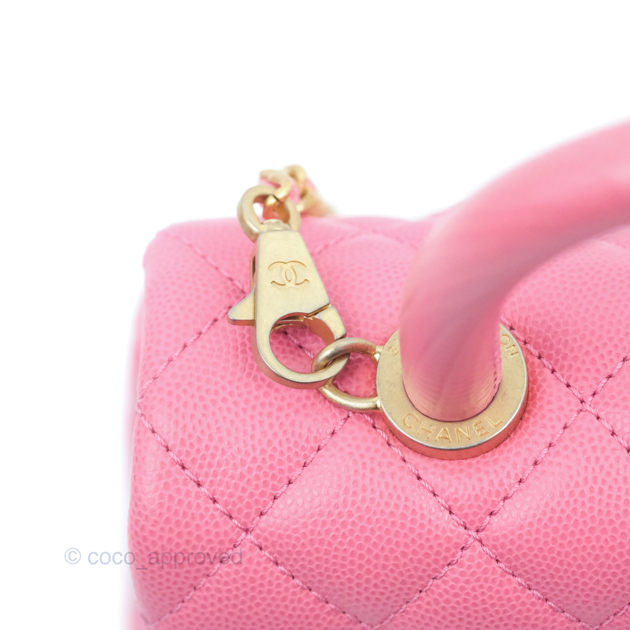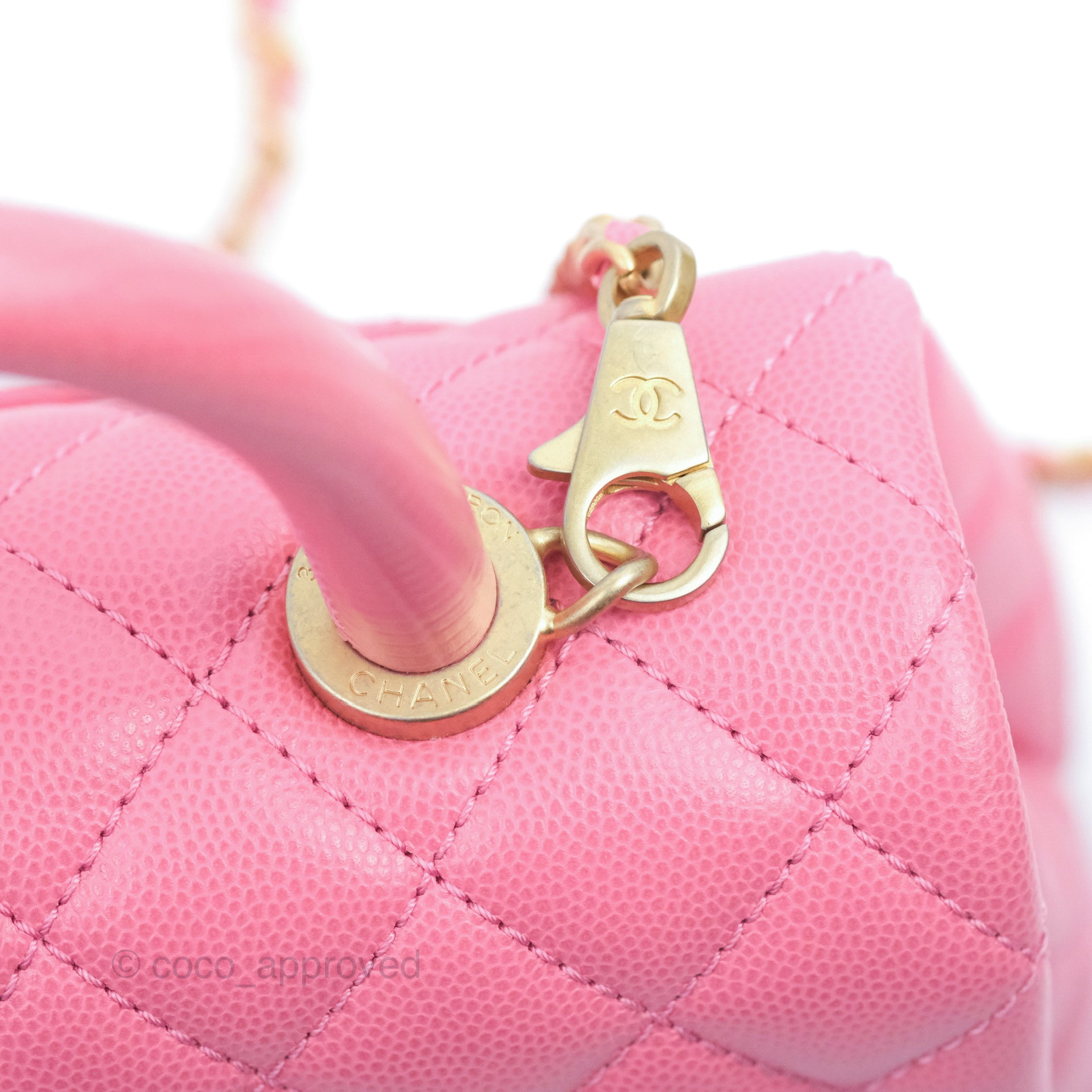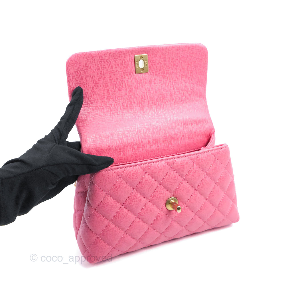 Chanel Small Coco Handle Quilted Pink Caviar Aged Gold Hardware Lizard Embossed Handle