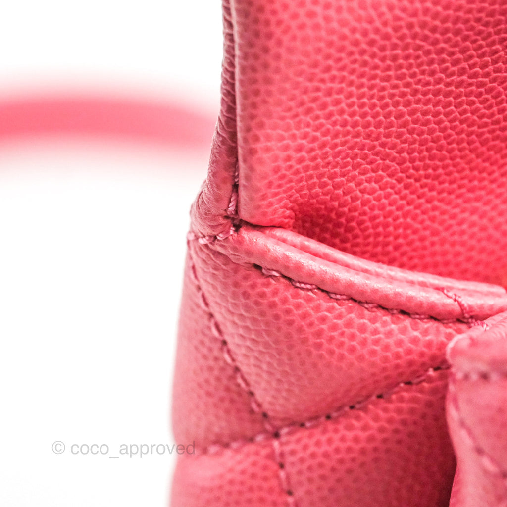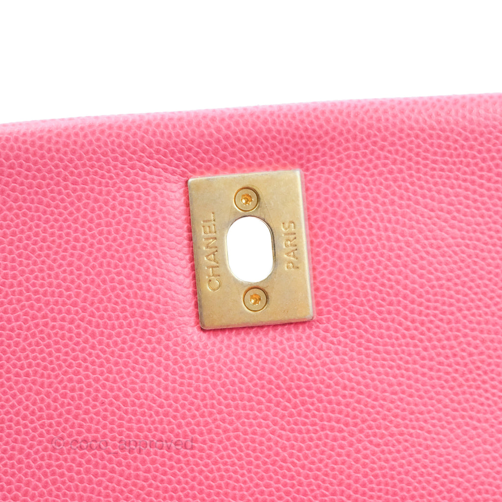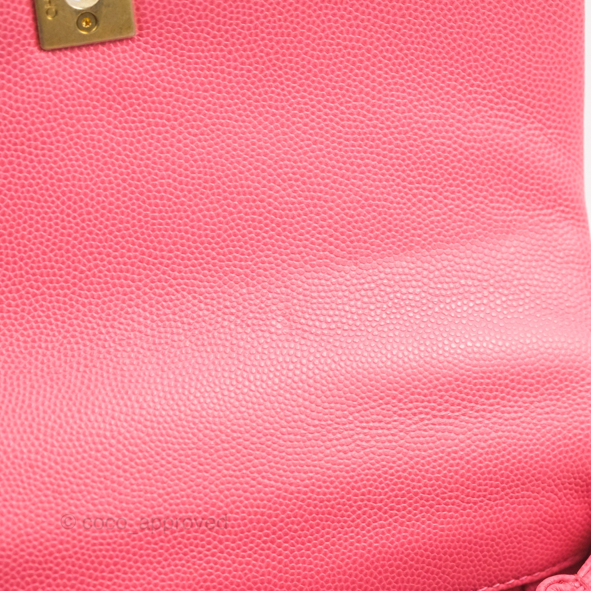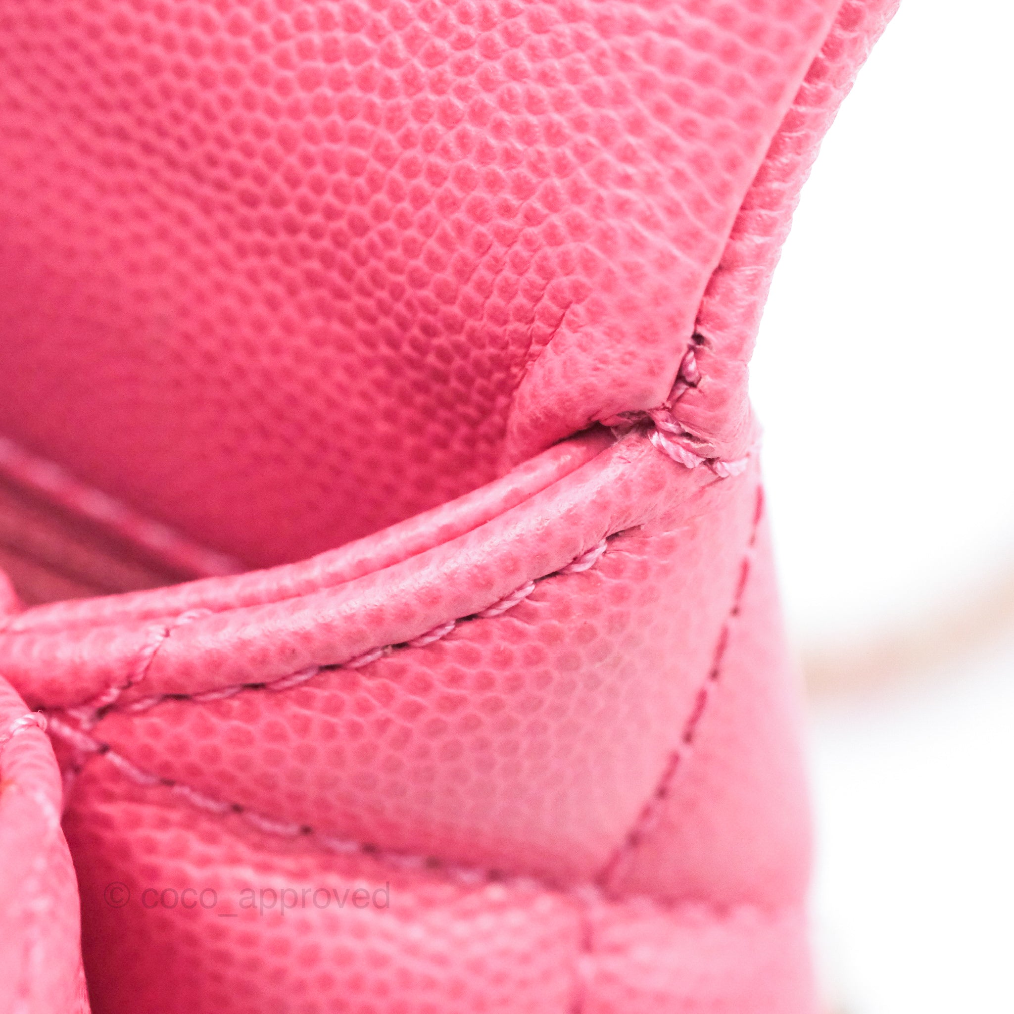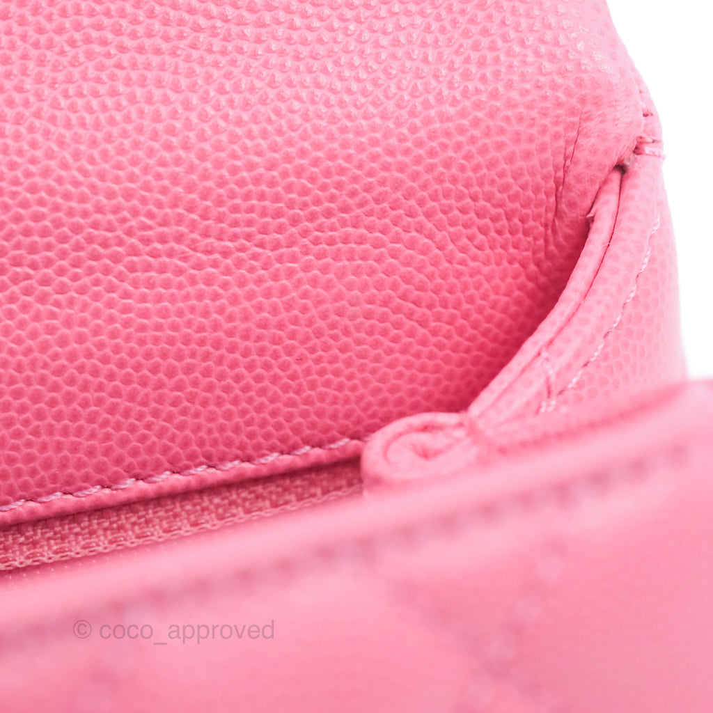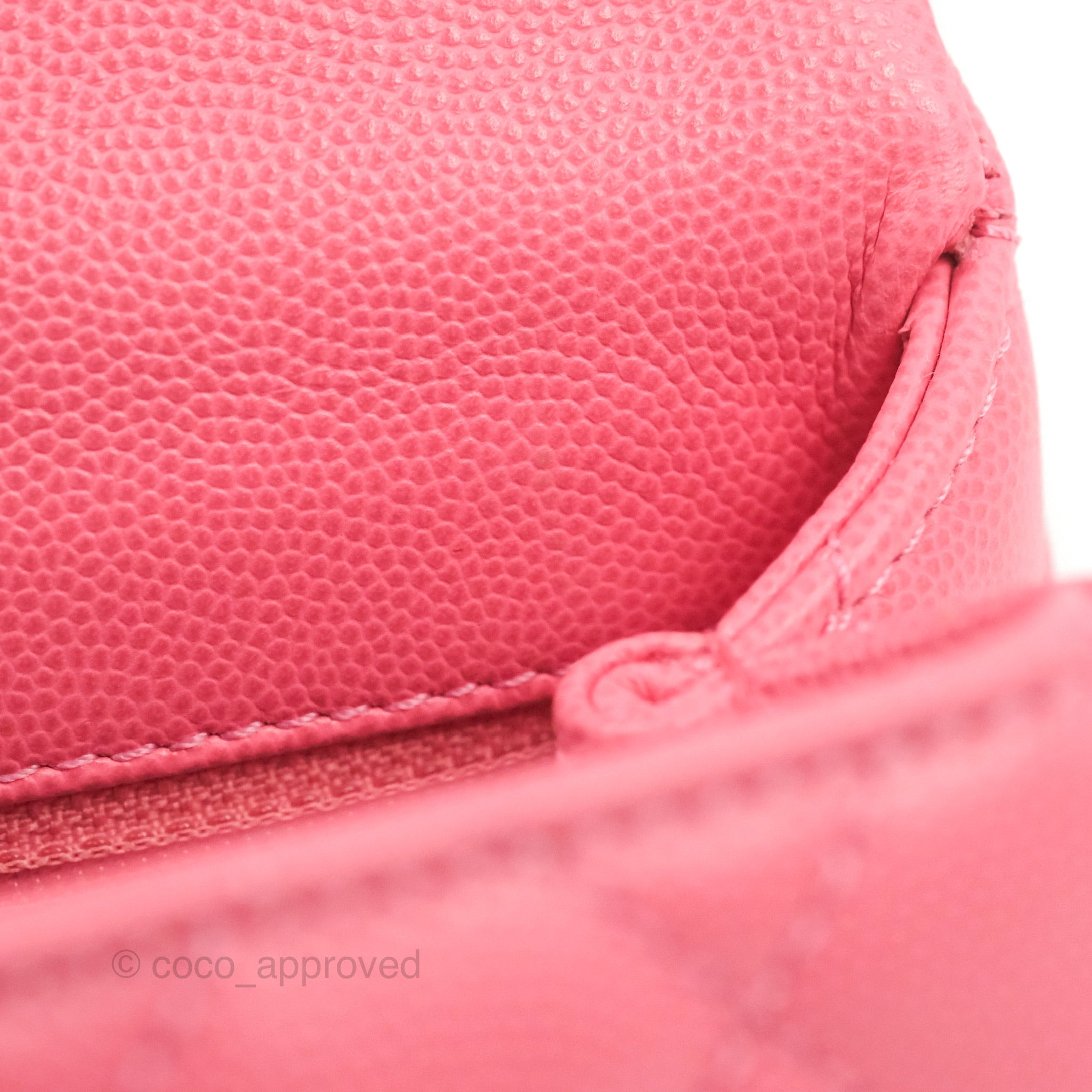 Chanel Small Coco Handle Quilted Pink Caviar Aged Gold Hardware Lizard Embossed Handle