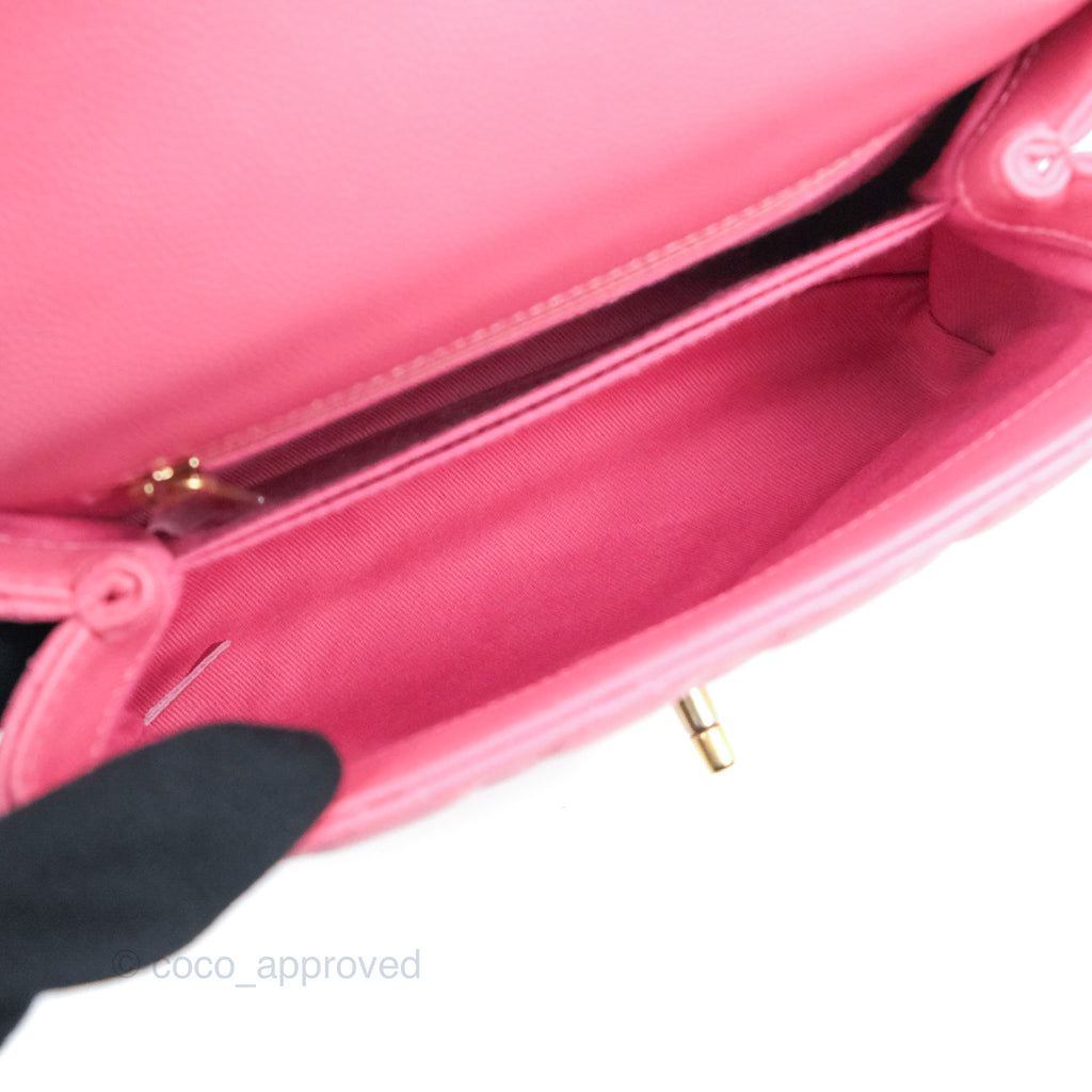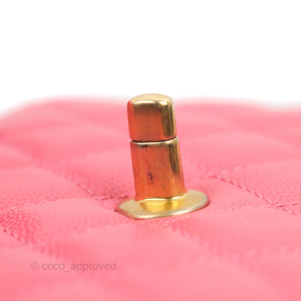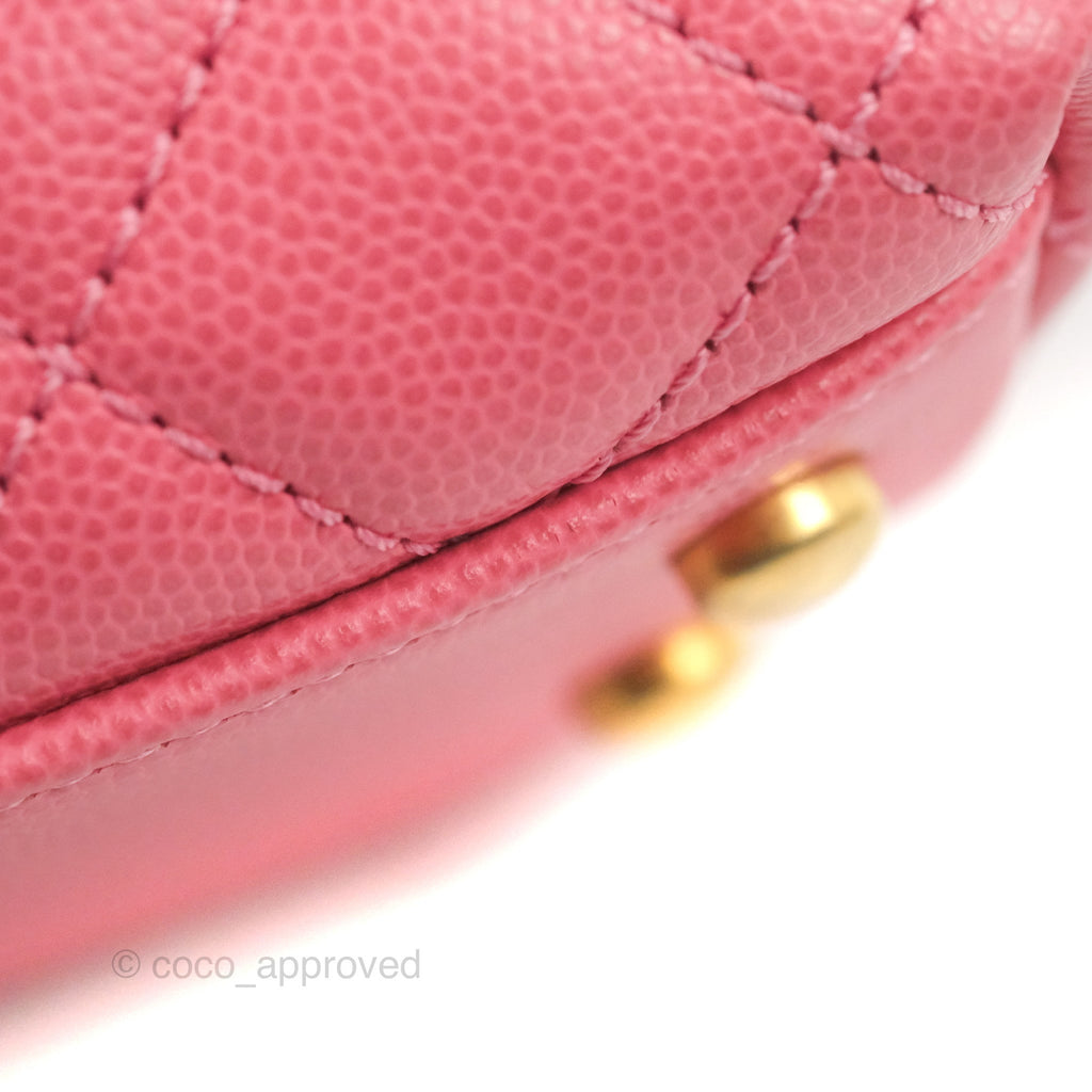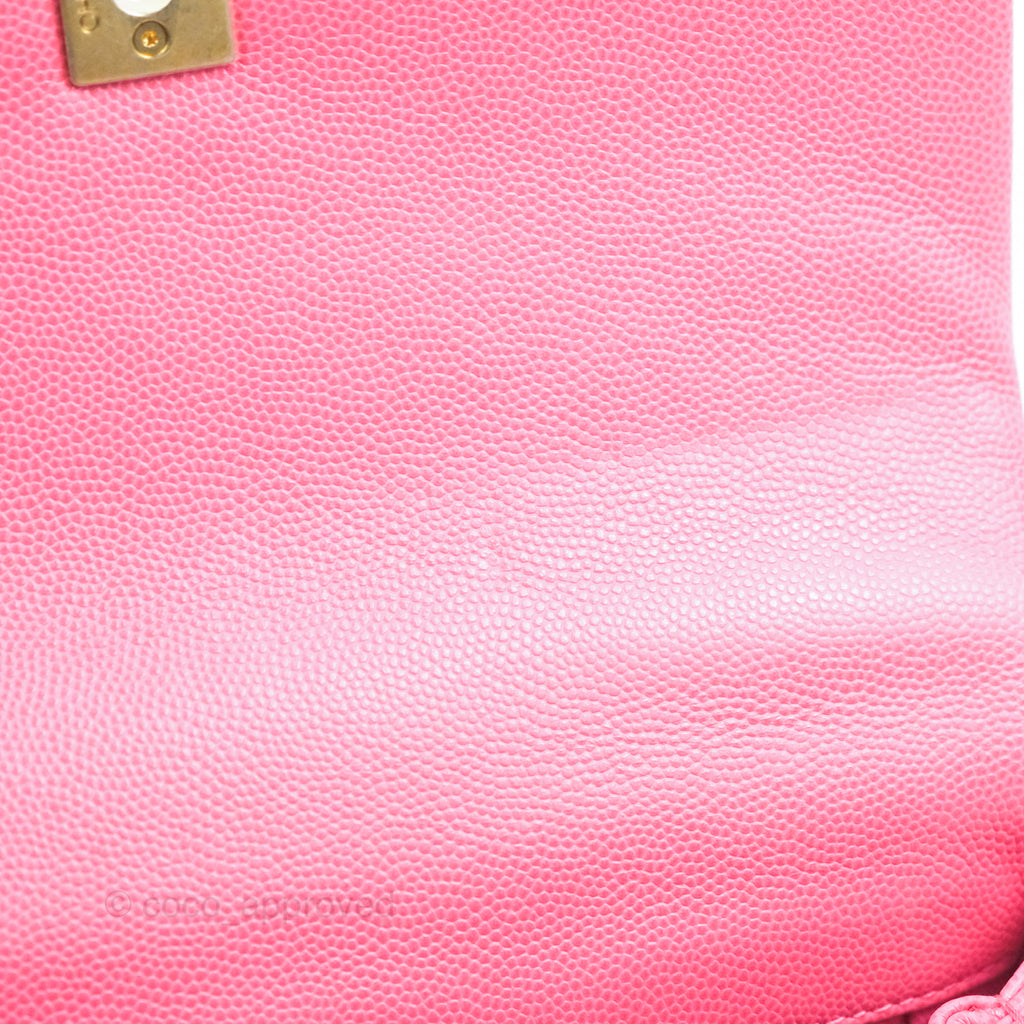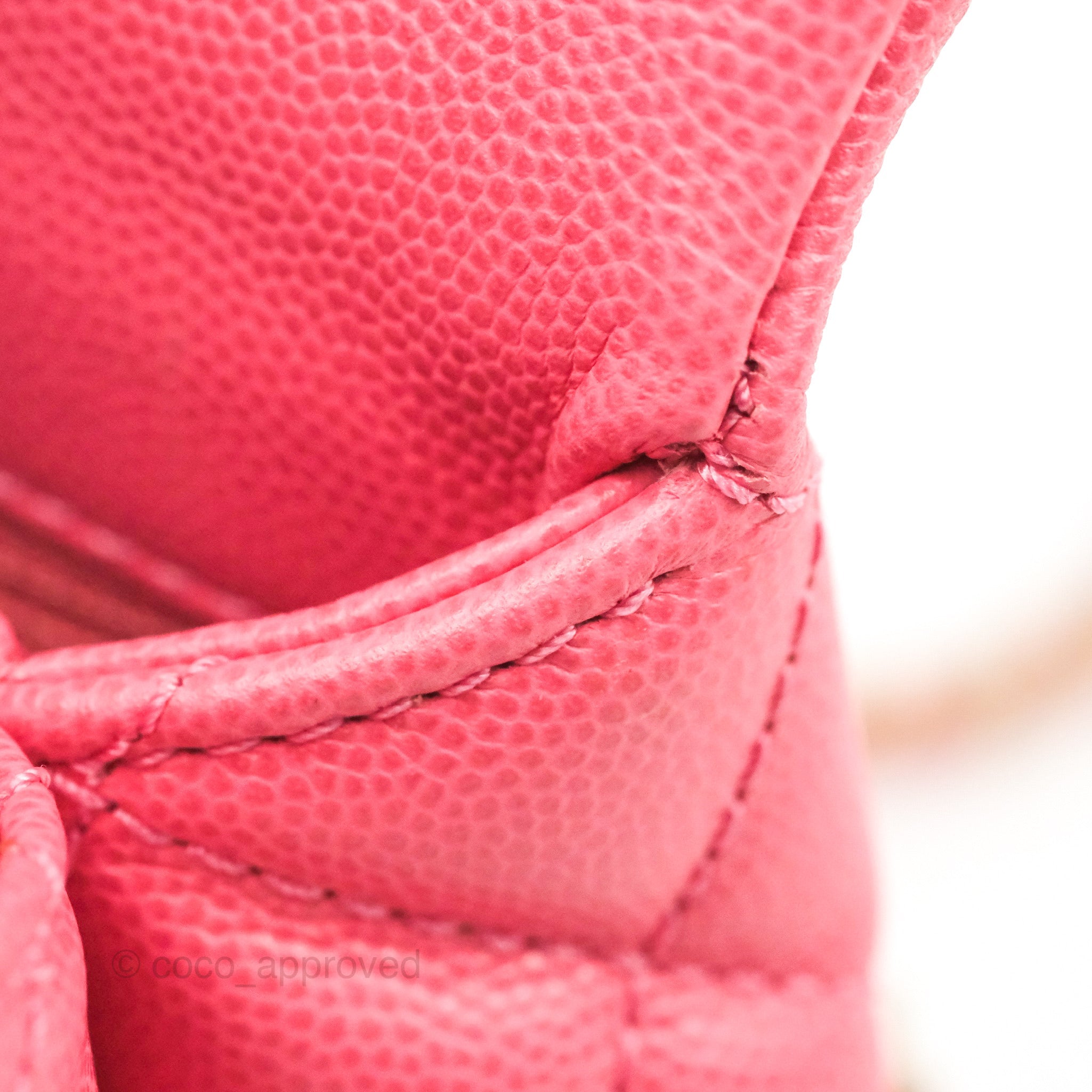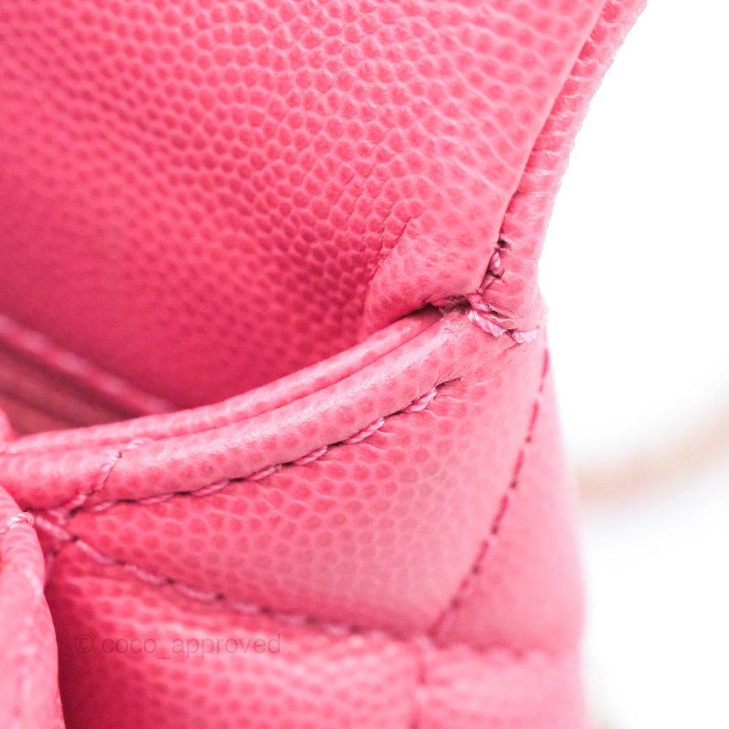 Chanel Small Coco Handle Quilted Pink Caviar Aged Gold Hardware Lizard Embossed Handle
