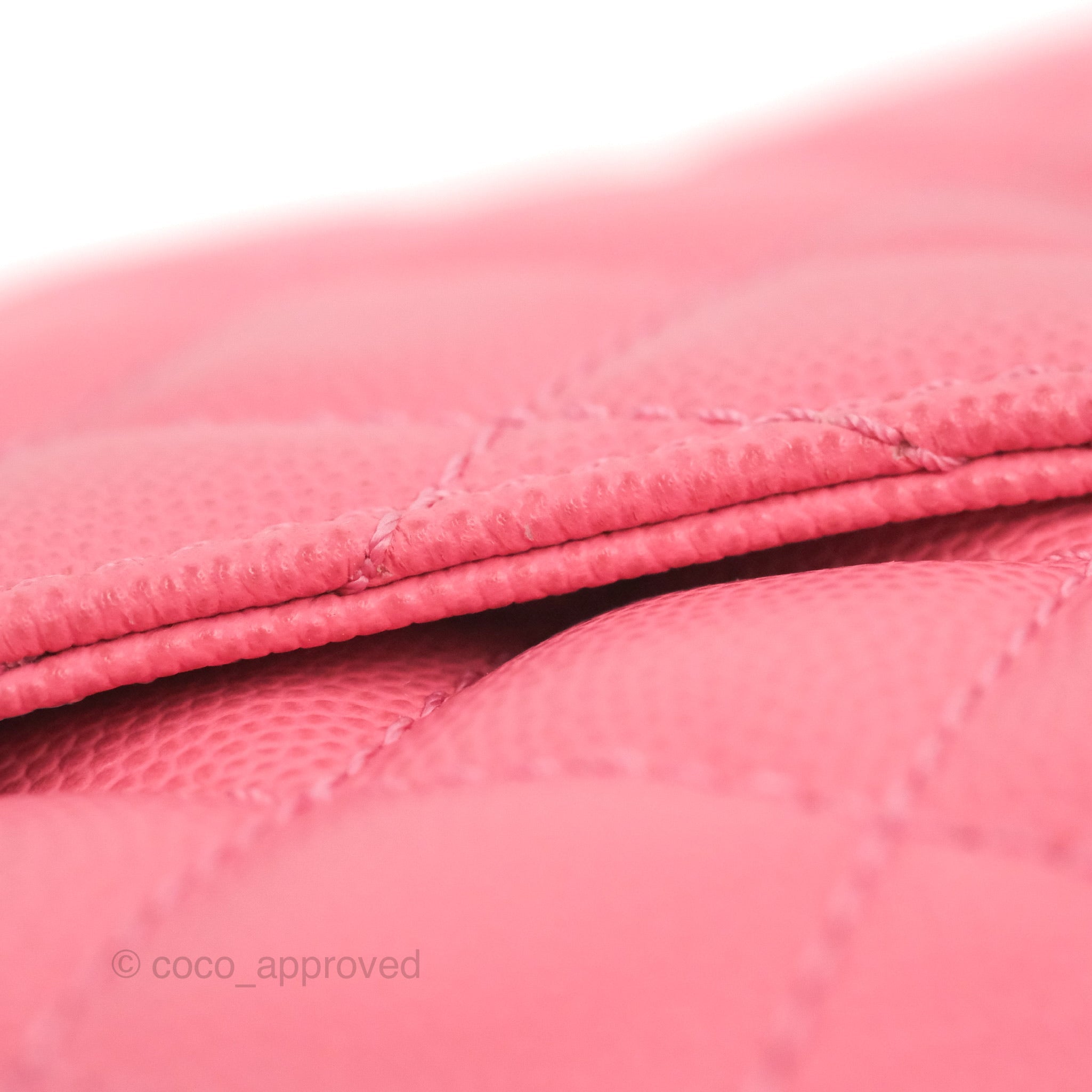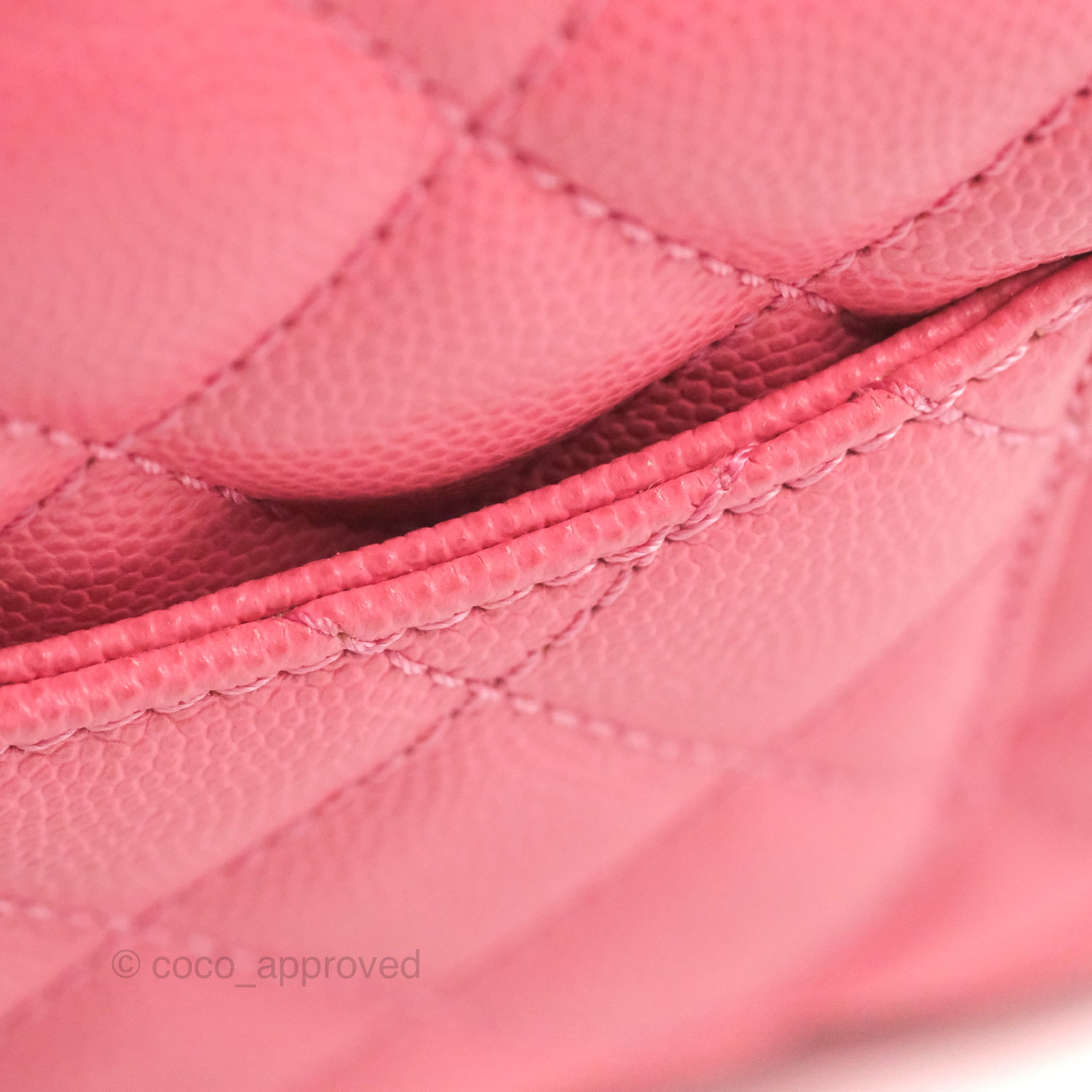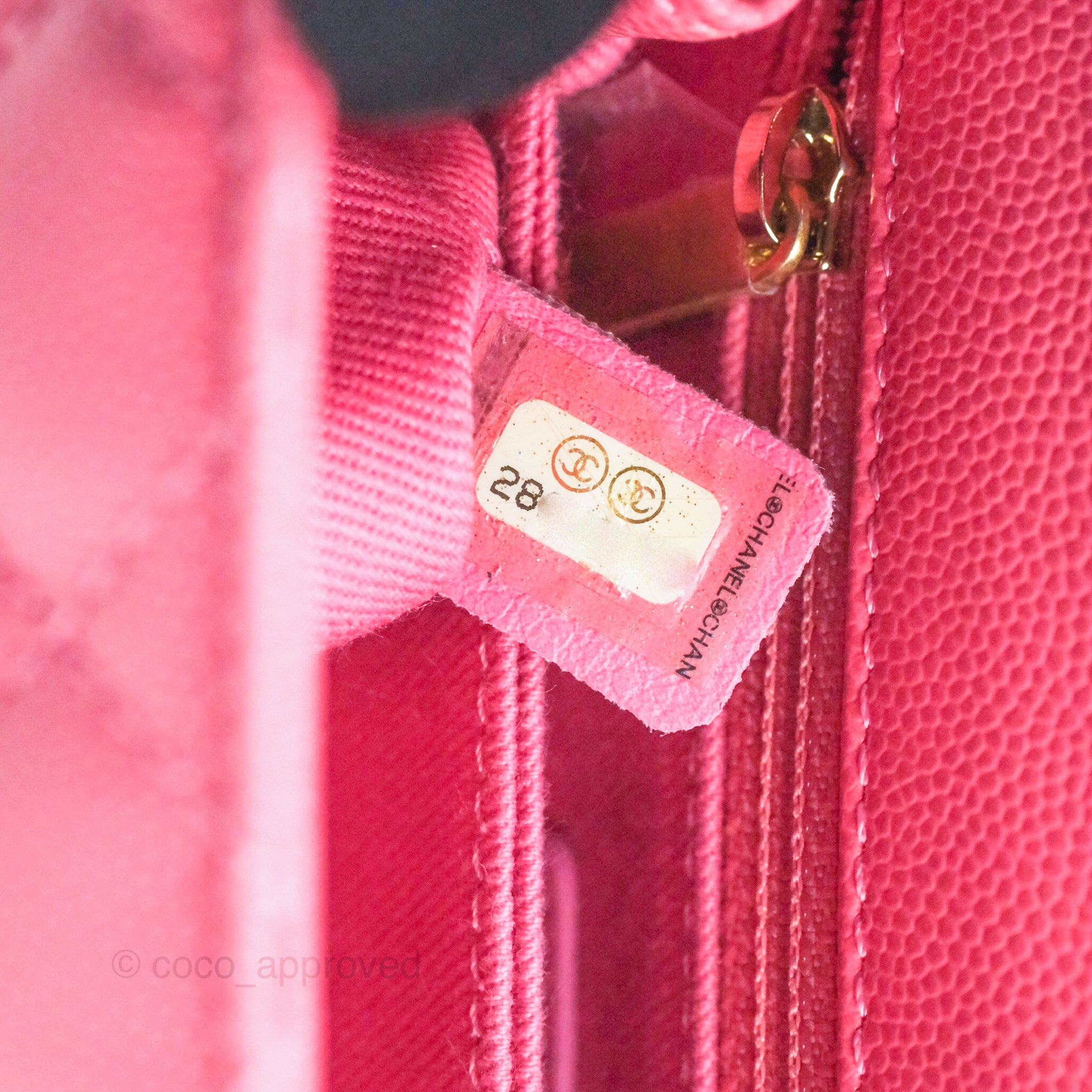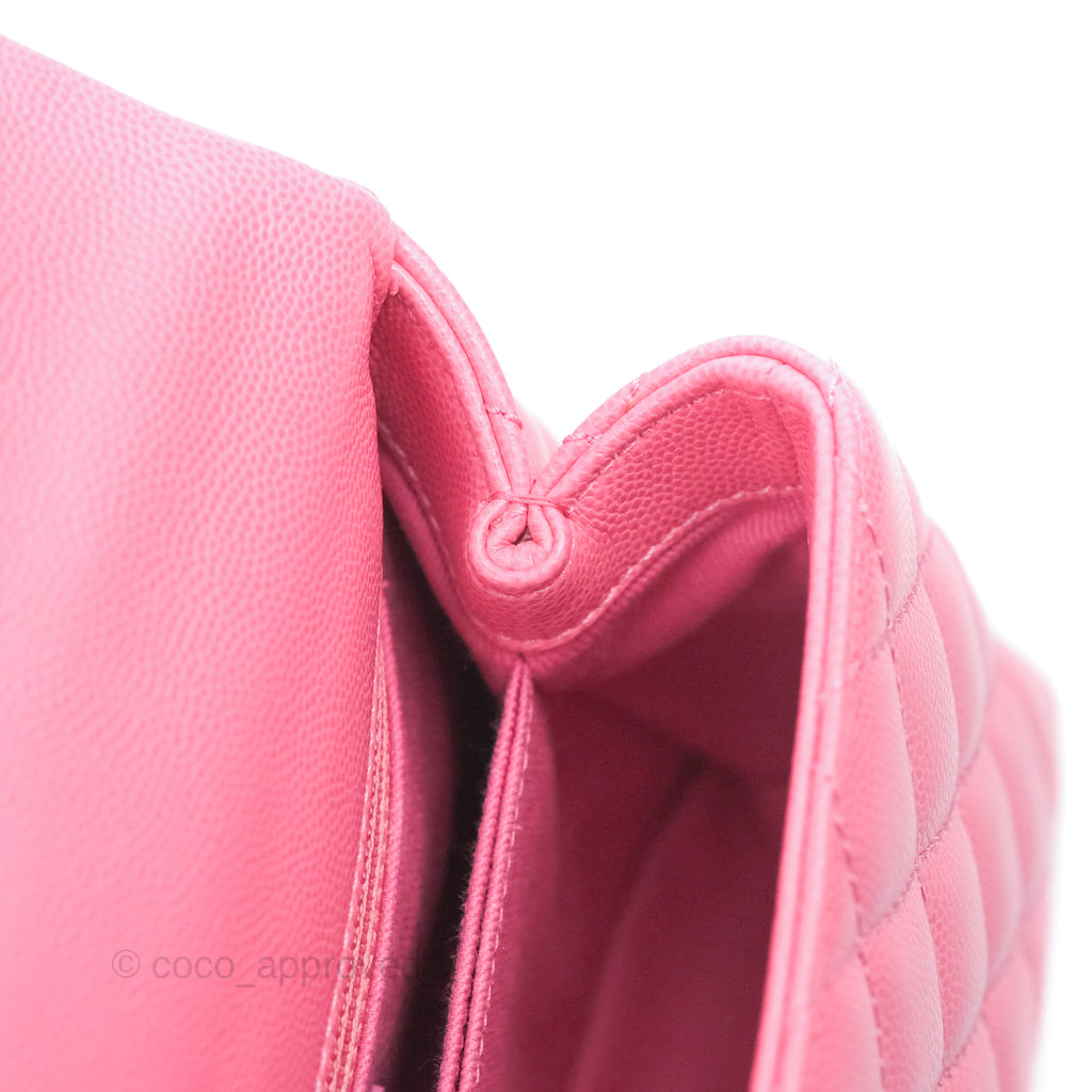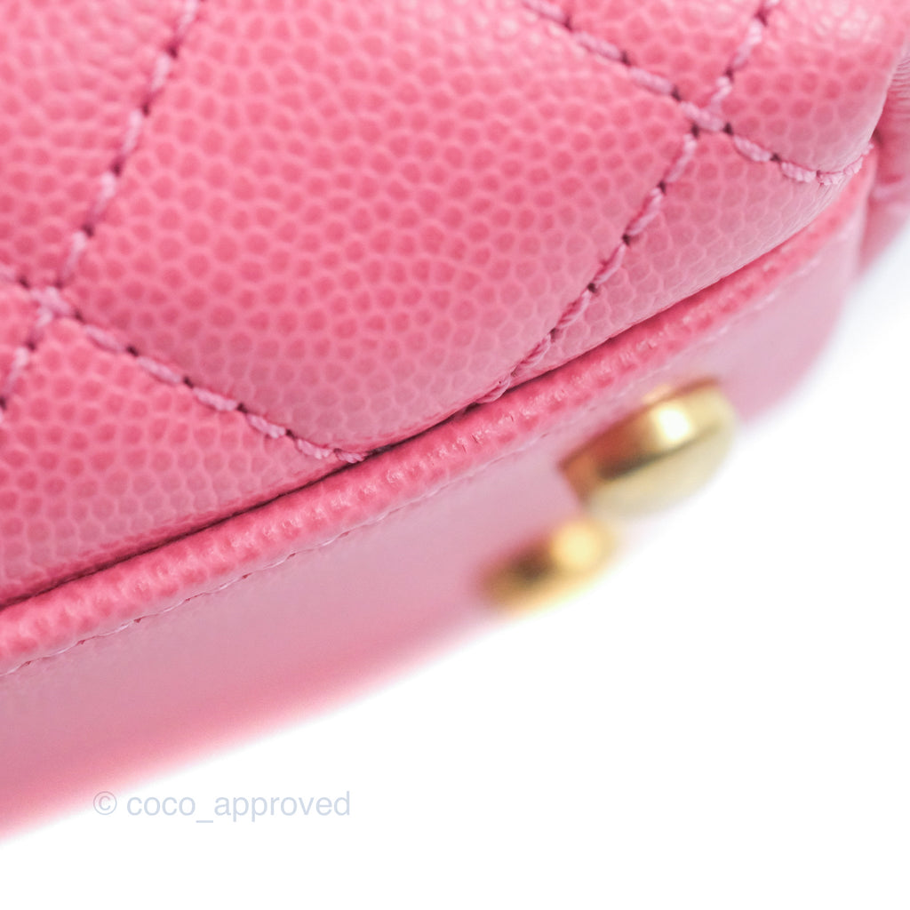Chanel Small Coco Handle Quilted Pink Caviar Aged Gold Hardware Lizard Embossed Handle