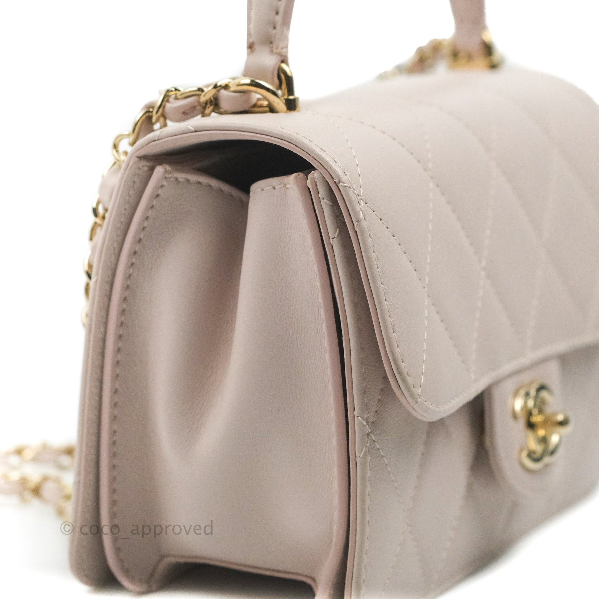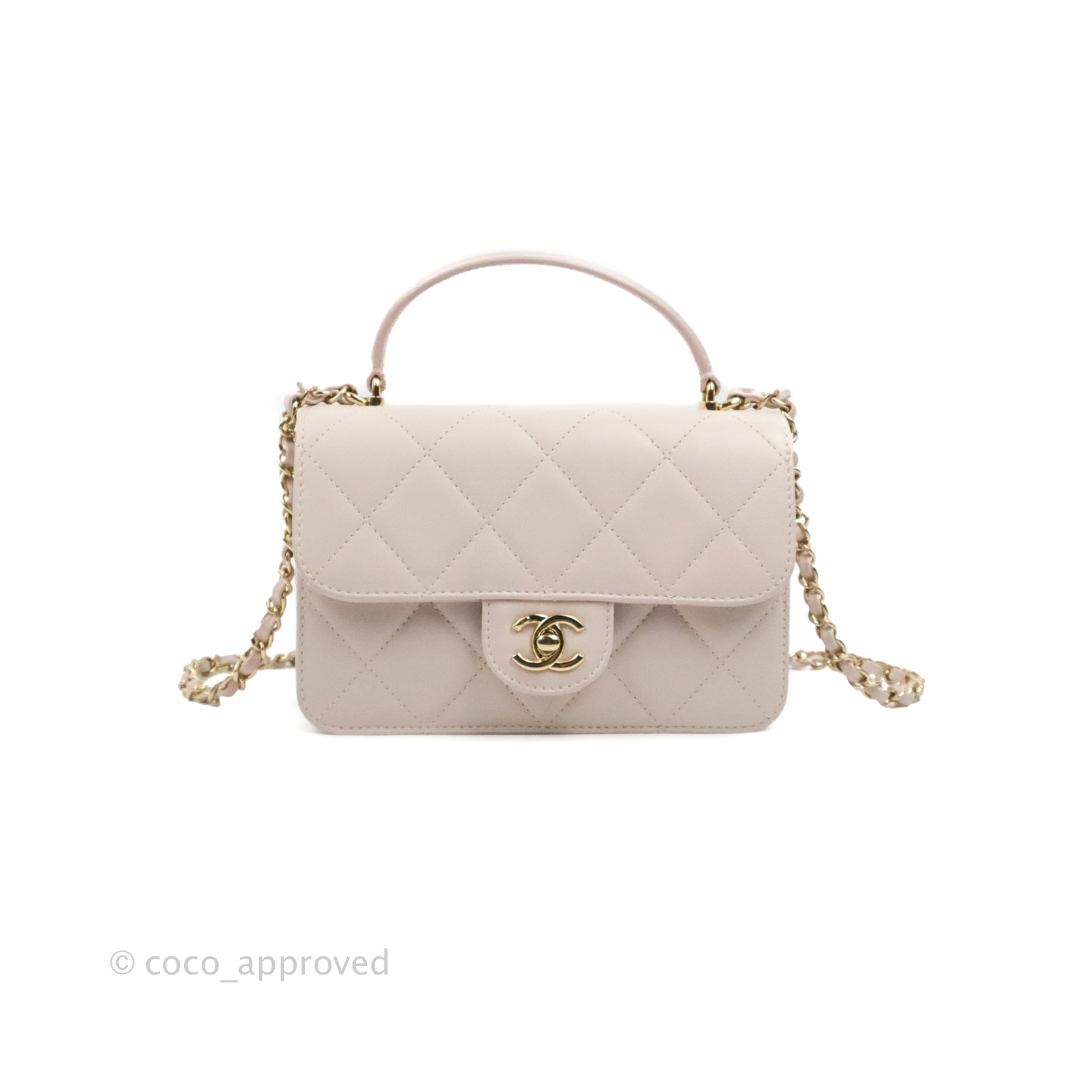 Chanel Small Coco Lady Quilted Flap Bag With Top Handle Light Pink Calfskin Gold Hardware is now sold. Please subscribe for any updates if similar item becomes available.