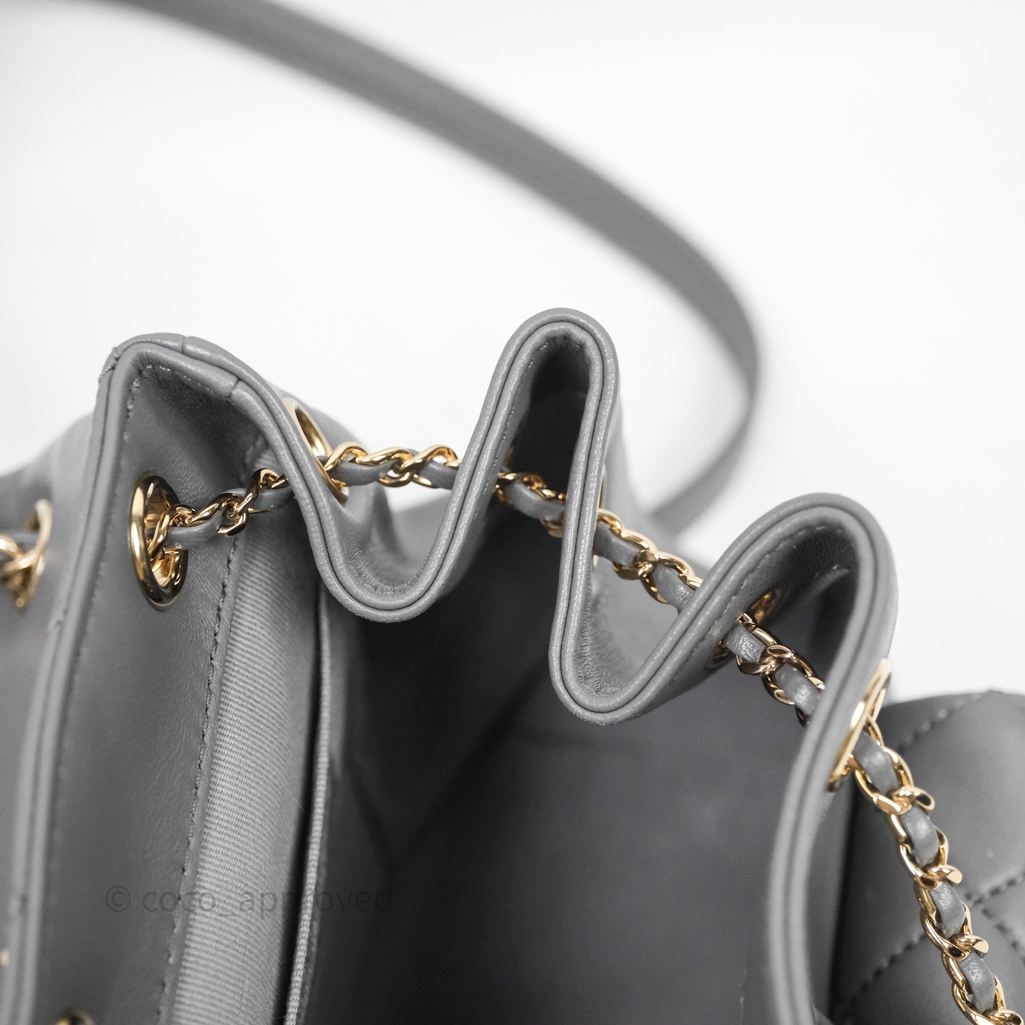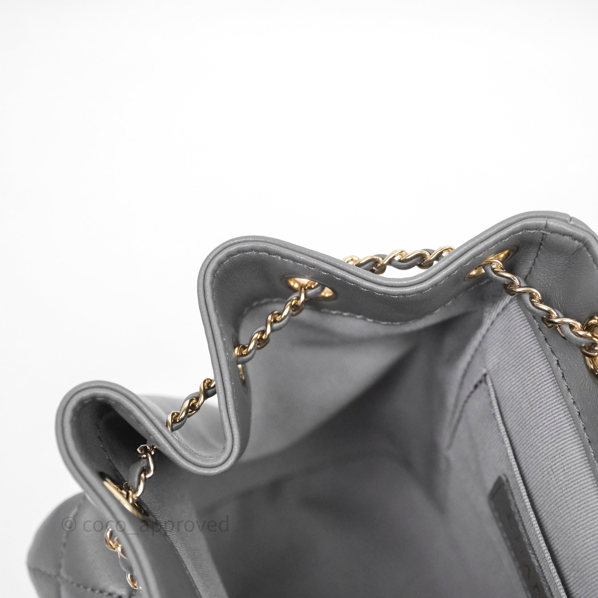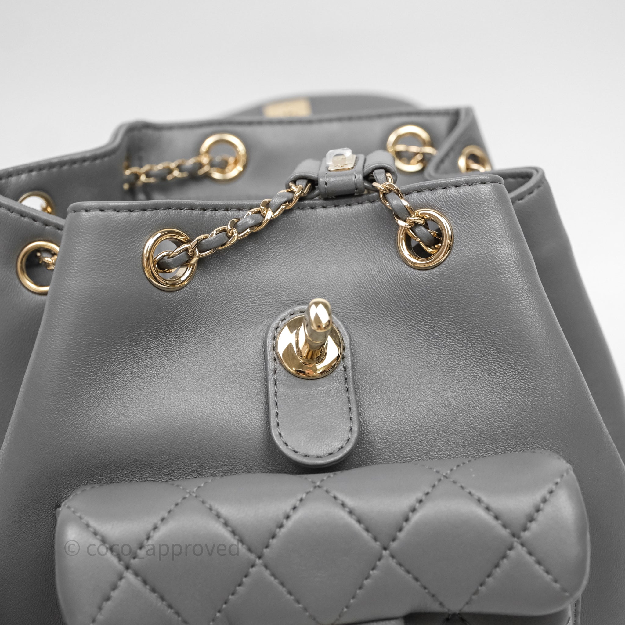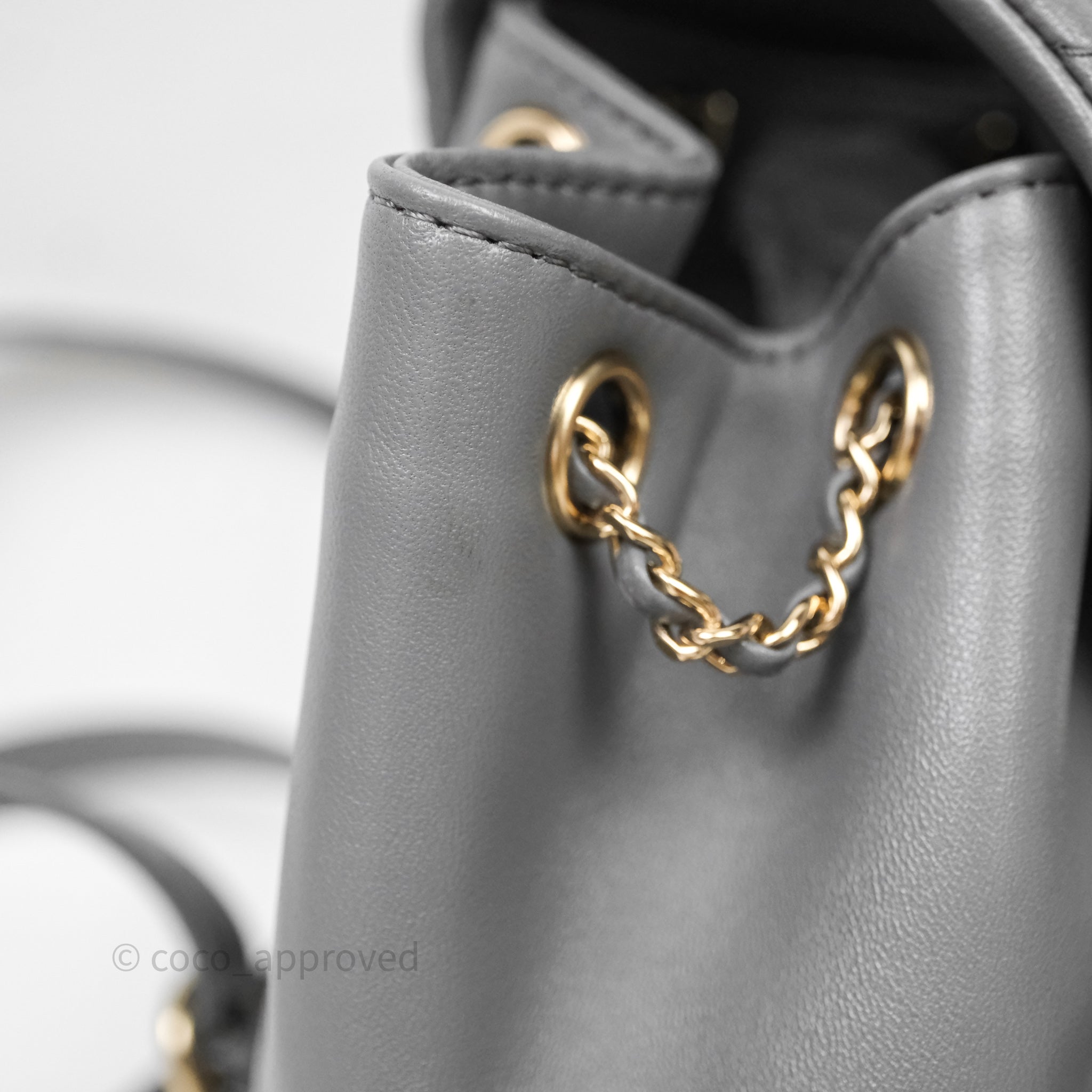 Chanel Small Duma Drawstring Backpack Grey Lambskin Gold Hardware