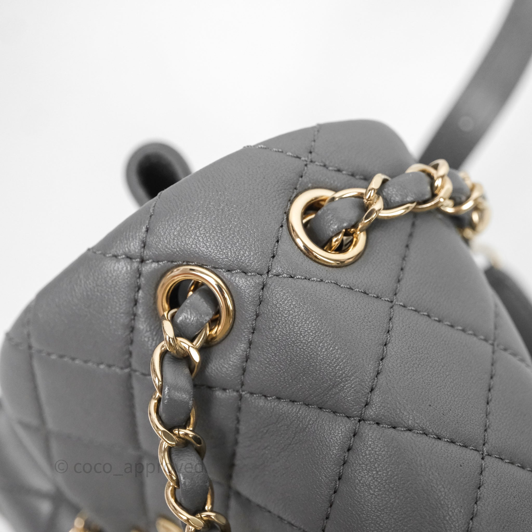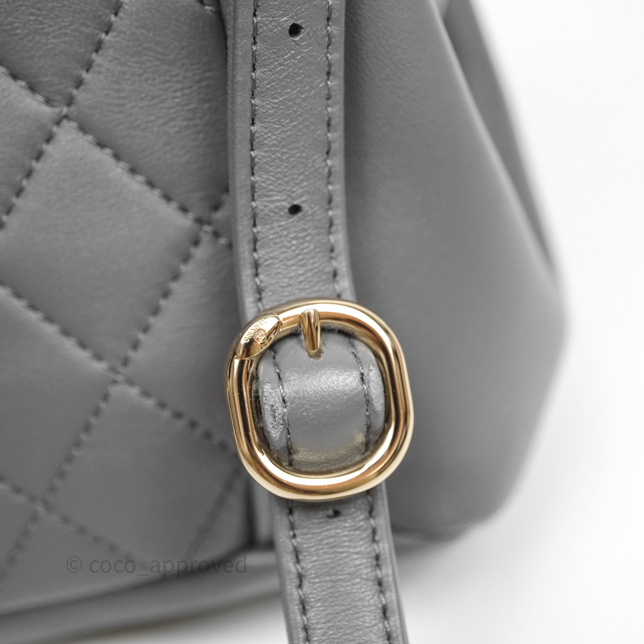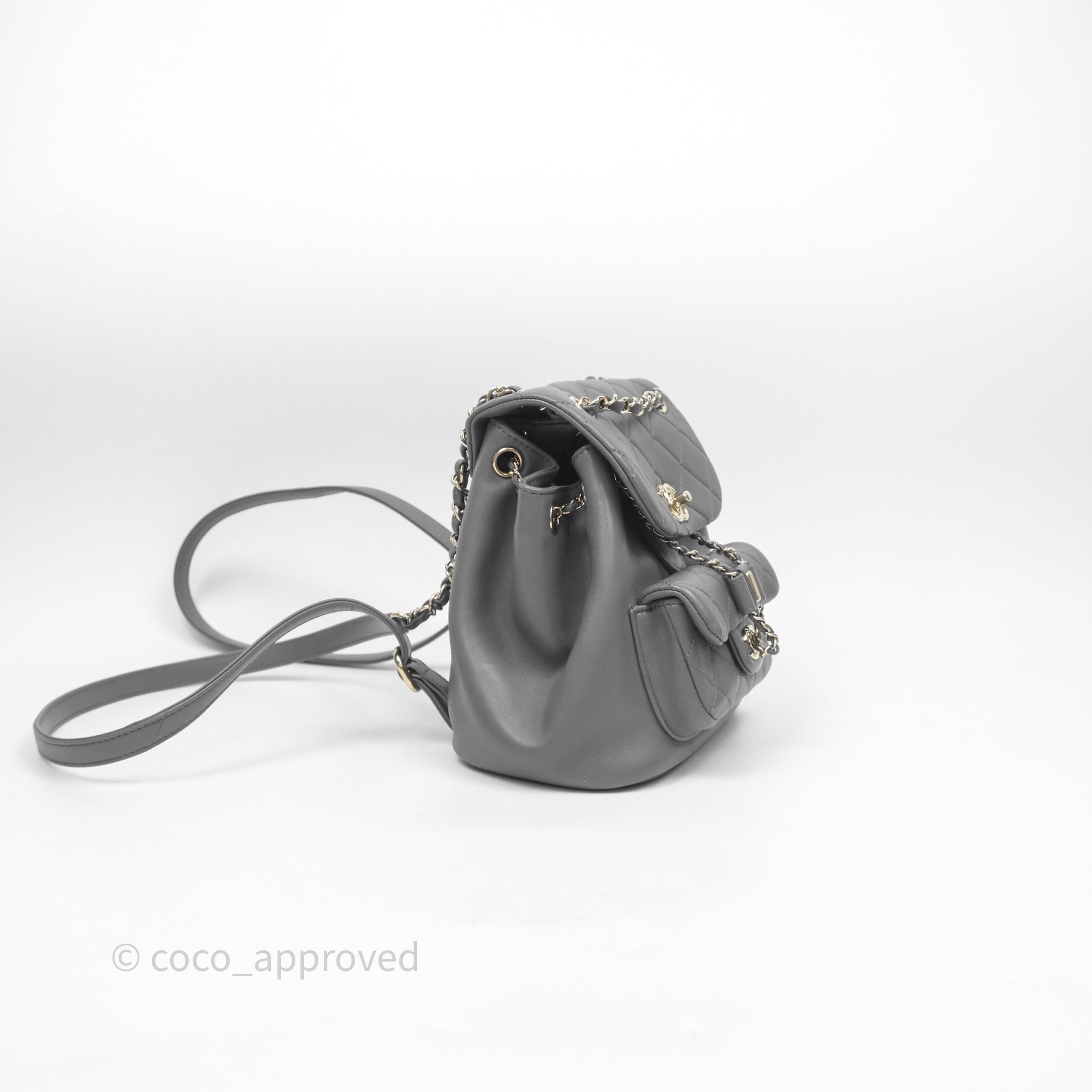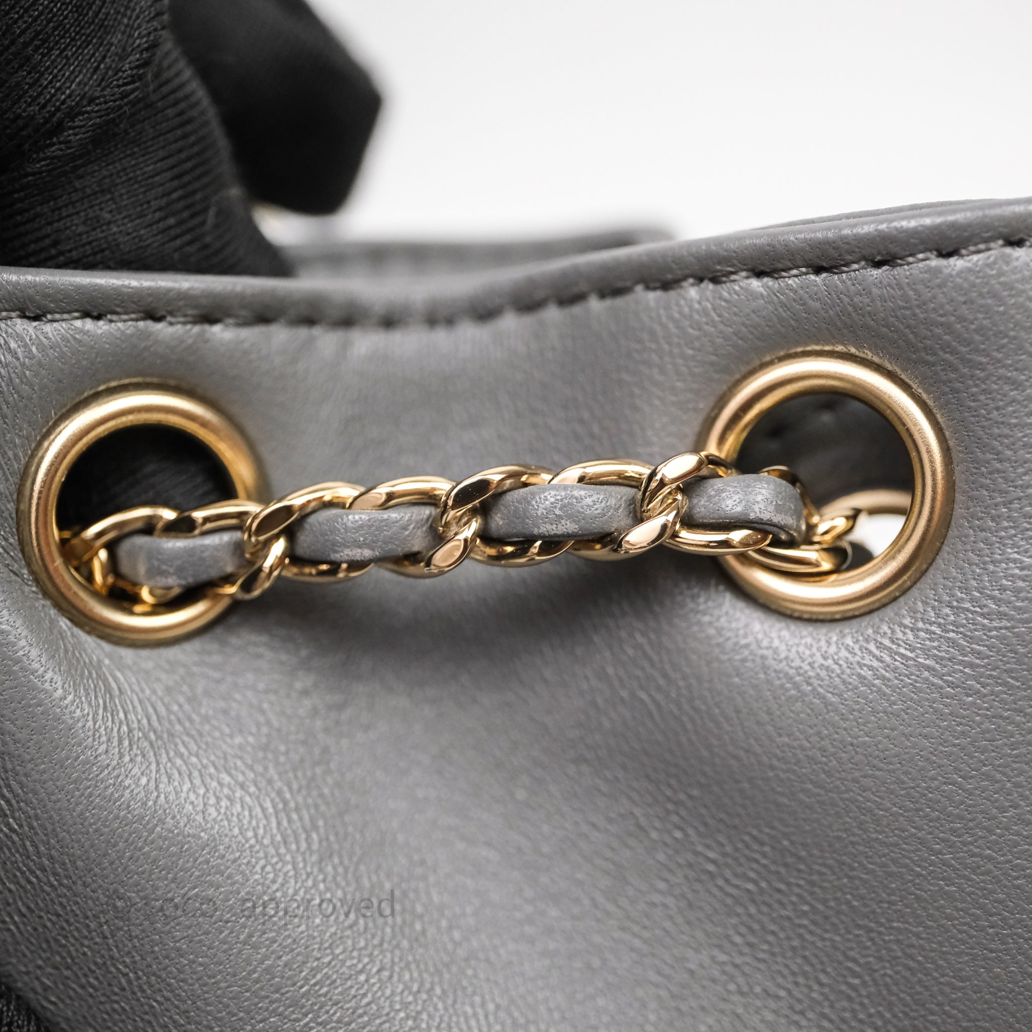 Chanel Small Duma Drawstring Backpack Grey Lambskin Gold Hardware