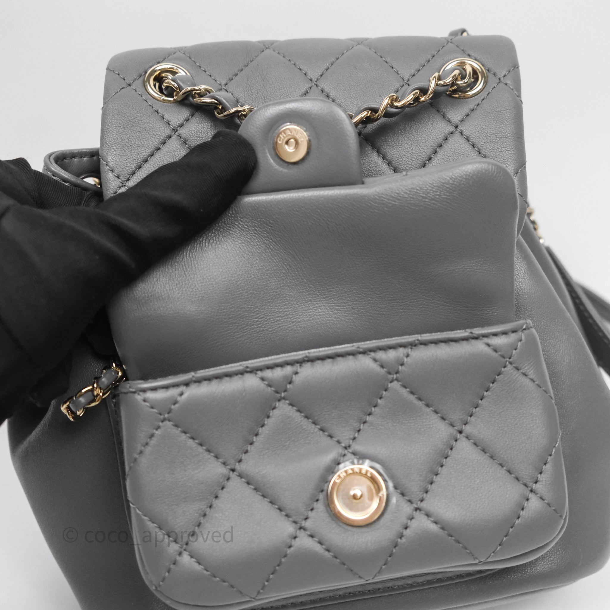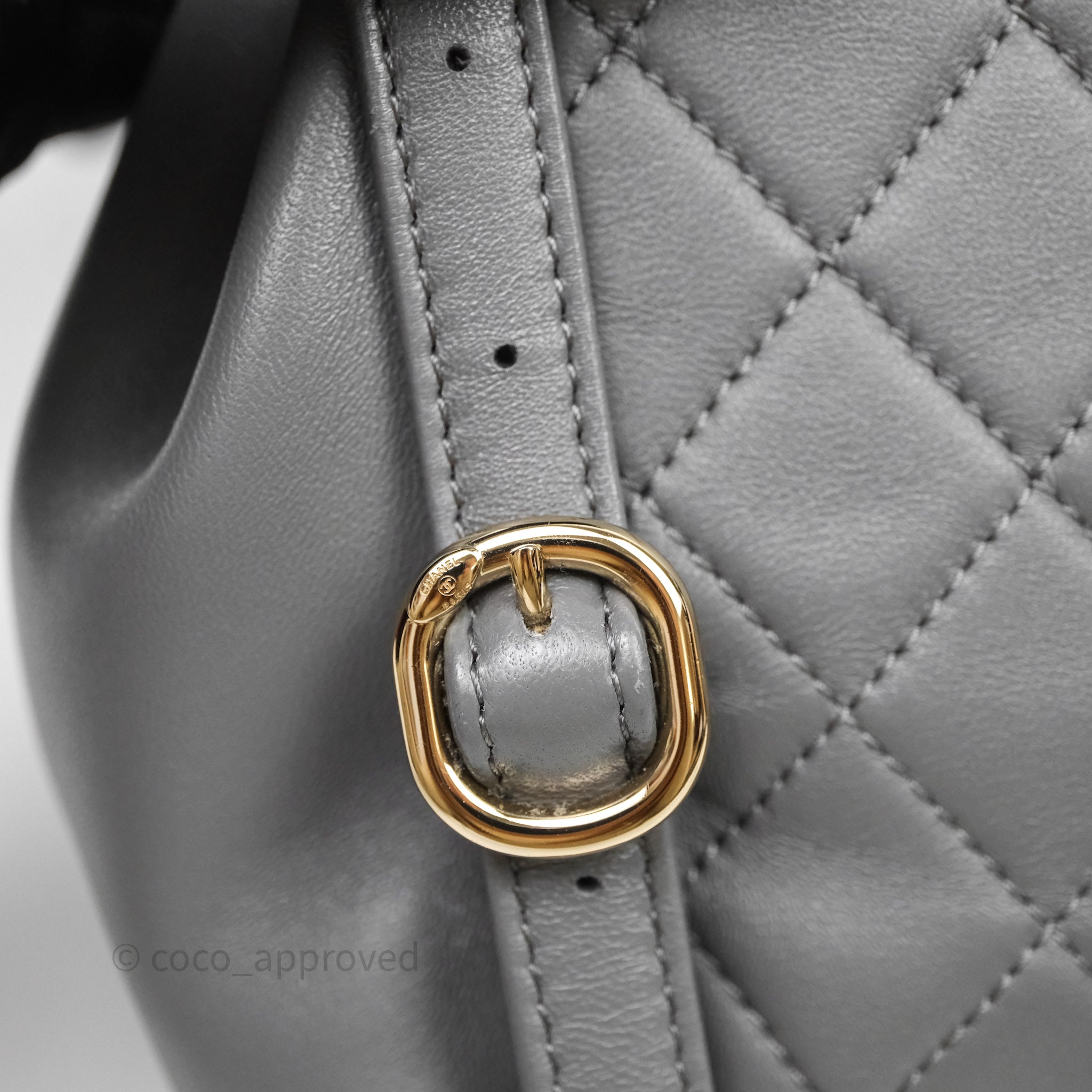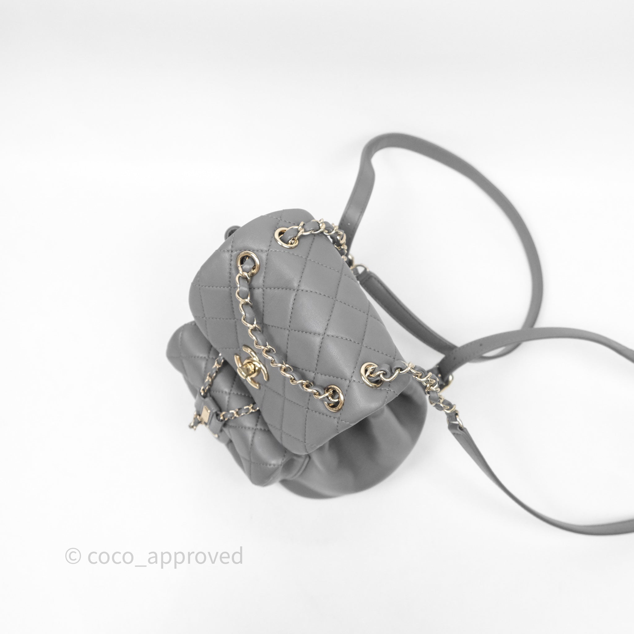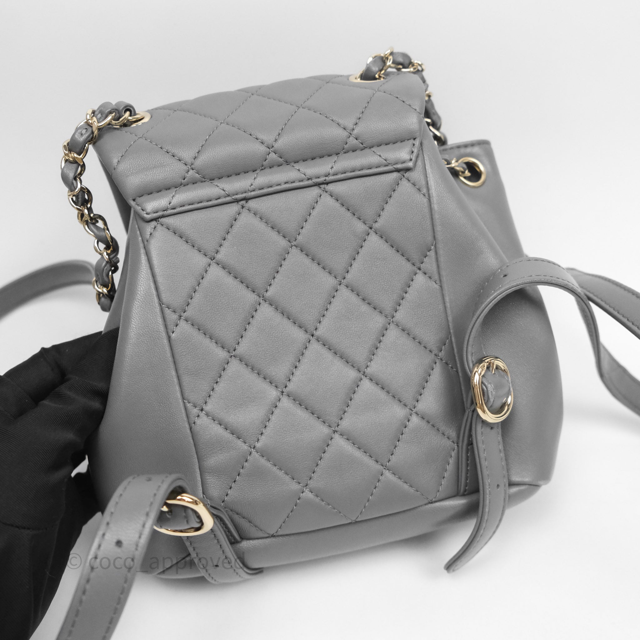Chanel Small Duma Drawstring Backpack Grey Lambskin Gold Hardware