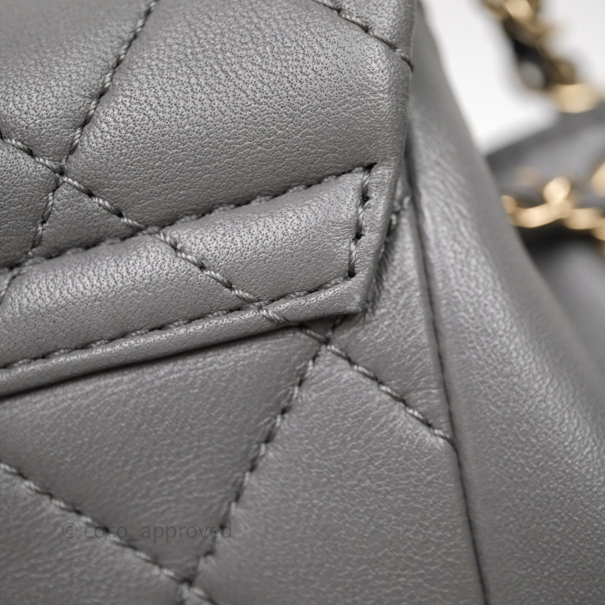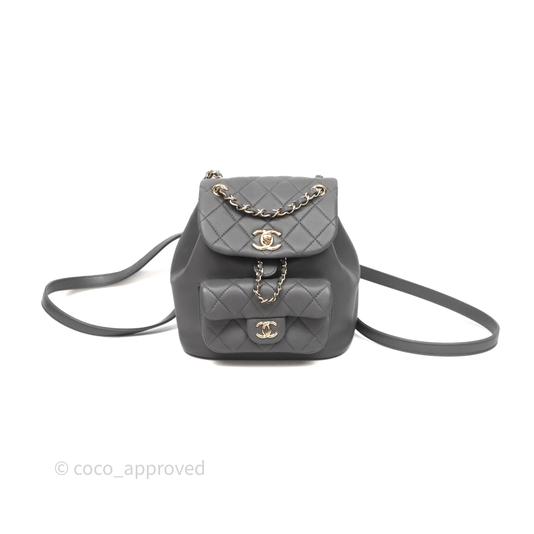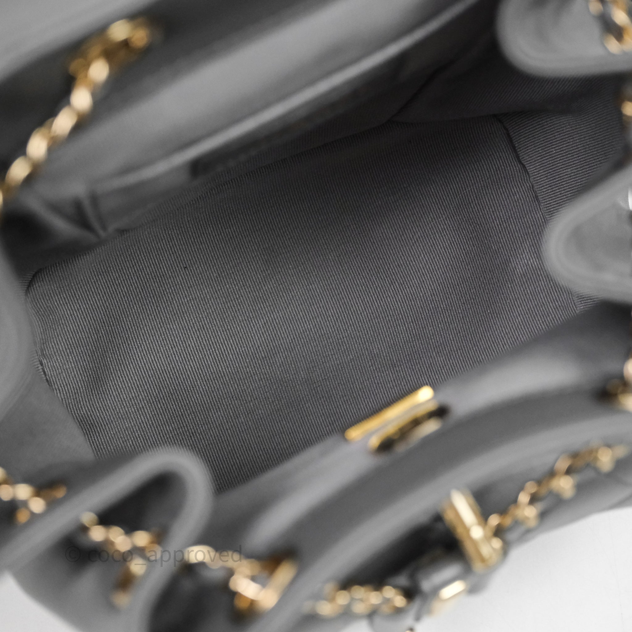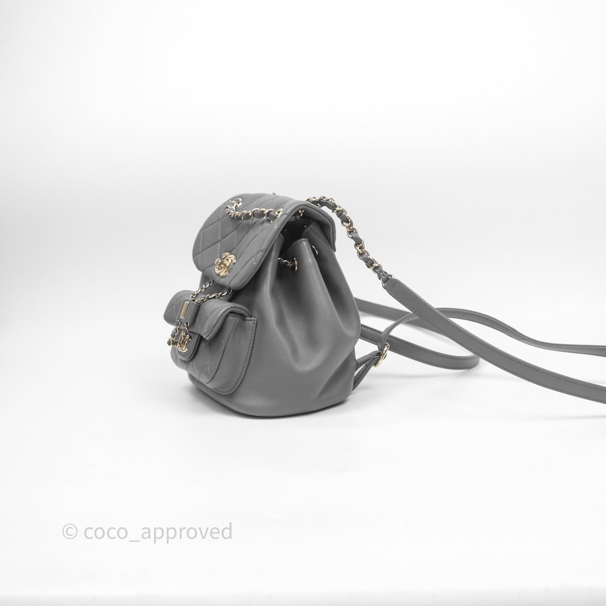 Chanel Small Duma Drawstring Backpack Grey Lambskin Gold Hardware