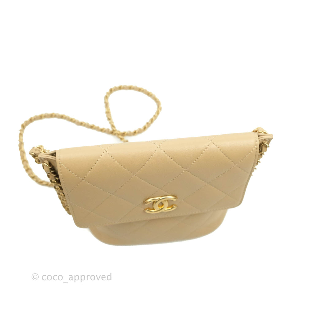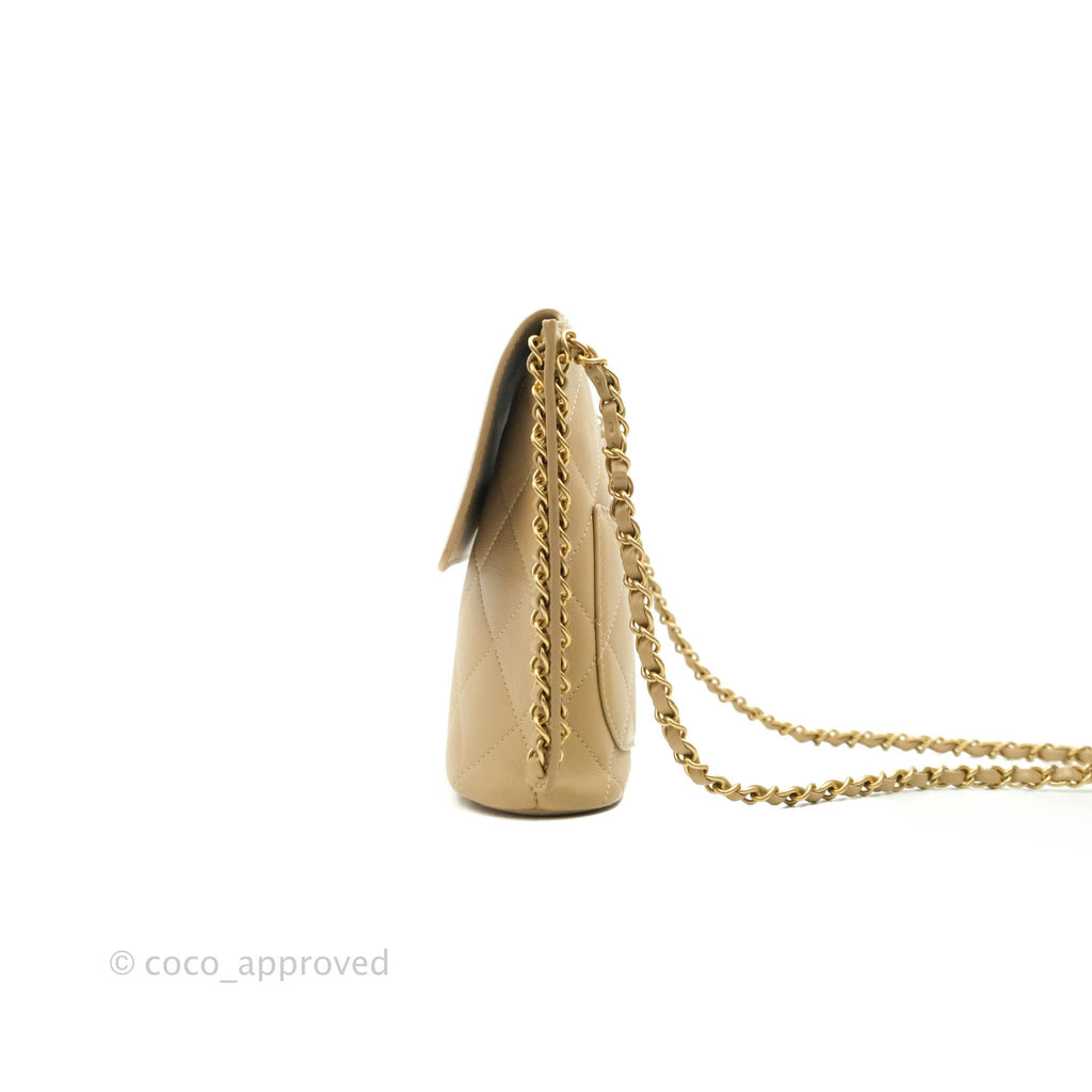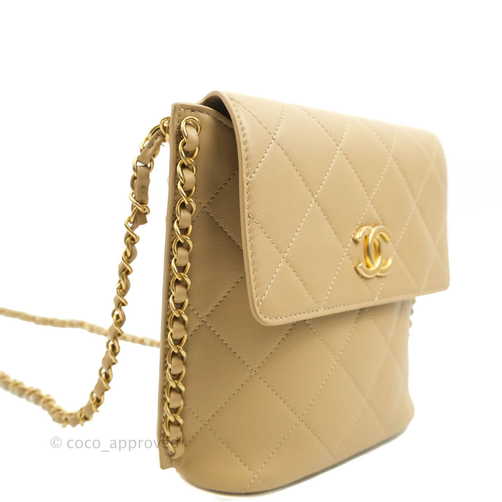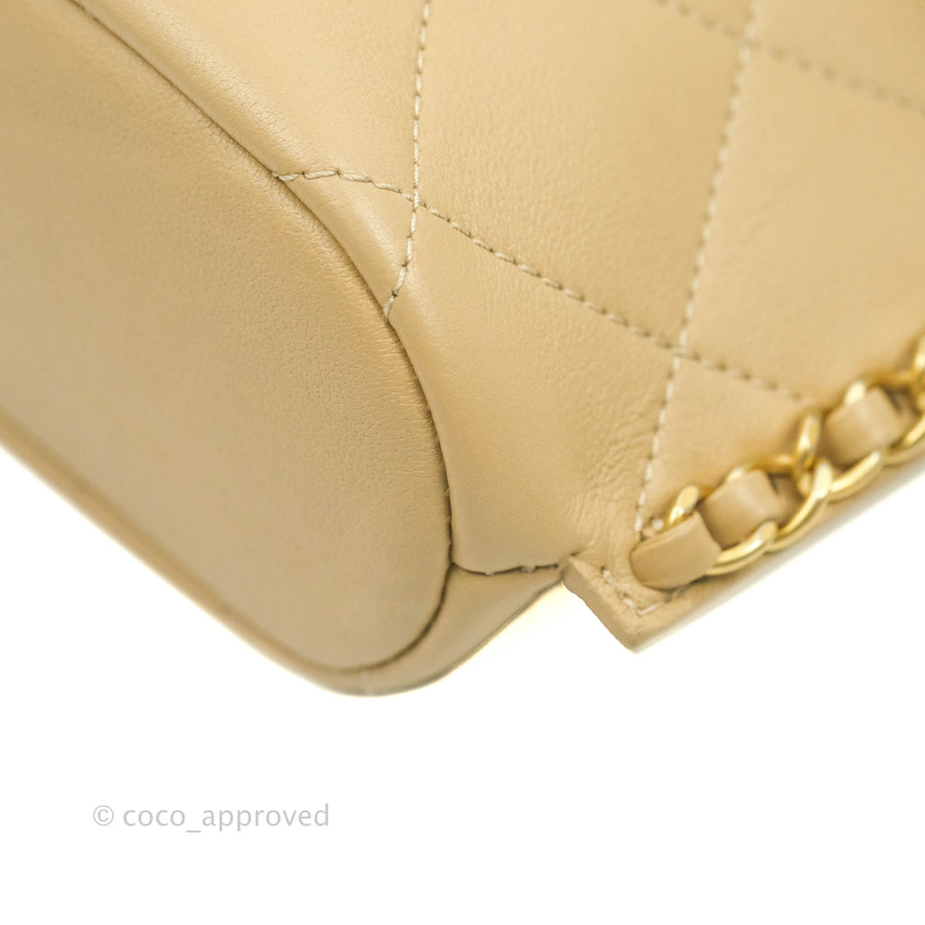 Chanel Small Hobo Bag Beige Calfskin Aged Gold Hardware