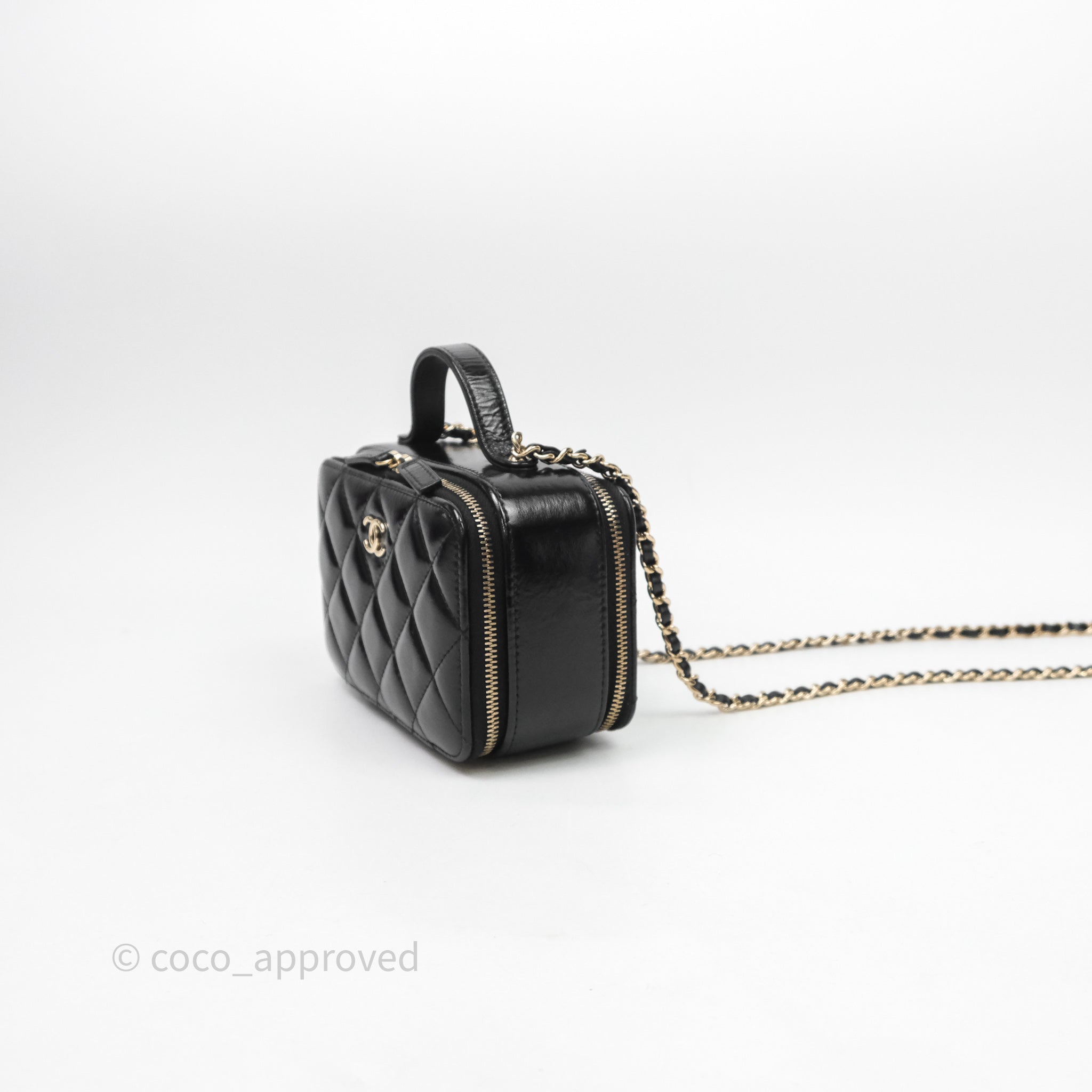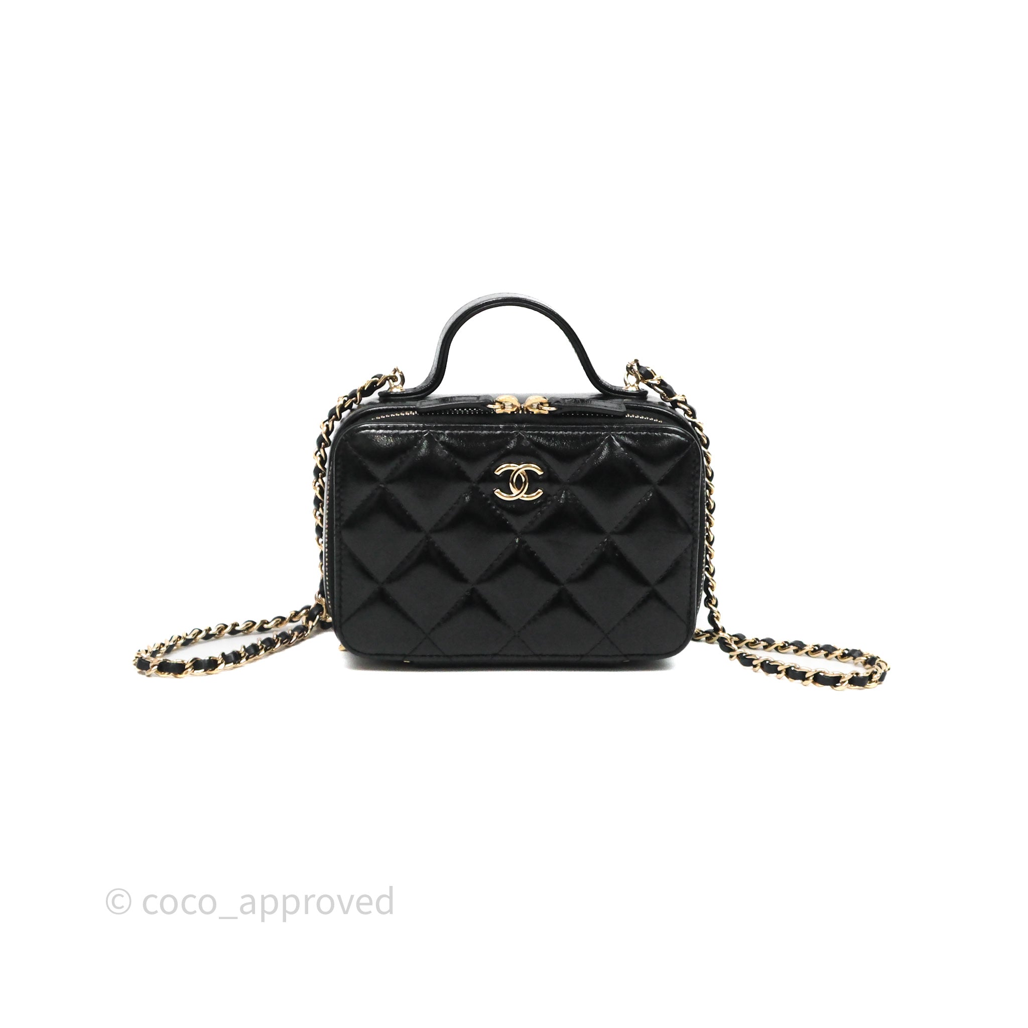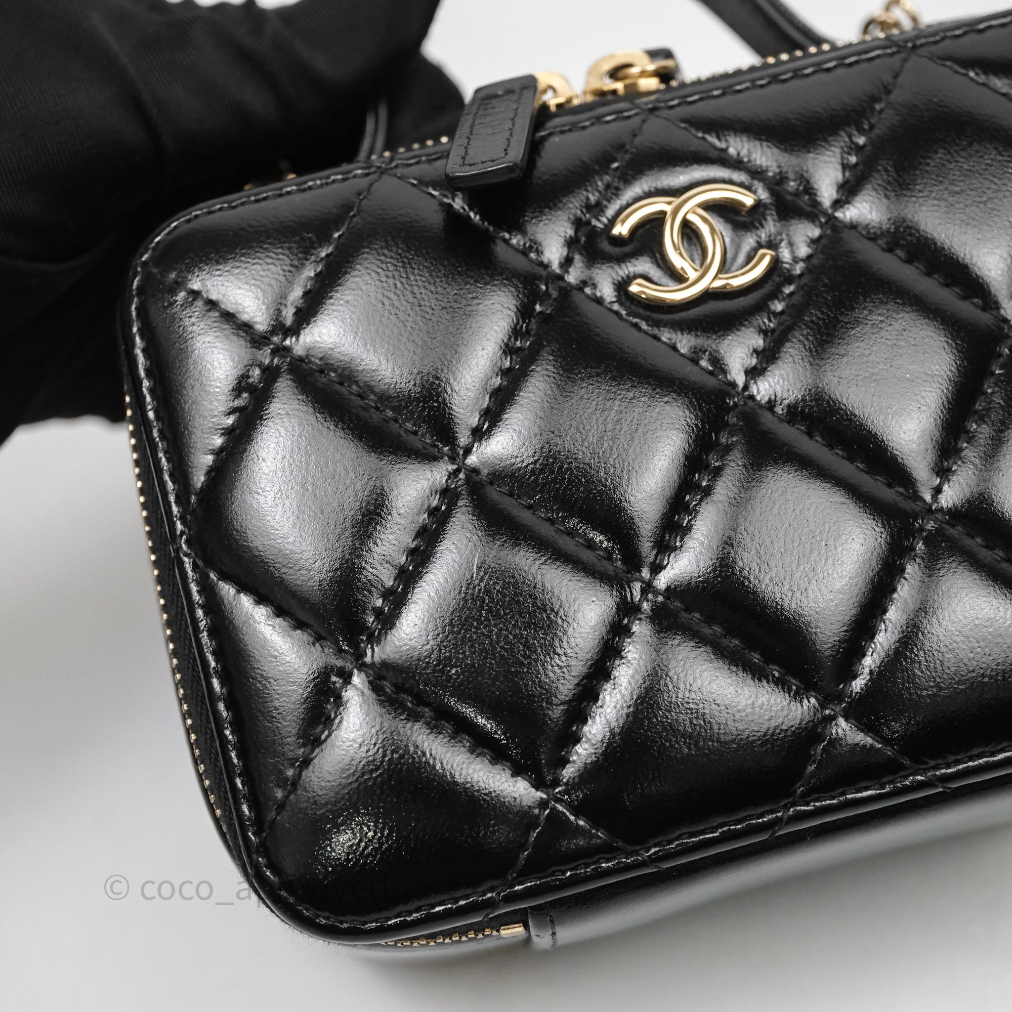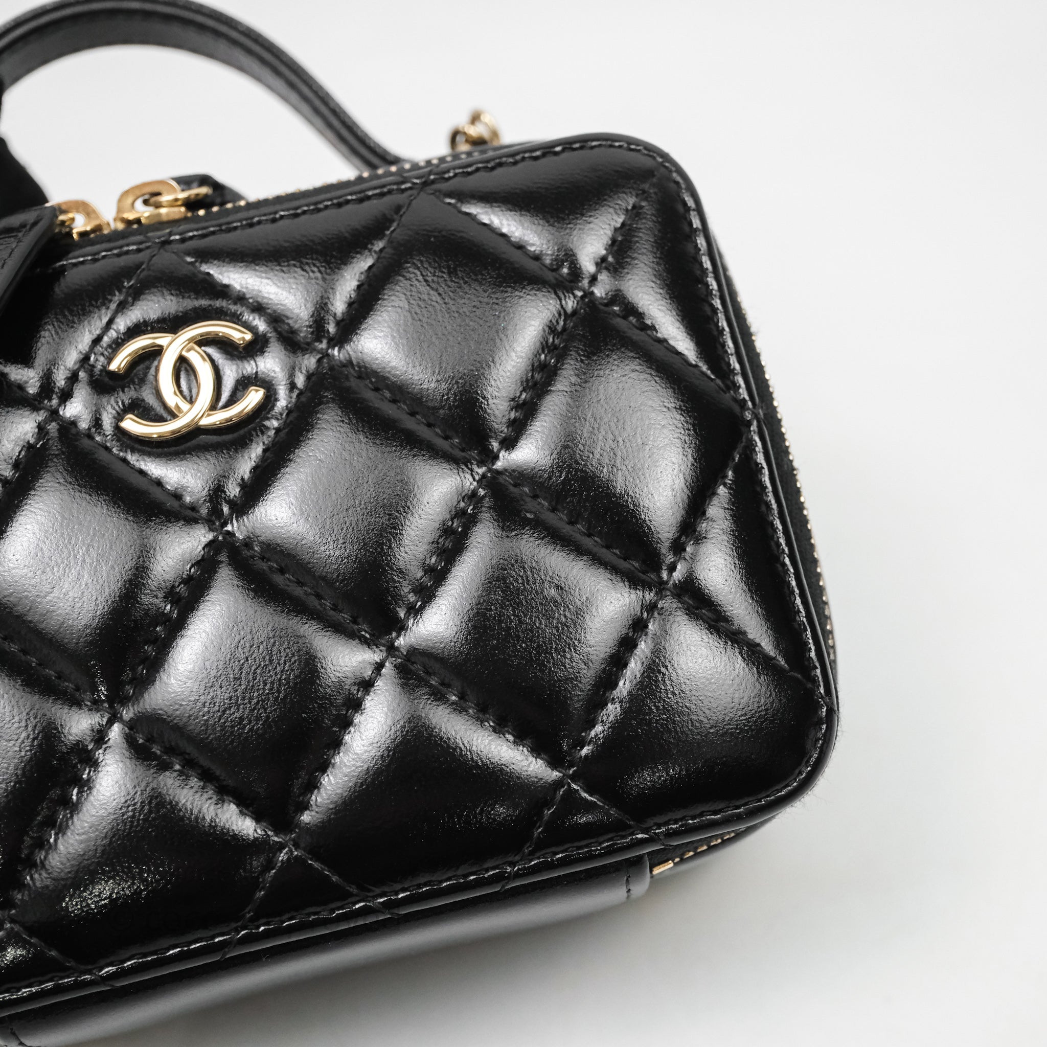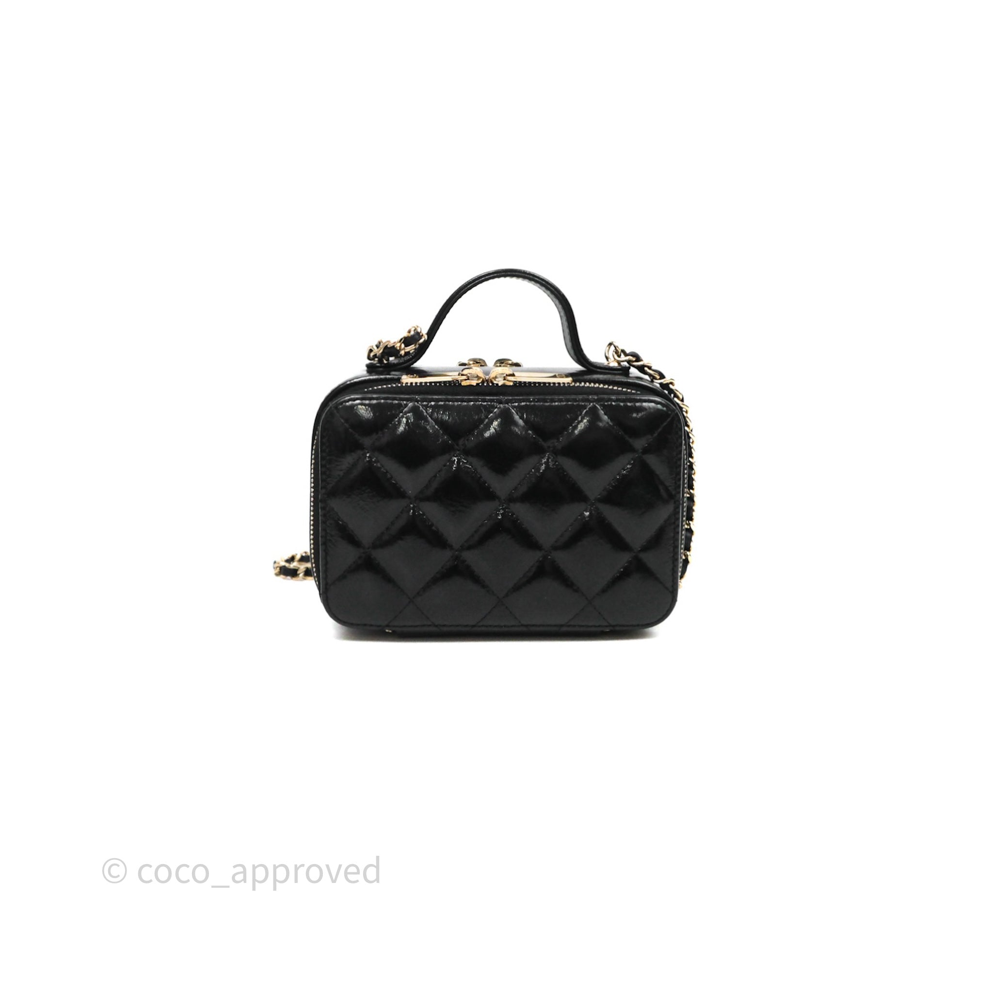 Chanel Small Top Handle Vanity Case Black Shiny Crumpled Calfskin Gold Hardware