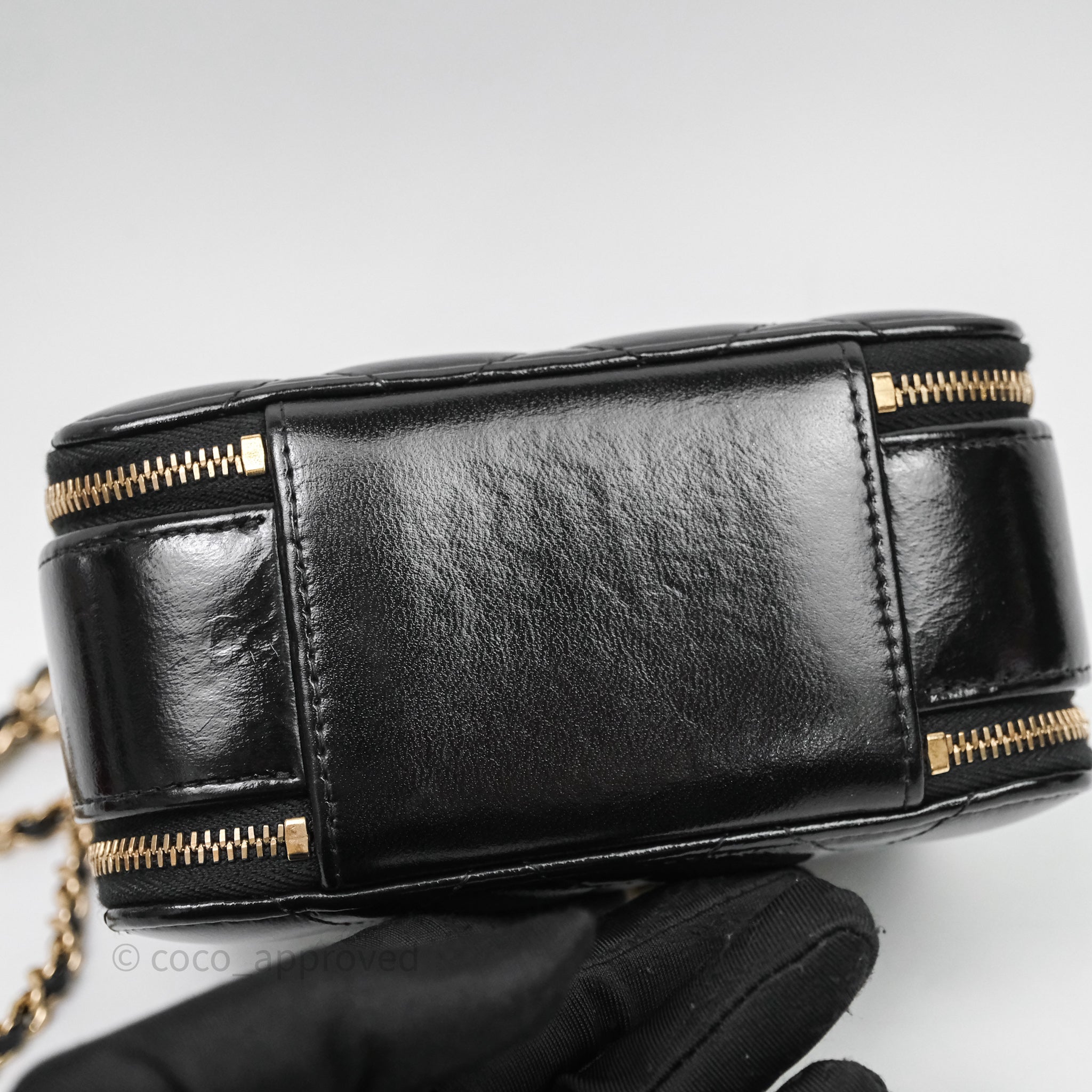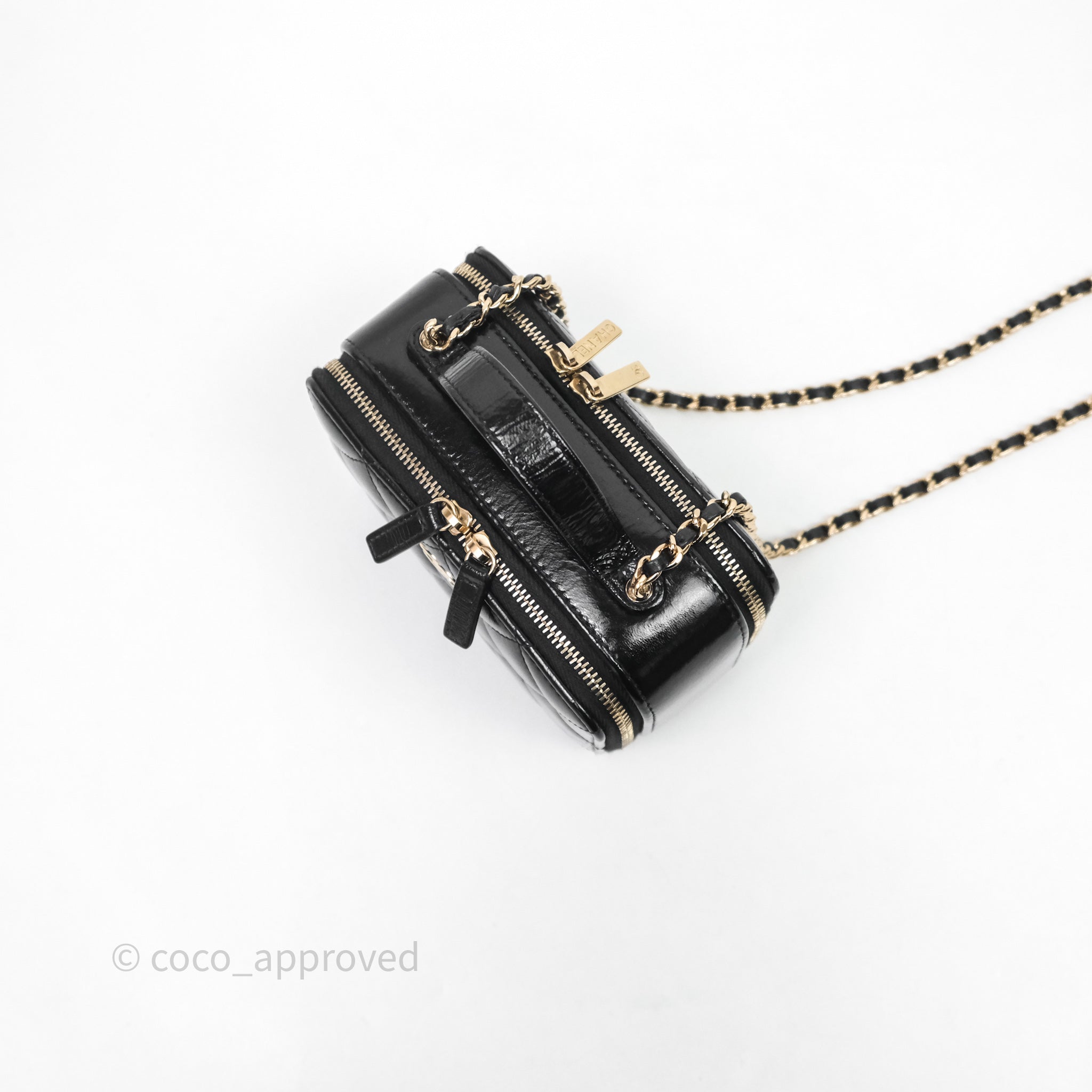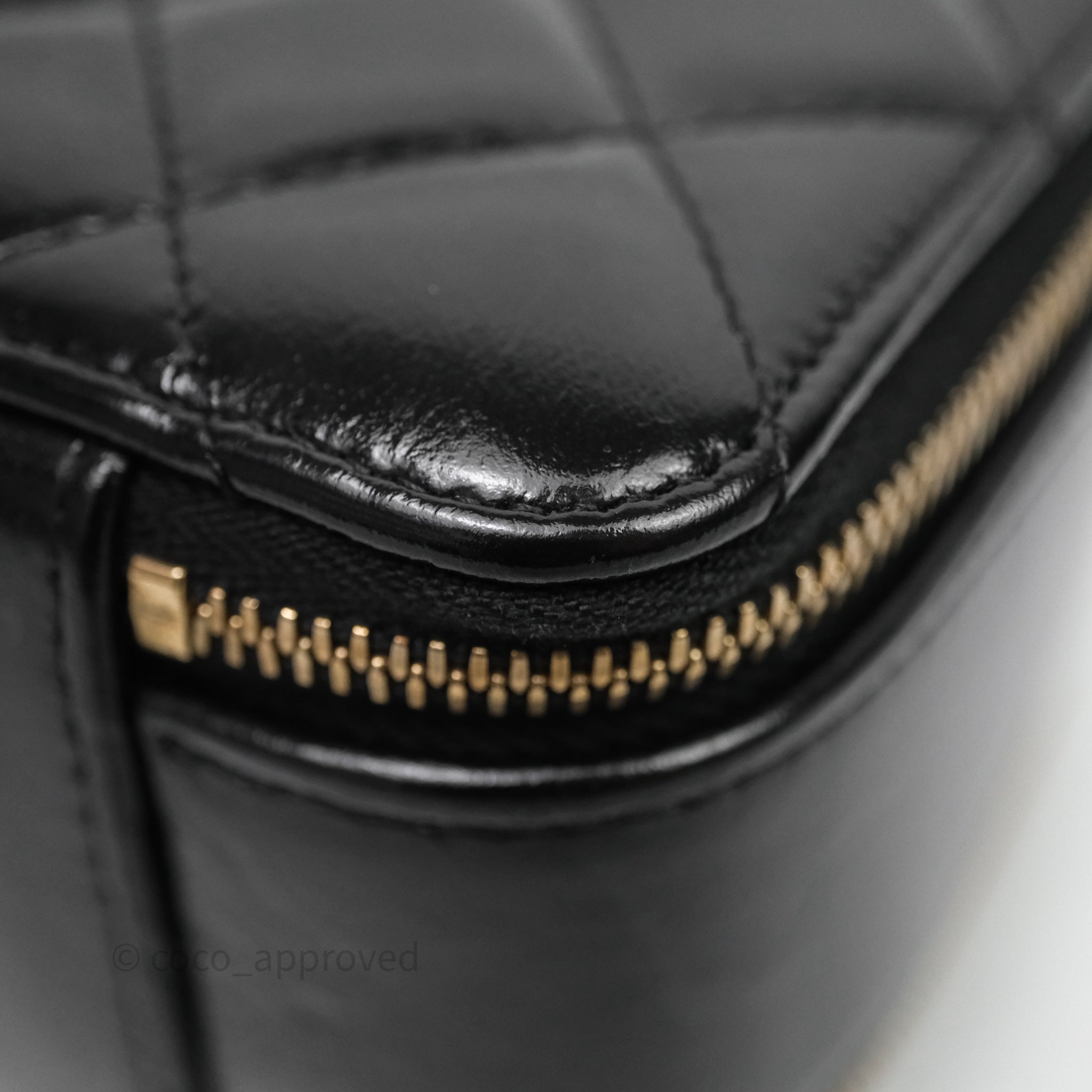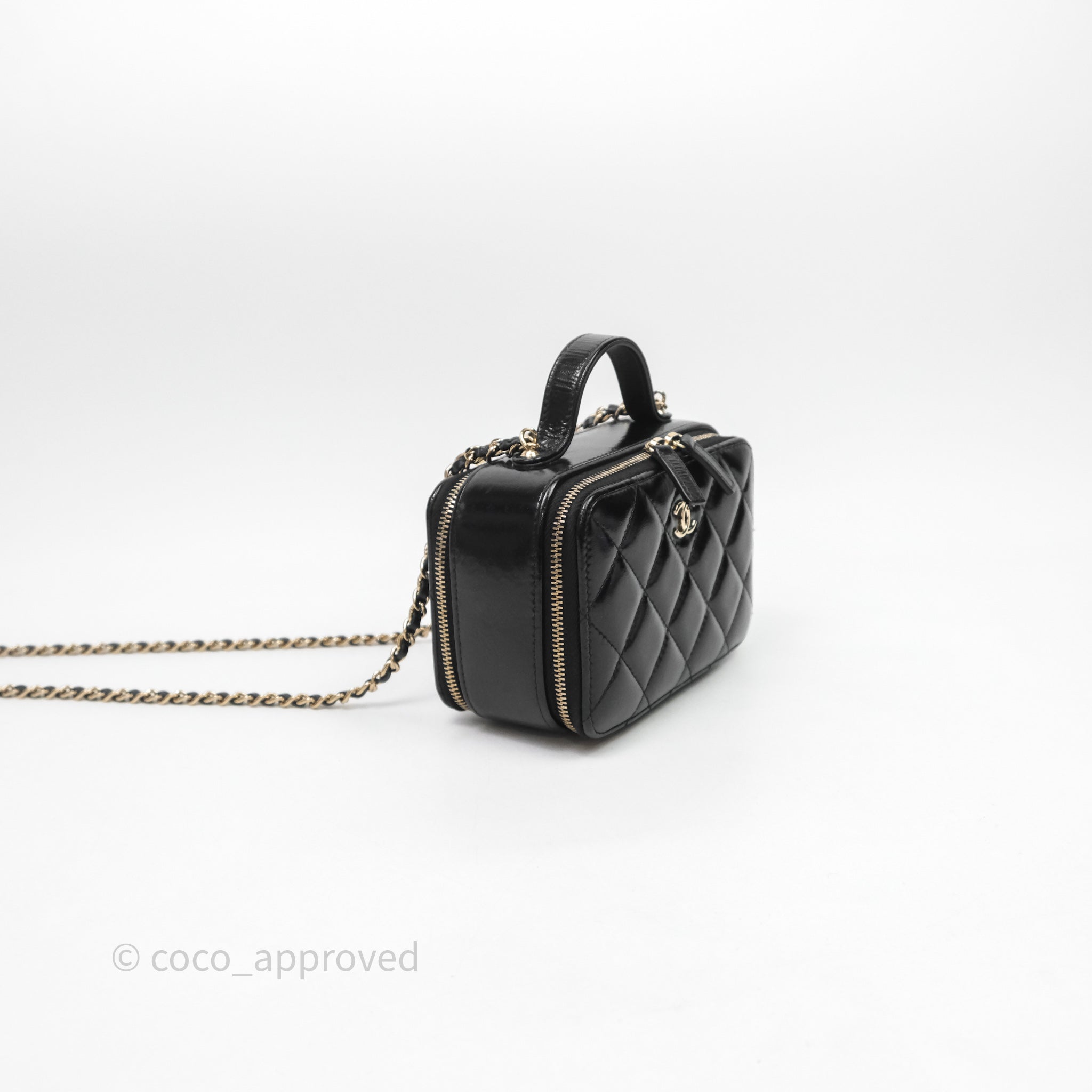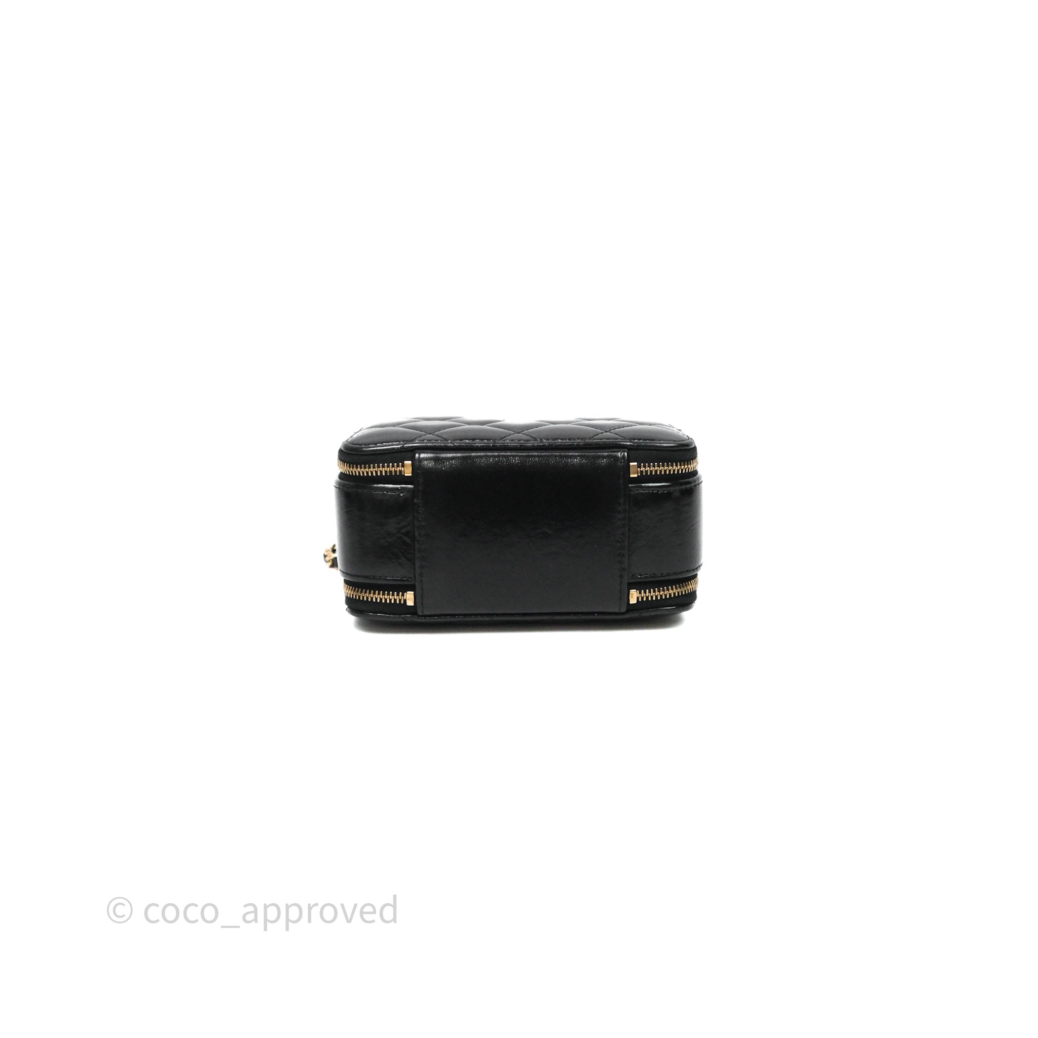 Chanel Small Top Handle Vanity Case Black Shiny Crumpled Calfskin Gold Hardware