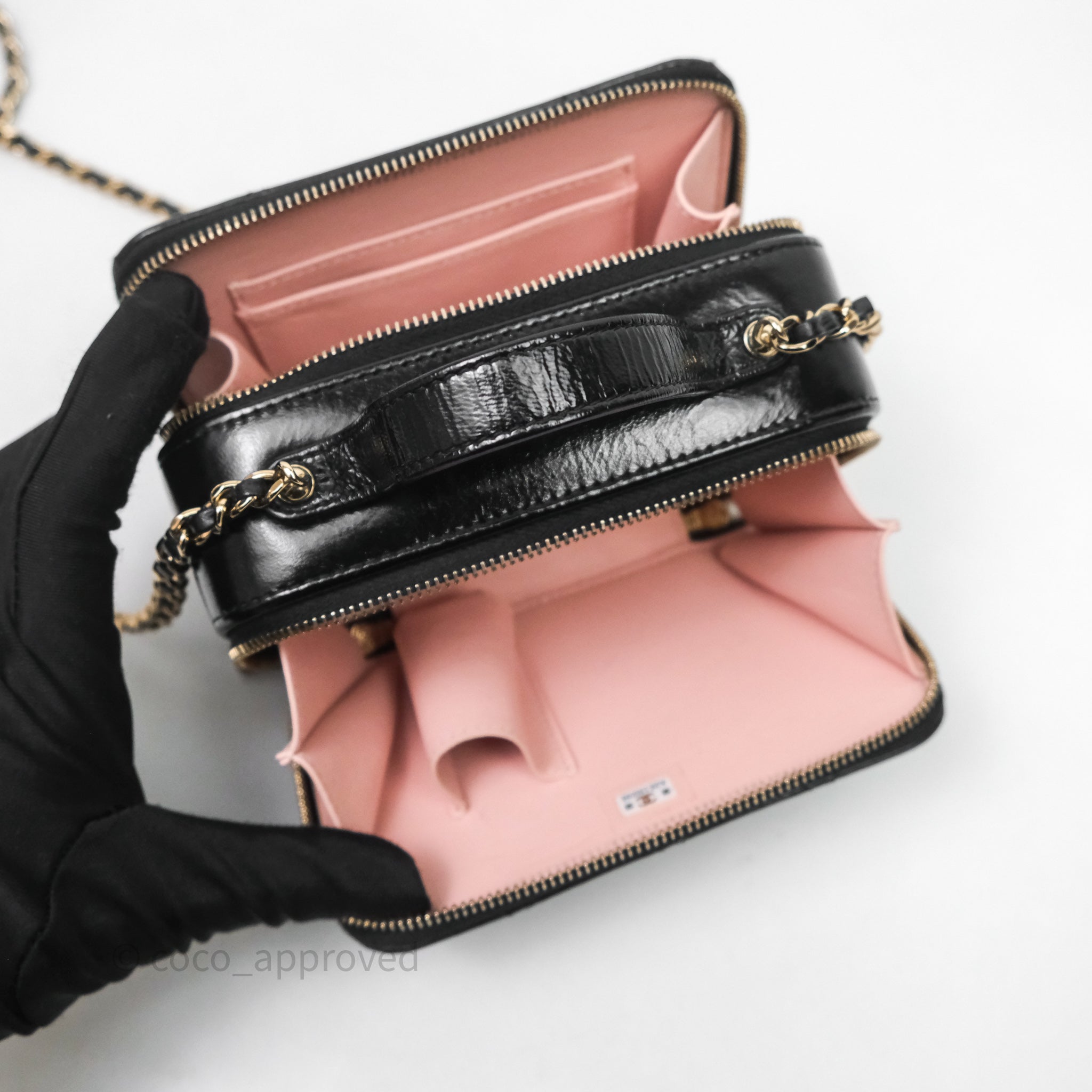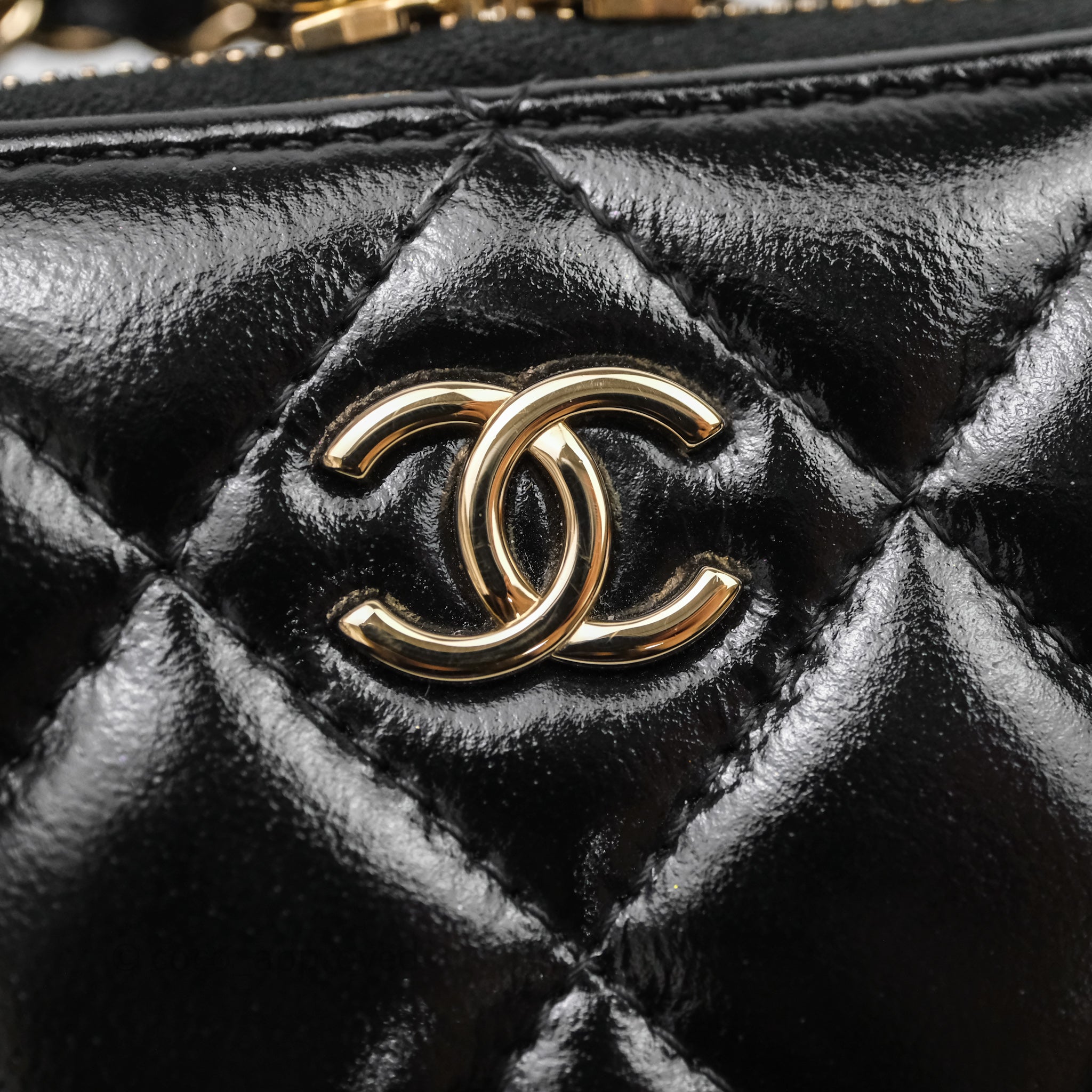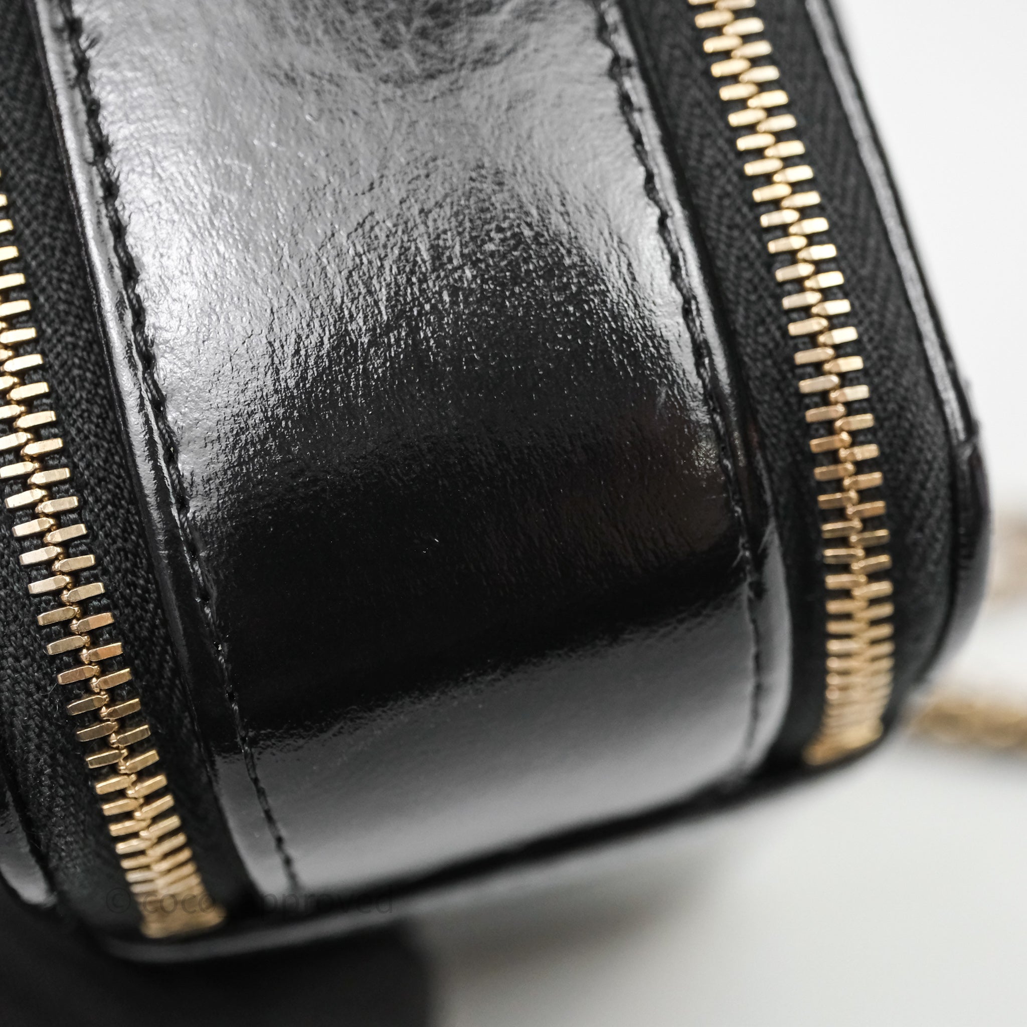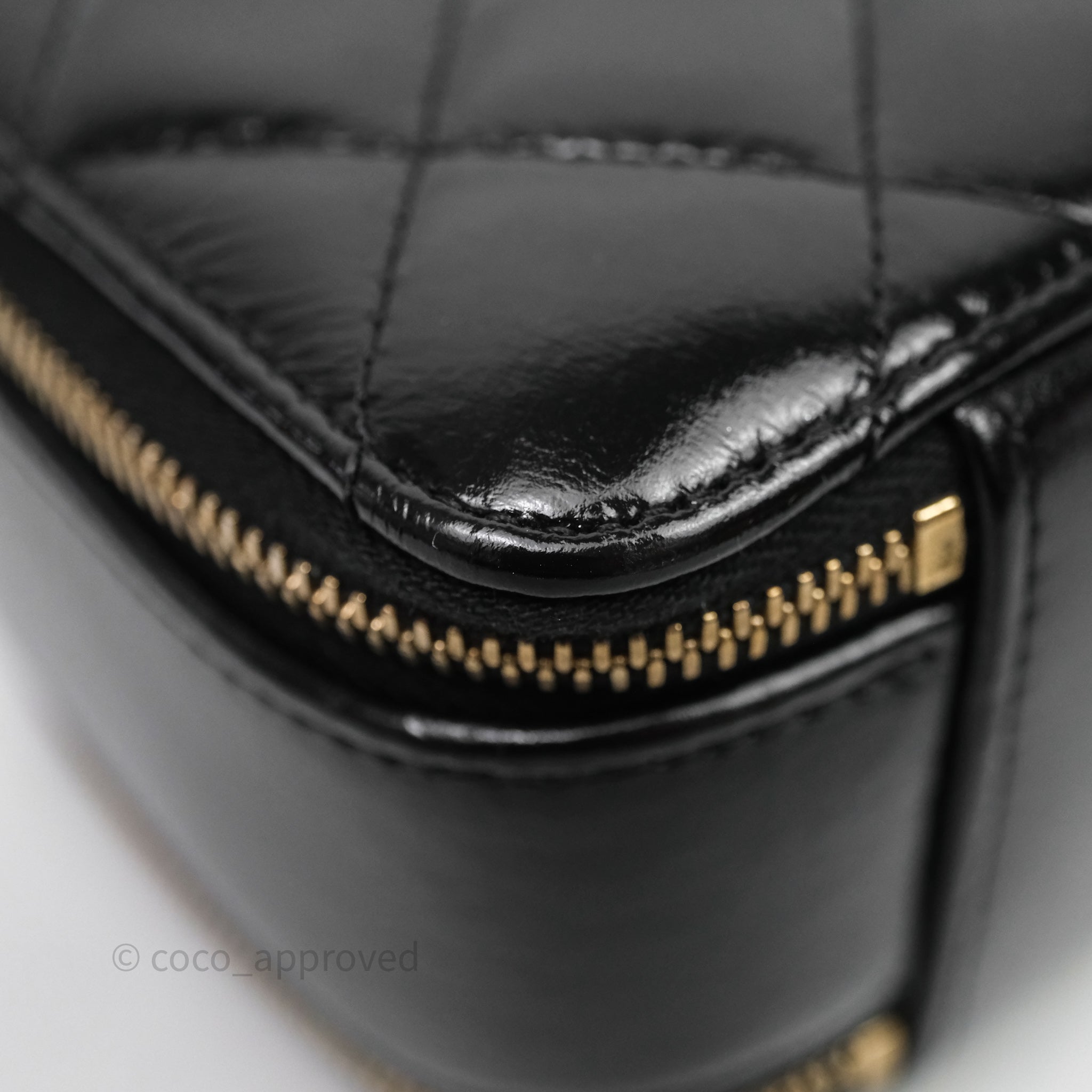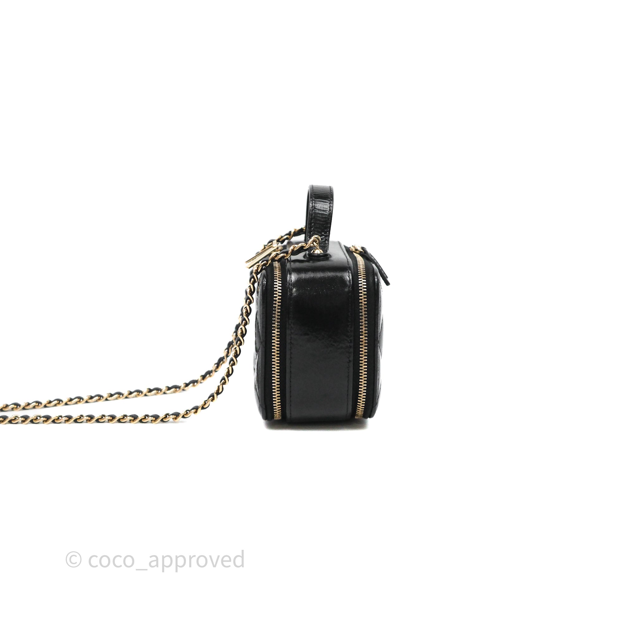 Chanel Small Top Handle Vanity Case Black Shiny Crumpled Calfskin Gold Hardware