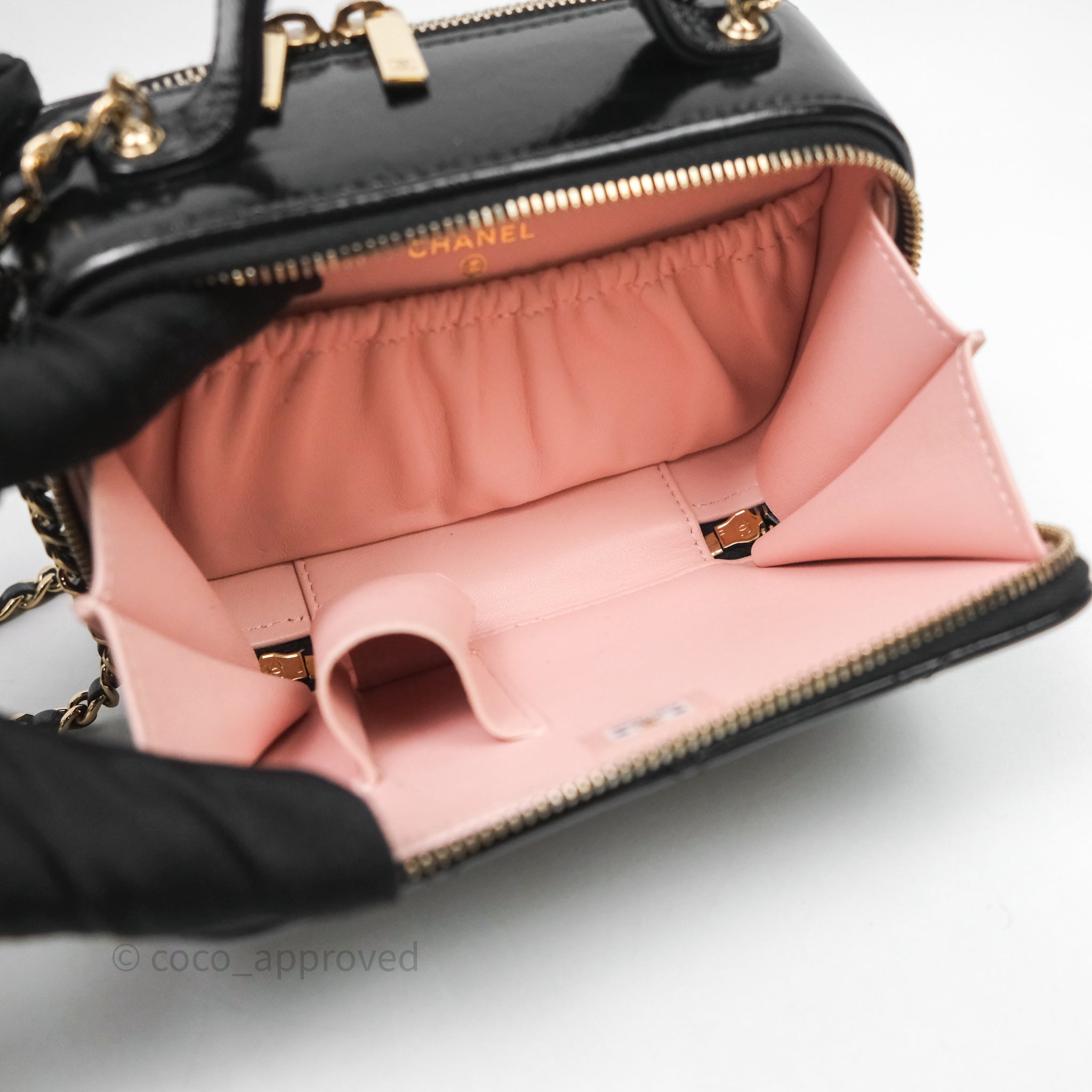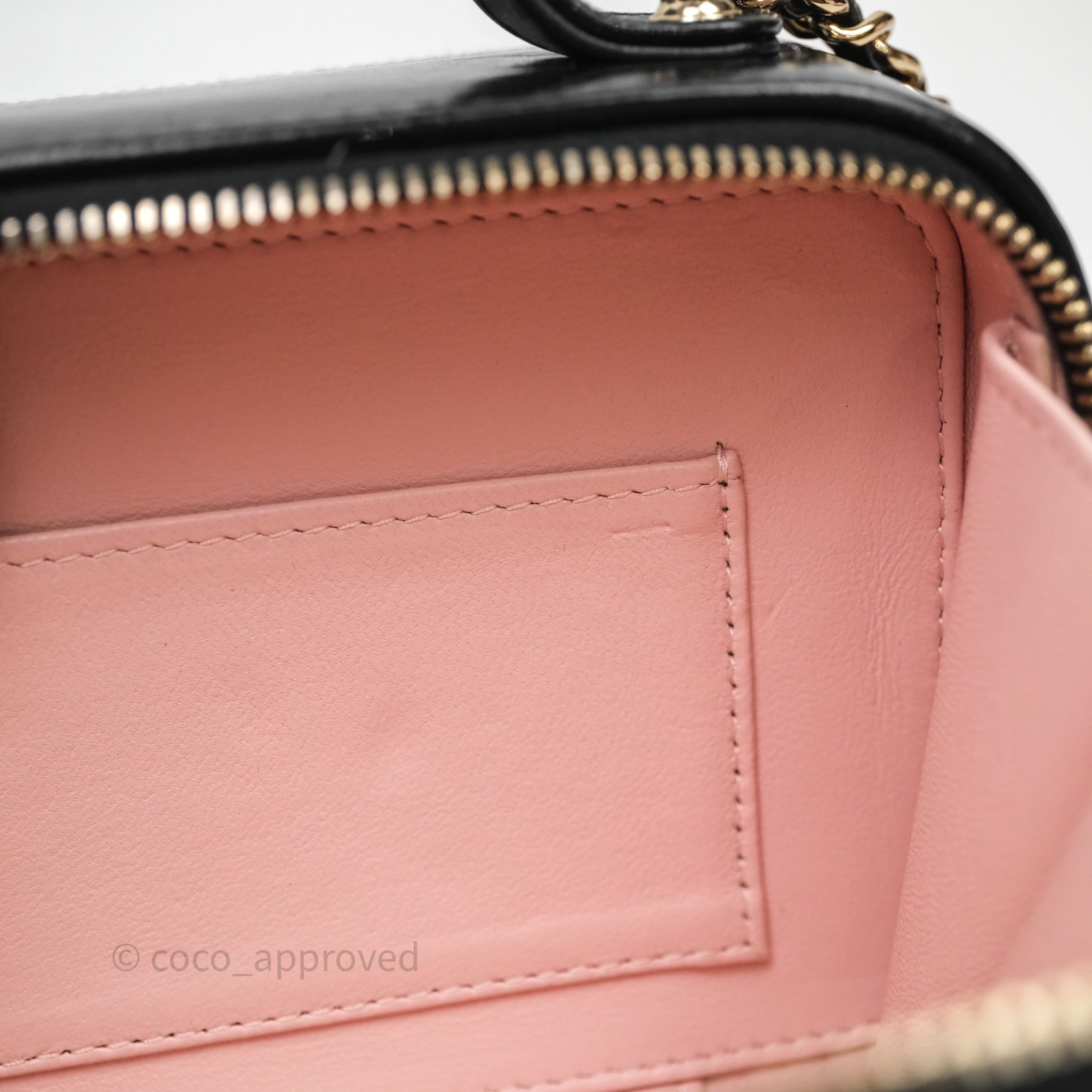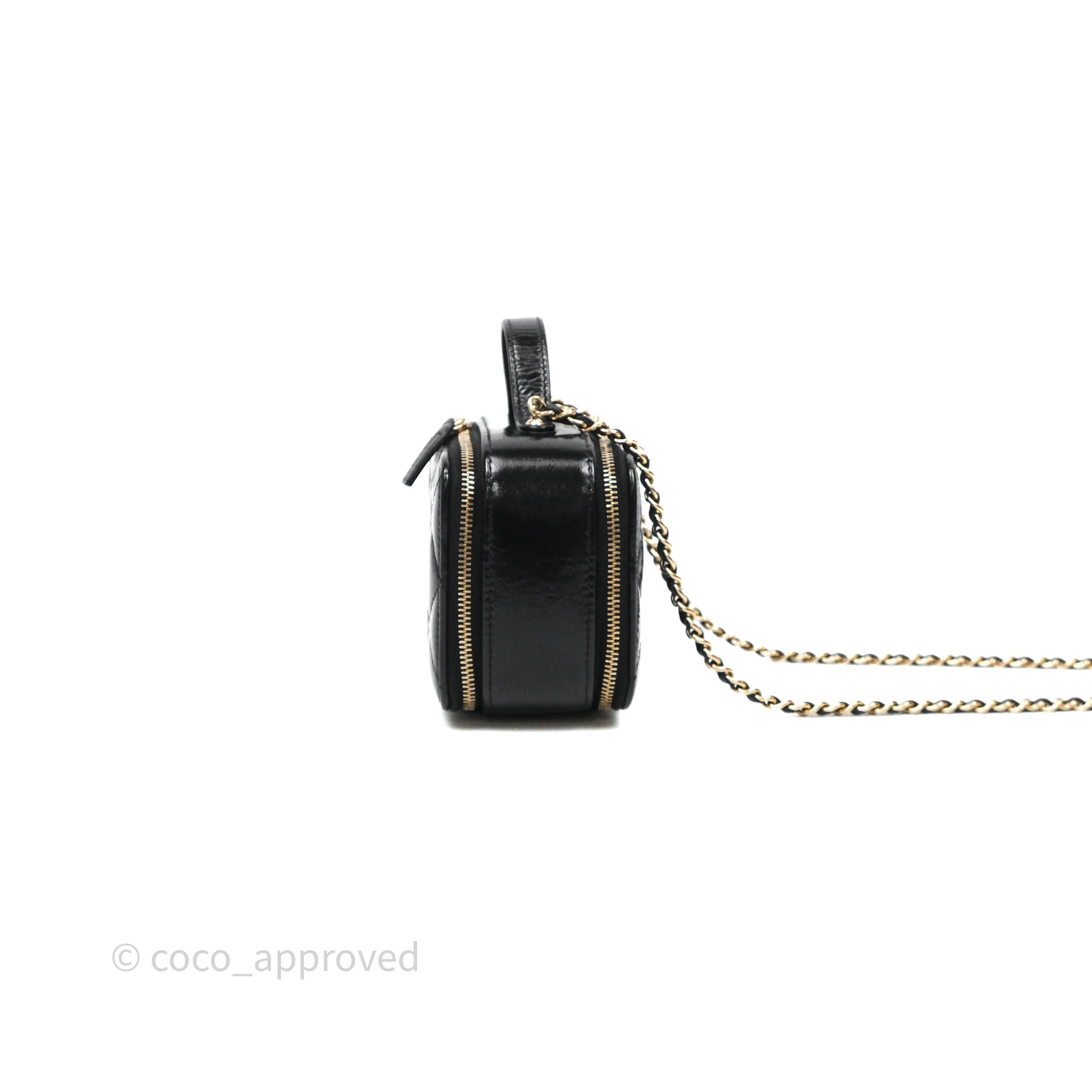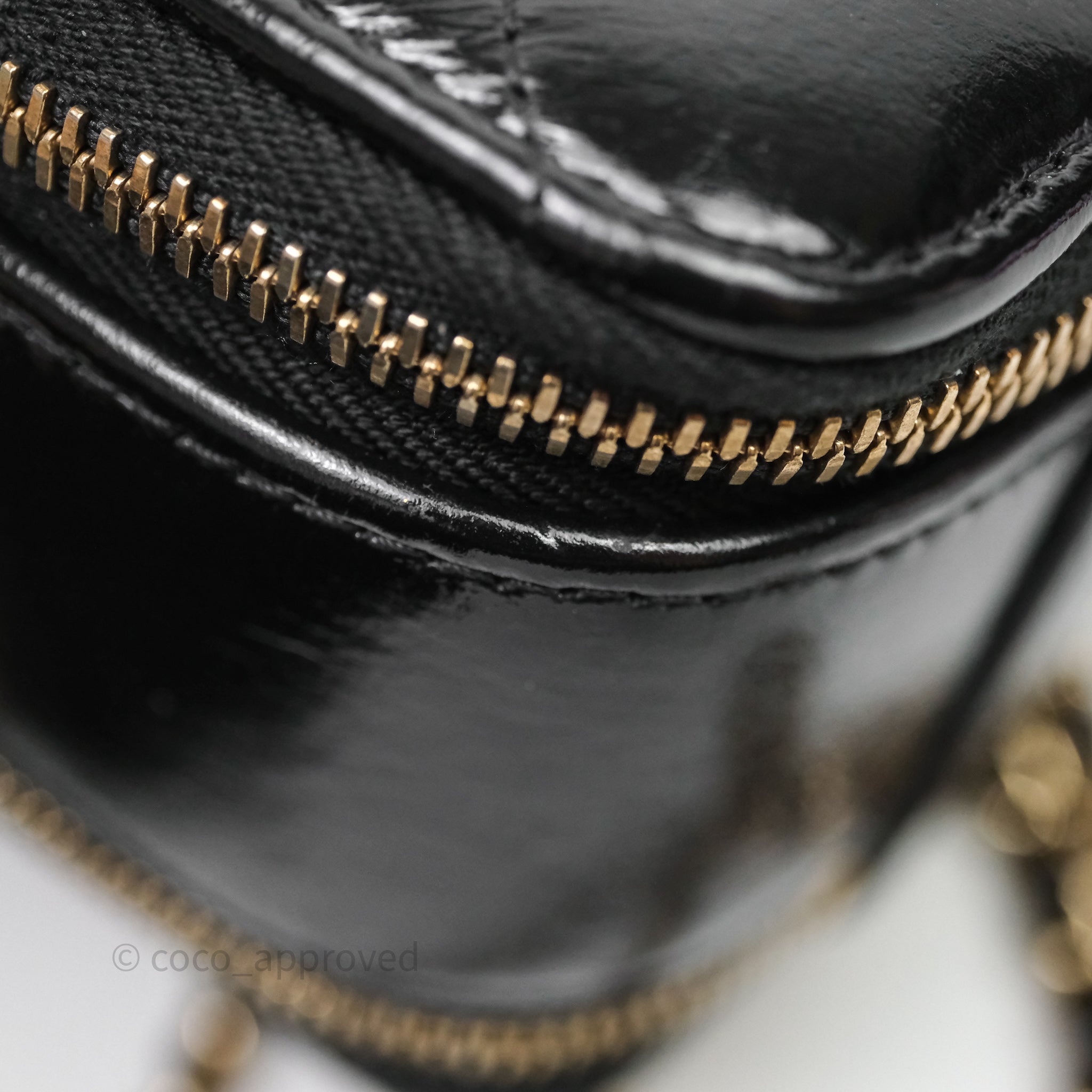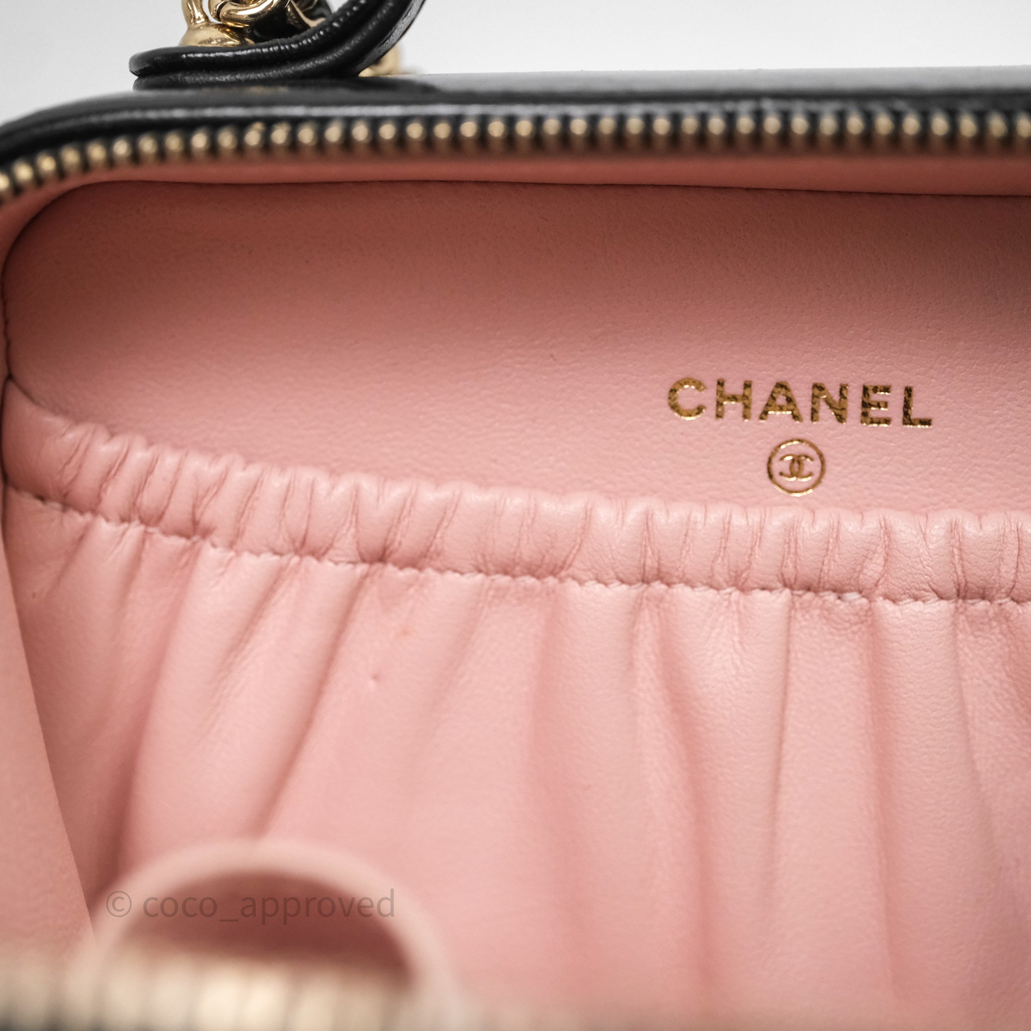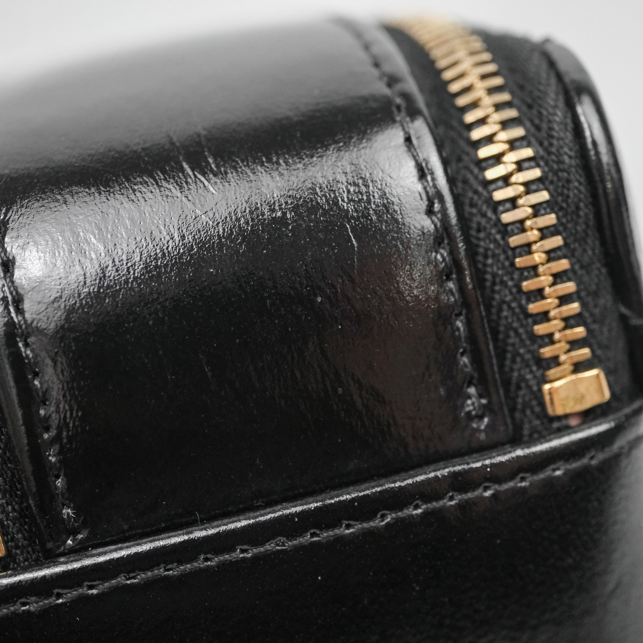 Chanel Small Top Handle Vanity Case Black Shiny Crumpled Calfskin Gold Hardware