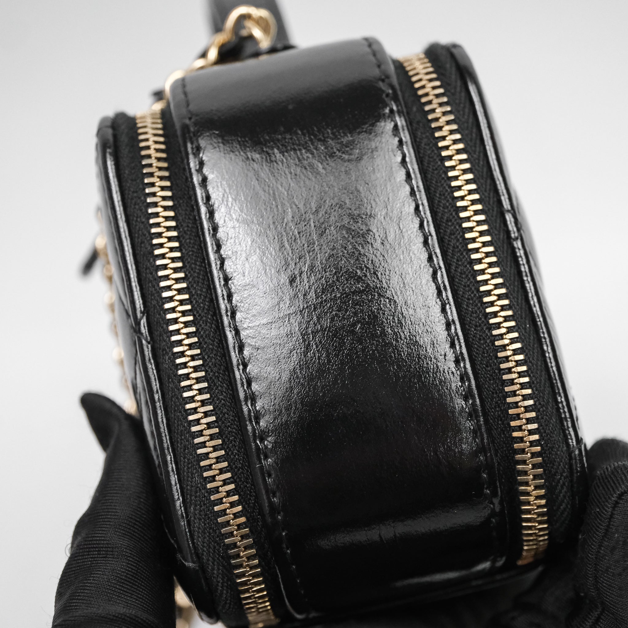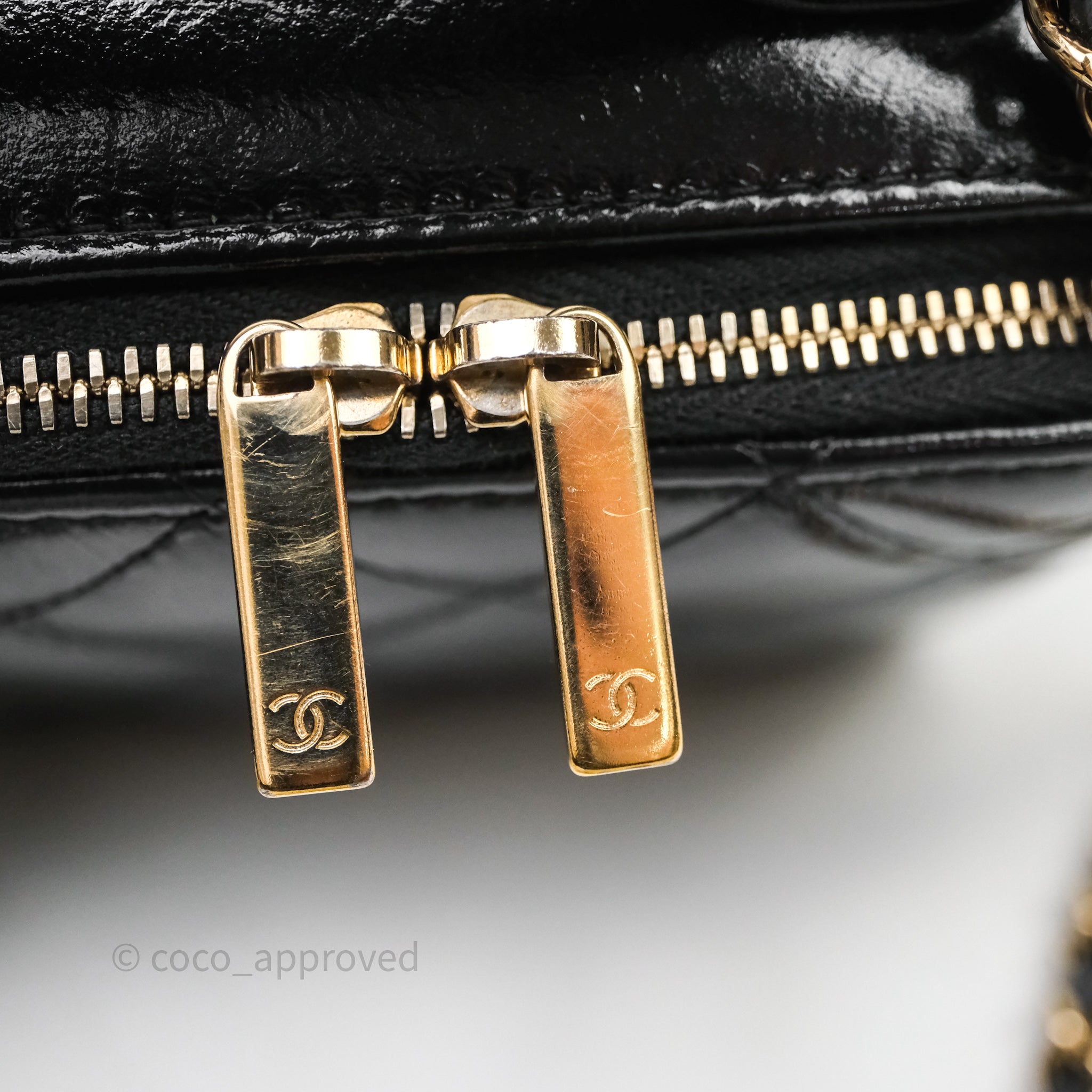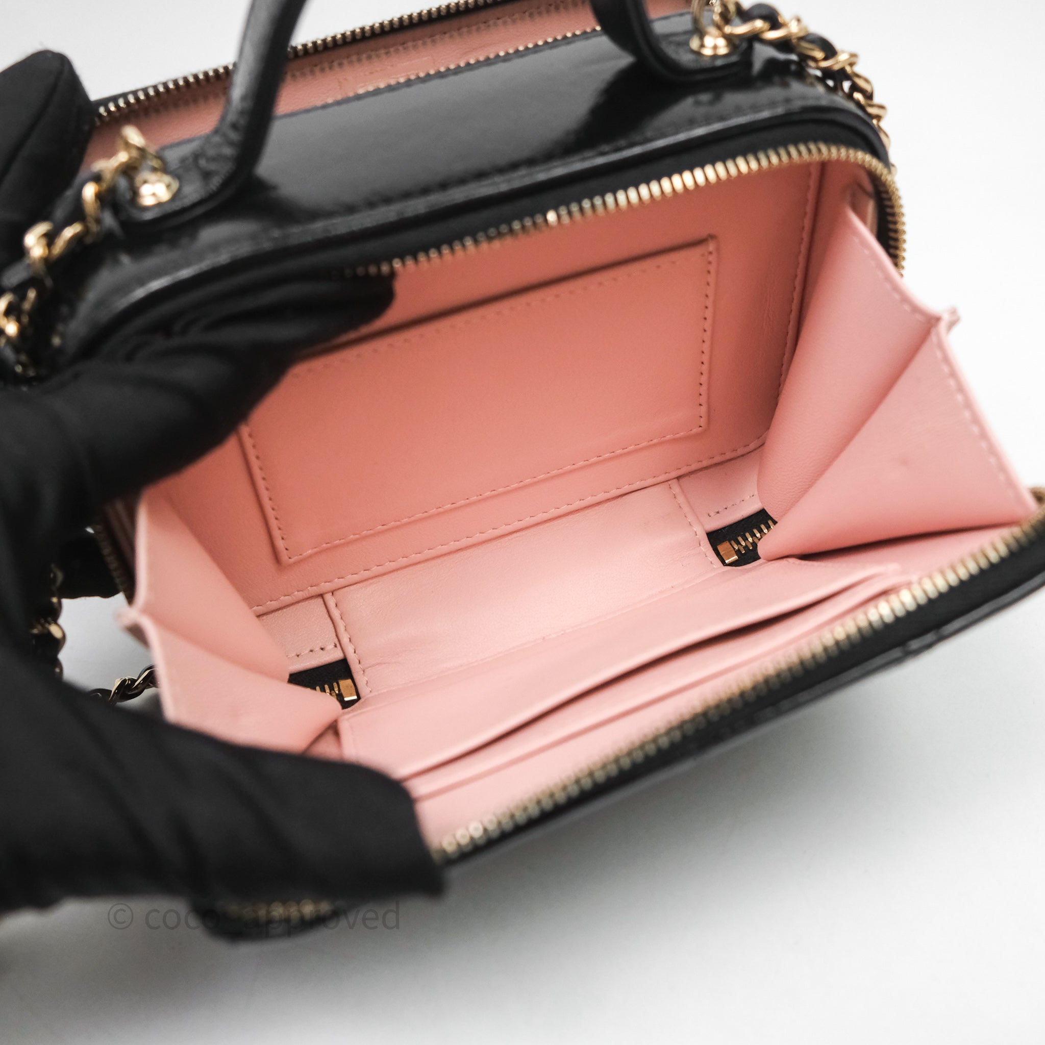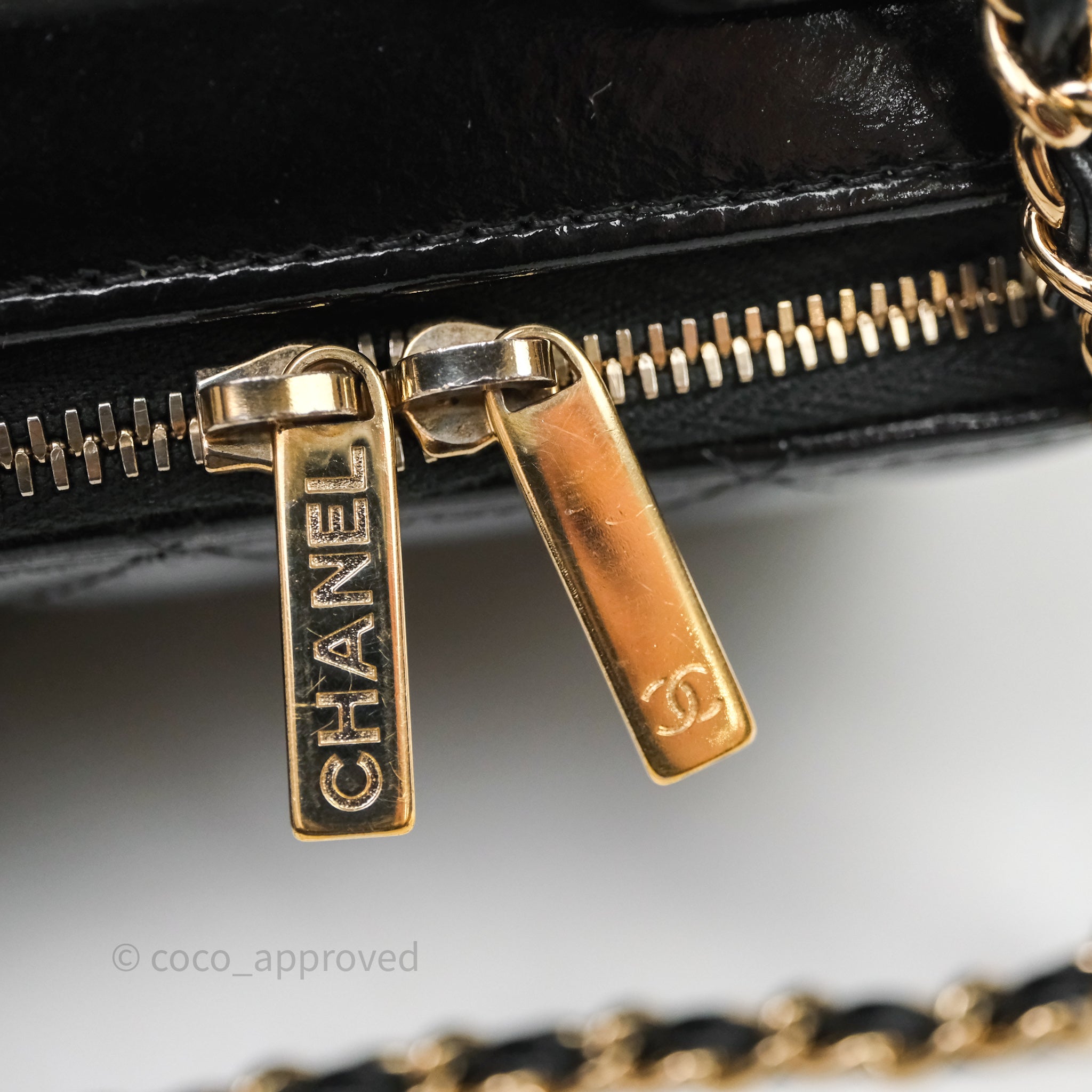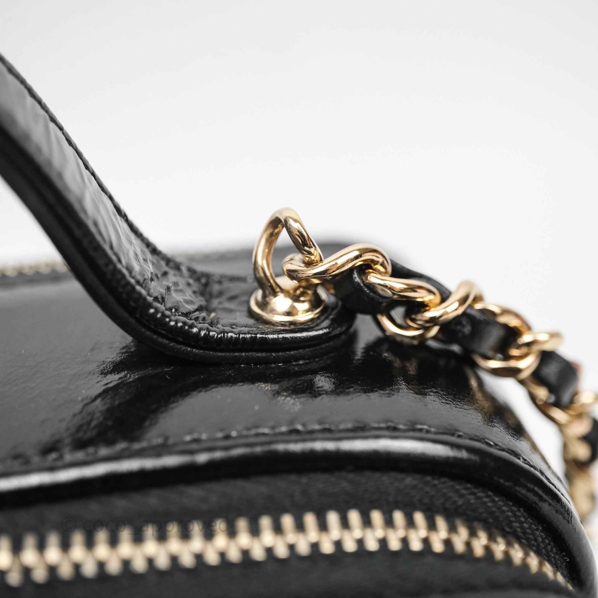 Chanel Small Top Handle Vanity Case Black Shiny Crumpled Calfskin Gold Hardware