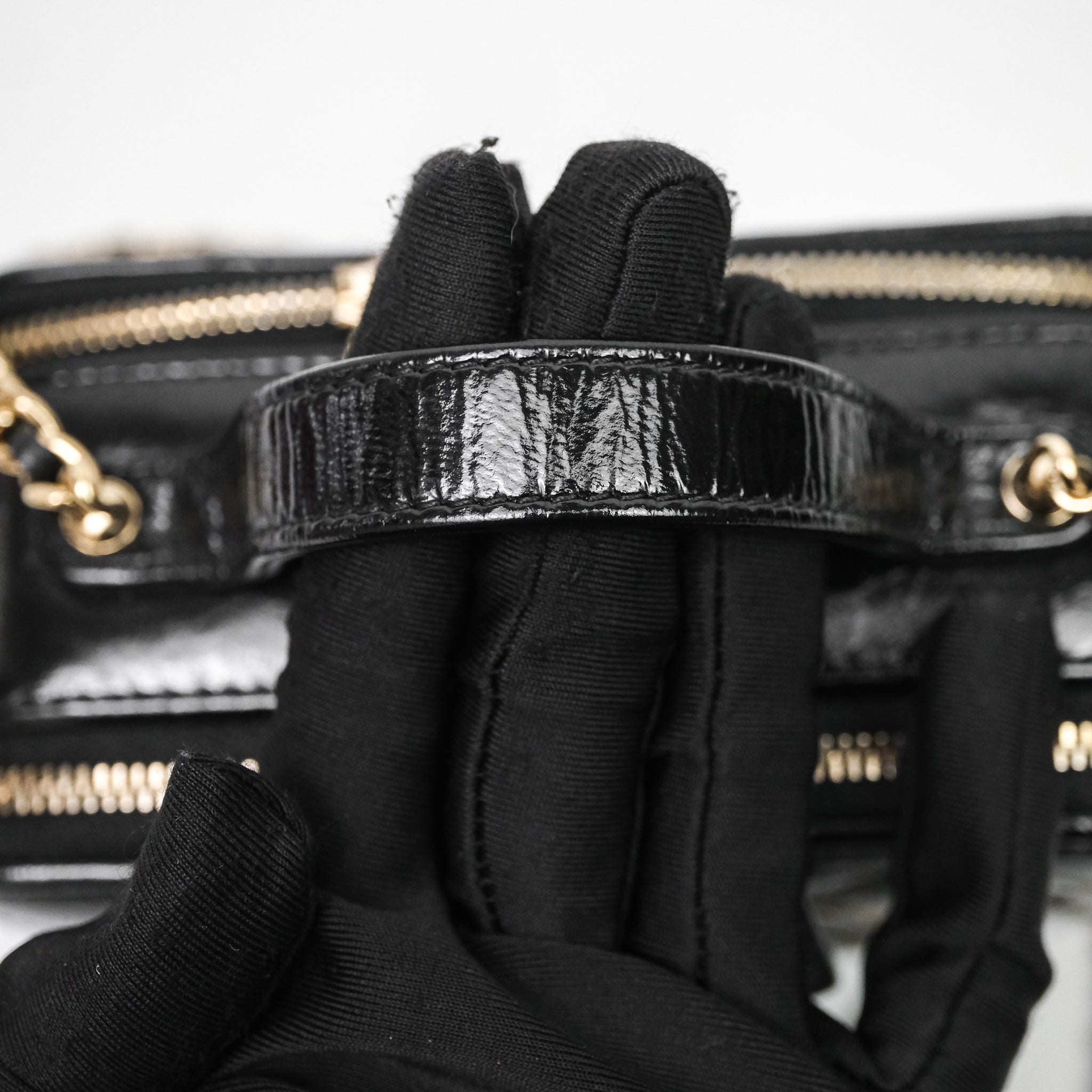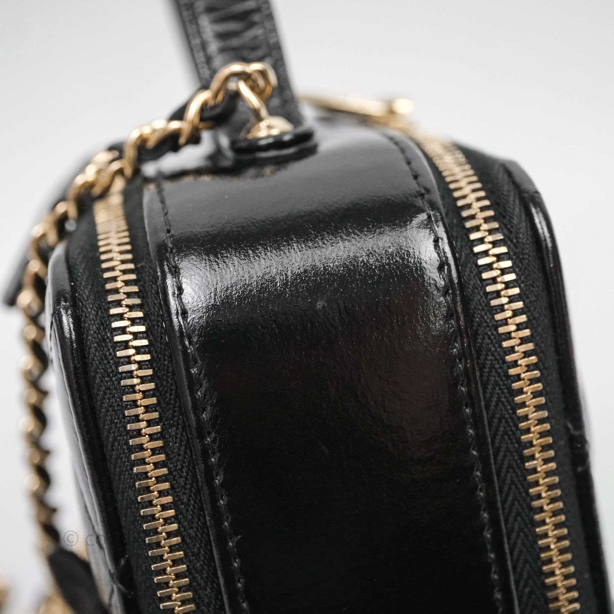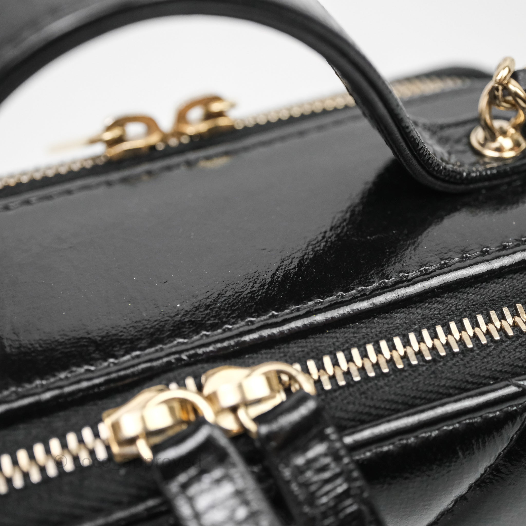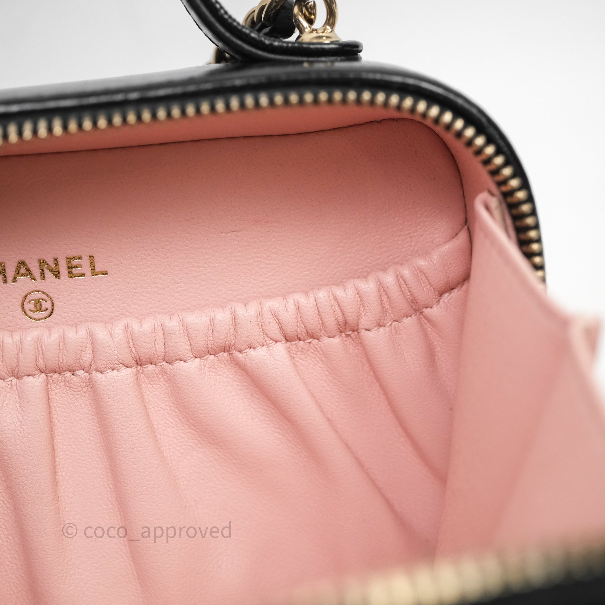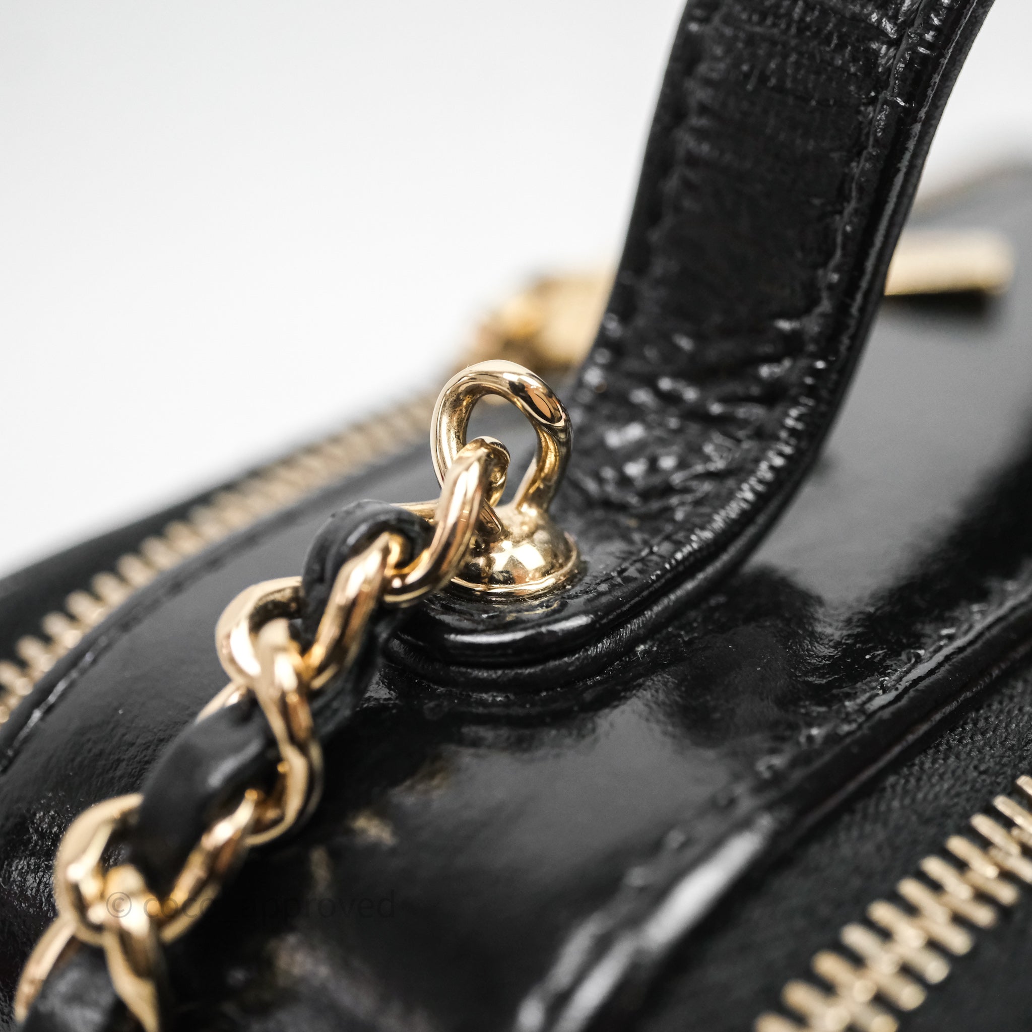 Chanel Small Top Handle Vanity Case Black Shiny Crumpled Calfskin Gold Hardware