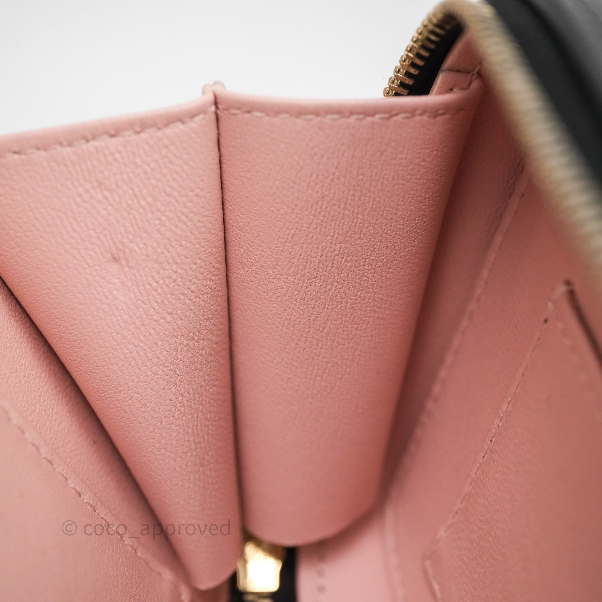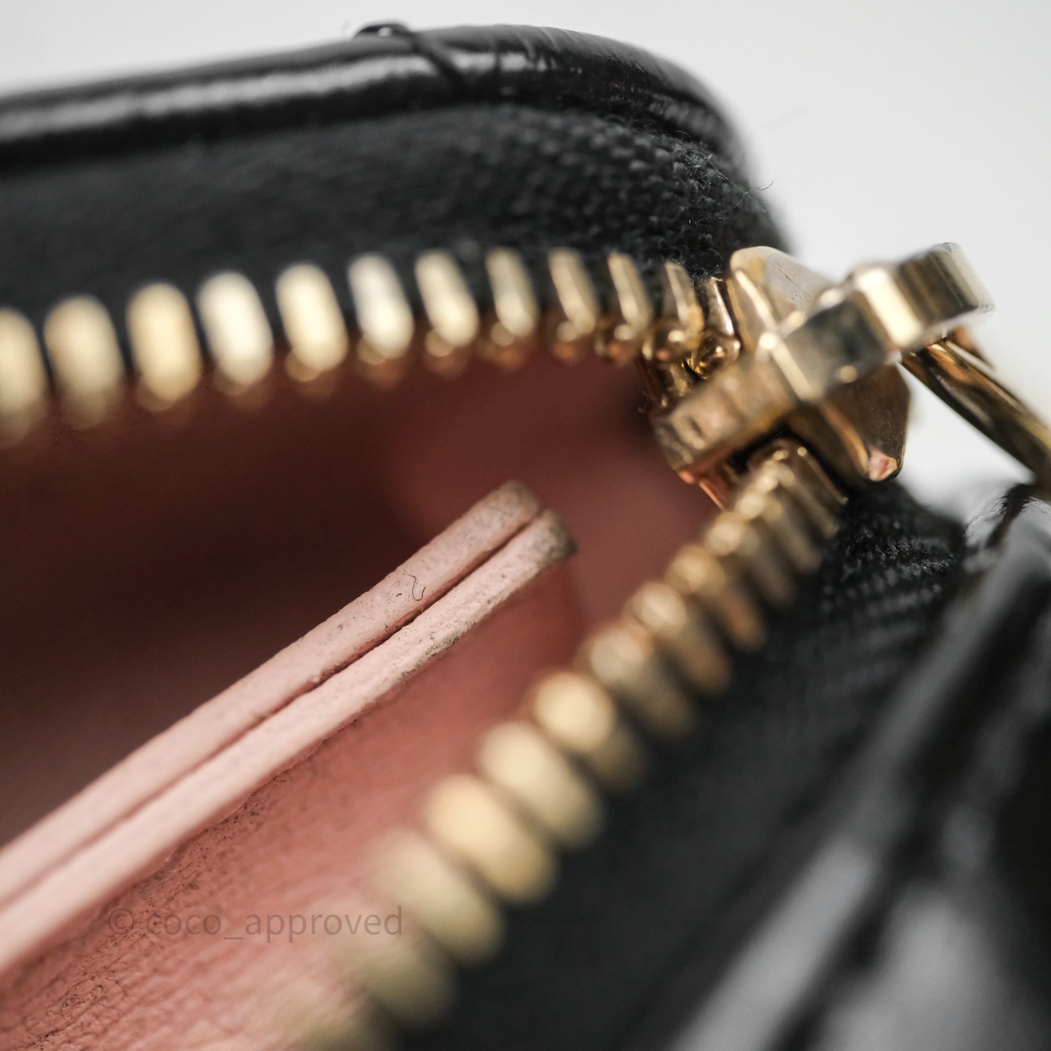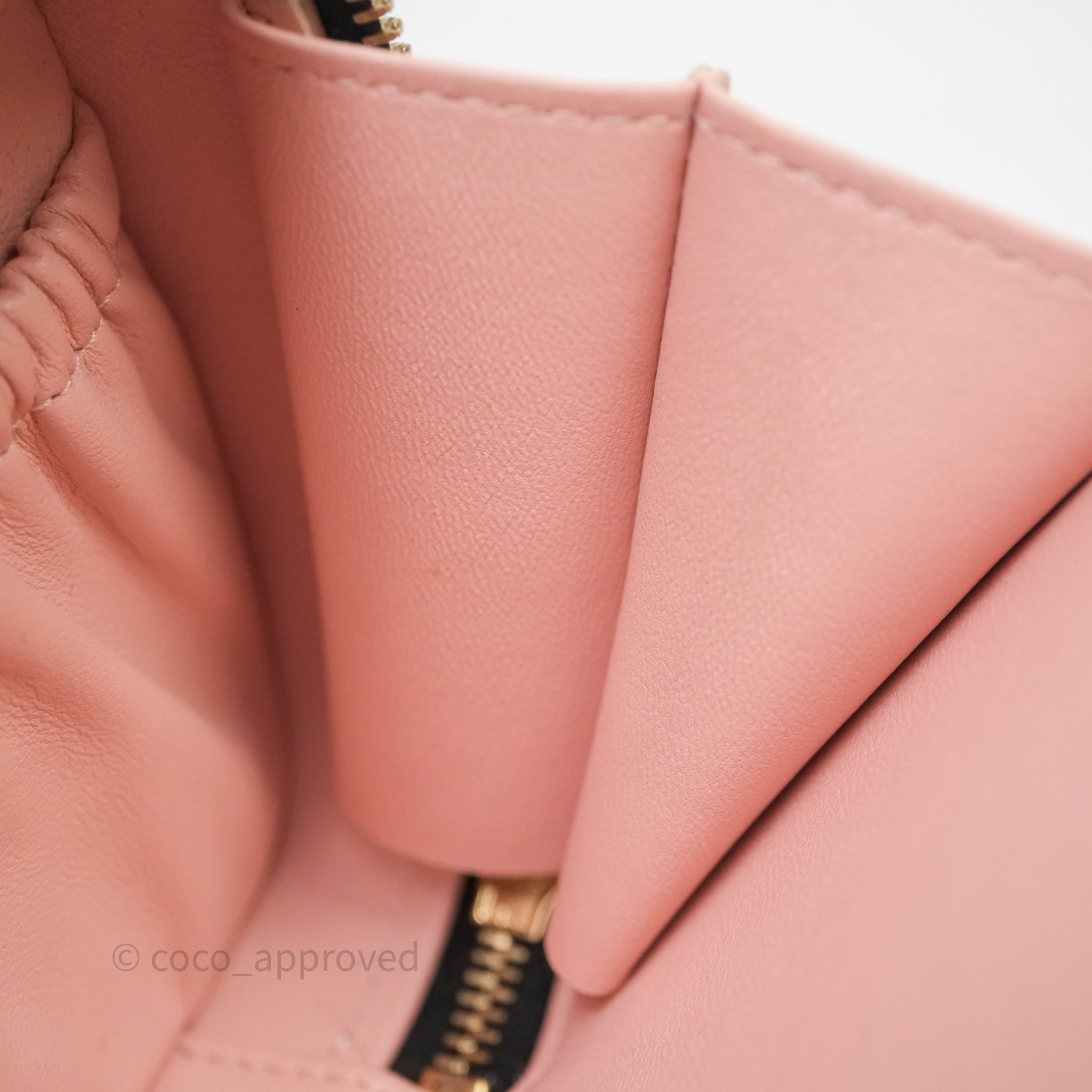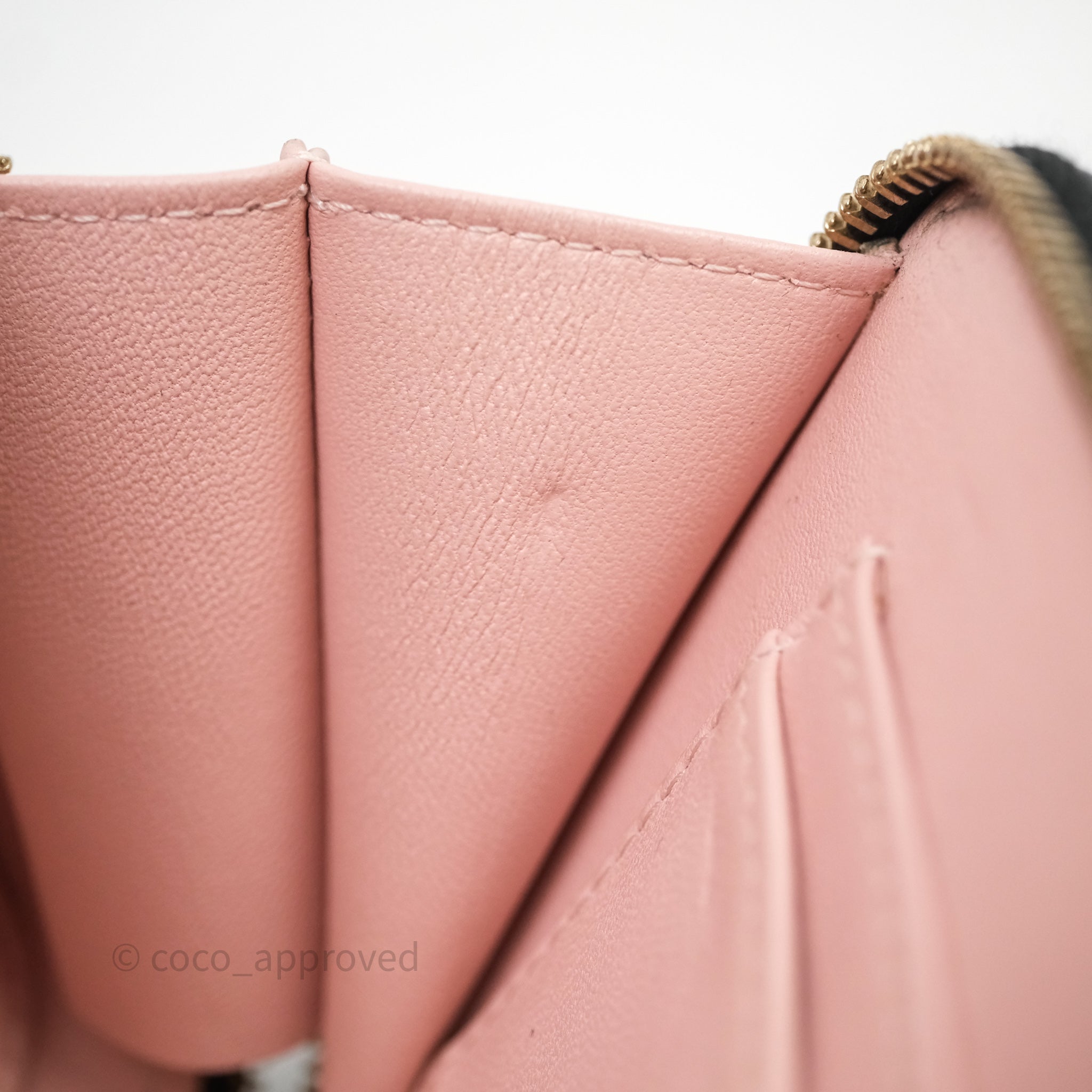 9.4/10 excellent to mint condition. Hairlines on hardware. Dent and mark in interior. Minor rubbing on corner.